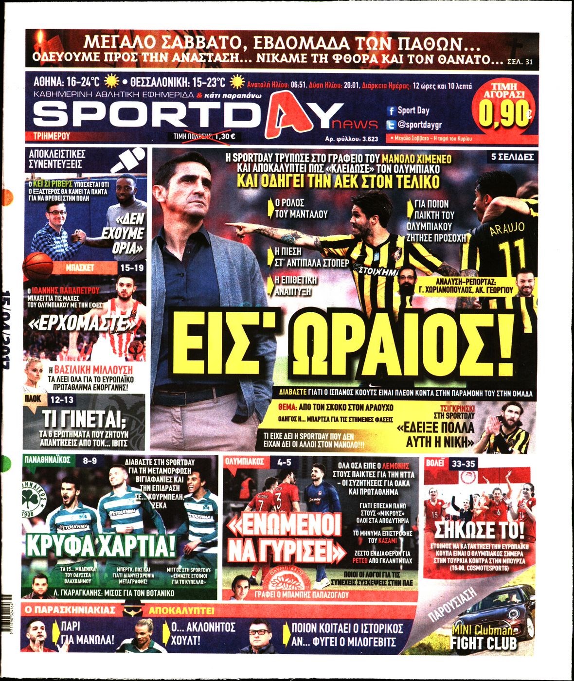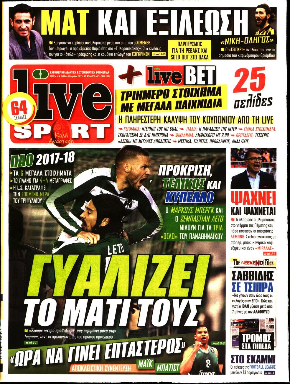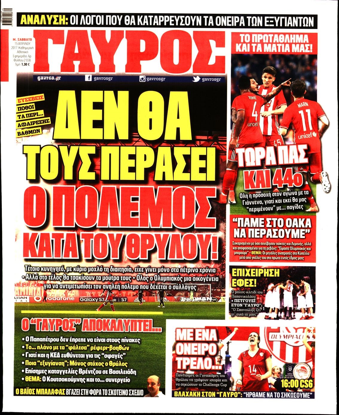 Οι αθλητικές εφημερίδες 15/4/2017 Enikos Newsroom 06:38, Σάββατο 15 Απριλίου 2017 Media Διαβάστε τα σημερινά πρωτοσέλιδα των αθλητικών εφημερίδων: ΑΘΛΗΤΙΚΕΣ ΕΦΗΜΕΡΙΔΕΣ ΠΡΩΤΟΣΕΛΙΔΑ Μοιράσου το: σχολίασε κι εσύ (0 σχόλια) Ακολουθήστε το enikos.gr στο Google News και μάθετε πρώτοι όλες τις ειδήσεις Δείτε όλες τις τελευταίες ειδήσεις από την Ελλάδα και τον Κόσμο στο enikos.gr Ειδήσεις Ροή Ειδήσεων 1 ώρα πριν Φοροδιαφυγή: Ποιοι φορολογούμενοι κινδυνεύουν να πληρώσουν «τσουχτερά» πρόστιμα 22 λεπτά πριν Φοινικούντα: Παραδόθηκε 30χρονος στην Καλαμάτα για τη διπλή δολοφονία 39 λεπτά πριν Αγρότες: Ανυποχώρητοι στα μπλόκα – Στις Σέρρες σήμερα η κρίσιμη συνεδρίαση της Πανελλαδικής Επιτροπής 51 λεπτά πριν Τα επίσημα χρονοδιαγράμματα που η Τουρκία θα παραλάβει τα Eurofighter 9 ώρες πριν «Θύελλα» αντιδράσεων για τον Νίκο Παππά μετά την επίθεση στον δημοσιογράφο Νίκο Γιαννόπουλο – Η μήνυση, οι δηλώσεις και η έξοδος από την ευρωομάδα του ΣΥΡΙΖΑ 2 ώρες πριν Καούρα: Το μπαχαρικό που είναι «εξίσου αποτελεσματικό» με την ομεπραζόλη, σύμφωνα με ειδικούς 3 ώρες πριν Τα ζώδια σήμερα, Πέμπτη 18 Δεκεμβρίου: Λέοντες, η καρδιά σας θέλει να εκφραστεί 2 ώρες πριν Οπτική ψευδαίσθηση: Μόνο οι πιο έξυπνοι άνθρωποι θα βρουν 7 ξωτικά 15 δευτερόλεπτα 23 ώρες πριν 20 χρόνια τα Χριστούγεννα ξεκινούν στα Public με μεγάλη ποικιλία σε δώρα! 5 λεπτά πριν Αλμπέρτο Εσκενάζυ: Το μεσημέρι το «τελευταίο αντίο» στο αποτεφρωτήριο της Ριτσώνας – Η απόφαση της οικογένειάς του 9 λεπτά πριν Τραγωδία στη Θεσσαλονίκη: Νεκρή η 57χρονη που παρασύρθηκε από αυτοκίνητο στον Εύοσμο 14 λεπτά πριν Ανακαλύφθηκαν σπάνια λυχνία λαδιού και μια γραφίδα 2.000 ετών 19 λεπτά πριν Την Κυριακή με τη Realnews: Δωροεπιταγή 10€ 22 λεπτά πριν Φοινικούντα: Παραδόθηκε 30χρονος στην Καλαμάτα για τη διπλή δολοφονία ENIKOS NETWORK Ουρική αρθρίτιδα: Μεγάλη μελέτη αποκαλύπτει τι μπορεί να προκαλεί τη νόσο Τι σημαίνει όταν ο σκύλος σας σάς φέρνει τυχαία αντικείμενα, σύμφωνα με εκπαιδεύτρια Οφειλές προς το Δημόσιο: «Φρένο» στα σενάρια για νέα ρύθμιση – Τι απαντά το υπουργείο Εθνικής Οικονομίας και Οικονομικών Φοροδιαφυγή: Ποιοι φορολογούμενοι κινδυνεύουν να πληρώσουν «τσουχτερά» πρόστιμα Χαρτογραφώντας το «σημείο χωρίς επιστροφή»: Για πρώτη φορά αποκαλύπτεται με λεπτομέρεια το ακανθώδες όριο της ατμόσφαιρας τ... Η Google καταργεί τη λειτουργία «dark web report» – Πώς θα μπορούν οι χρήστες να διαγράφουν τα δεδομένα τους περισσότερα 08:00 , Πέμπτη 18 Δεκεμβρίου 2025 Την Κυριακή με τη Realnews: Δωροεπιταγή 10€ Δωροεπιταγή αξίας 10€ για αγορές άνω των 60€ από τα πολυκαταστήματα FactoryOutlet H προσφορά ι... 07:50 , Πέμπτη 18 Δεκεμβρίου 2025 «Το σόι σου»: Backstage στα γυρίσματα για το εορταστικό επεισόδιο «Το σόι σου» φορά τα γιορτινά του για τα Χριστούγεννα και η Όλγα Λαφαζάνη, με την κάμερα του «... 07:36 , Πέμπτη 18 Δεκεμβρίου 2025 Οι αθλητικές μεταδόσεις 18/12/2025 – Πού θα δείτε τον αγώνα της ΑΕΚ με την Κραϊόβα για το Conference League Τα ματς ΑΕΚ – Ουνιβερσιτάτεα Κραϊόβα για το Conference League και Παναθηναϊκός – Χάποελ Τελ Αβ... 05:48 , Πέμπτη 18 Δεκεμβρίου 2025 Οι οικονομικές εφημερίδες 18/12/2025 Διαβάστε τα πρωτοσέλιδα από τις οικονομικές εφημερίδες, σήμερα 18/12/2025. ΤΕΛΕΥΤΑΙΕΣ ΕΙΔΗΣΕΙΣ 5 λεπτά πριν Αλμπέρτο Εσκενάζυ: Το μεσημέρι το «τελευταίο αντίο»... 9 λεπτά πριν Τραγωδία στη Θεσσαλονίκη: Νεκρή η 57χρονη που... 14 λεπτά πριν Ανακαλύφθηκαν σπάνια λυχνία λαδιού και μια γραφίδα... 19 λεπτά πριν Την Κυριακή με τη Realnews: Δωροεπιταγή 10€ 22 λεπτά πριν Φοινικούντα: 