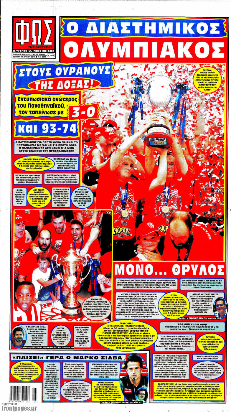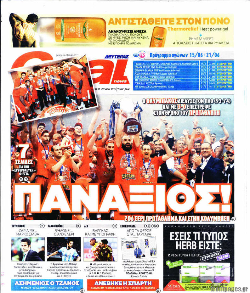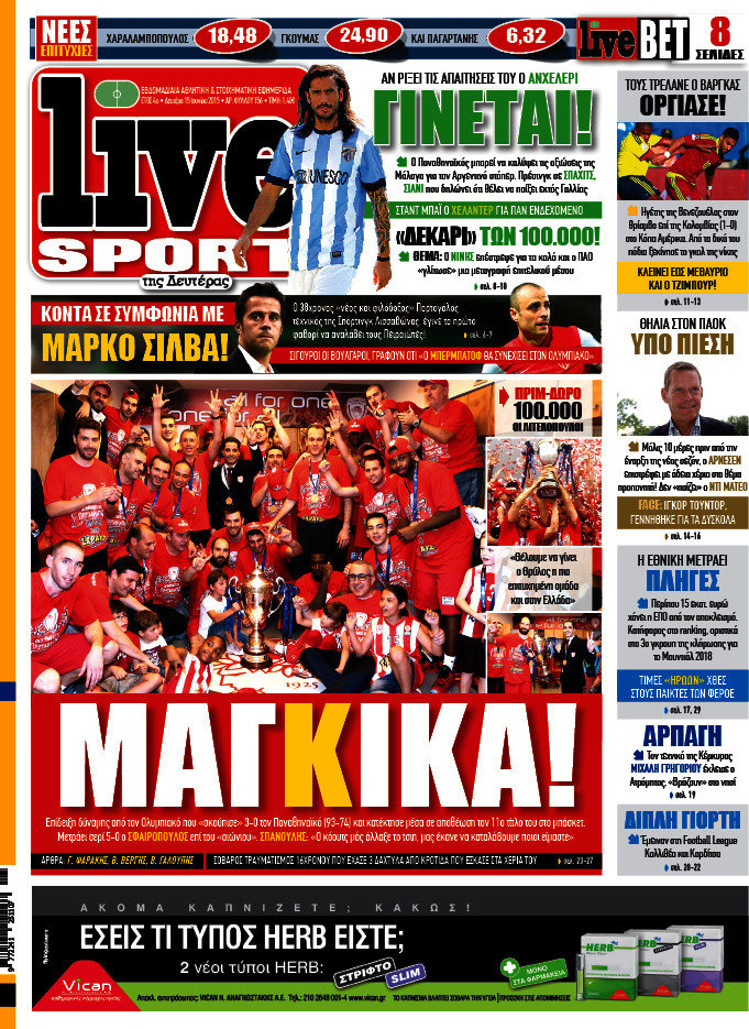 Οι αθλητικές εφημερίδες 15/6/2015 Enikos Newsroom 07:27, Δευτέρα 15 Ιουνίου 2015 Media Διαβάστε τα σημερινά πρωτοσέλιδα των αθλητικών εφημερίδων: ΑΘΛΗΤΙΚΕΣ ΕΦΗΜΕΡΙΔΕΣ ΠΡΩΤΟΣΕΛΙΔΑ Μοιράσου το: σχολίασε κι εσύ (0 σχόλια) Ακολουθήστε το enikos.gr στο Google News και μάθετε πρώτοι όλες τις ειδήσεις Δείτε όλες τις τελευταίες ειδήσεις από την Ελλάδα και τον Κόσμο στο enikos.gr Ειδήσεις Ροή Ειδήσεων 4 ώρες πριν Μεσόγειος: Η διαδρομή του ρωσικού τάνκερ «Qendil» και η στοχευμένη επίθεση της Ουκρανίας με drone – Ο Πούτιν προειδοποίησε για αντίποινα 42 λεπτά πριν Αγρότες: Έκλεισαν για μία ώρα την παρακαμπτήρια της Ιόνιας Οδού στη θέση Χαλίκι 2 ώρες πριν Εμπλοκή και αερομαχίες με οπλισμένα τουρκικά F-16 στο Αιγαίο 2 ώρες πριν Πούτιν: «Ναι, είμαι ερωτευμένος» – Βίντεο από τη σπάνια προσωπική παραδοχή του 46 λεπτά πριν Ανδρέας Λυκουρέντζος: Υπέβαλε την παραίτησή του ο πρόεδρος του ΕΛΓΑ, αλλά δεν έγινε δεκτή – Όλο το παρασκήνιο 56 λεπτά πριν Αριθμολογία: Οι άνθρωποι που έχουν γεννηθεί αυτές τις 4 ημερομηνίες, συχνά παρεξηγούνται – «Η καλοσύνη τους κρύβει τεράστια δύναμη» 3 ώρες πριν Μήπως έχετε χάσει τον εαυτό σας στη σχέση σας; 7 «αθόρυβες» υποχωρήσεις που μάλλον κάνατε, χωρίς να το συνειδητοποιήσετε 2 ώρες πριν Ξεχάστε το καθάρισμα το Σαββατοκύριακο: Ο «κανόνας των 20 λεπτών» που θα σας λύσει τα χέρια 5 ώρες πριν Κουίζ για την παλιά Αθήνα: Αναγνωρίζετε την περιοχή; Έχετε περάσει 100% από εκεί 2 λεπτά πριν ΕΕ: «Κάποια στιγμή θα χρησιμοποιήσουμε τα ρωσικά περιουσιακά στοιχεία» δήλωσε ο πρόεδρος του ΕΛΚ 5 λεπτά πριν Conference League: Καλύτερη επίθεση η ΑΕΚ στη διοργάνωση και 2η σε προσπάθειες στην εστία – Ξεχωρίζουν Πινέδα, Ελίασον και Ρότα 7 λεπτά πριν Έγκυος η Άννα Κορακάκη: «Η οικογένειά μας μεγαλώνει…» – Η αποκάλυψη για το φύλο του μωρού 15 λεπτά πριν Τραγωδία στο Βελεστίνο: Πέθανε ο αντιδήμαρχος Γιάννης Παπαϊωάννου 19 λεπτά πριν Ολυμπιακός – Βιλερμπάν: Μάτωσε στο πρόσωπο ο Παπανικολάου έπειτα από αγκωνιά του Βοτιέ – ΦΩΤΟ ENIKOS NETWORK Το ΕΚΑΒ τιμήθηκε από την Ακαδημία Αθηνών για τα 40 χρόνια προσφοράς του Έχετε πραγματικά μεγάλη καρδιά; 10 χαρακτηριστικά όσων έχουν καλοσύνη Έρχονται νέες προσλήψεις σε Δήμο – Όλες οι λεπτομέρειες Επίδομα παιδιού: Πότε ανοίγει ξανά η πλατφόρμα για τις αιτήσεις Χαρτογραφώντας το «σημείο χωρίς επιστροφή»: Για πρώτη φορά αποκαλύπτεται με λεπτομέρεια το ακανθώδες όριο της ατμόσφαιρας τ... Η Google καταργεί τη λειτουργία «dark web report» – Πώς θα μπορούν οι χρήστες να διαγράφουν τα δεδομένα τους περισσότερα 20:37 , Παρασκευή 19 Δεκεμβρίου 2025 Don’t Forget The Lyrics: Η Έλλη Κοκκίνου υποδέχεται 4 παίκτες που θα κάνουν τα πάντα για να μη χάσουν ούτε… μισή λέξη από τους στίχους Το «Don’t Forget The Lyrics» επιστρέφει απόψε, Παρασκευή 19 Δεκεμβρίου, στις 21:00 με νέο επει... 19:31 , Παρασκευή 19 Δεκεμβρίου 2025 GNTM: Απόψε ο μεγάλος τελικός για τους 4 φιναλίστ Έπειτα από μήνες γεμάτους μόδα, δημιουργία και έντονες αναμετρήσεις, το GNTM 2025 κορυφώνεται,... 18:11 , Παρασκευή 19 Δεκεμβρίου 2025 Το σόι σου: Ο Άρης έρχεται στην Ελλάδα για τις γιορτές των Χριστουγέννων – Τι θα δούμε στο αποψινό εορταστικό επεισόδιο Ένα απολαυστικό, εορταστικό επεισόδιο της σειράς “Το σόι σου”, γεμάτο ευτράπελα αλ... 15:15 , Παρασκευή 19 Δεκεμβρίου 2025 Την Κυριακή με τη Realnews: Ό,τι και αν αγοράσεις, σκανάρεις και κερδίζεις! Την Κυριακή με τη Realnews: Ό,τι και αν αγοράσεις, σκανάρεις και κερδίζεις! Με το PADU app, το... ΤΕΛΕΥΤΑΙΕΣ ΕΙΔΗΣΕΙΣ 2 λεπτά πριν ΕΕ: «Κάποια στιγμή θα χρησιμοποι
