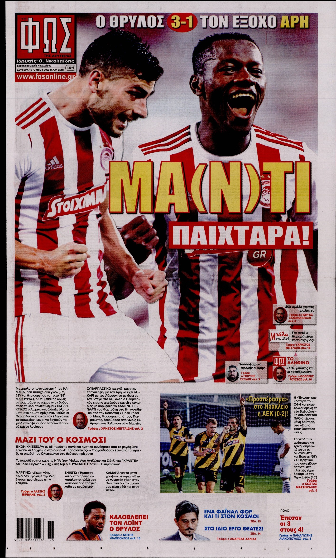 Οι αθλητικές εφημερίδες 15/6/2020 Διονύσης Νίκκας 06:52, Δευτέρα 15 Ιουνίου 2020 Media Διαβάστε τα πρωτοσέλιδα των αθλητικών εφημερίδων… ΑΘΛΗΤΙΚΕΣ ΕΦΗΜΕΡΙΔΕΣ Μοιράσου το: σχολίασε κι εσύ (0 σχόλια) Ακολουθήστε το enikos.gr στο Google News και μάθετε πρώτοι όλες τις ειδήσεις Δείτε όλες τις τελευταίες ειδήσεις από την Ελλάδα και τον Κόσμο στο enikos.gr Ειδήσεις Ροή Ειδήσεων 9 ώρες πριν Χριστούγεννα στα μπλόκα: Επιμένουν στις κινητοποιήσεις τους οι αγρότες – Ανοίγουν τα διόδια το Σαββατοκύριακο 2 ώρες πριν Σαρωτικοί οι έλεγχοι στους δρόμους ενόψει εορτών – Μπλόκα της τροχαίας σε κεντρικές αρτηρίες της Αττικής 9 ώρες πριν Πούτιν: Τα μηνύματα σε Ευρώπη και ΝΑΤΟ από το μαραθώνιο «σόου» του – Η απαίτηση για «σεβασμό» και η ειρήνη «με τους όρους» της Μόσχας 8 ώρες πριν ΗΠΑ: Η κυβέρνηση του Ντόναλντ Τραμπ άρχισε να δημοσιοποιεί τα αρχεία Έπσταϊν 8 ώρες πριν Άνω Λιόσια: Πυροβολισμοί σε επιχείρηση με χαλιά – Εντοπίστηκαν 10 κάλυκες 2 ώρες πριν Αυγά: Πόσα μπορείτε να τρώτε την ημέρα με ασφάλεια για μέγιστη πρόσληψη πρωτεΐνης 2 ώρες πριν Τα ζώδια σήμερα, Σάββατο 20 Δεκεμβρίου: Παρθένοι, το σύμπαν σας δίνει το κλειδί 9 ώρες πριν Ανακαλύφθηκαν αρχαία χρυσά νομίσματα 2.200 ετών που απεικονίζουν τον θεό Απόλλωνα – Η άγνωστη σύνδεση με τον Φίλιππο Β΄ της Μακεδονίας 1 ώρα πριν Οπτική ψευδαίσθηση: Μόνο αν είσαι ο Σέρλοκ Χολμς θα βρεις τον αριθμό «87» σε 7 δευτερόλεπτα 4 λεπτά πριν ΟΝΕΧ – MEGATUGS: Ξεκίνησε η ναυπήγηση ρυμουλκών στην Ελλάδα – Προθάλαμος πολεμικών πλοίων – Δείτε φωτογραφίες και βίντεο 12 λεπτά πριν Φοινικούντα: Σήμερα απολογείται ο 30χρονος γιος γνωστού επιχειρηματία της Πλάκας 20 λεπτά πριν Οι αθλητικές μεταδόσεις 20/12/2025 30 λεπτά πριν Εορτολόγιο: Ποιοι γιορτάζουν σήμερα 20 Δεκεμβρίου 37 λεπτά πριν Συρία: Μπαράζ αμερικανικών επιδρομών εναντίον του ISIS – «Πλήττουμε δυνατά οχυρά του ΙΚ» λέει ο Ντόναλντ Τραμπ ENIKOS NETWORK Πρέπει να αποδέχεστε ή να απορρίπτετε όλα τα cookies; Ένας ειδικός εξηγεί Η αγαπημένη λιχουδιά των πόνι που μπορεί να ενισχύσει όραση, εγκέφαλο και ανοσοποιητικό Αναστολή μέτρων αναγκαστικής εκτέλεσης για κτηνοτρόφους που πλήττονται από την ευλογιά των αιγοπροβάτων Πλήρης επάρκεια προϊόντων στις λαϊκές της Αττικής, παρά τις αγροτικές κινητοποιήσεις – Τι απαντούν οι πωλητές Χαρτογραφώντας το «σημείο χωρίς επιστροφή»: Για πρώτη φορά αποκαλύπτεται με λεπτομέρεια το ακανθώδες όριο της ατμόσφαιρας τ... Η Google καταργεί τη λειτουργία «dark web report» – Πώς θα μπορούν οι χρήστες να διαγράφουν τα δεδομένα τους περισσότερα 05:48 , Σάββατο 20 Δεκεμβρίου 2025 Οι οικονομικές εφημερίδες 20/12/2025 Διαβάστε τα πρωτοσέλιδα από τις οικονομικές εφημερίδες, σήμερα 20/12/2025. 05:43 , Σάββατο 20 Δεκεμβρίου 2025 Οι αθλητικές εφημερίδες 20/12/2025 Διαβάστε τα πρωτοσέλιδα από τις αθλητικές εφημερίδες, σήμερα 20/12/2025. 05:38 , Σάββατο 20 Δεκεμβρίου 2025 Οι πολιτικές εφημερίδες 20/12/2025 Διαβάστε τα πρωτοσέλιδα από τις πολιτικές εφημερίδες, σήμερα 20/12/2025. 04:20 , Σάββατο 20 Δεκεμβρίου 2025 Αγγελική Νικολούλη: Τα συλλυπητήρια για την απώλεια της Ειρήνης Μαρινάκη Τα συλληπητήρια στον πρόεδρο του Mega, τον Βαγγέλη Μαρινάκη, για την απώλεια της μητέρας του Ε... ΤΕΛΕΥΤΑΙΕΣ ΕΙΔΗΣΕΙΣ 4 λεπτά πριν ΟΝΕΧ – MEGATUGS: Ξεκίνησε η ναυπήγηση ρυμουλκών στην... 12 λεπτά πριν Φοινικούντα: Σήμερα απολογείται ο 30χρονος γιος... 20 λεπτά πριν Οι αθλητικές μεταδόσεις 20/12/2025 30 λεπτά πριν Εορτολόγιο: Ποιοι γιορτάζουν σήμερα 20 Δεκεμβρίου 37 λεπτά πριν Συρία: Μπαράζ αμερικανικώ