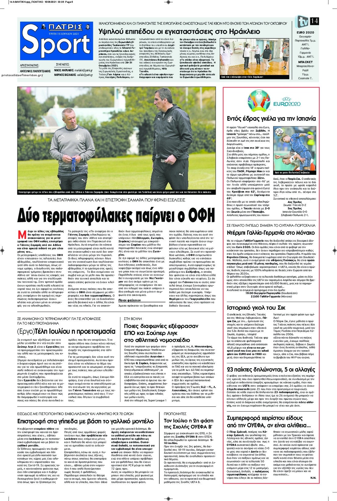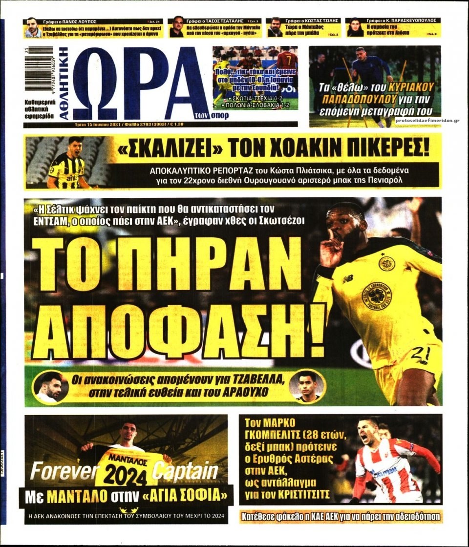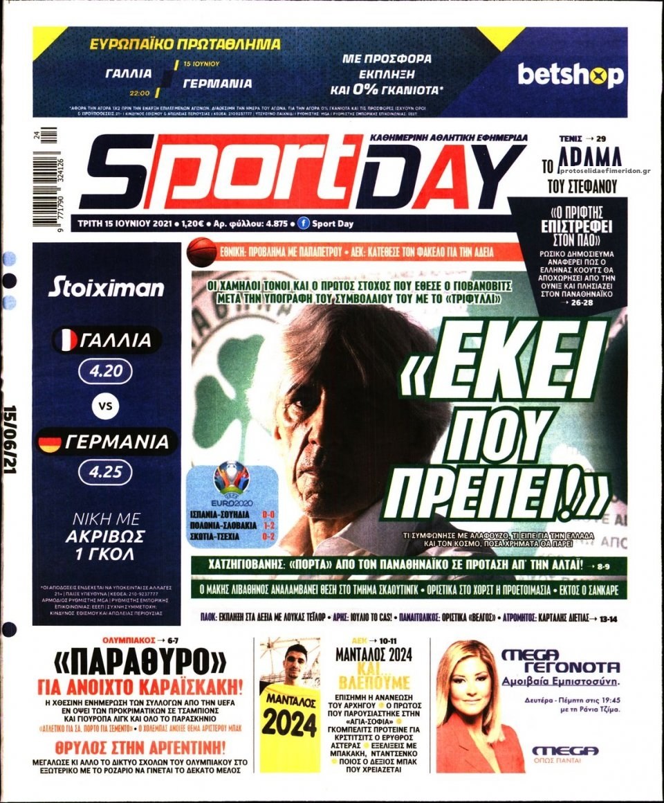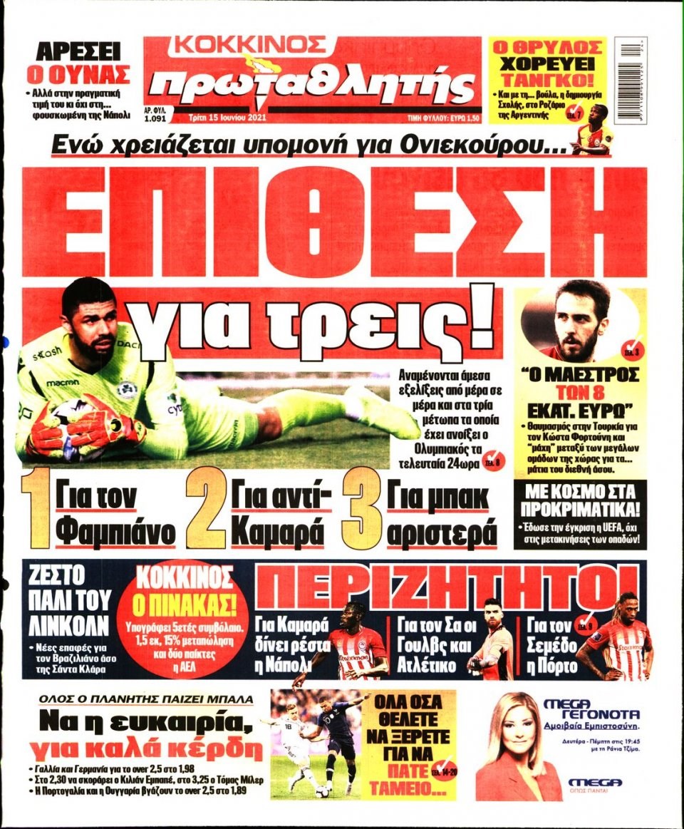 Διαβάστε τα πρωτοσέλιδα των αθλητικών εφημερίδων.