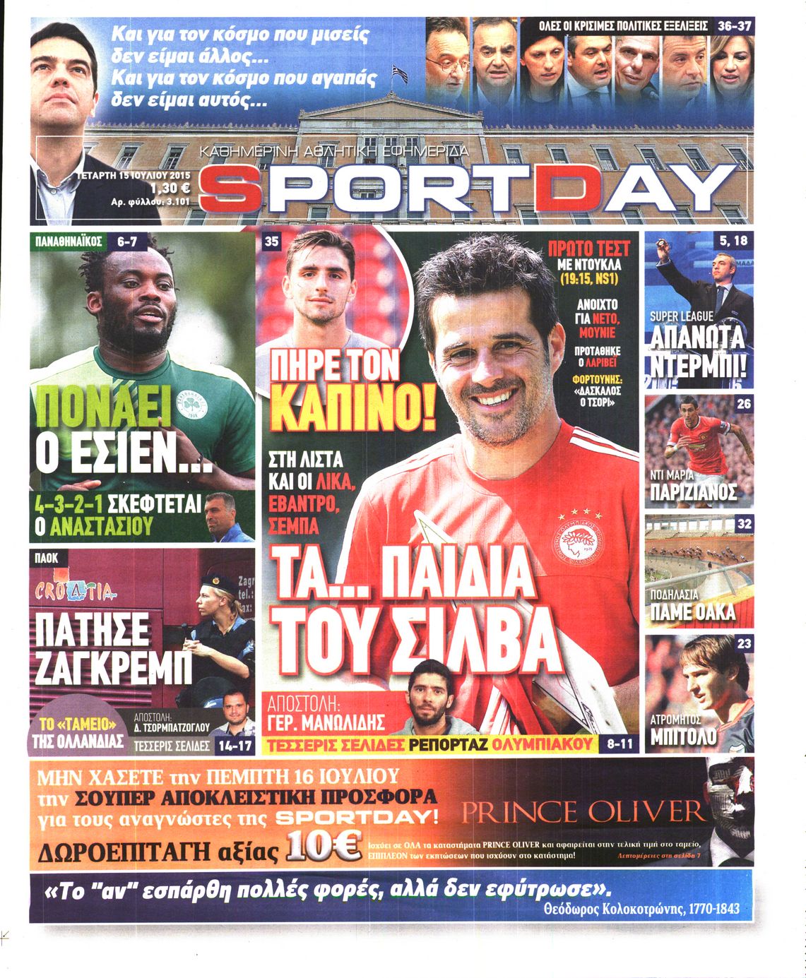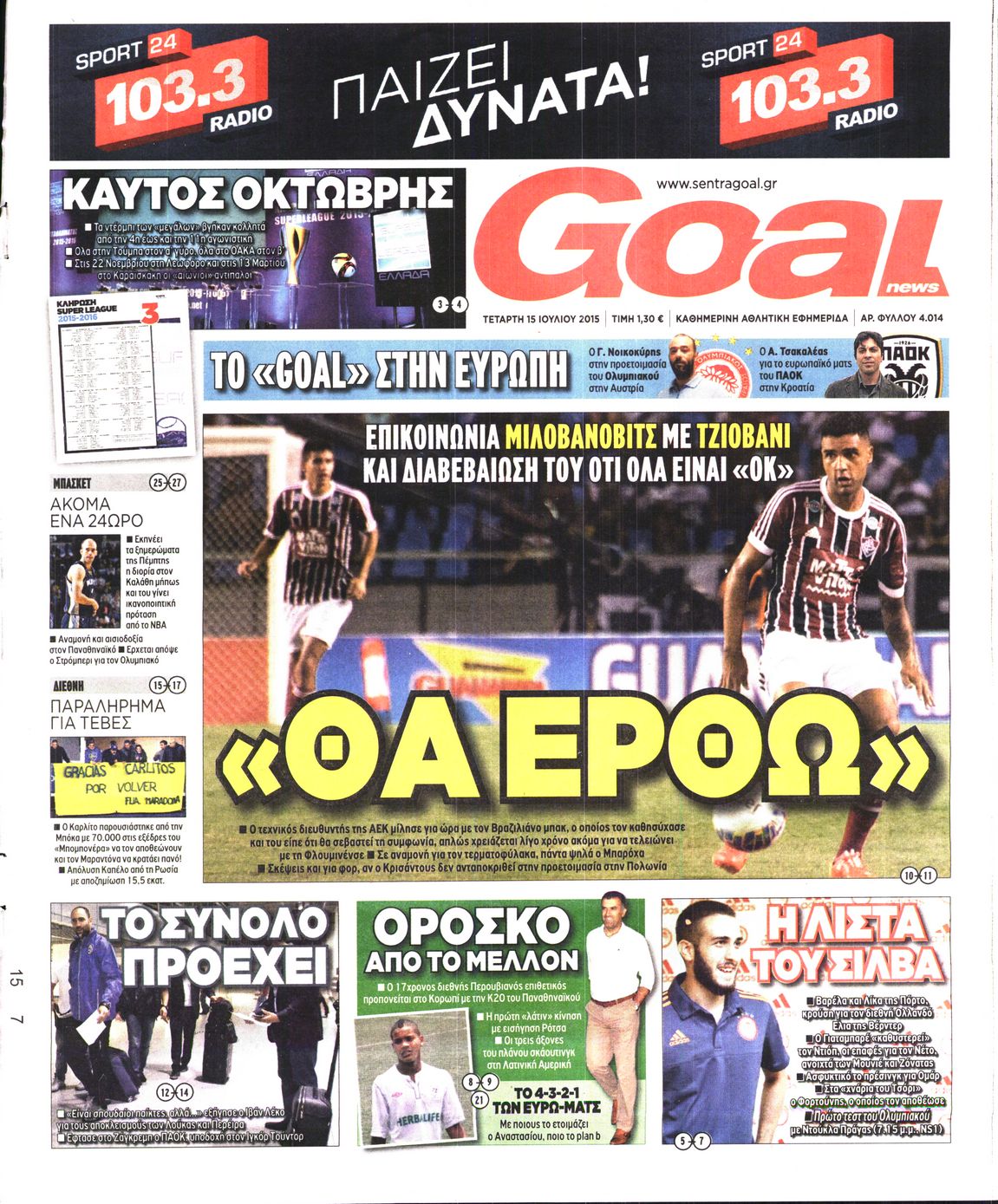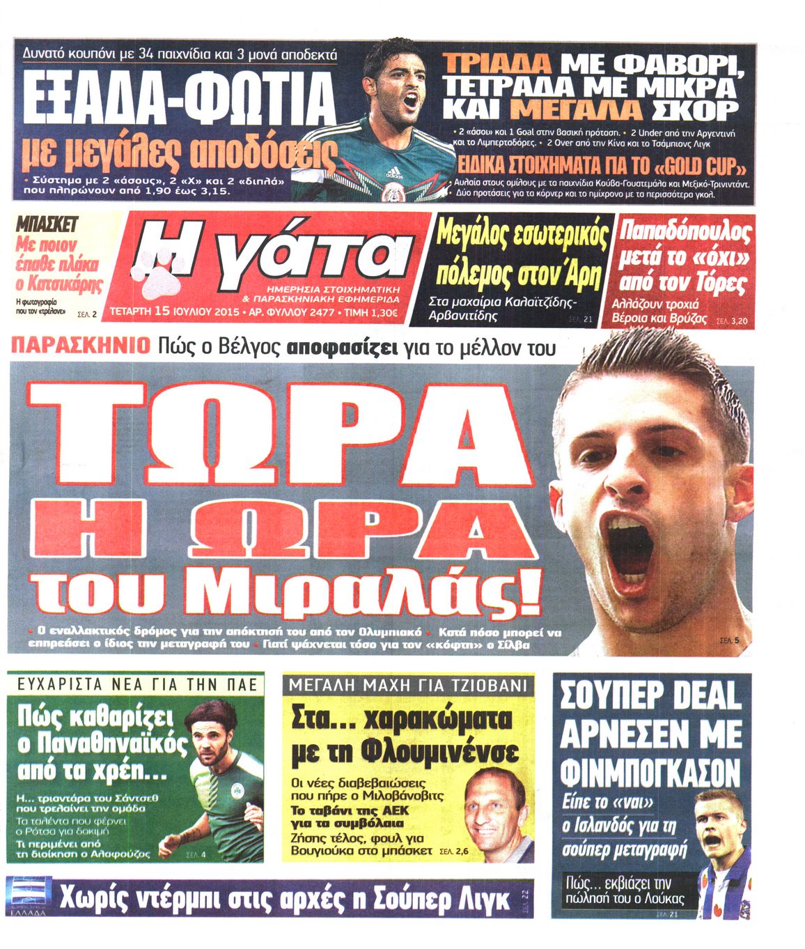 Οι αθλητικές εφημερίδες 15/7/2015 Enikos Newsroom 06:20, Τετάρτη 15 Ιουλίου 2015 Media Διαβάστε τα σημερινά πρωτοσέλιδα των αθλητικών εφημερίδων: ΑΘΛΗΤΙΚΕΣ ΕΦΗΜΕΡΙΔΕΣ ΠΡΩΤΟΣΕΛΙΔΑ Μοιράσου το: σχολίασε κι εσύ (0 σχόλια) Ακολουθήστε το enikos.gr στο Google News και μάθετε πρώτοι όλες τις ειδήσεις Δείτε όλες τις τελευταίες ειδήσεις από την Ελλάδα και τον Κόσμο στο enikos.gr Ειδήσεις Ροή Ειδήσεων 2 ώρες πριν Χριστούγεννα στα μπλόκα: Επιμένουν στις κινητοποιήσεις τους οι αγρότες – Ανοίγουν τα διόδια το Σαββατοκύριακο 2 ώρες πριν Ουκρανία: Η άνευ προηγουμένου επίθεση σε ρωσικό τάνκερ στη Μεσόγειο και το μήνυμα προς στον Πούτιν – Το «μακρύ χέρι» του Κιέβου 2 ώρες πριν Πούτιν: Τα μηνύματα σε Ευρώπη και ΝΑΤΟ από το μαραθώνιο «σόου» του – Η απαίτηση για «σεβασμό» και η ειρήνη «με τους όρους» της Μόσχας 2 ώρες πριν Τραμπ: Δεν αποκλείει την πιθανότητα ενός πολέμου στη Βενεζουέλα – «Ο Μαδούρο ξέρει καλύτερα από τον καθένα τι ακριβώς θέλω» 3 ώρες πριν Συνεχίζει να προκαλεί ο Μίτσκοσκι: «Για μένα το όνομα Μακεδονία είναι ιερό» 2 ώρες πριν Ανακαλύφθηκαν αρχαία χρυσά νομίσματα 2.200 ετών που απεικονίζουν τον θεό Απόλλωνα – Η άγνωστη σύνδεση με τον Φίλιππο Β΄ της Μακεδονίας 3 ώρες πριν Ύπνος: Μια κρυφή κατάσταση του εγκεφάλου πριν από τον ύπνο μπορεί να είναι το “κλειδί” για υψηλή ευφυΐα και δημιουργικότητα 4 ώρες πριν Αριθμολογία: Οι άνθρωποι που έχουν γεννηθεί αυτές τις 4 ημερομηνίες, συχνά παρεξηγούνται – «Η καλοσύνη τους κρύβει τεράστια δύναμη» 5 ώρες πριν Ξεχάστε το καθάρισμα το Σαββατοκύριακο: Ο «κανόνας των 20 λεπτών» που θα σας λύσει τα χέρια 11 λεπτά πριν Φαίη Σκορδά: «Παλιότερα τα κομπλιμέντα τα προσπερνούσα, τώρα τα έχω ανάγκη» 27 λεπτά πριν Βασίλης Σπανούλης: Δεν εμφανίστηκε ούτε ένας δημοσιογράφος στην συνέντευξη Τύπου – «Καλησπέρα στον… κανέναν», δείτε βίντεο 38 λεπτά πριν Πόλεμος στην Ουκρανία: Εφτά νεκροί από ρωσική πυραυλική επίθεση στο λιμάνι της Οδησσού 41 λεπτά πριν ΗΠΑ: Η κυβέρνηση του Ντόναλντ Τραμπ άρχισε να δημοσιοποιεί τα αρχεία Έπσταϊν 53 λεπτά πριν Σάμος: Άνοιξε το μπλόκο των αγροτών στον κόμβο Κοκκαρίου – Σε νέα συνεδρίαση θα καθορίσουν την στάση τους ENIKOS NETWORK Το ΕΚΑΒ τιμήθηκε από την Ακαδημία Αθηνών για τα 40 χρόνια προσφοράς του Έχετε πραγματικά μεγάλη καρδιά; 10 χαρακτηριστικά όσων έχουν καλοσύνη Αναστολή μέτρων αναγκαστικής εκτέλεσης για κτηνοτρόφους που πλήττονται από την ευλογιά των αιγοπροβάτων Πλήρης επάρκεια προϊόντων στις λαϊκές της Αττικής, παρά τις αγροτικές κινητοποιήσεις – Τι απαντούν οι πωλητές Χαρτογραφώντας το «σημείο χωρίς επιστροφή»: Για πρώτη φορά αποκαλύπτεται με λεπτομέρεια το ακανθώδες όριο της ατμόσφαιρας τ... Η Google καταργεί τη λειτουργία «dark web report» – Πώς θα μπορούν οι χρήστες να διαγράφουν τα δεδομένα τους περισσότερα 22:42 , Παρασκευή 19 Δεκεμβρίου 2025 Γιώργος Γιαννόπουλος για “Το σόι σου”: “Είναι ευτυχία και ευλογία αυτή η σειρά” «Είναι ευτυχία και ευλογία η συγκυρία αυτής της σειράς», θα πει ο Γιώργος Γιαννόπουλος -ο αγαπ... 20:37 , Παρασκευή 19 Δεκεμβρίου 2025 Don’t Forget The Lyrics: Η Έλλη Κοκκίνου υποδέχεται 4 παίκτες που θα κάνουν τα πάντα για να μη χάσουν ούτε… μισή λέξη από τους στίχους Το «Don’t Forget The Lyrics» επιστρέφει απόψε, Παρασκευή 19 Δεκεμβρίου, στις 21:00 με νέο επει... 19:31 , Παρασκευή 19 Δεκεμβρίου 2025 GNTM: Απόψε ο μεγάλος τελικός για τους 4 φιναλίστ Έπειτα από μήνες γεμάτους μόδα, δημιουργία και έντονες αναμετρήσεις, το GNTM 2025 κορυφώνεται,... 18:11 , Παρα