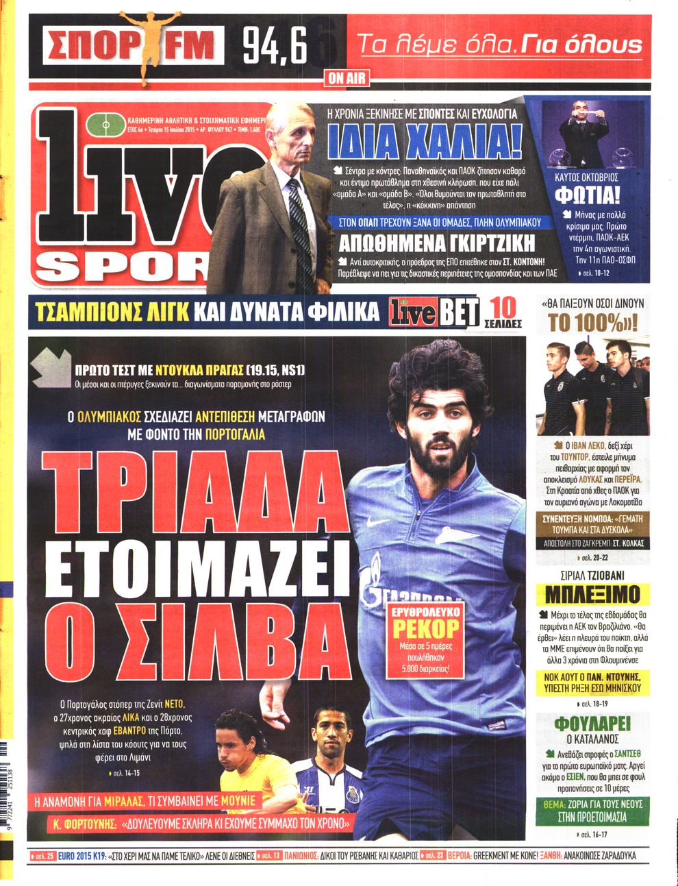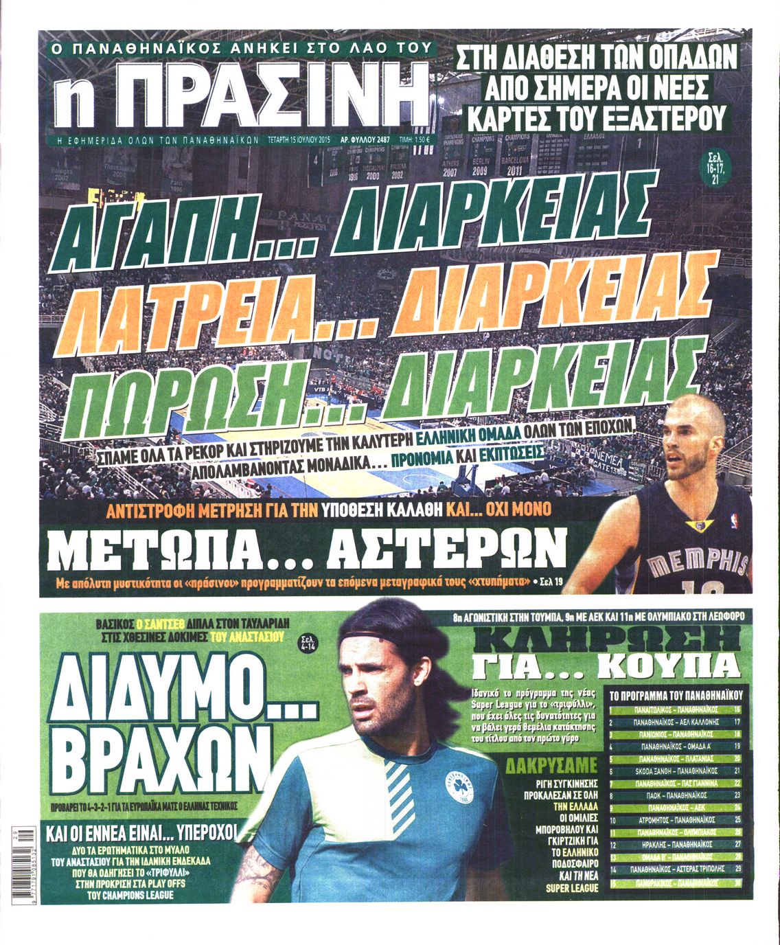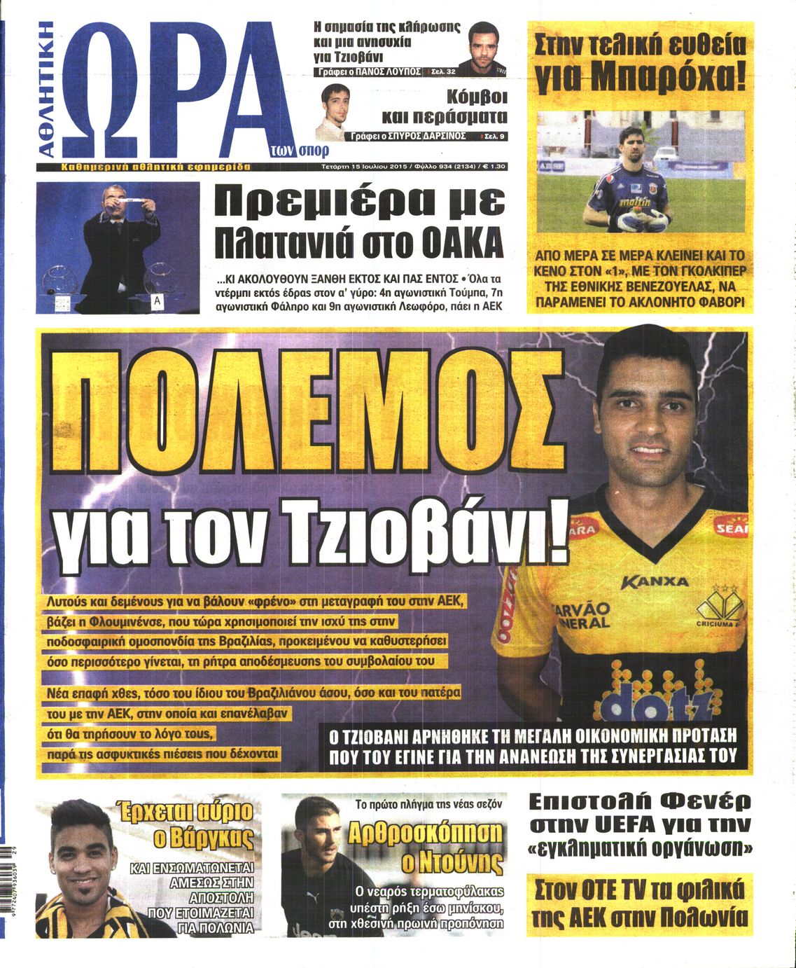 Οι αθλητικές εφημερίδες 15/7/2015 Enikos Newsroom 06:20, Τετάρτη 15 Ιουλίου 2015 Media Διαβάστε τα σημερινά πρωτοσέλιδα των αθλητικών εφημερίδων: ΑΘΛΗΤΙΚΕΣ ΕΦΗΜΕΡΙΔΕΣ ΠΡΩΤΟΣΕΛΙΔΑ Μοιράσου το: σχολίασε κι εσύ (0 σχόλια) Ακολουθήστε το enikos.gr στο Google News και μάθετε πρώτοι όλες τις ειδήσεις Δείτε όλες τις τελευταίες ειδήσεις από την Ελλάδα και τον Κόσμο στο enikos.gr Ειδήσεις Ροή Ειδήσεων 2 ώρες πριν Χριστούγεννα στα μπλόκα: Επιμένουν στις κινητοποιήσεις τους οι αγρότες – Ανοίγουν τα διόδια το Σαββατοκύριακο 2 ώρες πριν Ουκρανία: Η άνευ προηγουμένου επίθεση σε ρωσικό τάνκερ στη Μεσόγειο και το μήνυμα προς στον Πούτιν – Το «μακρύ χέρι» του Κιέβου 2 ώρες πριν Πούτιν: Τα μηνύματα σε Ευρώπη και ΝΑΤΟ από το μαραθώνιο «σόου» του – Η απαίτηση για «σεβασμό» και η ειρήνη «με τους όρους» της Μόσχας 2 ώρες πριν Τραμπ: Δεν αποκλείει την πιθανότητα ενός πολέμου στη Βενεζουέλα – «Ο Μαδούρο ξέρει καλύτερα από τον καθένα τι ακριβώς θέλω» 3 ώρες πριν Συνεχίζει να προκαλεί ο Μίτσκοσκι: «Για μένα το όνομα Μακεδονία είναι ιερό» 2 ώρες πριν Ανακαλύφθηκαν αρχαία χρυσά νομίσματα 2.200 ετών που απεικονίζουν τον θεό Απόλλωνα – Η άγνωστη σύνδεση με τον Φίλιππο Β΄ της Μακεδονίας 3 ώρες πριν Ύπνος: Μια κρυφή κατάσταση του εγκεφάλου πριν από τον ύπνο μπορεί να είναι το “κλειδί” για υψηλή ευφυΐα και δημιουργικότητα 4 ώρες πριν Αριθμολογία: Οι άνθρωποι που έχουν γεννηθεί αυτές τις 4 ημερομηνίες, συχνά παρεξηγούνται – «Η καλοσύνη τους κρύβει τεράστια δύναμη» 5 ώρες πριν Ξεχάστε το καθάρισμα το Σαββατοκύριακο: Ο «κανόνας των 20 λεπτών» που θα σας λύσει τα χέρια 11 λεπτά πριν Φαίη Σκορδά: «Παλιότερα τα κομπλιμέντα τα προσπερνούσα, τώρα τα έχω ανάγκη» 27 λεπτά πριν Βασίλης Σπανούλης: Δεν εμφανίστηκε ούτε ένας δημοσιογράφος στην συνέντευξη Τύπου – «Καλησπέρα στον… κανέναν», δείτε βίντεο 38 λεπτά πριν Πόλεμος στην Ουκρανία: Εφτά νεκροί από ρωσική πυραυλική επίθεση στο λιμάνι της Οδησσού 41 λεπτά πριν ΗΠΑ: Η κυβέρνηση του Ντόναλντ Τραμπ άρχισε να δημοσιοποιεί τα αρχεία Έπσταϊν 53 λεπτά πριν Σάμος: Άνοιξε το μπλόκο των αγροτών στον κόμβο Κοκκαρίου – Σε νέα συνεδρίαση θα καθορίσουν την στάση τους ENIKOS NETWORK Το ΕΚΑΒ τιμήθηκε από την Ακαδημία Αθηνών για τα 40 χρόνια προσφοράς του Έχετε πραγματικά μεγάλη καρδιά; 10 χαρακτηριστικά όσων έχουν καλοσύνη Αναστολή μέτρων αναγκαστικής εκτέλεσης για κτηνοτρόφους που πλήττονται από την ευλογιά των αιγοπροβάτων Πλήρης επάρκεια προϊόντων στις λαϊκές της Αττικής, παρά τις αγροτικές κινητοποιήσεις – Τι απαντούν οι πωλητές Χαρτογραφώντας το «σημείο χωρίς επιστροφή»: Για πρώτη φορά αποκαλύπτεται με λεπτομέρεια το ακανθώδες όριο της ατμόσφαιρας τ... Η Google καταργεί τη λειτουργία «dark web report» – Πώς θα μπορούν οι χρήστες να διαγράφουν τα δεδομένα τους περισσότερα 22:42 , Παρασκευή 19 Δεκεμβρίου 2025 Γιώργος Γιαννόπουλος για “Το σόι σου”: “Είναι ευτυχία και ευλογία αυτή η σειρά” «Είναι ευτυχία και ευλογία η συγκυρία αυτής της σειράς», θα πει ο Γιώργος Γιαννόπουλος -ο αγαπ... 20:37 , Παρασκευή 19 Δεκεμβρίου 2025 Don’t Forget The Lyrics: Η Έλλη Κοκκίνου υποδέχεται 4 παίκτες που θα κάνουν τα πάντα για να μη χάσουν ούτε… μισή λέξη από τους στίχους Το «Don’t Forget The Lyrics» επιστρέφει απόψε, Παρασκευή 19 Δεκεμβρίου, στις 21:00 με νέο επει... 19:31 , Παρασκευή 19 Δεκεμβρίου 2025 GNTM: Απόψε ο μεγάλος τελικός για τους 4 φιναλίστ Έπειτα από μήνες γεμάτους μόδα, δημιουργία και έντονες αναμετρήσεις, το GNTM 2025 κορυφώνεται,... 18:11 , Παρα