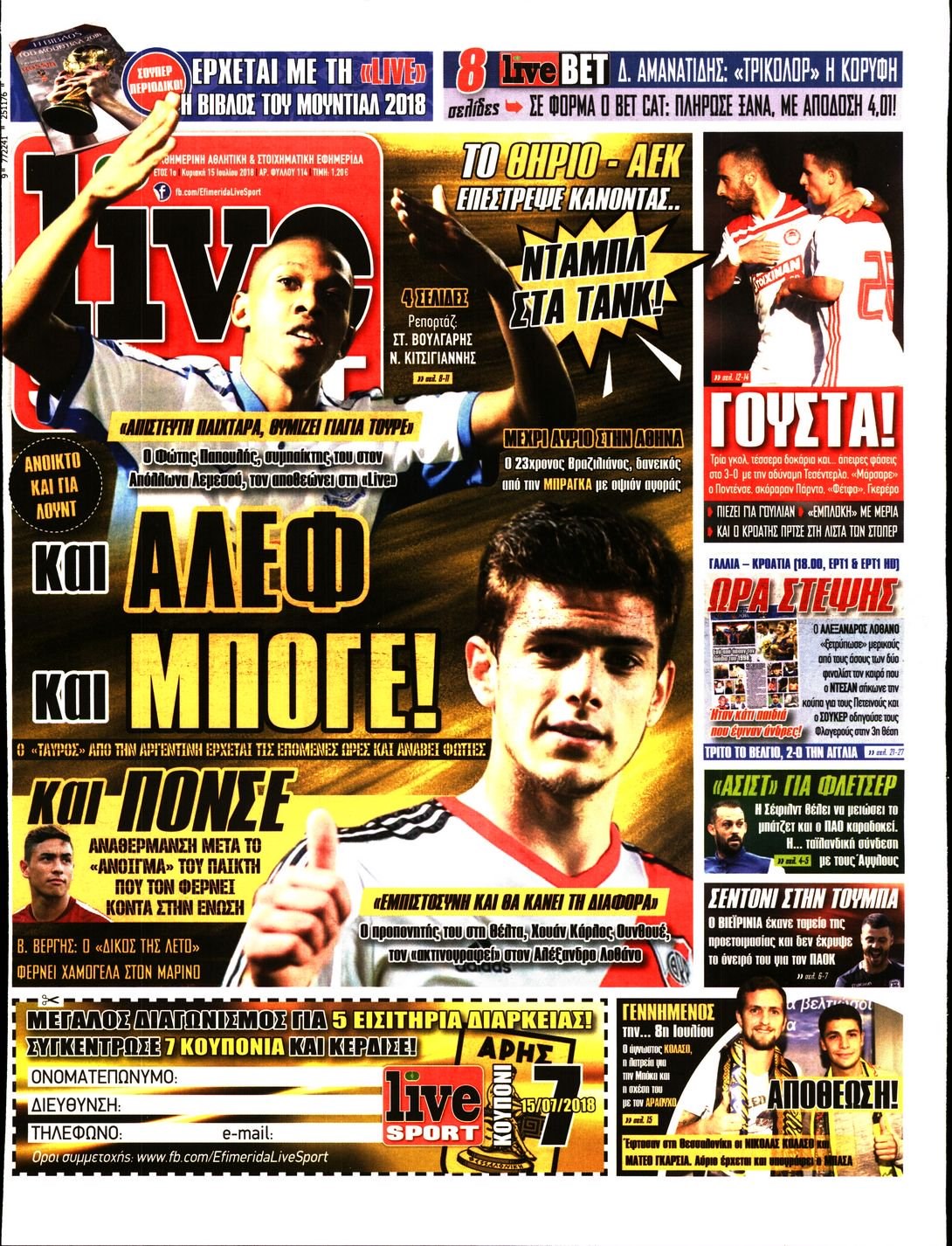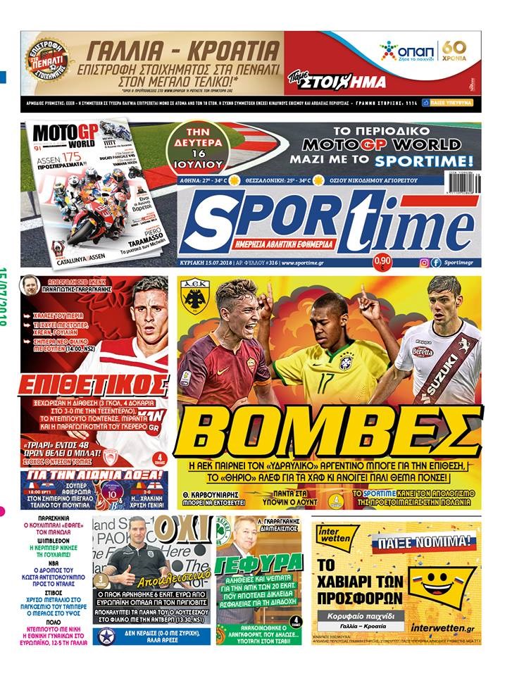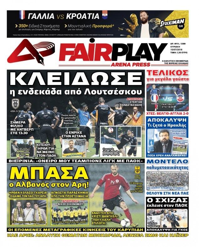 Οι αθλητικές εφημερίδες 15/7/2018 Κώστας Τεό 07:50, Κυριακή 15 Ιουλίου 2018 Media Διαβάστε τα σημερινά πρωτοσέλιδα των αθλητικών εφημερίδων: ΑΘΛΗΤΙΚΕΣ ΕΦΗΜΕΡΙΔΕΣ ΠΡΩΤΟΣΕΛΙΔΑ Μοιράσου το: σχολίασε κι εσύ (0 σχόλια) Ακολουθήστε το enikos.gr στο Google News και μάθετε πρώτοι όλες τις ειδήσεις Δείτε όλες τις τελευταίες ειδήσεις από την Ελλάδα και τον Κόσμο στο enikos.gr Ειδήσεις Ροή Ειδήσεων 3 ώρες πριν Μεσόγειος: Η διαδρομή του ρωσικού τάνκερ «Qendil» και η στοχευμένη επίθεση της Ουκρανίας με drone – Ο Πούτιν προειδοποίησε για αντίποινα 4 λεπτά πριν Αγρότες: Έκλεισαν την παρακαμπτήρια της Ιόνιας Οδού στη θέση Χαλίκι 2 ώρες πριν Εμπλοκή και αερομαχίες με οπλισμένα τουρκικά F-16 στο Αιγαίο 3 ώρες πριν Αττική: Θρίλερ με νεκρό βρέφος 5 μηνών – Κοιμόταν στο ίδιο κρεβάτι με τους γονείς του 1 ώρα πριν Πούτιν: «Ναι, είμαι ερωτευμένος» – Βίντεο από τη σπάνια προσωπική παραδοχή του 18 λεπτά πριν Αριθμολογία: Οι άνθρωποι που έχουν γεννηθεί αυτές τις 4 ημερομηνίες, συχνά παρεξηγούνται – «Η καλοσύνη τους κρύβει τεράστια δύναμη» 2 ώρες πριν Μήπως έχετε χάσει τον εαυτό σας στη σχέση σας; 7 «αθόρυβες» υποχωρήσεις που μάλλον κάνατε, χωρίς να το συνειδητοποιήσετε 1 ώρα πριν Ξεχάστε το καθάρισμα το Σαββατοκύριακο: Ο «κανόνας των 20 λεπτών» που θα σας λύσει τα χέρια 4 ώρες πριν Κουίζ για την παλιά Αθήνα: Αναγνωρίζετε την περιοχή; Έχετε περάσει 100% από εκεί 4 λεπτά πριν Αγρότες: Έκλεισαν την παρακαμπτήρια της Ιόνιας Οδού στη θέση Χαλίκι 8 λεπτά πριν Ανδρέας Λυκουρέντζος: Υπέβαλε την παραίτησή του ο πρόεδρος του ΕΛΓΑ – Δεν έγινε δεκτή από την κυβέρνηση – ΒΙΝΤΕΟ 13 λεπτά πριν Ηράκλειο: «Ιπτάμενοι» Άγιοι Βασίληδες μοίρασαν δώρα και χαμόγελα στα παιδιά στο ΠΑΓΝΗ – Δείτε βίντεο 18 λεπτά πριν Αριθμολογία: Οι άνθρωποι που έχουν γεννηθεί αυτές τις 4 ημερομηνίες, συχνά παρεξηγούνται – «Η καλοσύνη τους κρύβει τεράστια δύναμη» 25 λεπτά πριν Ρύθμιση του ΥΠΑΑΤ για τους αγρότες που δεν έλαβαν τη βασική ενίσχυση λόγω εκκρεμοτήτων στο Κτηματολόγιο ENIKOS NETWORK Το ΕΚΑΒ τιμήθηκε από την Ακαδημία Αθηνών για τα 40 χρόνια προσφοράς του Έχετε πραγματικά μεγάλη καρδιά; 10 χαρακτηριστικά όσων έχουν καλοσύνη Έρχονται νέες προσλήψεις σε Δήμο – Όλες οι λεπτομέρειες Επίδομα παιδιού: Πότε ανοίγει ξανά η πλατφόρμα για τις αιτήσεις Χαρτογραφώντας το «σημείο χωρίς επιστροφή»: Για πρώτη φορά αποκαλύπτεται με λεπτομέρεια το ακανθώδες όριο της ατμόσφαιρας τ... Η Google καταργεί τη λειτουργία «dark web report» – Πώς θα μπορούν οι χρήστες να διαγράφουν τα δεδομένα τους περισσότερα 20:37 , Παρασκευή 19 Δεκεμβρίου 2025 Don’t Forget The Lyrics: Η Έλλη Κοκκίνου υποδέχεται 4 παίκτες που θα κάνουν τα πάντα για να μη χάσουν ούτε… μισή λέξη από τους στίχους Το «Don’t Forget The Lyrics» επιστρέφει απόψε, Παρασκευή 19 Δεκεμβρίου, στις 21:00 με νέο επει... 19:31 , Παρασκευή 19 Δεκεμβρίου 2025 GNTM: Απόψε ο μεγάλος τελικός για τους 4 φιναλίστ Έπειτα από μήνες γεμάτους μόδα, δημιουργία και έντονες αναμετρήσεις, το GNTM 2025 κορυφώνεται,... 18:11 , Παρασκευή 19 Δεκεμβρίου 2025 Το σόι σου: Ο Άρης έρχεται στην Ελλάδα για τις γιορτές των Χριστουγέννων – Τι θα δούμε στο αποψινό εορταστικό επεισόδιο Ένα απολαυστικό, εορταστικό επεισόδιο της σειράς “Το σόι σου”, γεμάτο ευτράπελα αλ... 15:15 , Παρασκευή 19 Δεκεμβρίου 2025 Την Κυριακή με τη Realnews: Ό,τι και αν αγοράσεις, σκανάρεις και κερδίζεις! Την Κυριακή με τη Realnews: Ό,τι και αν αγοράσεις, σκανάρεις και κερδίζεις! Με το PADU app, το... ΤΕΛΕΥΤΑΙΕΣ ΕΙΔΗΣΕΙΣ 4 λεπτά πριν Αγρότες: Έκλεισαν 