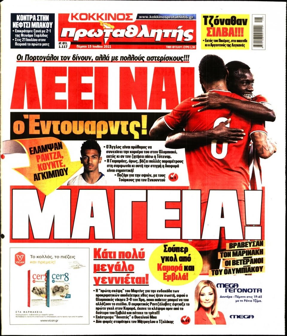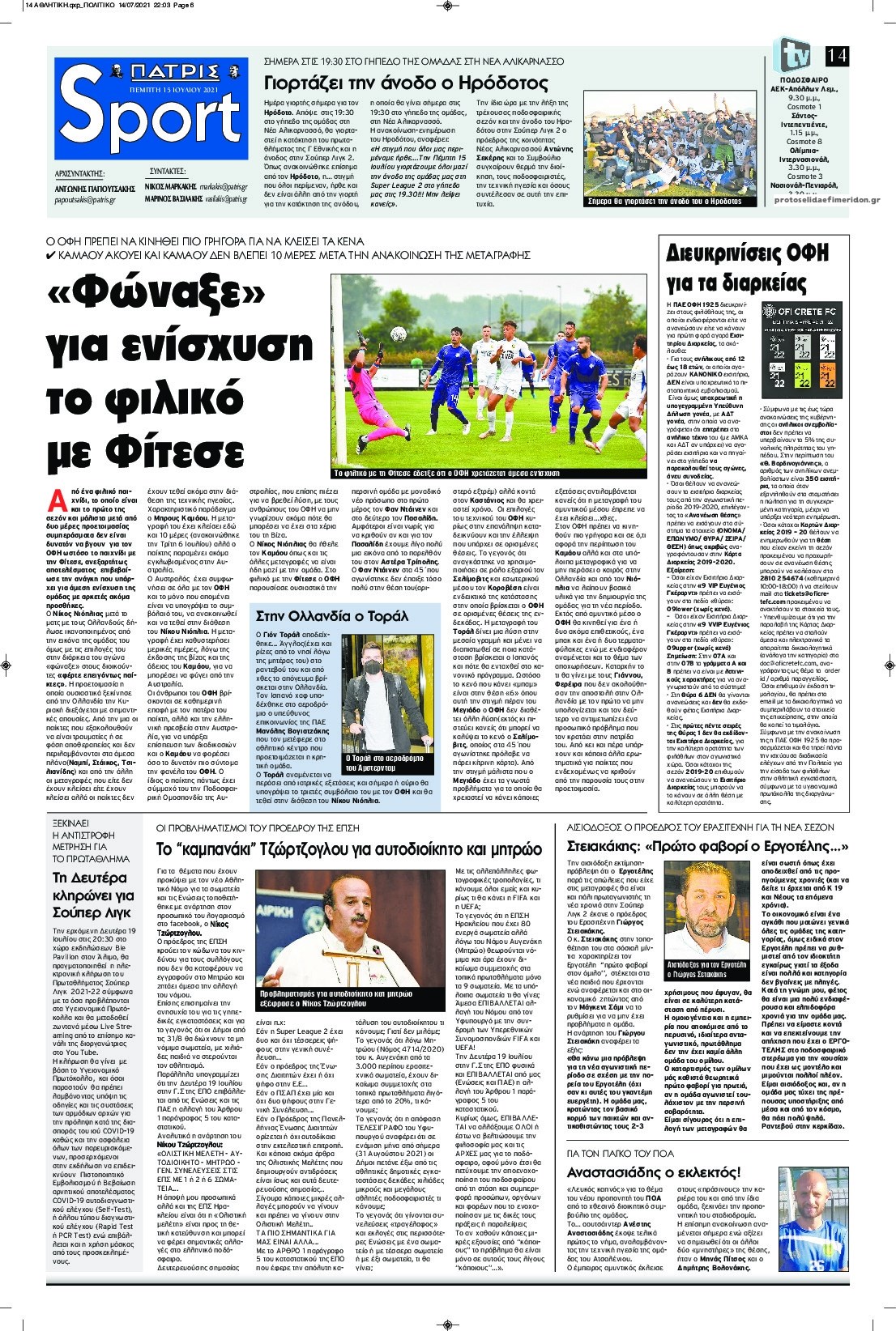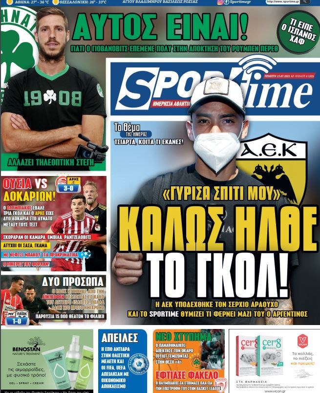 Οι αθλητικές εφημερίδες 15/7/2021 Σήφης Γαρυφαλάκης 06:21, Πέμπτη 15 Ιουλίου 2021 Media Διαβάστε τα πρωτοσέλιδα των αθλητικών εφημερίδων. ΑΘΛΗΤΙΚΕΣ ΕΦΗΜΕΡΙΔΕΣ ΕΦΗΜΕΡΙΔΕΣ ΠΡΩΤΟΣΕΛΙΔΑ ΠΡΩΤΟΣΕΛΙΔΑ ΕΦΗΜΕΡΙΔΩΝ Μοιράσου το: σχολίασε κι εσύ (0 σχόλια) Ακολουθήστε το enikos.gr στο Google News και μάθετε πρώτοι όλες τις ειδήσεις Δείτε όλες τις τελευταίες ειδήσεις από την Ελλάδα και τον Κόσμο στο enikos.gr Ειδήσεις Ροή Ειδήσεων 1 ώρα πριν Καιρός: Επιδείνωση με ισχυρές βροχές και καταιγίδες σήμερα – Πού θα εκδηλωθούν έντονα φαινόμενα 58 λεπτά πριν Ελλάδα – Κύπρος – Ισραήλ: Η νέα αμυντική συνεργασία, το κέντρο κυβερνοασφάλειας και τα νεύρα της Τουρκίας 9 ώρες πριν «Τεστ» υπομονής η χριστουγεννιάτικη έξοδος: Οι ουρές χιλιομέτρων και η απόφαση να ανοίξουν επιπλέον λωρίδες – Εν αναμονή των επόμενων κινήσεων των αγροτών 9 ώρες πριν Τραγωδία στην Τουρκία: Νεκρός ο αρχηγός του Γενικού Επιτελείου της Λιβύης – Συνετρίβη λίγο μετά την απογείωση το ιδιωτικό τζετ που τον μετέφερε – ΦΩΤΟ και ΒΙΝΤΕΟ 10 ώρες πριν Θάνατος 3χρονου στην Αλεξανδρούπολη: «Το παιδί είχε φάει το προηγούμενο βράδυ» υποστηρίζει η μητέρα του – Στο νοσοκομείο τα αδελφάκια του 3 ώρες πριν Τα ζώδια σήμερα, Τετάρτη 24 Δεκεμβρίου: Αιγόκεροι, χρειάζεται να επαναπροσδιορίσετε τη σχέση σας με τον έρωτα 3 ώρες πριν Χοληστερίνη και σάκχαρο στο αίμα: Η κατανάλωση ενός ροφήματος κάθε μέρα μπορεί να βοηθήσει στην μείωσή τους 2 ώρες πριν Οπτική ψευδαίσθηση: Μόνο αν είσαι ο Σέρλοκ Χολμς θα βρεις τον αριθμό «87» σε 7 δευτερόλεπτα 23 ώρες πριν Η Coca-Cola και ο Ελληνικός Ερυθρός Σταυρός μαζί αυτά τα Χριστούγεννα: Μια μεγάλη αγκαλιά για τους συνανθρώπους μας που έχουν ανάγκη 2 λεπτά πριν Κίνα: Επιβολή προσωρινών μέτρων κατά των επιδοτήσεων σε ευρωπαϊκά γαλακτοκομικά προϊόντα 16 λεπτά πριν Έξοδος Χριστουγέννων: Αυξημένη η κίνηση προς την Κεντρική Ελλάδα – Η εικόνα στα αγροτικά μπλόκα και οι δρόμοι που είναι ανοιχτοί 20 λεπτά πριν Χριστούγεννα: Πόσα χρήματα θα πάρουν αύριο και μεθαύριο όσοι εργαστούν 28 λεπτά πριν Ρωσία: Κατάρριψη 12 ουκρανικών drones στην περιφέρεια Τούλα – Φωτιά σε βιομηχανική εγκατάσταση 30 λεπτά πριν Φανταστική συνταγή για χριστουγεννιάτικη σαλάτα με ζουμερά ρόδια, ψητό κολοκυθάκι και λαχανικά εποχής ENIKOS NETWORK Γιατί αυξάνονται τα εμφράγματα στις γιορτές – Πώς να μειώσετε τον κίνδυνο, σύμφωνα με καρδιολόγο Το μυστικό για τις πιο τραγανές και νόστιμες πατάτες φούρνου που έχετε φάει Εφορία: Ποιες φορολογικές δηλώσεις κινδυνεύουν με «πέναλτι» εάν δεν υποβληθούν μέχρι την παραμονή της Πρωτοχρονιάς Χριστούγεννα: Μπαράζ ελέγχων για κερδοσκοπία και πλασματικές εκπτώσεις Ο Google Assistant θα παραμείνει λίγο περισσότερο για ορισμένους χρήστες Android Τεστ προσωπικότητας: Το βάζο που θα επιλέξετε αποκαλύπτει πώς λύνετε προβλήματα στη ζωή σας περισσότερα 07:28 , Τετάρτη 24 Δεκεμβρίου 2025 Οι αθλητικές μεταδόσεις 24/12/2025 Τα παιχνίδια από το Κύπελλο Εθνών Αφρικής ξεχωρίζουν στο πρόγραμμα με τις αθλητικές μεταδόσεις... 07:01 , Τετάρτη 24 Δεκεμβρίου 2025 Αυτή την Κυριακή με τη Realnews: Το μυστήριο των Χριστουγέννων – Οι γιορτές στη Νέα Υόρκη παίρνουν μια αναπάντεχη τροπή, σε ένα συγκλονιστικό θρίλερ από τη συγγραφέα Vicki Delany Αυτή την Κυριακή με τη Realnews: Το μυστήριο των Χριστουγέννων – Οι γιορτές στη Νέα Υόρκ... 05:48 , Τετάρτη 24 Δεκεμβρίου 2025 Οι οικονομικές εφημερίδες 24/12/2025 Διαβάστε τα πρωτοσέλιδα από τις οικονομικές εφημερίδες, σήμερα 24/12/2025. 05:42 , Τετάρτη 24 Δ
