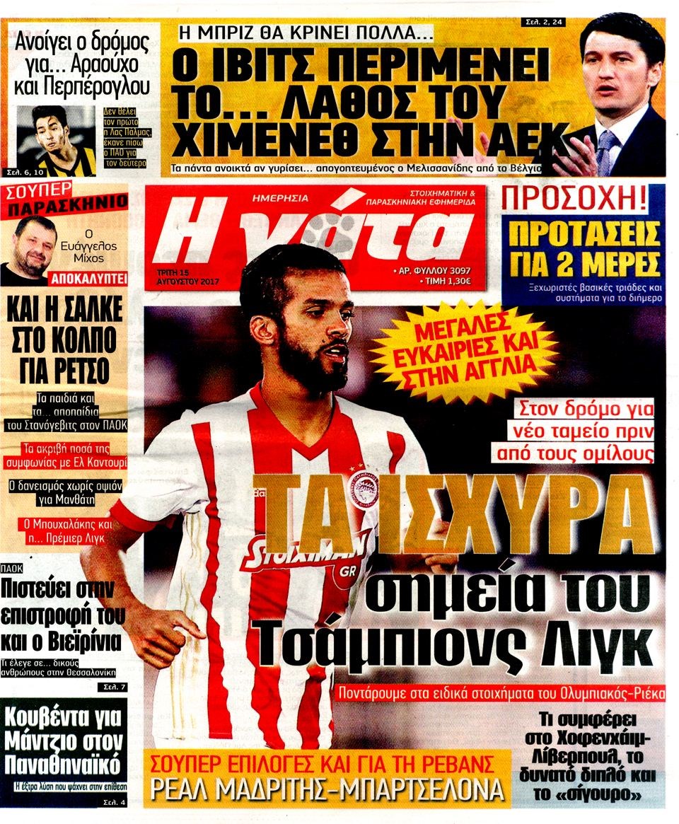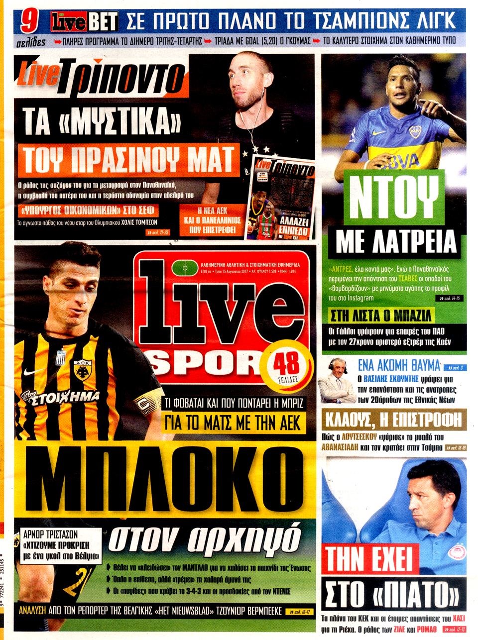 Οι αθλητικές εφημερίδες 15/8/2017 Enikos Newsroom 07:00, Τρίτη 15 Αυγούστου 2017 Media Διαβάστε τα σημερινά πρωτοσέλιδα των αθλητικών εφημερίδων: ΑΘΛΗΤΙΚΕΣ ΜΕΤΑΔΟΣΕΙΣ ΠΡΩΤΟΣΕΛΙΔΑ Μοιράσου το: σχολίασε κι εσύ (0 σχόλια) Ακολουθήστε το enikos.gr στο Google News και μάθετε πρώτοι όλες τις ειδήσεις Δείτε όλες τις τελευταίες ειδήσεις από την Ελλάδα και τον Κόσμο στο enikos.gr Ειδήσεις Ροή Ειδήσεων 3 ώρες πριν Αγρότες: Πολύωροι αποκλεισμοί στα τελωνεία Προμαχώνα, Εξοχής, Ευζώνων και Νίκης – Κλείνουν τον κόμβο Φιλώτα οι παραγωγοί στη Δυτική Μακεδονία 3 ώρες πριν Νίκος Παππάς: Ζητώ συγγνώμη για αυτό το επεισόδιο – Δεν τον γρονθοκόπησα 2 ώρες πριν Πούτιν: Η Ουκρανία δεν είναι έτοιμη για ειρηνευτικές συνομιλίες – ο ρωσικός στρατός προελαύνει σε όλα τα μέτωπα 6 λεπτά πριν Θεσσαλονίκη: Άφησαν τα ανήλικα παιδιά τους να κοιμούνται στην αυλή – Κάτοικος ειδοποίησε το «Χαμόγελο του Παιδιού» 3 ώρες πριν Τρομακτικό βίντεο: Η στιγμή της έκρηξης στο τζετ που μετέφερε τον οδηγό του NASCAR, Γκρεγκ Μπιφλ και την οικογένειά του 3 ώρες πριν Αλλαγή σελίδας για 3 ζώδια – «Μία δύσκολη περίοδος φτάνει στο τέλος της» 2 ημέρες πριν 20 χρόνια τα Χριστούγεννα ξεκινούν στα Public με μεγάλη ποικιλία σε δώρα! 2 ώρες πριν Γεμάτος νεροχύτης; 5 σοβαρές ευθύνες που «φοβίζουν» όσους αφήνουν άπλυτα πιάτα 1 ώρα πριν Ειδικός μοιράζεται 6 κόλπα για να διατηρείστε σε φόρμα με πάνω από 40 ώρες εργασίας την εβδομάδα: «Προπονηθείτε πριν από τη δουλειά, όχι μετά» 6 λεπτά πριν Μεσολόγγι: Συνελήφθησαν δύο ανήλικοι για bullying σε 14χρονο – Τον ανάγκασαν να γονατίσει και τραβούσαν βίντεο 6 λεπτά πριν Θεσσαλονίκη: Άφησαν τα ανήλικα παιδιά τους να κοιμούνται στην αυλή – Κάτοικος ειδοποίησε το «Χαμόγελο του Παιδιού» 11 λεπτά πριν Μετρό και λεωφορεία του ΟΑΣΘ: Σε 24ωρη λειτουργία για τα Σάββατα των εορτών 16 λεπτά πριν Γιώργος Καπουτζίδης: Το «Παρά Πέντε» ήταν η παρέα που δεν είχα στη μοναχική εφηβεία μου – Όσα αποκάλυψε για το Reunion 21 λεπτά πριν Πούτιν: Η χρήση των ρωσικών παγωμένων περιουσιακών στοιχείων για τη χρηματοδότηση της Ουκρανίας είναι ληστεία – Θα είχε σοβαρές επιπτώσεις ENIKOS NETWORK Κίνδυνος παραπλάνησης από διαφημίσεις οδοντικών εμφυτευμάτων Καρκίνος του πνεύμονα: Έως 8.000 ζωές μπορούν να σωθούν με την έγκαιρη διάγνωση e-ΕΦΚΑ: Νέα παράταση της προθεσμίας υποβολής για τις ΑΠΔ – Ποιες επιχειρήσεις αφορά Αγορά πολυτελών κατοικιών: Αυτές είναι οι προτεραιότητες των αγοραστών – Σε ποιες περιοχές στρέφονται και τι επιλέγουν Χαρτογραφώντας το «σημείο χωρίς επιστροφή»: Για πρώτη φορά αποκαλύπτεται με λεπτομέρεια το ακανθώδες όριο της ατμόσφαιρας τ... Η Google καταργεί τη λειτουργία «dark web report» – Πώς θα μπορούν οι χρήστες να διαγράφουν τα δεδομένα τους περισσότερα 08:00 , Παρασκευή 19 Δεκεμβρίου 2025 Την Κυριακή με τη Realnews: Δωροεπιταγή 10€ Δωροεπιταγή αξίας 10€ για αγορές άνω των 60€ από τα πολυκαταστήματα FactoryOutlet H προσφορά ι... 05:48 , Παρασκευή 19 Δεκεμβρίου 2025 Οι οικονομικές εφημερίδες 19/12/2025 Διαβάστε τα πρωτοσέλιδα από τις οικονομικές εφημερίδες, σήμερα 19/12/2025. 05:43 , Παρασκευή 19 Δεκεμβρίου 2025 Οι αθλητικές εφημερίδες 19/12/2025 Διαβάστε τα πρωτοσέλιδα από τις αθλητικές εφημερίδες, σήμερα 19/12/2025. 05:38 , Παρασκευή 19 Δεκεμβρίου 2025 Οι πολιτικές εφημερίδες 19/12/2025 Διαβάστε τα πρωτοσέλιδα από τις πολιτικές εφημερίδες, σήμερα 19/12/2025. ΤΕΛΕΥΤΑΙΕΣ ΕΙΔΗΣΕΙΣ 6 λεπτά πριν Μεσολόγγι: Συνελήφθησαν δύο ανήλικοι για bullying σε... 6 λεπτά πριν Θεσσαλονίκη: Άφησαν τα ανήλικα παιδιά τ