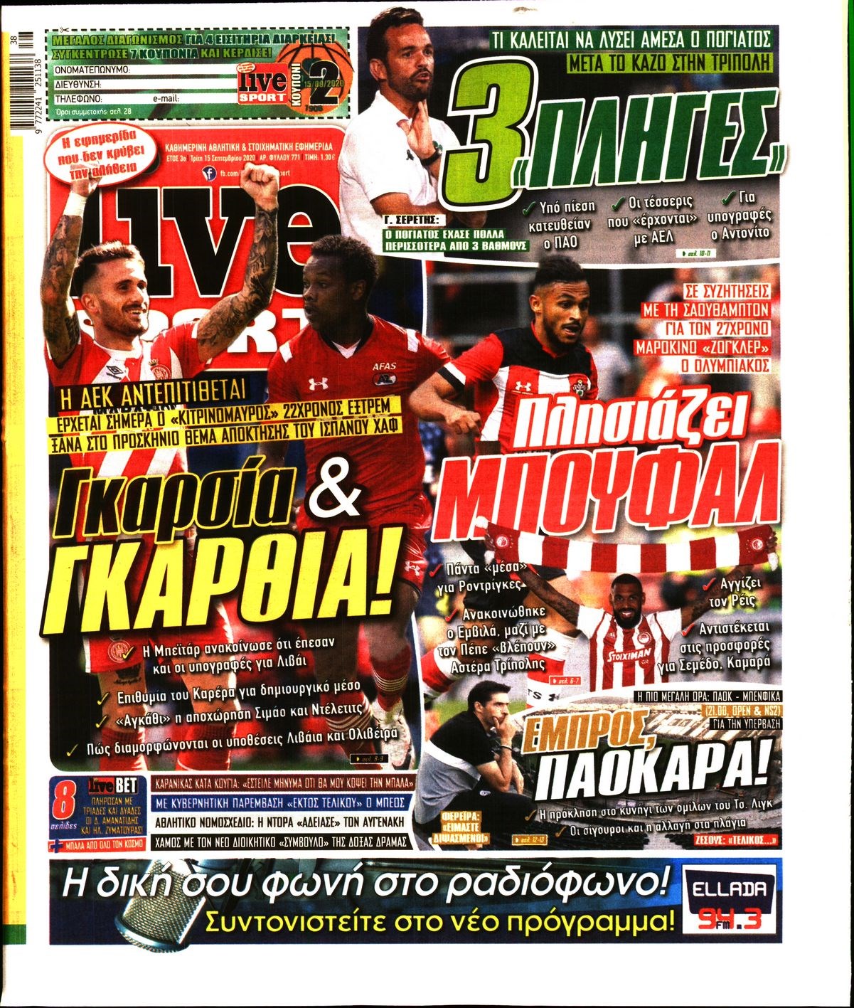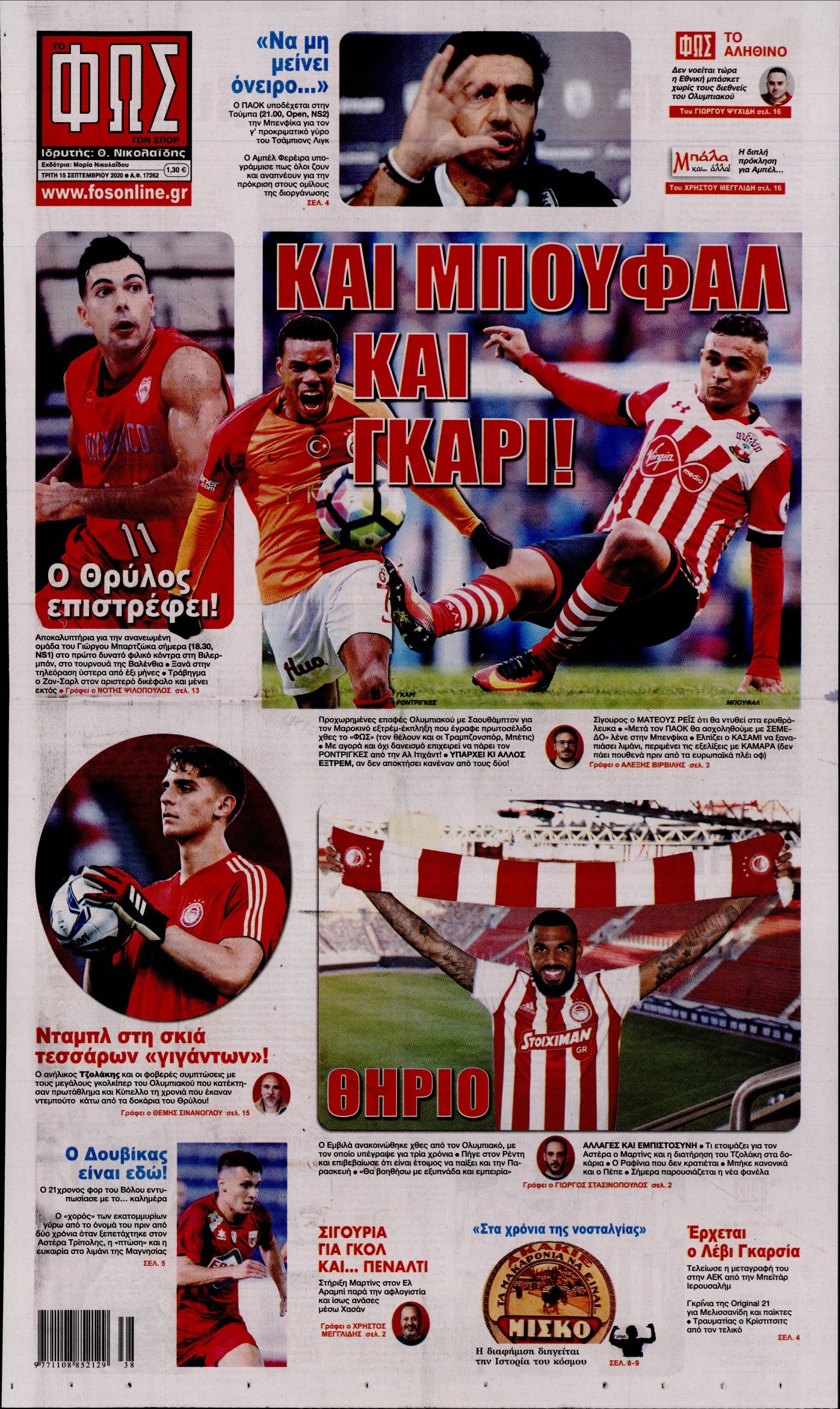 Οι αθλητικές εφημερίδες 15/9/2020 Διονύσης Νίκκας 06:50, Τρίτη 15 Σεπτεμβρίου 2020 Media Διαβάστε τα πρωτοσέλιδα των αθλητικών εφημερίδων… ΑΘΛΗΤΙΚΕΣ ΕΦΗΜΕΡΙΔΕΣ Μοιράσου το: σχολίασε κι εσύ (0 σχόλια) Ακολουθήστε το enikos.gr στο Google News και μάθετε πρώτοι όλες τις ειδήσεις Δείτε όλες τις τελευταίες ειδήσεις από την Ελλάδα και τον Κόσμο στο enikos.gr Ειδήσεις Ροή Ειδήσεων 6 ώρες πριν Χριστούγεννα στα μπλόκα οι αγρότες: Άνοιξαν στα διόδια και μοίρασαν προϊόντα στους πολίτες – Νέα σύσκεψη την Κυριακή στη Νίκαια 6 ώρες πριν Κύκλωμα διακίνησης ναρκωτικών σε σχολεία: Τηλεφωνούσαν στους ανηλίκους την ώρα του μαθήματος – Οι διάλογοι-σοκ, τα «ψευδώνυμα» και τα βασανιστήρια 6 ώρες πριν Αρχεία Επστάιν: Οι 500 σελίδες που λείπουν, τα αναπάντητα ερωτήματα και οι επώνυμοι – Τι έπεται 7 ώρες πριν Ζελένσκι: Μόνο οι ΗΠΑ και ο Τραμπ μπορούν να πιέσουν τη Ρωσία να βάλει τέλος στον πόλεμο 8 ώρες πριν Φοινικούντα: Προφυλακιστέος ο 30χρονος για συνέργεια στη διπλή δολοφονία – Και άλλα πρόσωπα στο «μικροσκόπιο» 6 ώρες πριν Αποκαλύφθηκε το άγνωστο «GPS» της αρχαιότητας – Πώς οι ναοί «φώτιζαν» τον δρόμο των ναυτικών πριν από την εφεύρεση των φάρων 7 ώρες πριν Ύπνος: Η διατροφή που μπορεί να σας βοηθήσει να κοιμάστε καλύτερα και να ζήσετε περισσότερο 8 ώρες πριν Αριθμολογία: Ο αριθμός του φύλακα αγγέλου σας, με βάση τον μήνα γέννησής σας – «Έτσι σας στέλνει σημάδια το σύμπαν» 20 ώρες πριν Enerwave: Το νέο «ρεύμα» στη λιανική ενέργειας που αλλάζει την εμπειρία του καταναλωτή 37 λεπτά πριν Σήμερα με τη Realnews: Δωροεπιταγή 10€ 17 λεπτά πριν Βενεζουέλα: Καταδικάζει την «κλοπή και την απαγωγή» δεύτερου πετρελαιοφόρου δεξαμενόπλοιου από τις ΗΠΑ 23 λεπτά πριν Σήμερα με τη Realnews: Ό,τι και αν αγοράσεις, σκανάρεις και κερδίζεις! 32 λεπτά πριν Βενεζουέλα: Προσφέρει βοήθεια στο Ιράν στην σύγκρουση με τις ΗΠΑ 47 λεπτά πριν Μαριλού Κατσαφάδου: «Η απώλεια της με έβαλε σε διαδικασία να δω διαφορετικά τη ζωή, σαν να ωρίμασα 10 χρόνια» ENIKOS NETWORK Οι γυναίκες αποκαλύπτουν το πιο ελκυστικό πράγμα που μπορεί να κάνει ένας άνδρας Ομορφιά και αντιγήρανση: Ειδικοί μιλούν για συσκευές περιποίησης του δέρματος «Πολεμική» προετοιμασία από την ευρωπαϊκή βιομηχανία ενέργειας – Η Eurelectric ζητεί «ομπρέλα» προστασίας για τις υποδομές Ακύρωση ΑΦΜ για απάτες – Ποιους βάζει στο στόχαστρο η ΑΑΔΕ Χαρτογραφώντας το «σημείο χωρίς επιστροφή»: Για πρώτη φορά αποκαλύπτεται με λεπτομέρεια το ακανθώδες όριο της ατμόσφαιρας τ... Η Google καταργεί τη λειτουργία «dark web report» – Πώς θα μπορούν οι χρήστες να διαγράφουν τα δεδομένα τους περισσότερα 04:08 , Κυριακή 21 Δεκεμβρίου 2025 Σήμερα με τη Realnews: Ό,τι και αν αγοράσεις, σκανάρεις και κερδίζεις! Σήμερα με τη Realnews: Ό,τι και αν αγοράσεις, σκανάρεις και κερδίζεις! Με το PADU app, το κορυ... 03:08 , Κυριακή 21 Δεκεμβρίου 2025 Σήμερα με τη Realnews: Instyle, μαζί Drive και Realnews Geopolitics Σήμερα με τη Realnews: Instyle, μαζί Drive και Realnews Geopolitics Instyle Η Άννα Ρεζάν, η Ch... 01:30 , Κυριακή 21 Δεκεμβρίου 2025 Άννα Βίσση: Τα… Social Media «προσκύνησαν» την «απόλυτη» για την συναυλία της στο Καλλιμάρμαρο που προβλήθηκε από το Mega Την ημέρα των γενεθλίων της Άννας Βίσση, το MEGA τίμησε τη διαχρονική παρουσία της «απόλυτης Ε... 00:00 , Κυριακή 21 Δεκεμβρίου 2025 The Voice: Η επιστροφή της Έλενας Παπαρίζου και η ατάκα του Γιώργου Μαζωνάκη μετά τις καταγγελίες Στη φάση των Cross Battles Live μπήκε το The Voice, με την Έλενα Παπαρίζου να επιστρέφει στο π... ΤΕΛΕΥΤΑΙΕΣ ΕΙΔΗΣΕΙΣ 17 λεπτά πριν Βενεζουέλα: Καταδικάζ