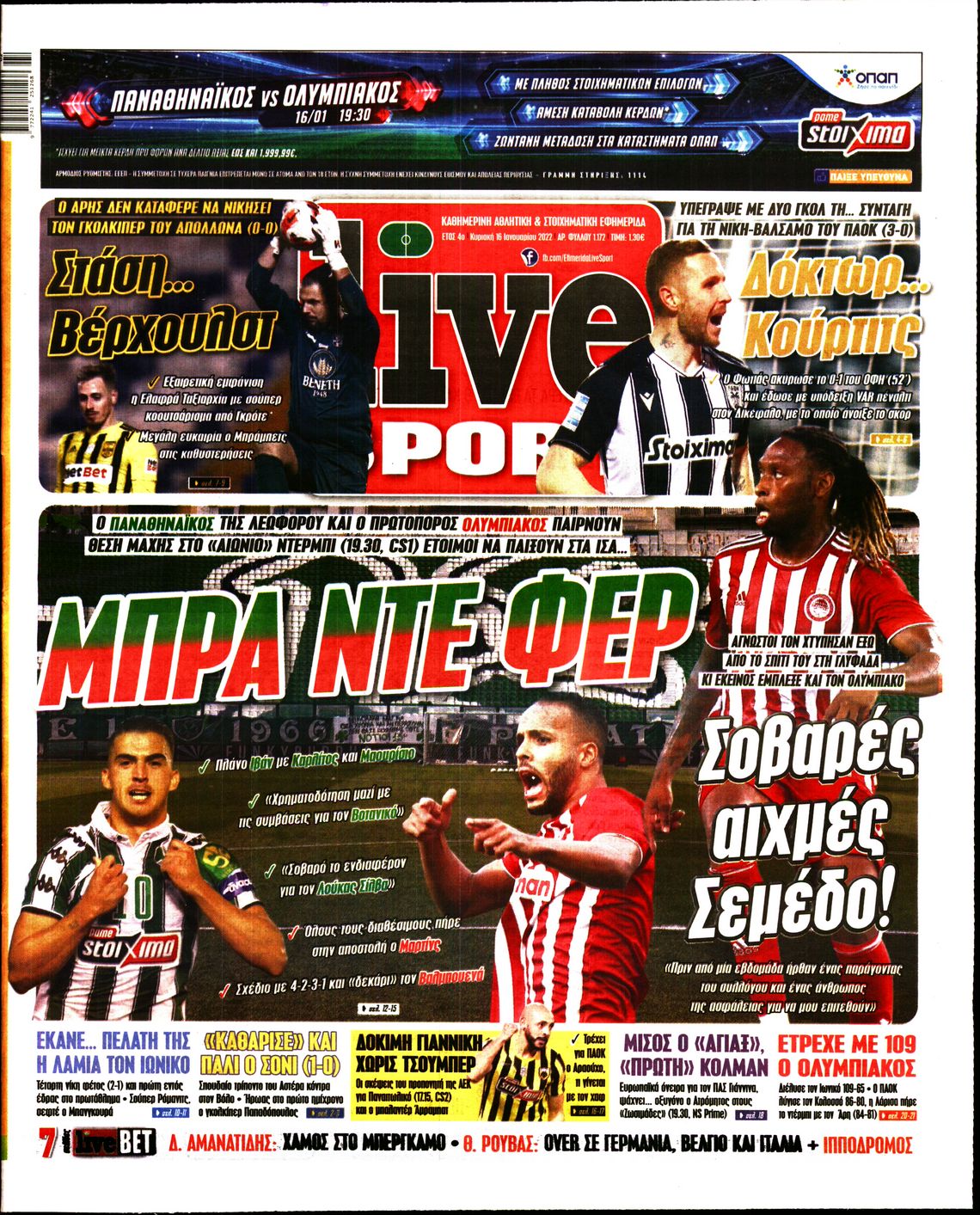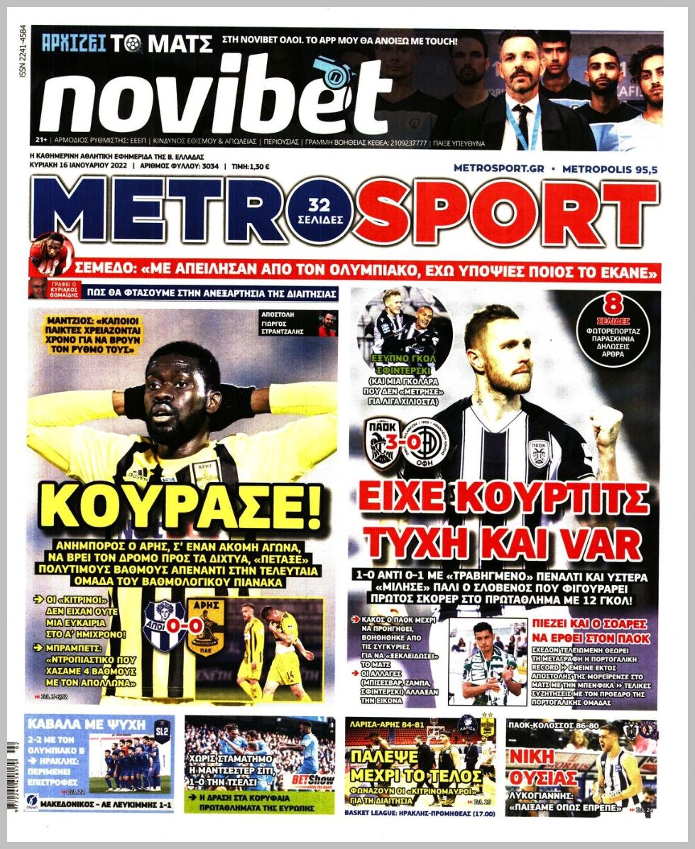 Οι αθλητικές εφημερίδες 16/1/2022 Διονύσης Νίκκας 07:45, Κυριακή 16 Ιανουαρίου 2022 Media Διαβάστε τα πρωτοσέλιδα από τις αθλητικές εφημερίδες… ΑΘΛΗΤΙΚΕΣ ΕΦΗΜΕΡΙΔΕΣ Μοιράσου το: σχολίασε κι εσύ (0 σχόλια) Ακολουθήστε το enikos.gr στο Google News και μάθετε πρώτοι όλες τις ειδήσεις Δείτε όλες τις τελευταίες ειδήσεις από την Ελλάδα και τον Κόσμο στο enikos.gr Ειδήσεις Ροή Ειδήσεων 42 λεπτά πριν Live – Έξοδος Χριστουγέννων: Αυξημένη η κίνηση στις Εθνικές Οδούς – Εικόνα αποσυμφόρησης με νέες λωρίδες κυκλοφορίας στα αγροτικά μπλόκα 60 λεπτά πριν Ο Ζελένσκι παρουσίασε νέο ειρηνευτικό σχέδιο 20 σημείων για τον τερματισμό του πολέμου στην Ουκρανία 2 ώρες πριν Τουρκία: Αναφορές για Ελληνίδα αεροσυνοδό στο αεροσκάφος που συνετρίβη με τον αρχηγό του Γενικού Επιτελείου της Λιβύης 2 ώρες πριν Καιρός: Βροχές και καταιγίδες σήμερα στο μεγαλύτερο μέρος της χώρας – Πώς θα κάνουμε Χριστούγεννα, τα δεδομένα για την Πρωτοχρονιά 2 ώρες πριν Φρίκη στη Θεσσαλονίκη: 13χρονη κατήγγειλε ότι έπεσε θύμα ομαδικού βιασμού από 6 αγόρια 2 ώρες πριν Η ζωή για 3 ζώδια γίνεται πολύ πιο εύκολη από εδώ και πέρα – «Εμπιστευτείτε τη διαίσθηση σας για να πάρετε αποφάσεις» 3 ώρες πριν Αγρότης ανακάλυψε τυχαία λείψανα δύο ανθρώπων της Εποχής του Χαλκού – Το μυστήριο πίσω από την περίεργη ταφή 3 ώρες πριν Χαμός στο διαδίκτυο με ανάρτηση μητέρας για όσους δεν έχουν παιδιά – «Κάνουν διακοπές κάθε μέρα» 1 ημέρα πριν Η Coca-Cola και ο Ελληνικός Ερυθρός Σταυρός μαζί αυτά τα Χριστούγεννα: Μια μεγάλη αγκαλιά για τους συνανθρώπους μας που έχουν ανάγκη 5 λεπτά πριν Αεροπορικό δυστύχημα στην Τουρκία: Στο μικροσκόπιο ο καταγραφέας ήχου και το μαύρο κουτί – Η αεροσυνοδός Maria Pappa ανάμεσα στα θύματα 13 λεπτά πριν Demy: «Ο χωρισμός μου ήδη ξεχάστηκε, δεν απασχολεί κανέναν» 22 λεπτά πριν Δημήτρης Κουτσούμπας: Άκουσε ηπειρώτικα κάλαντα και έσυρε τον χορό – Βίντεο 31 λεπτά πριν Κύκλωμα διακίνησης ναρκωτικών σε σχολεία: Στη φυλακή οι 12 κατηγορούμενοι 38 λεπτά πριν Γιώργος Καπουτζίδης: Το μήνυμα μετά το reunion του «Παρά Πέντε» – «Να αγκαλιαζόμαστε, να αγαπάμε, να νοιαζόμαστε…» ENIKOS NETWORK Στο επίκεντρο οι ανάγκες των ατόμων με διαβήτη-Τρεις προτάσεις προς τον ΕΟΦ Πόνος στην κοιλιά στους άνδρες: Με ποιες παθήσεις μπορεί να σχετίζεται Τραπέζι των Χριστουγέννων: Χρήσιμες οδηγίες από τον ΕΦΕΤ για τους καταναλωτές Χριστούγεννα: Πόσα χρήματα θα πάρουν αύριο και μεθαύριο οι εργαζόμενοι Ο Google Assistant θα παραμείνει λίγο περισσότερο για ορισμένους χρήστες Android Τεστ προσωπικότητας: Το βάζο που θα επιλέξετε αποκαλύπτει πώς λύνετε προβλήματα στη ζωή σας περισσότερα 10:36 , Τετάρτη 24 Δεκεμβρίου 2025 Τηλεθέαση (23/12): Ποιες πρωινές εκπομπές της ψυχαγωγικής ζώνης πήραν προβάδισμα; Με αμείωτη ένταση συνεχίστηκε η «μάχη» στην πρωινή ζώνη την Τρίτη 23 Δεκεμβρίου, όπως φαίνεται... 10:09 , Τετάρτη 24 Δεκεμβρίου 2025 Την Κυριακή με τη Realnews: Ό,τι και αν αγοράσεις, σκανάρεις και κερδίζεις! Την Κυριακή με τη Realnews: Ό,τι και αν αγοράσεις, σκανάρεις και κερδίζεις! Με το PADU app, το... 10:05 , Τετάρτη 24 Δεκεμβρίου 2025 Τηλεθέαση (23/12): Σάρωσε το reunion του «Παρά Πέντε» το βράδυ της Τρίτης Το βράδυ της Τρίτης (23/12) οι τηλεθεατές παρακολούθησαν το reunion του «Παρά Πέντε». Μάλιστα,... 08:43 , Τετάρτη 24 Δεκεμβρίου 2025 Παρά Πέντε: Όλα όσα έγιναν στο reunion της θρυλικής σειράς – Το τραγούδι των ηθοποιών και το βίντεο για τους συντελεστές που έχουν φύγει από τη ζωή Ήταν Σεπτέμβρης του 2005 όταν έκανε πρεμιέρα στο MEGA το «