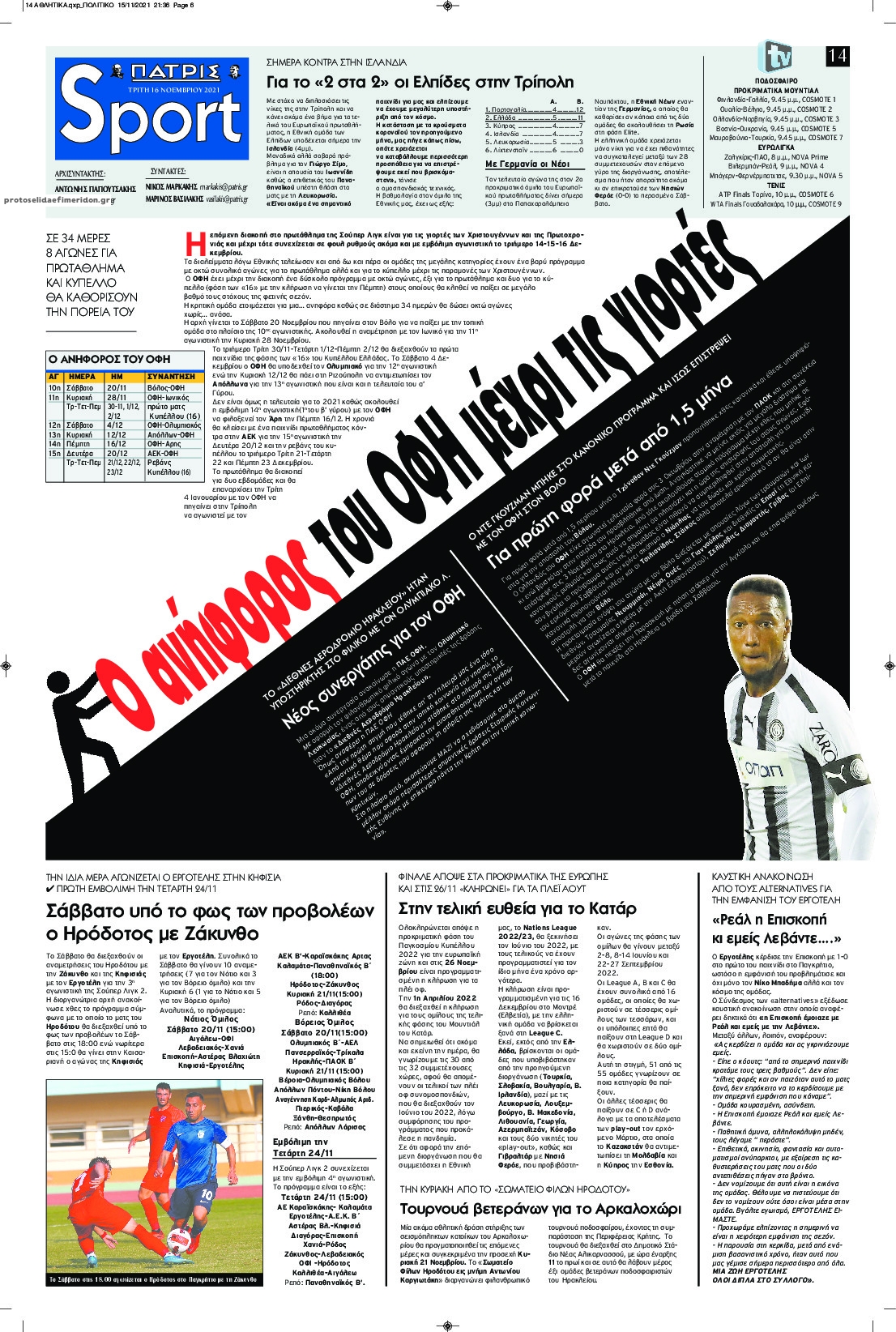 Οι αθλητικές εφημερίδες 16/11/2021 Σήφης Γαρυφαλάκης 06:29, Τρίτη 16 Νοεμβρίου 2021 Media Διαβάστε τα πρωτοσέλιδα από τις αθλητικές εφημερίδες… ΑΘΛΗΤΙΚΕΣ ΕΦΗΜΕΡΙΔΕΣ ΕΦΗΜΕΡΙΔΕΣ ΠΡΩΤΟΣΕΛΙΔΑ Μοιράσου το: Οι αθλητικές εφημερίδες 15/11/2021 Οι αθλητικές εφημερίδες 14/11/2021 Οι αθλητικές εφημερίδες 13/11/2021 σχολίασε κι εσύ (0 σχόλια) Ακολουθήστε το enikos.gr στο Google News και μάθετε πρώτοι όλες τις ειδήσεις Δείτε όλες τις τελευταίες ειδήσεις από την Ελλάδα και τον Κόσμο στο enikos.gr Ειδήσεις Ροή Ειδήσεων 1 ώρα πριν Μπλόκα: Οι αγρότες σηκώνουν τις μπάρες σε διόδια για τους εκδρομείς των Χριστουγέννων και μοιράζουν προϊόντα – Βίντεο 2 ώρες πριν Τσιάρας προς αγρότες: Τα μπλόκα και τα πείσματα δεν ωφελούν – Οι λύσεις περνούν μέσα από τον διάλογο 3 ώρες πριν Αρχεία Έπσταϊν: Οι συγκλονιστικές φωτογραφίες – Ο Μάικλ Τζάκσον, ο Μικ Τζάγκερ και ο Κέβιν Σπέισι ανάμεσα στους διάσημους που απεικονίζονται 32 λεπτά πριν Μαθητές διακινούσαν κοκαΐνη και χασίς σε σχολείο της Αττικής – 12 συλλήψεις 3 ώρες πριν Ινδία: Επτά ελέφαντες σκοτώθηκαν κατά τη σύγκρουση επιβατικού τρένου με κοπάδι 5 ώρες πριν Μία νέα «χρυσή» περίοδος αρχίζει για 3 ζώδια από σήμερα – «Μία αναπάντεχη ευκαιρία οδηγεί στην επιτυχία» 6 ώρες πριν Αγχώνεται για το χριστουγεννιάτικο δώρο που πήρε στην πλούσια σύντροφό του – «Φοβάμαι πως θα το βρει φθηνιάρικο, φοράει βραχιόλια Cartier» 3 ώρες πριν Διαιτολόγος αποκαλύπτει 9 πρωινές συνήθειες που «λιώνουν» το κοιλιακό λίπος – «Υποστηρίζουν την υγιεινή απώλεια βάρους» 4 ώρες πριν Οι 7 φράσεις που δεν λένε ποτέ οι συναισθηματικά έξυπνοι άνθρωποι κατά τη διάρκεια ενός καβγά 3 λεπτά πριν Μία ανεκμετάλλευτη πηγή θα μπορούσε να προσφέρει ανεξάντλητη ενέργεια – Οι επιστήμονες ίσως γνωρίζουν πώς να την ξεκλειδώσουν 12 λεπτά πριν Θεσσαλονίκη: Ανήλικος που είχε εξαφανιστεί βρέθηκε στο σπίτι Τούρκων μετά από αστυνομική επιχείρηση 21 λεπτά πριν Ιταλία: 384 συλλήψεις και κατάσχεση 1,4 τόνων ναρκωτικών σε μεγάλη αστυνομική επιχείρηση 29 λεπτά πριν Γερμανού για Μαζωνάκη: «Η σχέση μας μετράει 30 χρόνια – Σαφώς και έχω άποψη» 32 λεπτά πριν Μαθητές διακινούσαν κοκαΐνη και χασίς σε σχολείο της Αττικής – 12 συλλήψεις ENIKOS NETWORK Η αποχή από την αναπαραγωγή παρατείνει τη ζωή στα ζώα, σύμφωνα με μελέτη – Τι ισχύει για τους ανθρώπους; Σημαντικές επαφές στις ΗΠΑ είχε ο υπουργός Υγείας Άδωνις Γεωργιάδης Τσιάρας προς αγρότες: Έχει ικανοποιηθεί το 74% των αιτημάτων – Τα μπλόκα και τα πείσματα δεν ωφελούν MyHealth App: Τα στοιχεία για τον Προσωπικό Βοηθό Υγείας Πολίτη – Τι ερωτήματα έγιναν μέσα σε 7 ημέρες Χαρτογραφώντας το «σημείο χωρίς επιστροφή»: Για πρώτη φορά αποκαλύπτεται με λεπτομέρεια το ακανθώδες όριο της ατμόσφαιρας τ... Η Google καταργεί τη λειτουργία «dark web report» – Πώς θα μπορούν οι χρήστες να διαγράφουν τα δεδομένα τους περισσότερα 14:04 , Σάββατο 20 Δεκεμβρίου 2025 Η Realnews αυτής της Κυριακής (21/12/2025) Με τίτλο: «Ασπίδα προστασίας για την Ελλάδα» κυκλοφορεί, αυτήν την Κυριακή, η Realnews. Σημαντ... 12:53 , Σάββατο 20 Δεκεμβρίου 2025 Να μ’ αγαπάς: Το παρελθόν έρχεται στο φως – Καταιγιστικές εξελίξεις στα τελευταία επεισόδια του 2025 Ο Άγγελος αποκαλύπτεται, η Φωτεινή ανησυχεί για τον Λευτέρη και η Ζωή έρχεται αντιμέτωπη με το... 11:41 , Σάββατο 20 Δεκεμβρίου 2025 «Η αγάπη δεν χάνεται ποτέ»: Η μικρού μήκους ταινία κινουμένων σχεδίων που θέτει ερωτήματα για τη ζωή και τον θάνατο Ο θάνατος είναι ένα από τα πιο σκληρά θέματα που καλείται να διαχει