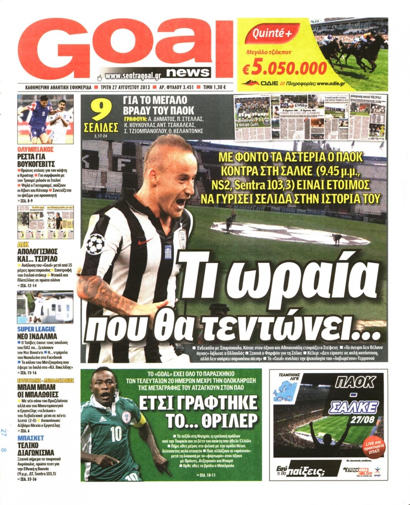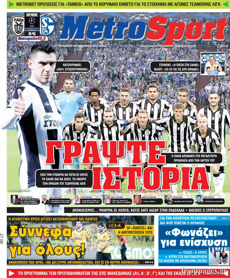 Οι αθλητικές εφημερίδες Enikos Newsroom 09:24, Τρίτη 27 Αυγούστου 2013 Media Οι αθλητικές εφημερίδες Διαβάστε τα πρωτοσέλιδα των αθλητικών εφημερίδων: ΑΘΛΗΤΙΚΕΣ ΕΦΗΜΕΡΙΔΕΣ ΕΦΗΜΕΡΙΔΕΣ ΠΡΩΤΟΣΕΛΙΔΑ Μοιράσου το: σχολίασε κι εσύ (0 σχόλια) Ακολουθήστε το enikos.gr στο Google News και μάθετε πρώτοι όλες τις ειδήσεις Δείτε όλες τις τελευταίες ειδήσεις από την Ελλάδα και τον Κόσμο στο enikos.gr Ειδήσεις Ροή Ειδήσεων 3 ώρες πριν Ακίλα Σάλεχ: «Άκυρο» το τουρκολιβυκό μνημόνιο λέει ο πρόεδρος της λιβυκής Βουλής – Ανοίγει ο διάλογος με Ελλάδα, Αίγυπτο και Τουρκία 8 ώρες πριν Αγρότες: Την Τρίτη η απόφαση για διάλογο ή κλιμάκωση των κινητοποιήσεών τους – Πώς χαρακτηρίζουν τις ανακοινώσεις Τσιάρα και οι επόμενες κινήσεις 7 ώρες πριν Τραμπ για Ουκρανία: «Είμαστε πιο κοντά σε συμφωνία από ποτέ» – «Πολυεθνική δύναμη» προτείνουν οι Ευρωπαίοι 7 ώρες πριν Κυψέλη: Η 16χρονη που μαχαίρωσε την 14χρονη είχε συλληφθεί 3 φορές στο παρελθόν – Έβριζε καθηγητές, έβαζε φωτιές σε κάδους και εκβίαζε συμμαθητές της 7 ώρες πριν Τρομοκρατική επίθεση στο Σίδνεϊ: Θλίψη για τα 15 θύματα – Οργή στην εβραϊκή κοινότητα που προειδοποιούσε επί δύο χρόνια 7 ώρες πριν Επιστήμονες ίσως έλυσαν το μυστήριο γύρω από τα Χόμπιτ – Νέα έρευνα αποκαλύπτει πώς εξαφανίστηκαν 8 ώρες πριν Ύπνος: Η αρχαία μορφή άσκησης που αποδεικνύεται αποτελεσματική στην αντιμετώπιση της αϋπνίας, σύμφωνα με μελέτη 9 ώρες πριν Αριθμολογία: Ο τυχερός σας αριθμός, ανάλογα με τον μήνα γέννησής σας 10 ώρες πριν Πώς να μην μαραίνονται γρήγορα τα κομμένα λουλούδια: Το λάθος στην τοποθέτηση του βάζου που πρέπει να αποφεύγετε 2 λεπτά πριν Δώρο Χριστουγέννων 2025: Ποιοι εργαζόμενοι το δικαιούνται – Η online εφαρμογή της ΓΣΕΕ για να το υπολογίσετε 10 λεπτά πριν Υψηλή χοληστερίνη: Γιατρός αποκαλύπτει δύο τρόπους για να την μειώσετε χωρίς φαρμακευτική αγωγή 17 λεπτά πριν Σαν σήμερα 16 Δεκεμβρίου: Τα σημαντικότερα γεγονότα της ημέρας 22 λεπτά πριν Οι οικονομικές εφημερίδες 16/12/2025 27 λεπτά πριν Οι αθλητικές εφημερίδες 16/12/2025 ENIKOS NETWORK Πότε το χρόνιο ροχαλητό να αποτελέσει ένδειξη κινδύνου για την καρδιά; Τι λένε οι ειδικοί Μάριος Θεμιστοκλέους: Το ΕΣΥ ενισχύεται, εκσυγχρονίζεται, αλλάζει ΕΒΕΠ για αγροτικές κινητοποιήσεις: Κάθε επιπλέον εβδομάδα προσθέτει περίπου 200 εκατ. ευρώ ζημιά Τι προβλέπει το νομοσχέδιο του υπουργείου Εθνικής Άμυνας – Oι αλλαγές στους μισθούς Σύγχρονος Νοστράδαμος: Προειδοποιεί για «μεγάλο γεγονός» τους επόμενους μήνες που θα συγκλονίσει τη Βρετανία και τον κόσμο Τεστ παρατηρητικότητας: Μπορείτε να βρείτε τις 3 διαφορές στις εικόνες με έναν πιγκουίνο σε 14 δευτερόλεπτα περισσότερα 05:48 , Τρίτη 16 Δεκεμβρίου 2025 Οι οικονομικές εφημερίδες 16/12/2025 Διαβάστε τα πρωτοσέλιδα από τις οικονομικές εφημερίδες, σήμερα 16/12/2025. 05:43 , Τρίτη 16 Δεκεμβρίου 2025 Οι αθλητικές εφημερίδες 16/12/2025 Διαβάστε τα πρωτοσέλιδα από τις αθλητικές εφημερίδες, σήμερα 16/12/2025. 05:38 , Τρίτη 16 Δεκεμβρίου 2025 Οι πολιτικές εφημερίδες 16/12/2025 Διαβάστε τα πρωτοσέλιδα από τις πολιτικές εφημερίδες, σήμερα 16/12/2025. 21:35 , Δευτέρα 15 Δεκεμβρίου 2025 Το Σπίτι Δίπλα Στο Ποτάμι: Η Ιουλία και ο Φωκάς μετακομίζουν στη Ρόδο – Δύο νέοι χαρακτήρες μπαίνουν στη σειρά Δύο νέοι, κομβικοί χαρακτήρες κάνουν την εμφάνισή τους αυτή την εβδομάδα στην αγαπημένη σειρά ... ΤΕΛΕΥΤΑΙΕΣ ΕΙΔΗΣΕΙΣ 10 λεπτά πριν Υψηλή χοληστερίνη: Γιατρός αποκαλύπτει δύο τρόπους... 17 λεπτά πριν Σαν σήμερα 16 Δεκεμβρίου: Τα σημαντικότερα γεγονότα...