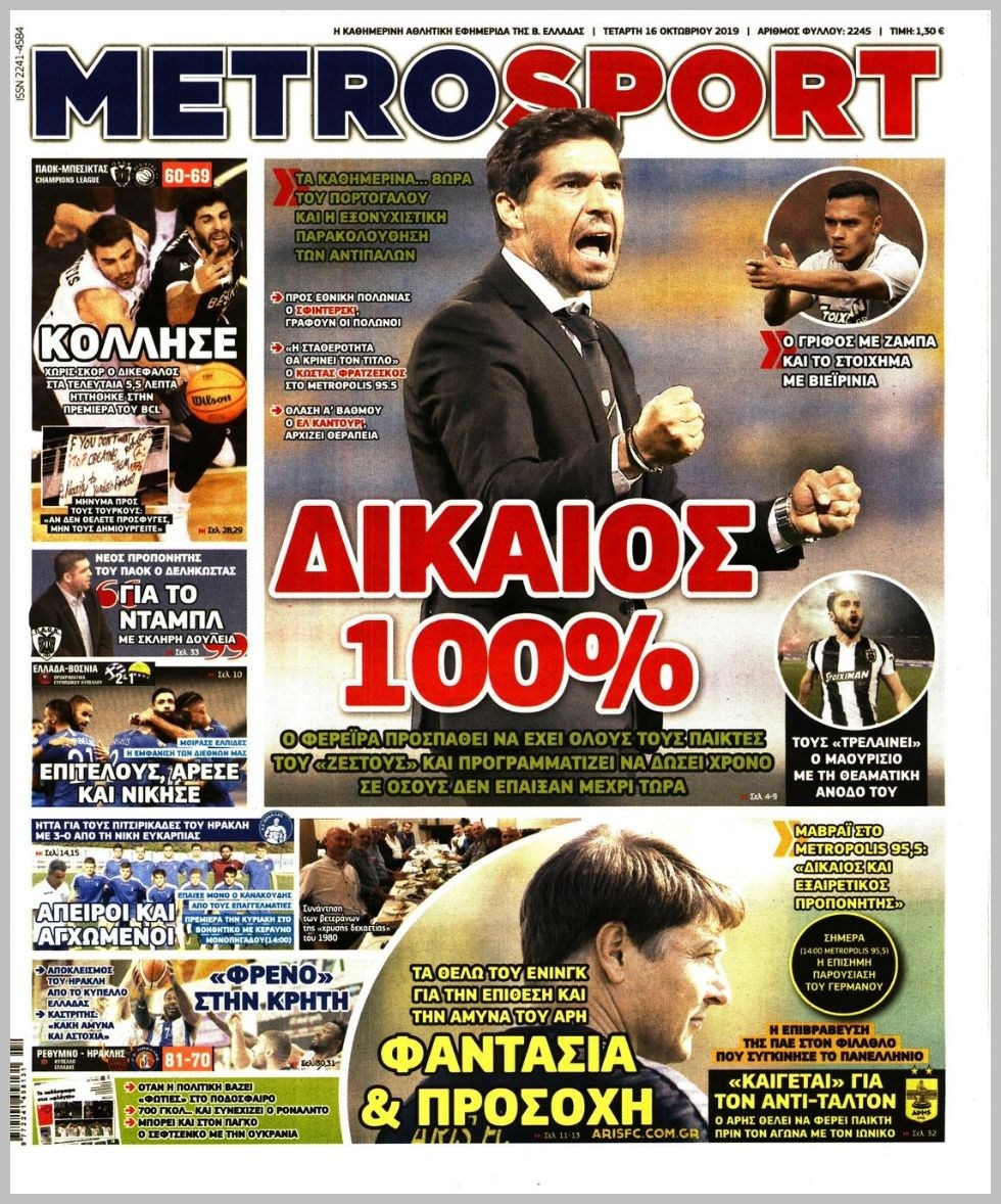 Οι αθλητικές εφημερίδες 16/10/19 Διονύσης Νίκκας 06:53, Τετάρτη 16 Οκτωβρίου 2019 Media Διαβάστε τα πρωτοσέλιδα των αθλητικών εφημερίδων… ΑΘΛΗΤΙΚΕΣ ΕΦΗΜΕΡΙΔΕΣ Μοιράσου το: σχολίασε κι εσύ (0 σχόλια) Ακολουθήστε το enikos.gr στο Google News και μάθετε πρώτοι όλες τις ειδήσεις Δείτε όλες τις τελευταίες ειδήσεις από την Ελλάδα και τον Κόσμο στο enikos.gr Ειδήσεις Ροή Ειδήσεων 4 ώρες πριν Αγρότες: «Όχι στον διάλογο, μας εμπαίζει η κυβέρνηση» – Αποφάσισαν κλιμάκωση των κινητοποιήσεων, τι θα γίνει τα Χριστούγεννα 1 ώρα πριν Αθήνα: Εξαρθρώθηκε εγκληματική οργάνωση που διακινούσε ναρκωτικά σε μορφή σοκολάτας – Δύο τράπερ ανάμεσα στους 4 συλληφθέντες – ΒΙΝΤΕΟ 2 ώρες πριν Στη φυλακή ο «Έλληνας Εσκομπάρ» και τρεις συνεργοί του για το φορτίο με την κοκαΐνη – Τι υποστήριξε στην απολογία του 3 ώρες πριν Γιώργος Μαζωνάκης: «Έχει υποστεί ένα σωρό εκβιαστικές πρακτικές – Του είπαν ότι θα του βάλουν τον συγκεκριμένο άνθρωπο να τον καταγγείλει» 1 ώρα πριν Γεωργιάδης για Κωνσταντοπούλου: «Έχει καταφέρει να ξεπεράσει ακόμη και τον εαυτό της – Το ερώτημα είναι “γιατί τώρα;”» 5 ώρες πριν Τα 5 ζώδια που θα ευνοηθούν στα οικονομικά τους το 2026 – «Τραβούν το χρήμα σαν μαγνήτες» 2 ώρες πριν Γάμος: 11 ψυχρές αλλά ευγενικές φράσεις, που λέει ένας άνδρας όταν σκέφτεται τον χωρισμό 1 ώρα πριν Σφουγγάρισμα: Η συνήθεια που θα σας βοηθήσει να διατηρήσετε το σπίτι σας καθαρό και τακτοποιημένο 1 ημέρα πριν 20 χρόνια τα Χριστούγεννα ξεκινούν στα Public με μεγάλη ποικιλία σε δώρα! 8 λεπτά πριν Δημοσκόπηση Metron Analysis: Στις 10 μονάδες η διαφορά ΝΔ-ΠΑΣΟΚ, στην 3η θέση η Πλεύση Ελευθερίας – 8 στους 10 στηρίζουν τον αγώνα των αγροτών 13 λεπτά πριν Ολυμπιακός: Τι ζήτησε από τον Άγιο Βασίλη ο Χοσέ Λουίς Μεντιλίμπαρ 19 λεπτά πριν Manifesting: Πώς να συναντήσετε τον σύντροφο της ζωής σας, ανάλογα με τον μήνα γέννησής σας 28 λεπτά πριν Hellenic Train: Καθυστερήσεις στον Προαστιακό λόγω φωτιάς κοντά στη σιδηροδρομική γραμμή 40 λεπτά πριν ΗΠΑ: Νέες φωτογραφίες από τον φάκελο Επστάιν έδωσαν στην δημοσιότητα οι Δημοκρατικοί ENIKOS NETWORK Σε περίοδο αυξημένης δραστηριότητας η γρίπη στην Ελλάδα-Μέτρα προστασίας από τον ΕΟΔΥ Σκέφτεστε συνέχεια συζητήσεις που έχετε κάνει; Τι σημαίνει αυτό, σύμφωνα με ειδικό Servicers: Μικρή μείωση στα κόκκινα δάνεια που διαχειρίζονται – Αναλυτικά τα στοιχεία ΑΑΔΕ: “Αλλάζει πρόσωπο” το Φορολογικό Μητρώο για πολίτες και επιχειρήσεις – Όλες οι λεπτομέρειες Χαρτογραφώντας το «σημείο χωρίς επιστροφή»: Για πρώτη φορά αποκαλύπτεται με λεπτομέρεια το ακανθώδες όριο της ατμόσφαιρας τ... Η Google καταργεί τη λειτουργία «dark web report» – Πώς θα μπορούν οι χρήστες να διαγράφουν τα δεδομένα τους περισσότερα 17:45 , Πέμπτη 18 Δεκεμβρίου 2025 ROUK ZOUK: Εορταστικό επεισόδιο με καλεσμένους τους πρωταγωνιστές του «Γιατί ρε πατέρα» Το Σάββατο 20 Δεκεμβρίου στις 21:00, η Ζέτα Μακρυπούλια υποδέχεται εκλεκτούς ηθοποιούς που όλο... 17:20 , Πέμπτη 18 Δεκεμβρίου 2025 Άγιος έρωτας: Η Χριστίνα εξομολογείται στον πατέρα Νικόλαο, απόψε στις 21:00 στον Alpha Η Νότα αποφασίζει να εκδικηθεί τον Πέτρο και τον Στέφανο, για χάρη του Λούη, όμως τα πράγματα ... 16:50 , Πέμπτη 18 Δεκεμβρίου 2025 Να μ’ αγαπάς: Ζωή και Φωτεινή συμφιλιώνονται ως μάνα με κόρη, απόψε στις 20:00 Η ταυτότητα του Άγγελου αποκαλύπτεται στο νέο επεισόδιο της σειράς “Να μ’ αγαπάς... 15:52 , Πέμπτη 18 Δεκεμβρίου 2025 Το Σπίτι Δίπλα Στο Ποτάμι: Το καθηλωτικό τελευταίο επεισόδιο για το 2025 απόψε στις 22:30 Καθηλώνει το σημερινό επε