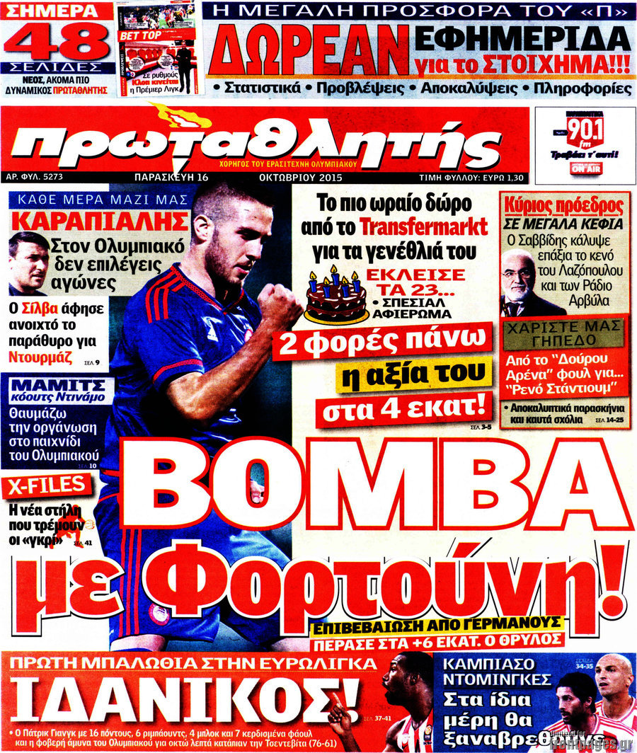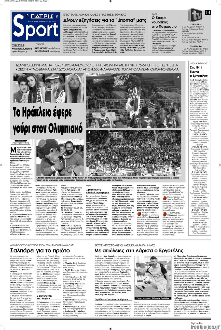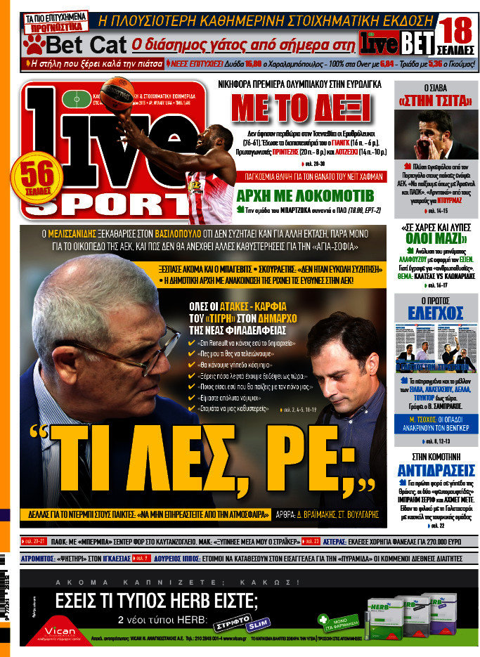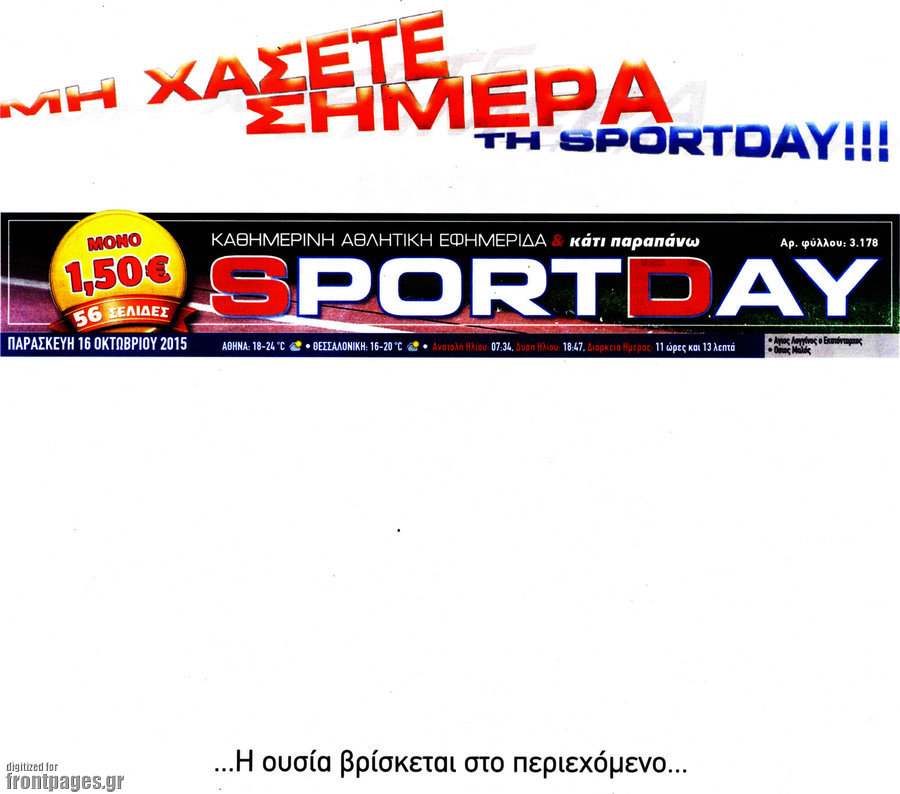 Οι αθλητικές εφημερίδες 16/10/2015 Enikos Newsroom 08:47, Παρασκευή 16 Οκτωβρίου 2015 Media Διαβάστε τα σημερινά πρωτοσέλιδα των αθλητικών εφημερίδων: ΑΘΛΗΤΙΚΕΣ ΕΦΗΜΕΡΙΔΕΣ ΠΡΩΤΟΣΕΛΙΔΑ Μοιράσου το: σχολίασε κι εσύ (0 σχόλια) Ακολουθήστε το enikos.gr στο Google News και μάθετε πρώτοι όλες τις ειδήσεις Δείτε όλες τις τελευταίες ειδήσεις από την Ελλάδα και τον Κόσμο στο enikos.gr Ειδήσεις Ροή Ειδήσεων 4 ώρες πριν Μεσόγειος: Η διαδρομή του ρωσικού τάνκερ «Qendil» και η στοχευμένη επίθεση της Ουκρανίας με drone – Ο Πούτιν προειδοποίησε για αντίποινα 29 λεπτά πριν Αγρότες: Έκλεισαν για μία ώρα την παρακαμπτήρια της Ιόνιας Οδού στη θέση Χαλίκι 2 ώρες πριν Εμπλοκή και αερομαχίες με οπλισμένα τουρκικά F-16 στο Αιγαίο 2 ώρες πριν Πούτιν: «Ναι, είμαι ερωτευμένος» – Βίντεο από τη σπάνια προσωπική παραδοχή του 33 λεπτά πριν Ανδρέας Λυκουρέντζος: Υπέβαλε την παραίτησή του ο πρόεδρος του ΕΛΓΑ, αλλά δεν έγινε δεκτή – Όλο το παρασκήνιο 43 λεπτά πριν Αριθμολογία: Οι άνθρωποι που έχουν γεννηθεί αυτές τις 4 ημερομηνίες, συχνά παρεξηγούνται – «Η καλοσύνη τους κρύβει τεράστια δύναμη» 3 ώρες πριν Μήπως έχετε χάσει τον εαυτό σας στη σχέση σας; 7 «αθόρυβες» υποχωρήσεις που μάλλον κάνατε, χωρίς να το συνειδητοποιήσετε 2 ώρες πριν Ξεχάστε το καθάρισμα το Σαββατοκύριακο: Ο «κανόνας των 20 λεπτών» που θα σας λύσει τα χέρια 5 ώρες πριν Κουίζ για την παλιά Αθήνα: Αναγνωρίζετε την περιοχή; Έχετε περάσει 100% από εκεί 1 λεπτό πριν Τραγωδία στο Βελεστίνο: Πέθανε ο αντιδήμαρχος Γιάννης Παπαϊωάννου 5 λεπτά πριν Ολυμπιακός – Βιλερμπάν: Μάτωσε στο πρόσωπο ο Παπανικολάου έπειτα από αγκωνιά του Βοτιέ – ΦΩΤΟ 13 λεπτά πριν Συνεχίζει να προκαλεί ο Μίτσκοσκι: «Για μένα το όνομα Μακεδονία είναι ιερό» 23 λεπτά πριν Ο Γιάννης Κακλέας σκηνοθετεί Βερόνικα Δαβάκη και Ιβάν Σβιτάιλο στη «Locandiera» 29 λεπτά πριν Αγρότες: Έκλεισαν για μία ώρα την παρακαμπτήρια της Ιόνιας Οδού στη θέση Χαλίκι ENIKOS NETWORK Το ΕΚΑΒ τιμήθηκε από την Ακαδημία Αθηνών για τα 40 χρόνια προσφοράς του Έχετε πραγματικά μεγάλη καρδιά; 10 χαρακτηριστικά όσων έχουν καλοσύνη Έρχονται νέες προσλήψεις σε Δήμο – Όλες οι λεπτομέρειες Επίδομα παιδιού: Πότε ανοίγει ξανά η πλατφόρμα για τις αιτήσεις Χαρτογραφώντας το «σημείο χωρίς επιστροφή»: Για πρώτη φορά αποκαλύπτεται με λεπτομέρεια το ακανθώδες όριο της ατμόσφαιρας τ... Η Google καταργεί τη λειτουργία «dark web report» – Πώς θα μπορούν οι χρήστες να διαγράφουν τα δεδομένα τους περισσότερα 20:37 , Παρασκευή 19 Δεκεμβρίου 2025 Don’t Forget The Lyrics: Η Έλλη Κοκκίνου υποδέχεται 4 παίκτες που θα κάνουν τα πάντα για να μη χάσουν ούτε… μισή λέξη από τους στίχους Το «Don’t Forget The Lyrics» επιστρέφει απόψε, Παρασκευή 19 Δεκεμβρίου, στις 21:00 με νέο επει... 19:31 , Παρασκευή 19 Δεκεμβρίου 2025 GNTM: Απόψε ο μεγάλος τελικός για τους 4 φιναλίστ Έπειτα από μήνες γεμάτους μόδα, δημιουργία και έντονες αναμετρήσεις, το GNTM 2025 κορυφώνεται,... 18:11 , Παρασκευή 19 Δεκεμβρίου 2025 Το σόι σου: Ο Άρης έρχεται στην Ελλάδα για τις γιορτές των Χριστουγέννων – Τι θα δούμε στο αποψινό εορταστικό επεισόδιο Ένα απολαυστικό, εορταστικό επεισόδιο της σειράς “Το σόι σου”, γεμάτο ευτράπελα αλ... 15:15 , Παρασκευή 19 Δεκεμβρίου 2025 Την Κυριακή με τη Realnews: Ό,τι και αν αγοράσεις, σκανάρεις και κερδίζεις! Την Κυριακή με τη Realnews: Ό,τι και αν αγοράσεις, σκανάρεις και κερδίζεις! Με το PADU app, το... ΤΕΛΕΥΤΑΙΕΣ ΕΙΔΗΣΕΙΣ 1 λεπτό πριν Τραγωδία στο Βελεστίνο: Πέθανε ο αντιδήμαρχος Γιάννης... 5 λεπτά πριν Ολυμπιακός – Βιλερμπάν: Μάτωσε στ