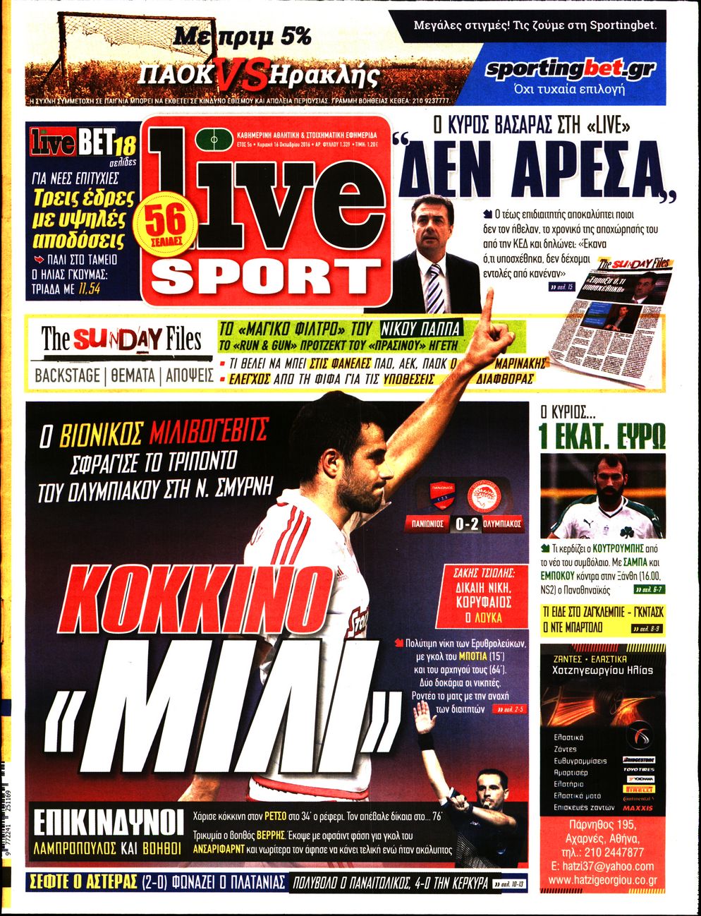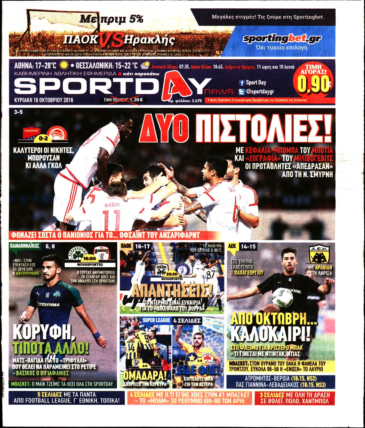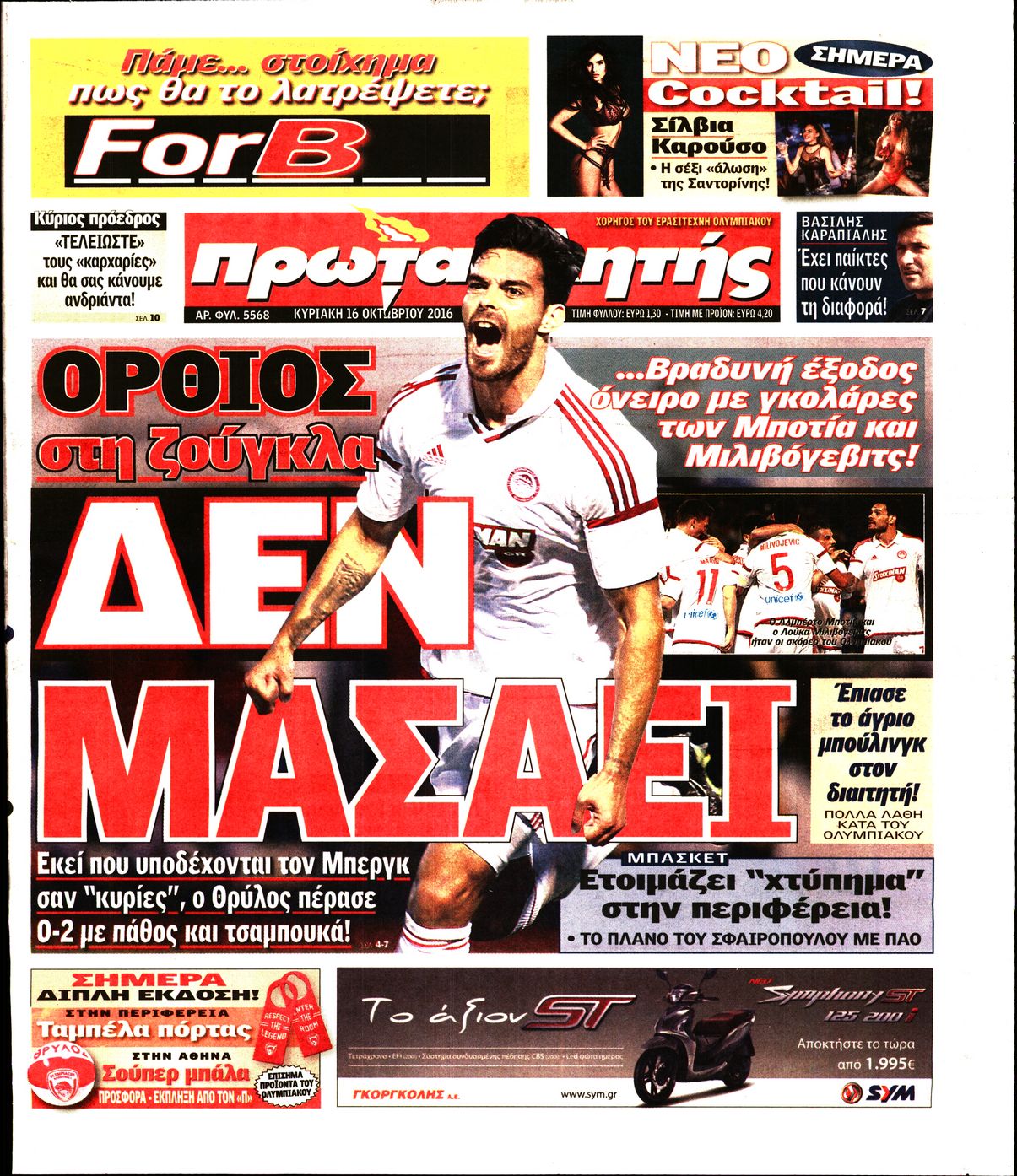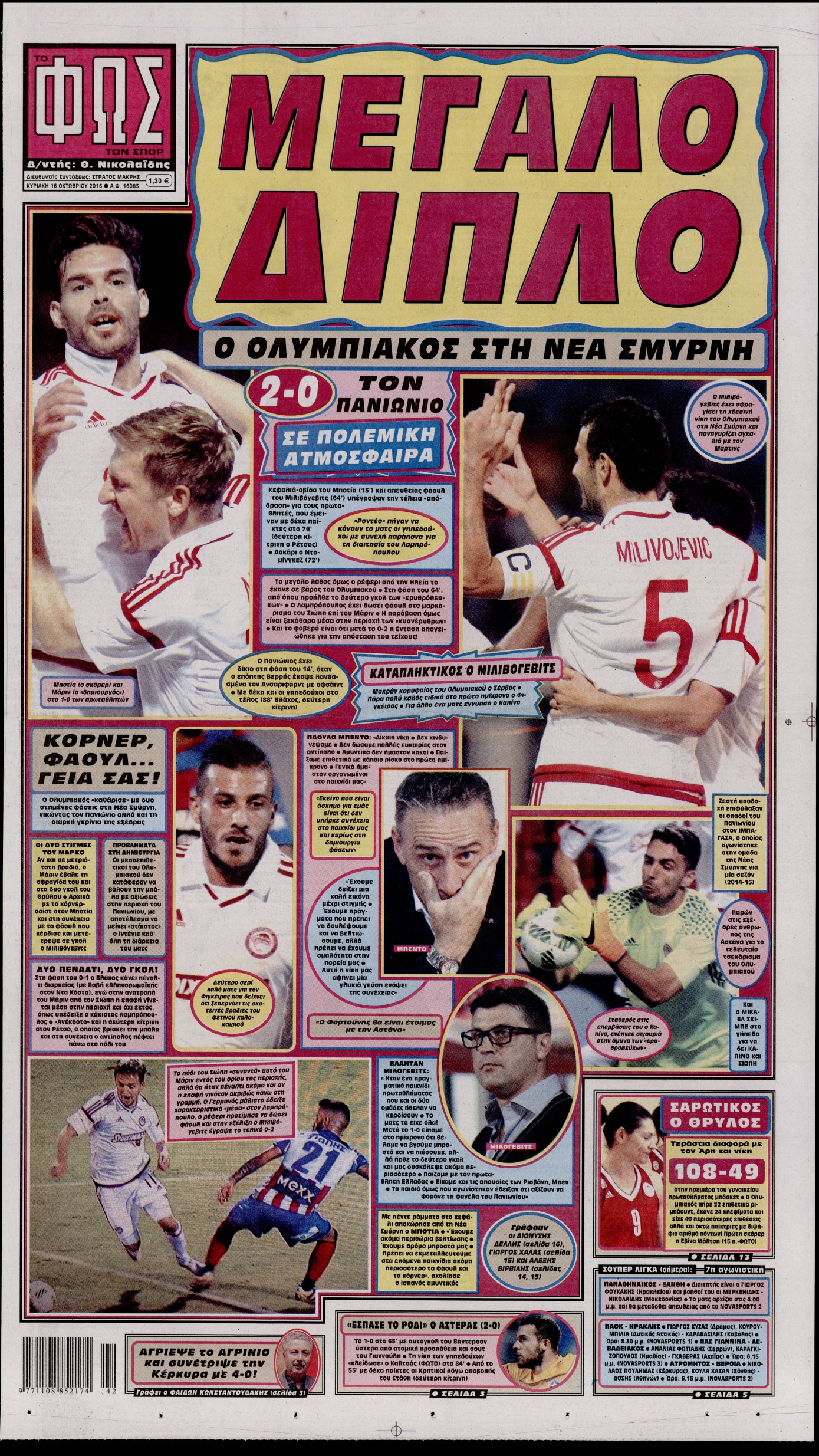 Οι αθλητικές εφημερίδες 16/10/2016 Enikos Newsroom 05:03, Κυριακή 16 Οκτωβρίου 2016 Media Διαβάστε τα σημερινά πρωτοσέλιδα των αθλητικών εφημερίδων: ΑΘΛΗΤΙΚΕΣ ΕΦΗΜΕΡΙΔΕΣ ΠΡΩΤΟΣΕΛΙΔΑ Μοιράσου το: σχολίασε κι εσύ (0 σχόλια) Ακολουθήστε το enikos.gr στο Google News και μάθετε πρώτοι όλες τις ειδήσεις Δείτε όλες τις τελευταίες ειδήσεις από την Ελλάδα και τον Κόσμο στο enikos.gr Ειδήσεις Ροή Ειδήσεων 1 ώρα πριν Νίκος Παππάς: «Είχα λάθος αντίδραση στη δική του δράση-πρόκληση – Δεν θα αναλύσω σε τι κατάσταση ήταν ο δημοσιογράφος» 20 λεπτά πριν Αλεξανδρούπολη: Πολυοργανική ανεπάρκεια λόγω υποσιτισμού η αιτία θανάτου του 3χρονου αγοριού 58 λεπτά πριν Δημοσκόπηση Pulse: Η διαφορά ΝΔ-ΠΑΣΟΚ – Με ποια κριτήρια θα ψηφίσουν οι πολίτες στις επόμενες εκλογές 1 ώρα πριν Αγρότες: Άνοιξαν τον μεθοριακό σταθμό του Προμαχώνα – Κανονικά περνούν τα φορτηγά 2 ώρες πριν Συγκλονιστικό βίντεο: Τρόμος για τουρίστες που σώθηκαν την τελευταία στιγμή από λεωφορείο που κατρακυλούσε σε φαράγγι 51 λεπτά πριν Αριθμολογία: Οι άνθρωποι που έχουν γεννηθεί αυτές τις 4 ημερομηνίες, είναι τρυφεροί και αγαπούν ανιδιοτελώς 3 ώρες πριν Οι άνθρωποι που θυμούνται τα όνειρά τους, συνήθως μοιράζονται αυτά τα 6 σπάνια χαρακτηριστικά 2 ώρες πριν Καθρέφτες μπάνιου: Το απλό κόλπο με την οδοντόκρεμα για να μην θολώνουν 13 ώρες πριν 20 χρόνια τα Χριστούγεννα ξεκινούν στα Public με μεγάλη ποικιλία σε δώρα! 4 λεπτά πριν Μαρίζα Ρίζου: «Θυμάμαι ότι ενώ ο μπαμπάς μου δεν πίνει, ερχόταν οριακά μεθυσμένος στο live από το άγχος του» 12 λεπτά πριν Δημοσκόπηση MRB: Πρώτη η ΝΔ με 22,6%, στο 10,9% το ΠΑΣΟΚ – Το 80% των πολιτών στηρίζει τους αγρότες, τι λένε για Τσίπρα και Καρυστιανού 20 λεπτά πριν Αλεξανδρούπολη: Πολυοργανική ανεπάρκεια λόγω υποσιτισμού η αιτία θανάτου του 3χρονου αγοριού 27 λεπτά πριν LEFT: Ξεκίνησαν οι διαδικασίες για τη διαγραφή του Νίκου Παππά από την ομάδα της Αριστεράς στο Ευρωκοινοβούλιο 33 λεπτά πριν Λεωφόρος Αλεξάνδρας: Απειλή για βόμβα έξω από κολέγιο – Στο σημείο το ΤΕΕΜ ENIKOS NETWORK Αϋπνία: Το κόλπο που θα σας βοηθήσει να κοιμηθείτε απόψε – Είναι απλό και έχει αποτέλεσμα 2,6 εκατομμύρια πολίτες έχουν ήδη εμβολιαστεί κατά της γρίπης Πώς θα γίνει η πληρωμή αγροτεμαχίων έως 20 στρέμματα παρά τα ζητήματα ΚΑΕΚ ΟΠΕΚΕΠΕ – ΕΛΓΑ: Ολοκληρώθηκαν πληρωμές 487,9 εκατ. ευρώ – Θα καταβληθούν ακόμα 600 εκατ. έως τις 31 Δεκεμβρίου Χαρτογραφώντας το «σημείο χωρίς επιστροφή»: Για πρώτη φορά αποκαλύπτεται με λεπτομέρεια το ακανθώδες όριο της ατμόσφαιρας τ... Η Google καταργεί τη λειτουργία «dark web report» – Πώς θα μπορούν οι χρήστες να διαγράφουν τα δεδομένα τους περισσότερα 21:14 , Τετάρτη 17 Δεκεμβρίου 2025 Παιχνίδια Εκδίκησης: Θα καταφέρει ο Χρήστος να κλονίσει την εμπιστοσύνη της Μάγιας απέναντι στον Άγη; Τα «Παιχνίδια Εκδίκησης» έρχονται απόψε στις 22:30, στον Αντ1, με το τελευταίο επεισόδιο της χ... 20:57 , Τετάρτη 17 Δεκεμβρίου 2025 Άγιος Έρωτας: Η Χλόη καταθέτει εναντίον του πατέρα της και ο Χάρης αποκαλύπτει στον Κλεάνθη ότι δεν είναι ο βιολογικός του πατέρας. Γεμάτο αποκαλύψεις είναι το νέο επεισόδιο της σειράς “Άγιος Έρωτας” απόψε στις 21:... 20:15 , Τετάρτη 17 Δεκεμβρίου 2025 Η ανακοίνωση της ΕΣΗΕΑ για την επίθεση του Ευρωβουλευτή Νίκου Παππά κατά του δημοσιογράφου Νίκου Γιαννόπουλου «Το Δ.Σ. της ΕΣΗΕΑ καταδικάζει απερίφραστα την ενέργεια του Ευρωβουλευτή του ΣΥΡΙΖΑ Νίκου Παππ... 12:35 , Τετάρτη 17 Δεκεμβρίου 2025 Μίρκα Παπακωνσταντίνου: «Δεν ήμουν αισιόδοξη για τα νούμερα – Είμαι ρεα