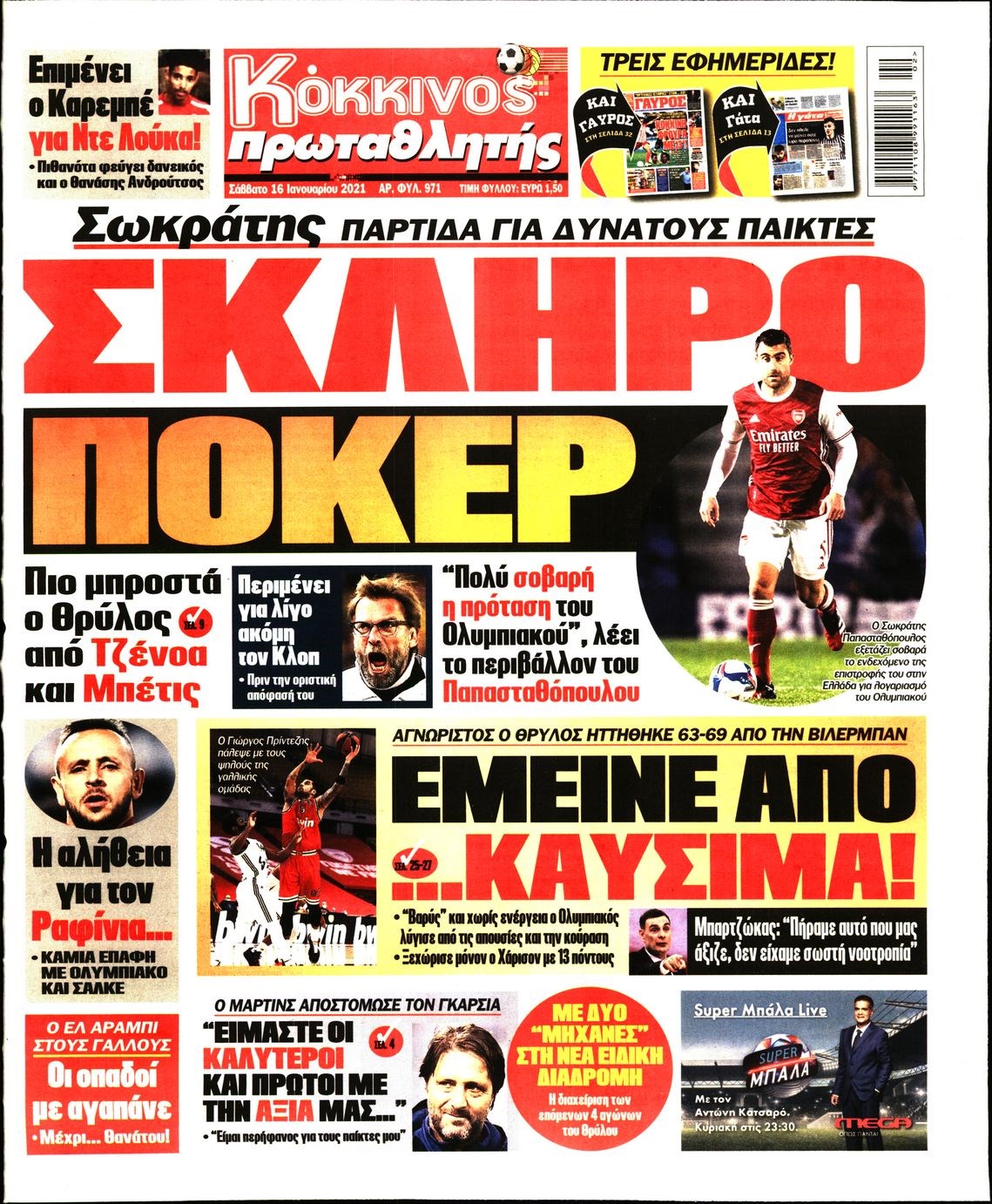Οι αθλητικές εφημερίδες 16/1/2021 Διονύσης Νίκκας 07:56, Σάββατο 16 Ιανουαρίου 2021 Media Διαβάστε τα πρωτοσέλιδα των αθλητικών εφημερίδων… ΑΘΛΗΤΙΚΕΣ ΕΦΗΜΕΡΙΔΕΣ Μοιράσου το: σχολίασε κι εσύ (0 σχόλια) Ακολουθήστε το enikos.gr στο Google News και μάθετε πρώτοι όλες τις ειδήσεις Δείτε όλες τις τελευταίες ειδήσεις από την Ελλάδα και τον Κόσμο στο enikos.gr Ειδήσεις Ροή Ειδήσεων 3 ώρες πριν Χριστούγεννα στα μπλόκα: Επιμένουν στις κινητοποιήσεις τους οι αγρότες – Ανοίγουν τα διόδια το Σαββατοκύριακο 4 ώρες πριν Ουκρανία: Η άνευ προηγουμένου επίθεση σε ρωσικό τάνκερ στη Μεσόγειο και το μήνυμα προς στον Πούτιν – Το «μακρύ χέρι» του Κιέβου 3 ώρες πριν Πούτιν: Τα μηνύματα σε Ευρώπη και ΝΑΤΟ από το μαραθώνιο «σόου» του – Η απαίτηση για «σεβασμό» και η ειρήνη «με τους όρους» της Μόσχας 4 ώρες πριν Τραμπ: Δεν αποκλείει την πιθανότητα ενός πολέμου στη Βενεζουέλα – «Ο Μαδούρο ξέρει καλύτερα από τον καθένα τι ακριβώς θέλω» 4 ώρες πριν Συνεχίζει να προκαλεί ο Μίτσκοσκι: «Για μένα το όνομα Μακεδονία είναι ιερό» 3 ώρες πριν Ανακαλύφθηκαν αρχαία χρυσά νομίσματα 2.200 ετών που απεικονίζουν τον θεό Απόλλωνα – Η άγνωστη σύνδεση με τον Φίλιππο Β΄ της Μακεδονίας 4 ώρες πριν Ύπνος: Μια κρυφή κατάσταση του εγκεφάλου πριν από τον ύπνο μπορεί να είναι το “κλειδί” για υψηλή ευφυΐα και δημιουργικότητα 5 ώρες πριν Αριθμολογία: Οι άνθρωποι που έχουν γεννηθεί αυτές τις 4 ημερομηνίες, συχνά παρεξηγούνται – «Η καλοσύνη τους κρύβει τεράστια δύναμη» 6 ώρες πριν Ξεχάστε το καθάρισμα το Σαββατοκύριακο: Ο «κανόνας των 20 λεπτών» που θα σας λύσει τα χέρια 11 λεπτά πριν Πρόταση γάμου στο ΣΕΦ κατά την διάρκεια του αγώνα Ολυμπιακός-Βιλερμπάν – Δείτε βίντεο 26 λεπτά πριν Euroleague: Επέστρεψε στις νίκες ο Ολυμπιακός, πήρε την ματσάρα της χρονιάς η Μπάρτσα – Τα αποτελέσματα και η βαθμολογία 41 λεπτά πριν Συρία: Μαζικά πλήγματα των ΗΠΑ σε θέσεις του Ισλαμικού Κράτους – Χέγκσεθ: «Δεν είναι αρχή πολέμου, είναι μια δήλωση εκδίκησης» για το θάνατο των στρατιωτών μας 53 λεπτά πριν Ουκρανία: Ολοκληρώθηκαν οι συνομιλίες με τους Αμερικανούς κι Ευρωπαίους διαπραγματευτές 1 ώρα πριν Μπαρτσελόνα – Μπασκόνια 134-124: Οι «μπλαουγκράνα» πήραν το ματς της χρονιάς ύστερα από τρεις παρατάσεις ENIKOS NETWORK Το ΕΚΑΒ τιμήθηκε από την Ακαδημία Αθηνών για τα 40 χρόνια προσφοράς του Έχετε πραγματικά μεγάλη καρδιά; 10 χαρακτηριστικά όσων έχουν καλοσύνη Αναστολή μέτρων αναγκαστικής εκτέλεσης για κτηνοτρόφους που πλήττονται από την ευλογιά των αιγοπροβάτων Πλήρης επάρκεια προϊόντων στις λαϊκές της Αττικής, παρά τις αγροτικές κινητοποιήσεις – Τι απαντούν οι πωλητές Χαρτογραφώντας το «σημείο χωρίς επιστροφή»: Για πρώτη φορά αποκαλύπτεται με λεπτομέρεια το ακανθώδες όριο της ατμόσφαιρας τ... Η Google καταργεί τη λειτουργία «dark web report» – Πώς θα μπορούν οι χρήστες να διαγράφουν τα δεδομένα τους περισσότερα 22:42 , Παρασκευή 19 Δεκεμβρίου 2025 Γιώργος Γιαννόπουλος για “Το σόι σου”: “Είναι ευτυχία και ευλογία αυτή η σειρά” «Είναι ευτυχία και ευλογία η συγκυρία αυτής της σειράς», θα πει ο Γιώργος Γιαννόπουλος -ο αγαπ... 20:37 , Παρασκευή 19 Δεκεμβρίου 2025 Don’t Forget The Lyrics: Η Έλλη Κοκκίνου υποδέχεται 4 παίκτες που θα κάνουν τα πάντα για να μη χάσουν ούτε… μισή λέξη από τους στίχους Το «Don’t Forget The Lyrics» επιστρέφει απόψε, Παρασκευή 19 Δεκεμβρίου, στις 21:00 με νέο επει... 19:31 , Παρασκευή 19 Δεκεμβρίου 2025 GNTM: Απόψε ο μεγάλος τελικός για τους 4 φιναλίστ Έπειτα από μήνες γεμάτους μόδα