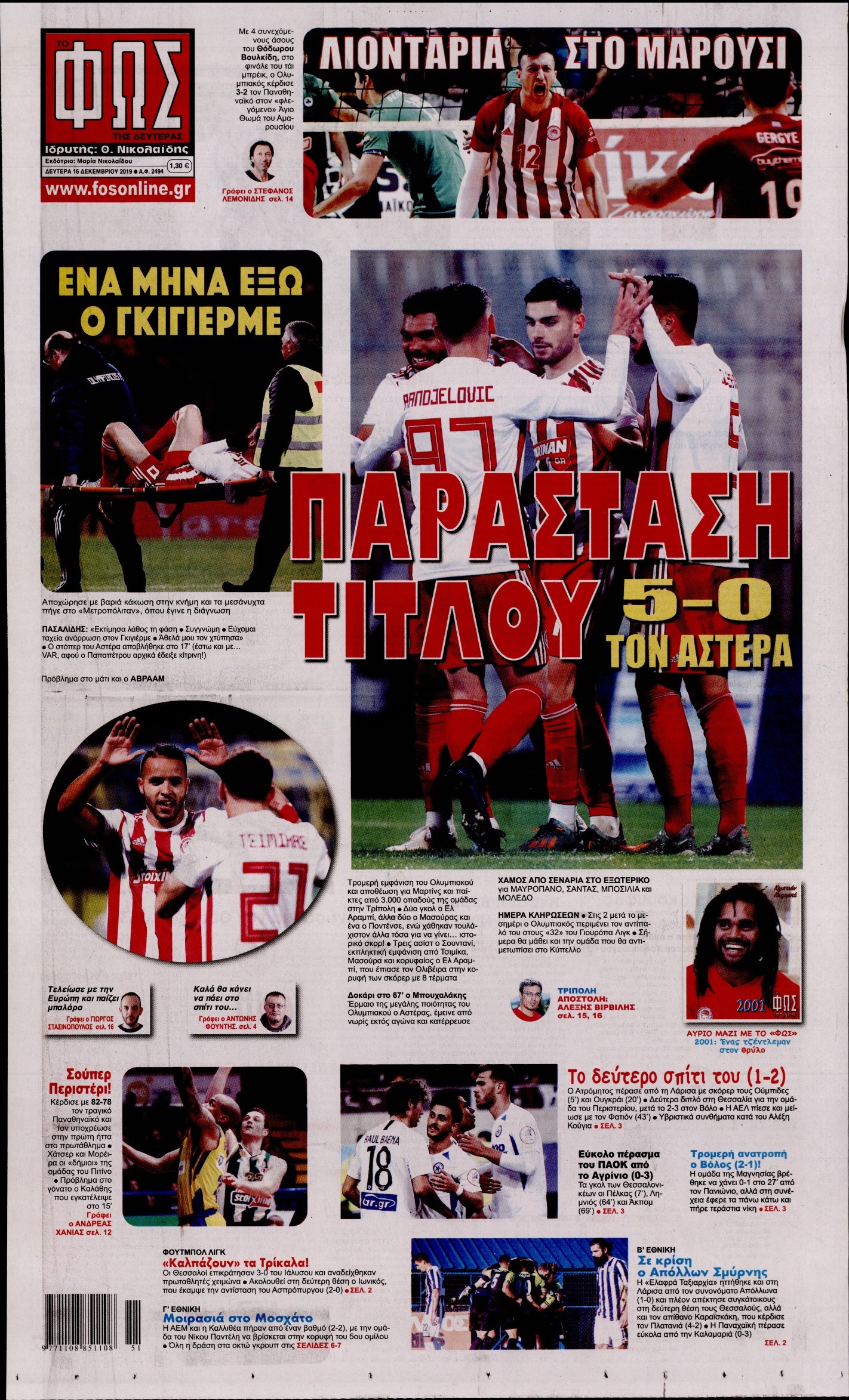 Οι αθλητικές εφημερίδες 16/12/19 Διονύσης Νίκκας 06:52, Δευτέρα 16 Δεκεμβρίου 2019 Media Διαβάστε τα πρωτοσέλιδα των αθλητικών εφημερίδων… ΑΘΛΗΤΙΚΕΣ ΕΦΗΜΕΡΙΔΕΣ ΠΡΩΤΟΣΕΛΙΔΑ Μοιράσου το: σχολίασε κι εσύ (0 σχόλια) Ακολουθήστε το enikos.gr στο Google News και μάθετε πρώτοι όλες τις ειδήσεις Δείτε όλες τις τελευταίες ειδήσεις από την Ελλάδα και τον Κόσμο στο enikos.gr Ειδήσεις Ροή Ειδήσεων 4 ώρες πριν Εκτός ευρωομάδας ΣΥΡΙΖΑ ο Νίκος Παππάς μετά την επίθεση στον δημοσιογράφο Νίκο Γιαννόπουλο – Η μήνυση και οι νέες δηλώσεις 4 ώρες πριν «Αγριεύουν» οι αγρότες: «Δεν συντρέχει λόγος συνάντησης με τον πρωθυπουργό» – Ώρα αποφάσεων στη σύσκεψη της Πέμπτης 4 ώρες πριν Κυψέλη: Χωρίς την οικογένειά της δίπλα της απολογήθηκε η 16χρονη – «Της είχε επιτεθεί κάποιος για να την βιάσει, φοβήθηκε και κυκλοφορούσε με μαχαίρι» 4 ώρες πριν Politico: Το πρόβλημα της Ευρώπης δεν είναι το Βέλγιο αλλά ο Ντόναλντ Τραμπ 5 ώρες πριν Αλεξανδρούπολη: Πολυοργανική ανεπάρκεια λόγω υποσιτισμού η αιτία θανάτου του 3χρονου αγοριού 4 ώρες πριν Μυστήριο με τεράστιες κυκλικές πέτρες 200 κιλών – Ανακαλύφθηκαν τυχαία κατά τη διάρκεια οδικών έργων και κανείς δεν ξέρει από πού προέρχονται 5 ώρες πριν Ύπνος: Ειδικός εξηγεί τον πραγματικό λόγο που ξυπνάτε στις 4 τα ξημερώματα – Ο ρόλος των ορμονών και του κιρκάδιου ρυθμού 6 ώρες πριν Αριθμολογία: Οι άνθρωποι που έχουν γεννηθεί αυτές τις 4 ημερομηνίες, είναι τρυφεροί και αγαπούν ανιδιοτελώς 17 ώρες πριν 20 χρόνια τα Χριστούγεννα ξεκινούν στα Public με μεγάλη ποικιλία σε δώρα! 6 λεπτά πριν Σουδάν: Επιδρομή drone σε χωριό του Νότιου Κορντοφάν – Οκτώ νεκροί 22 λεπτά πριν Αλ Τσαντίρι Νιουζ: Η κόρη της Πάολα στο κοινό – Η ατάκα Λαζόπουλου που την έκανε να «κοκκινήσει» 36 λεπτά πριν Ρωσία: Ουκρανικές δυνάμεις έπληξαν πλοίο στο λιμάνι του Ροστόφ – Αναφορές για θύματα 52 λεπτά πριν Βρυξέλλες: Νυχτερινό… μπλόκο αγροτών μπροστά από το κτίριο της Ευρωπαϊκής Επιτροπής – Πάνω από 100 τρακτέρ απέκλεισαν την λεωφόρο 1 ώρα πριν Euroleague: Απρόσμενη ήττα για την Μονακό του Βασίλη Σπανούλη – Η βαθμολογία μετά το τέλος της 16ης αγωνιστικής ENIKOS NETWORK Αϋπνία: Το κόλπο που θα σας βοηθήσει να κοιμηθείτε απόψε – Είναι απλό και έχει αποτέλεσμα 2,6 εκατομμύρια πολίτες έχουν ήδη εμβολιαστεί κατά της γρίπης ΕΛΣΤΑΤ: Τι δείχνουν τα νέα στοιχεία για τις ηλεκτρονικές παραγγελίες των επιχειρήσεων ΚΕΠΕ: Οι 3 διακριτές συμβολές των ΜμΕ και της μεταποίησης στην ελληνική οικονομία Χαρτογραφώντας το «σημείο χωρίς επιστροφή»: Για πρώτη φορά αποκαλύπτεται με λεπτομέρεια το ακανθώδες όριο της ατμόσφαιρας τ... Η Google καταργεί τη λειτουργία «dark web report» – Πώς θα μπορούν οι χρήστες να διαγράφουν τα δεδομένα τους περισσότερα 02:30 , Πέμπτη 18 Δεκεμβρίου 2025 Αλ Τσαντίρι Νιουζ: Η κόρη της Πάολα στο κοινό – Η ατάκα Λαζόπουλου που την έκανε να «κοκκινήσει» Γιορτινή διάθεση και ευχάριστες στιγμές γέμισε η αποψινή, τελευταία για το 2025, εκπομπή του «... 22:24 , Τετάρτη 17 Δεκεμβρίου 2025 Το Σπίτι Δίπλα Στο Ποτάμι: Σε κίνδυνο η υγεία του Απόστολου – Τι θα δούμε απόψε “Το Σπίτι Δίπλα στο Ποτάμι” ξετυλίγει το νήμα της ζωής των πέντε αδελφών με καταισ... 21:14 , Τετάρτη 17 Δεκεμβρίου 2025 Παιχνίδια Εκδίκησης: Θα καταφέρει ο Χρήστος να κλονίσει την εμπιστοσύνη της Μάγιας απέναντι στον Άγη; Τα «Παιχνίδια Εκδίκησης» έρχονται απόψε στις 22:30, στον Αντ1, με το τελευταίο επεισόδιο της χ... 20:57 , Τετάρτη 17 Δεκεμβρίου 2025 Άγιος Έρωτας: Η Χλόη καταθέτει εναντίον του πατ