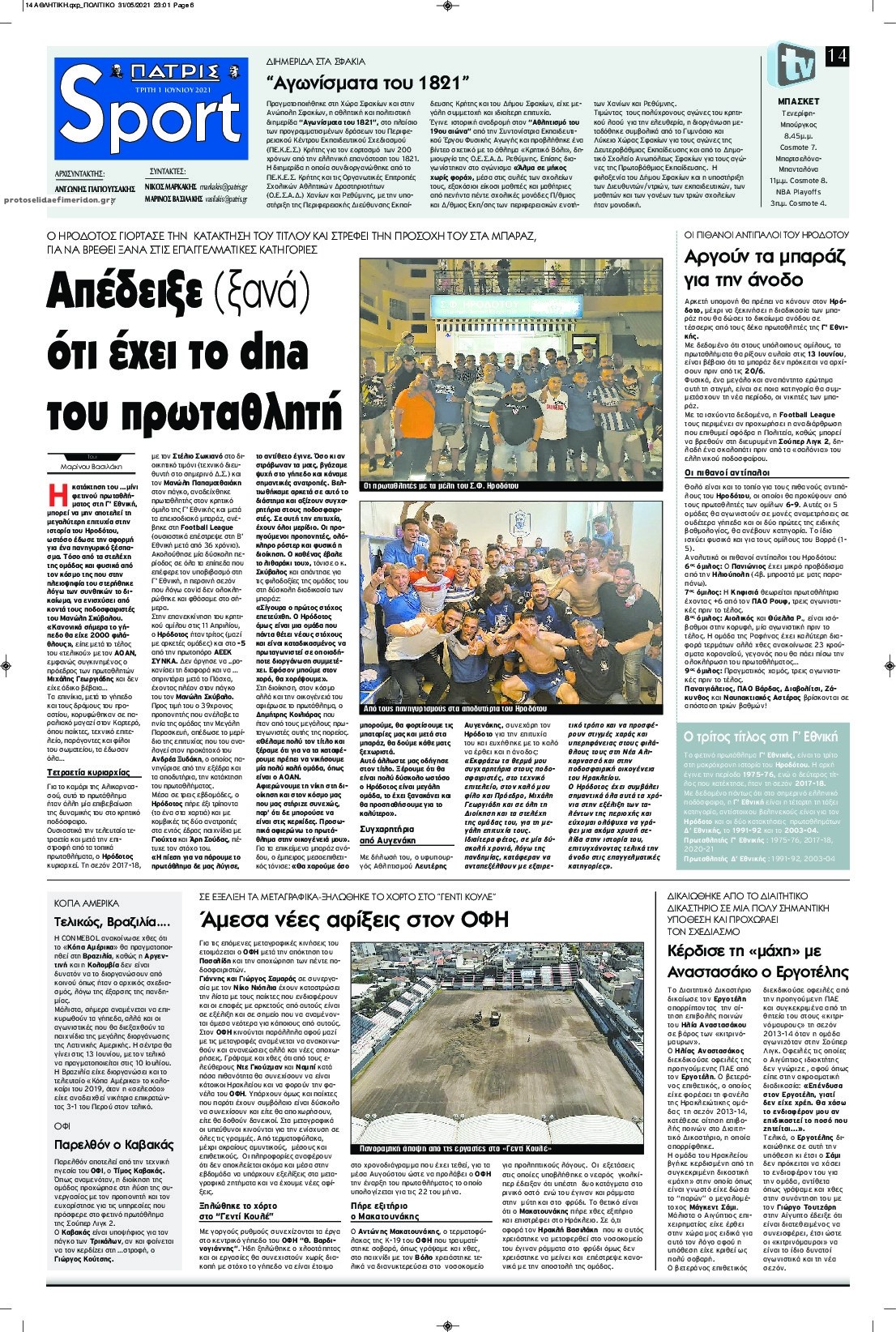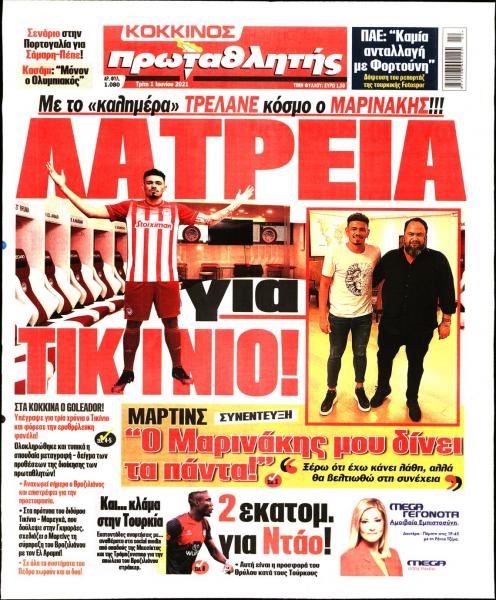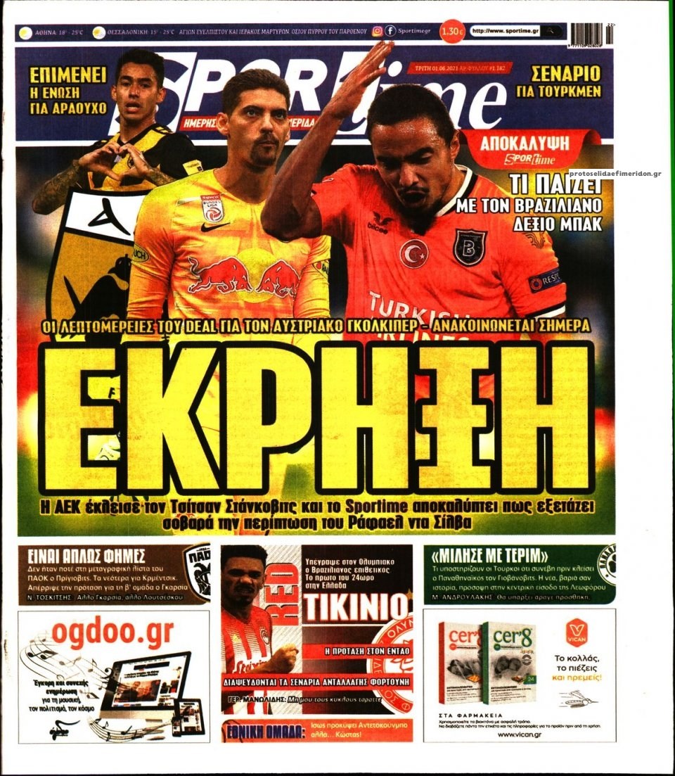 Οι αθλητικές εφημερίδες 1/6/2021 Σήφης Γαρυφαλάκης 06:22, Τρίτη 01 Ιουνίου 2021 Media Διαβάστε τα πρωτοσέλιδα των αθλητικών εφημερίδων. ΑΘΛΗΤΙΚΕΣ ΕΦΗΜΕΡΙΔΕΣ ΕΦΗΜΕΡΙΔΕΣ ΠΡΩΤΟΣΕΛΙΔΑ ΠΡΩΤΟΣΕΛΙΔΑ ΕΦΗΜΕΡΙΔΩΝ Μοιράσου το: σχολίασε κι εσύ (0 σχόλια) Ακολουθήστε το enikos.gr στο Google News και μάθετε πρώτοι όλες τις ειδήσεις Δείτε όλες τις τελευταίες ειδήσεις από την Ελλάδα και τον Κόσμο στο enikos.gr Ειδήσεις Ροή Ειδήσεων 6 ώρες πριν Μητσοτάκης: Αναγκαία η μεταρρύθμιση του πρωτογενούς τομέα – Τα 6 νέα μέτρα για το στεγαστικό και οι αναφορές σε «Ιθάκη» και «πολιτικούς του καναπέ» 5 ώρες πριν Δάνεια σε ελβετικό φράγκο: Τα βασικά σημεία της ρύθμισης – ανάσας για 40.000 δανειολήπτες – Αναλυτικός οδηγός με ερωτήσεις και απαντήσεις 4 ώρες πριν Κυψέλη: Εξιτήριο πήρε η 14χρονη μαθήτρια που μαχαιρώθηκε από την 16χρονη σε σχολείο – «Θέλω να βοηθήσω το παιδί, έχει μπλέξει με κακές παρέες» 4 ώρες πριν Τραμπ: Γιατί κατέθεσε τώρα την αγωγή κατά του BBC – Πώς η κίνησή του εξυπηρετεί το νέο δόγμα του για «αντίσταση» στην Ευρώπη, υπέρ των συντηρητικών 5 ώρες πριν ΟΠΕΚΕΠΕ – Παράνομες επιδοτήσεις: Ελεύθεροι με περιοριστικούς όρους και οι 7 κατηγορούμενοι που απολογήθηκαν σήμερα 4 ώρες πριν Ανακαλύφθηκε βυθισμένη πέτρινη κατασκευή ανοιχτά της Κριμαίας – Αποτελεί μέρος αρχαίας ελληνικής αποικίας 5 ώρες πριν Ύπνος: Αυτό μπορεί να είναι το χειρότερο λάθος για το βιολογικό ρολόι σας, σύμφωνα με ειδικό 6 ώρες πριν Αριθμολογία: Οι άνθρωποι που έχουν γεννηθεί αυτές τις 3 ημερομηνίες, προσελκύουν μεγάλη τύχη πριν από το τέλος του 2025 8 ώρες πριν Οι 7 συμπεριφορές που μαρτυρούν ότι ένας άνδρας επενδύει μακροπρόθεσμα σε μια σχέση 15 λεπτά πριν Νίκος Πλακιάς: Η Μαρία Καρυστιανού πλέον θα κρίνεται ως πολιτικός και όχι ως συγγενής 30 λεπτά πριν Ντόναλντ Τραμπ: Κάλυψε απόλυτα την προσωπάρχη του Λευκού Οίκου: «Ναι, έχω προσωπικότητα αλκοολικού» 45 λεπτά πριν ΗΠΑ: Στην αγορά δύο Boeing 747-8 προχωρά η Πολεμική Αεροπορία για την υποστήριξη του προεδρικού στόλου 60 λεπτά πριν Ιταλία: Λεωφορείο έπεσε πάνω σε βιτρίνα καταστήματος στο Τορίνο – Τρεις τραυματίες 1 ώρα πριν Χαλάνδρι: Καθηγητής έπιασε με κόφτη τα δάχτυλα μαθητή σε κατάληψη – «Μου έχεις πιάσει το χέρι» ENIKOS NETWORK Αίτημα ΙΣΑ για την εξαίρεση των προσωπικών γιατρών από τις κατ’ οίκον επισκέψεις Η σκανδιναβική μέθοδος στον ύπνο που μπορεί να σώσει έναν γάμο Πιερρακάκης: Ο προϋπολογισμός συμβάλλει ουσιαστικά στην ενίσχυση της αγοραστικής δύναμης της πλειονότητας των εργαζομένων e-ΕΦΚΑ: Παρατείνεται η προθεσμία για την υποβολή ΑΠΔ – Ποιους αφορά Σύγχρονος Νοστράδαμος: Προειδοποιεί για «μεγάλο γεγονός» τους επόμενους μήνες που θα συγκλονίσει τη Βρετανία και τον κόσμο Τεστ παρατηρητικότητας: Μπορείτε να βρείτε τις 3 διαφορές στις εικόνες με έναν πιγκουίνο σε 14 δευτερόλεπτα περισσότερα 20:06 , Τρίτη 16 Δεκεμβρίου 2025 Ο ΣΚΑΙ καταγγέλλει τον ΕΚΚΟΜΕΔ Επιστολή με την οποία καταγράφει την έντονη διαμαρτυρία του προς τον διευθύνοντα σύμβουλο του... 17:40 , Τρίτη 16 Δεκεμβρίου 2025 Eurovision: Στις 4 Ιανουαρίου αποκαλύπτονται τα 28 τραγούδια του ελληνικού τελικού Η αγωνία τελειώνει, η γιορτή της Eurovision αρχίζει στην ΕΡΤ από τις πρώτες ημέρες της νέας χρ... 17:09 , Τρίτη 16 Δεκεμβρίου 2025 Alter Ego Media: Βαθύτατη θλίψη και ειλικρινή συλλυπητήρια για την απώλεια της Ειρήνης Μαρινάκη Τη βαθύτατη θλίψη και τα ειλικρινή συλλυπητήριά της εκφράζει η Alter Ego Media για τον θάνατο ... 13:00 , Τρίτη 16 Δεκεμβρίου 2025 «Στο
