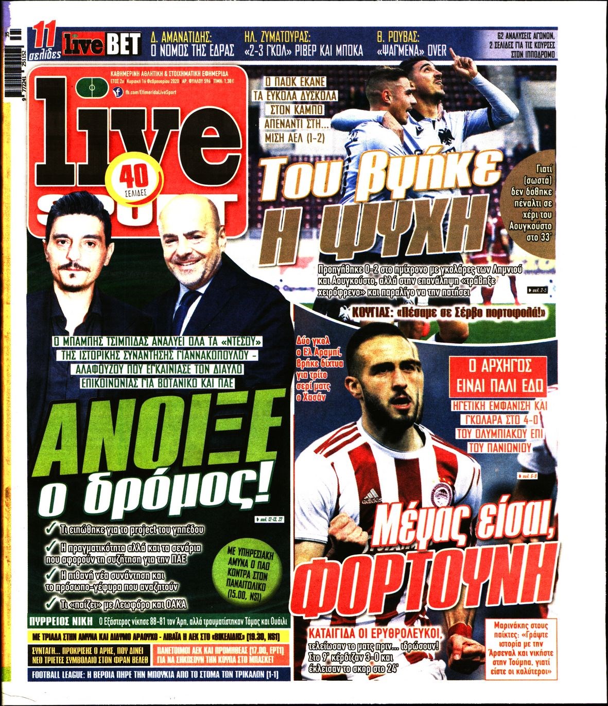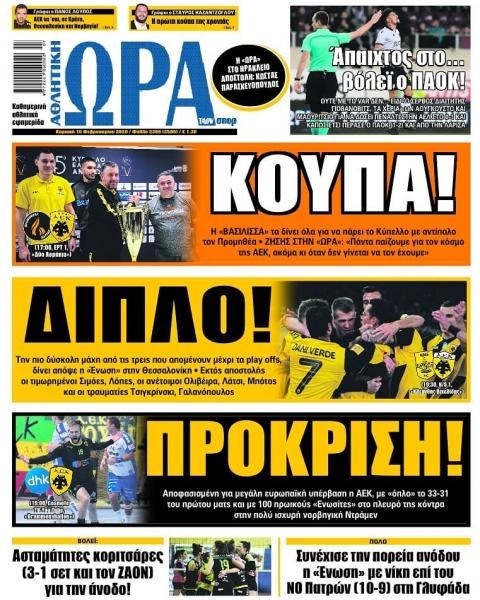 Οι αθλητικές εφημερίδες 16/2/2020 Κώστας Τεό 07:36, Κυριακή 16 Φεβρουαρίου 2020 Media Διαβάστε τα πρωτοσέλιδα των αθλητικών εφημερίδων: ΑΘΛΗΤΙΚΕΣ ΕΦΗΜΕΡΙΔΕΣ ΠΡΩΤΟΣΕΛΙΔΑ Μοιράσου το: σχολίασε κι εσύ (0 σχόλια) Ακολουθήστε το enikos.gr στο Google News και μάθετε πρώτοι όλες τις ειδήσεις Δείτε όλες τις τελευταίες ειδήσεις από την Ελλάδα και τον Κόσμο στο enikos.gr Ειδήσεις Ροή Ειδήσεων 4 ώρες πριν Μεσόγειος: Η διαδρομή του ρωσικού τάνκερ «Qendil» και η στοχευμένη επίθεση της Ουκρανίας με drone – Ο Πούτιν προειδοποίησε για αντίποινα 43 λεπτά πριν Αγρότες: Έκλεισαν για μία ώρα την παρακαμπτήρια της Ιόνιας Οδού στη θέση Χαλίκι 2 ώρες πριν Εμπλοκή και αερομαχίες με οπλισμένα τουρκικά F-16 στο Αιγαίο 2 ώρες πριν Πούτιν: «Ναι, είμαι ερωτευμένος» – Βίντεο από τη σπάνια προσωπική παραδοχή του 47 λεπτά πριν Ανδρέας Λυκουρέντζος: Υπέβαλε την παραίτησή του ο πρόεδρος του ΕΛΓΑ, αλλά δεν έγινε δεκτή – Όλο το παρασκήνιο 57 λεπτά πριν Αριθμολογία: Οι άνθρωποι που έχουν γεννηθεί αυτές τις 4 ημερομηνίες, συχνά παρεξηγούνται – «Η καλοσύνη τους κρύβει τεράστια δύναμη» 3 ώρες πριν Μήπως έχετε χάσει τον εαυτό σας στη σχέση σας; 7 «αθόρυβες» υποχωρήσεις που μάλλον κάνατε, χωρίς να το συνειδητοποιήσετε 2 ώρες πριν Ξεχάστε το καθάρισμα το Σαββατοκύριακο: Ο «κανόνας των 20 λεπτών» που θα σας λύσει τα χέρια 5 ώρες πριν Κουίζ για την παλιά Αθήνα: Αναγνωρίζετε την περιοχή; Έχετε περάσει 100% από εκεί 3 λεπτά πριν ΕΕ: «Κάποια στιγμή θα χρησιμοποιήσουμε τα ρωσικά περιουσιακά στοιχεία» δήλωσε ο πρόεδρος του ΕΛΚ 7 λεπτά πριν Conference League: Καλύτερη επίθεση η ΑΕΚ στη διοργάνωση και 2η σε προσπάθειες στην εστία – Ξεχωρίζουν Πινέδα, Ελίασον και Ρότα 8 λεπτά πριν Έγκυος η Άννα Κορακάκη: «Η οικογένειά μας μεγαλώνει…» – Η αποκάλυψη για το φύλο του μωρού 16 λεπτά πριν Τραγωδία στο Βελεστίνο: Πέθανε ο αντιδήμαρχος Γιάννης Παπαϊωάννου 20 λεπτά πριν Ολυμπιακός – Βιλερμπάν: Μάτωσε στο πρόσωπο ο Παπανικολάου έπειτα από αγκωνιά του Βοτιέ – ΦΩΤΟ ENIKOS NETWORK Το ΕΚΑΒ τιμήθηκε από την Ακαδημία Αθηνών για τα 40 χρόνια προσφοράς του Έχετε πραγματικά μεγάλη καρδιά; 10 χαρακτηριστικά όσων έχουν καλοσύνη Έρχονται νέες προσλήψεις σε Δήμο – Όλες οι λεπτομέρειες Επίδομα παιδιού: Πότε ανοίγει ξανά η πλατφόρμα για τις αιτήσεις Χαρτογραφώντας το «σημείο χωρίς επιστροφή»: Για πρώτη φορά αποκαλύπτεται με λεπτομέρεια το ακανθώδες όριο της ατμόσφαιρας τ... Η Google καταργεί τη λειτουργία «dark web report» – Πώς θα μπορούν οι χρήστες να διαγράφουν τα δεδομένα τους περισσότερα 20:37 , Παρασκευή 19 Δεκεμβρίου 2025 Don’t Forget The Lyrics: Η Έλλη Κοκκίνου υποδέχεται 4 παίκτες που θα κάνουν τα πάντα για να μη χάσουν ούτε… μισή λέξη από τους στίχους Το «Don’t Forget The Lyrics» επιστρέφει απόψε, Παρασκευή 19 Δεκεμβρίου, στις 21:00 με νέο επει... 19:31 , Παρασκευή 19 Δεκεμβρίου 2025 GNTM: Απόψε ο μεγάλος τελικός για τους 4 φιναλίστ Έπειτα από μήνες γεμάτους μόδα, δημιουργία και έντονες αναμετρήσεις, το GNTM 2025 κορυφώνεται,... 18:11 , Παρασκευή 19 Δεκεμβρίου 2025 Το σόι σου: Ο Άρης έρχεται στην Ελλάδα για τις γιορτές των Χριστουγέννων – Τι θα δούμε στο αποψινό εορταστικό επεισόδιο Ένα απολαυστικό, εορταστικό επεισόδιο της σειράς “Το σόι σου”, γεμάτο ευτράπελα αλ... 15:15 , Παρασκευή 19 Δεκεμβρίου 2025 Την Κυριακή με τη Realnews: Ό,τι και αν αγοράσεις, σκανάρεις και κερδίζεις! Την Κυριακή με τη Realnews: Ό,τι και αν αγοράσεις, σκανάρεις και κερδίζεις! Με το PADU app, το... ΤΕΛΕΥΤΑΙΕΣ ΕΙΔΗΣΕΙΣ 3 λεπτά πριν ΕΕ: «Κάποια στιγμή θα χρησιμοποιήσ