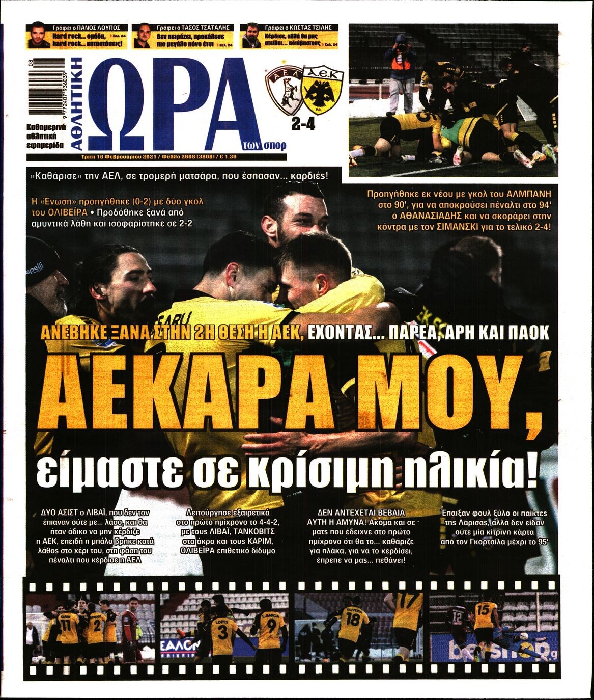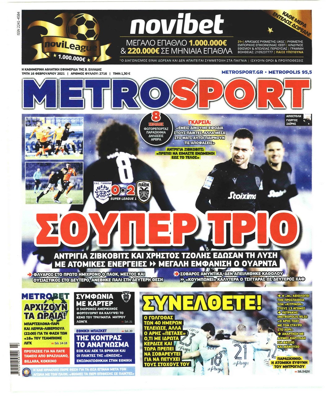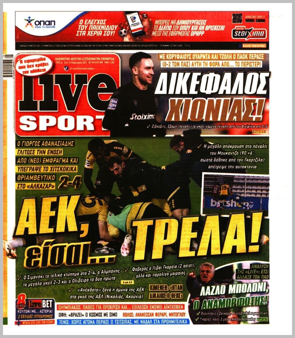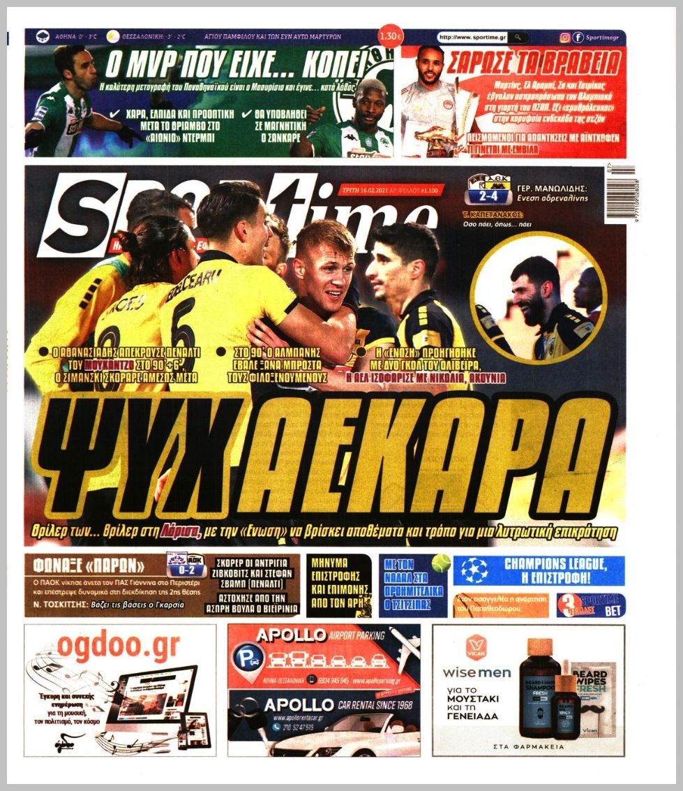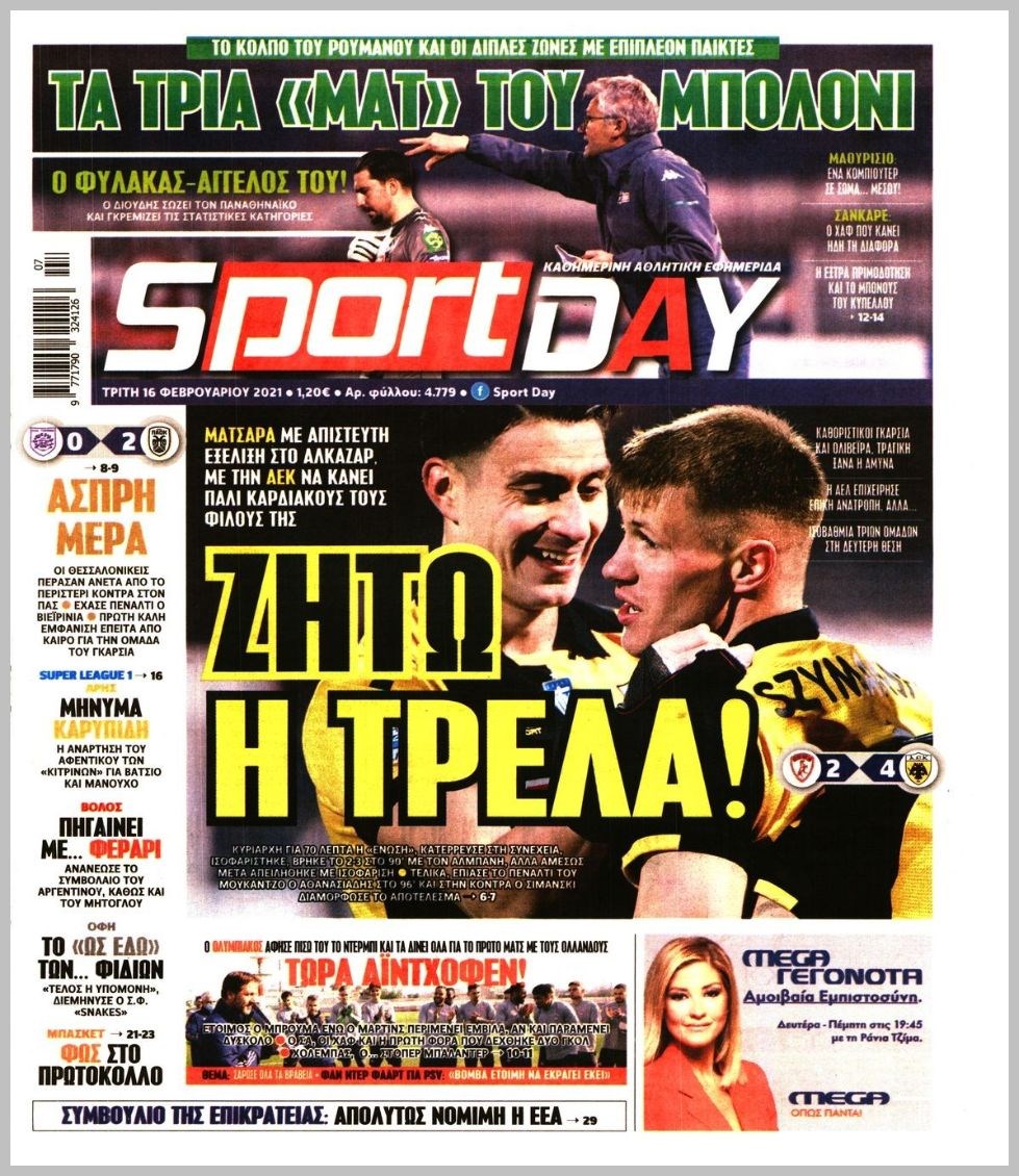 Οι αθλητικές εφημερίδες 16/2/2021 Διονύσης Νίκκας 06:47, Τρίτη 16 Φεβρουαρίου 2021 Media Διαβάστε τα πρωτοσέλιδα των αθλητικών εφημερίδων… ΑΘΛΗΤΙΚΕΣ ΕΦΗΜΕΡΙΔΕΣ Μοιράσου το: σχολίασε κι εσύ (0 σχόλια) Ακολουθήστε το enikos.gr στο Google News και μάθετε πρώτοι όλες τις ειδήσεις Δείτε όλες τις τελευταίες ειδήσεις από την Ελλάδα και τον Κόσμο στο enikos.gr Ειδήσεις Ροή Ειδήσεων 1 ώρα πριν Υπόθεση Έπσταϊν: Το Υπουργείο Δικαιοσύνης δημοσιοποίησε μια σειρά από εξαιρετικά επεξεργασμένα αρχεία – «Λείπουν τα πιο σημαντικά έγγραφα», λένε οι Δημοκρατικοί 30 λεπτά πριν Ο «χάρτης» με τις αυξήσεις και τις φοροελαφρύνσεις του 2026 – Ποιοι και πόσα κερδίζουν 10 ώρες πριν Χριστούγεννα στα μπλόκα: Επιμένουν στις κινητοποιήσεις τους οι αγρότες – Ανοίγουν τα διόδια το Σαββατοκύριακο 2 ώρες πριν ΟΝΕΧ – MEGATUGS: Ξεκίνησε η ναυπήγηση ρυμουλκών στην Ελλάδα – Προθάλαμος πολεμικών πλοίων – Δείτε φωτογραφίες και βίντεο 1 ώρα πριν Καιρός: Αλλαγή σκηνικού σήμερα με βροχές και πτώση της θερμοκρασίας – Οι προβλέψεις των μετεωρολόγων για τα Χριστούγεννα 3 ώρες πριν Αυγά: Πόσα μπορείτε να τρώτε την ημέρα με ασφάλεια για μέγιστη πρόσληψη πρωτεΐνης 4 ώρες πριν Τα ζώδια σήμερα, Σάββατο 20 Δεκεμβρίου: Παρθένοι, το σύμπαν σας δίνει το κλειδί 3 ώρες πριν Οπτική ψευδαίσθηση: Μόνο αν είσαι ο Σέρλοκ Χολμς θα βρεις τον αριθμό «87» σε 7 δευτερόλεπτα 1 ώρα πριν Αρχαιολόγοι ανακάλυψαν σε χωράφι απεικόνιση 600 ετών ενός Αγίου – Τα στοιχεία που δείχνουν ότι μαρτύρησε 1 λεπτό πριν Παιδική υπέρταση: Μια σιωπηλή απειλή που αυξάνεται διεθνώς 2 λεπτά πριν Αγχώνεται για το χριστουγεννιάτικο δώρο που πήρε στην πλούσια σύντροφό του – «Φοβάμαι πως θα το βρει φθηνιάρικο, φοράει βραχιόλια Cartier» 9 λεπτά πριν Enerwave: Το νέο «ρεύμα» στη λιανική ενέργειας που αλλάζει την εμπειρία του καταναλωτή 14 λεπτά πριν Γιώργος Μαζωνάκης: Τη Δευτέρα η μήνυση του τραγουδιστή κατά του 22χρονου 22 λεπτά πριν Αμαλία Κωστοπούλου: Το μήνυμα για το χειρουργείο στο γόνατο – «Αυτός ο τραυματισμός μού στέρησε πολλά…» ENIKOS NETWORK Πόσα κιλά παίρνουμε πραγματικά τα Χριστούγεννα, σύμφωνα με την επιστήμη – Πώς να το αποτρέψουμε; Το δημοφιλές ρόφημα που αυξάνει την πίεση πιο γρήγορα και από το αλάτι Mega χριστουγεννιάτικη φορολοταρία: «Κλείδωσε» η ημερομηνία για την κλήρωση – Ερωτήσεις και απαντήσεις Αναστολή μέτρων αναγκαστικής εκτέλεσης για κτηνοτρόφους που πλήττονται από την ευλογιά των αιγοπροβάτων Χαρτογραφώντας το «σημείο χωρίς επιστροφή»: Για πρώτη φορά αποκαλύπτεται με λεπτομέρεια το ακανθώδες όριο της ατμόσφαιρας τ... Η Google καταργεί τη λειτουργία «dark web report» – Πώς θα μπορούν οι χρήστες να διαγράφουν τα δεδομένα τους περισσότερα 08:14 , Σάββατο 20 Δεκεμβρίου 2025 Τρομεροί γονείς: Η Μαρία Καβογιάννη εισβάλλει στο σπίτι της οικογένειας Στεφανίδη Όσα θα δούμε στο νέο διπλό επεισόδιο της σειράς «Τρομεροί γονείς», σήμερα Σάββατο 20 Δεκεμβρίο... 05:48 , Σάββατο 20 Δεκεμβρίου 2025 Οι οικονομικές εφημερίδες 20/12/2025 Διαβάστε τα πρωτοσέλιδα από τις οικονομικές εφημερίδες, σήμερα 20/12/2025. 05:43 , Σάββατο 20 Δεκεμβρίου 2025 Οι αθλητικές εφημερίδες 20/12/2025 Διαβάστε τα πρωτοσέλιδα από τις αθλητικές εφημερίδες, σήμερα 20/12/2025. 05:38 , Σάββατο 20 Δεκεμβρίου 2025 Οι πολιτικές εφημερίδες 20/12/2025 Διαβάστε τα πρωτοσέλιδα από τις πολιτικές εφημερίδες, σήμερα 20/12/2025. ΤΕΛΕΥΤΑΙΕΣ ΕΙΔΗΣΕΙΣ 9 λεπτά πριν Enerwave: Το νέο «ρεύμα» στη λιανική ενέργειας που αλλάζει... 14 λεπτά πριν Γιώργος Μαζωνάκης: Τη Δευτέρα η μήνυ