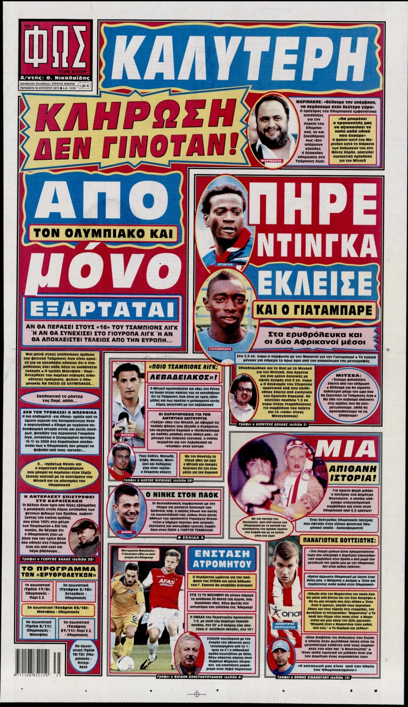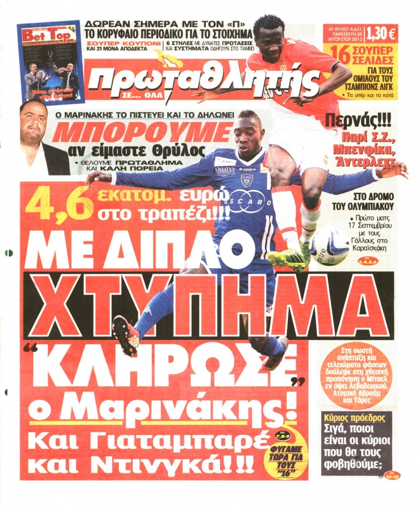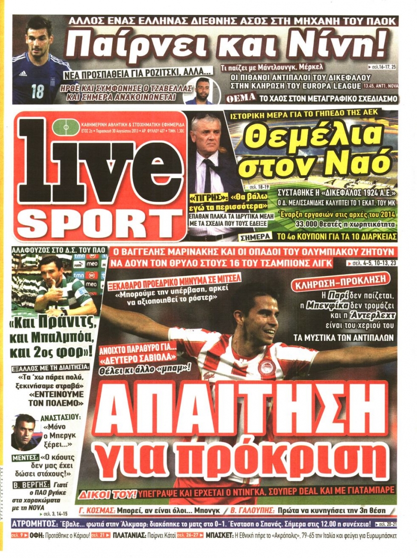 Οι αθλητικές εφημερίδες Enikos Newsroom 09:09, Παρασκευή 30 Αυγούστου 2013 Media Οι αθλητικές εφημερίδες Διαβάστε τα πρωτοσέλιδα των αθλητικών εφημερίδων: ΑΘΛΗΤΙΚΕΣ ΕΦΗΜΕΡΙΔΕΣ ΕΦΗΜΕΡΙΔΕΣ ΠΡΩΤΟΣΕΛΙΔΑ Μοιράσου το: σχολίασε κι εσύ (0 σχόλια) Ακολουθήστε το enikos.gr στο Google News και μάθετε πρώτοι όλες τις ειδήσεις Δείτε όλες τις τελευταίες ειδήσεις από την Ελλάδα και τον Κόσμο στο enikos.gr Ειδήσεις Ροή Ειδήσεων 47 λεπτά πριν Φοροδιαφυγή: Ποιοι φορολογούμενοι κινδυνεύουν να πληρώσουν «τσουχτερά» πρόστιμα 8 λεπτά πριν Φοινικούντα: Παραδόθηκε 30χρονος στην Καλαμάτα για τη διπλή δολοφονία 25 λεπτά πριν Αγρότες: Ανυποχώρητοι στα μπλόκα – Στις Σέρρες σήμερα η κρίσιμη συνεδρίαση της Πανελλαδικής Επιτροπής 37 λεπτά πριν Τα επίσημα χρονοδιαγράμματα που η Τουρκία θα παραλάβει τα Eurofighter 9 ώρες πριν «Θύελλα» αντιδράσεων για τον Νίκο Παππά μετά την επίθεση στον δημοσιογράφο Νίκο Γιαννόπουλο – Η μήνυση, οι δηλώσεις και η έξοδος από την ευρωομάδα του ΣΥΡΙΖΑ 2 ώρες πριν Καούρα: Το μπαχαρικό που είναι «εξίσου αποτελεσματικό» με την ομεπραζόλη, σύμφωνα με ειδικούς 3 ώρες πριν Τα ζώδια σήμερα, Πέμπτη 18 Δεκεμβρίου: Λέοντες, η καρδιά σας θέλει να εκφραστεί 2 ώρες πριν Οπτική ψευδαίσθηση: Μόνο οι πιο έξυπνοι άνθρωποι θα βρουν 7 ξωτικά 15 δευτερόλεπτα 23 ώρες πριν 20 χρόνια τα Χριστούγεννα ξεκινούν στα Public με μεγάλη ποικιλία σε δώρα! 5 λεπτά πριν Την Κυριακή με τη Realnews: Δωροεπιταγή 10€ 8 λεπτά πριν Φοινικούντα: Παραδόθηκε 30χρονος στην Καλαμάτα για τη διπλή δολοφονία 10 λεπτά πριν Έδεσσα: Χωρίς τις αισθήσεις ανασύρθηκε ηλικιωμένη έπειτα από φωτιά σε μονοκατοικία 15 λεπτά πριν «Το σόι σου»: Backstage στα γυρίσματα για το εορταστικό επεισόδιο 22 λεπτά πριν e-ΕΦΚΑ και ΔΥΠΑ: Προτελευταία ημέρα πληρωμών σήμερα ENIKOS NETWORK Ουρική αρθρίτιδα: Μεγάλη μελέτη αποκαλύπτει τι μπορεί να προκαλεί τη νόσο Τι σημαίνει όταν ο σκύλος σας σάς φέρνει τυχαία αντικείμενα, σύμφωνα με εκπαιδεύτρια Οφειλές προς το Δημόσιο: «Φρένο» στα σενάρια για νέα ρύθμιση – Τι απαντά το υπουργείο Εθνικής Οικονομίας και Οικονομικών Φοροδιαφυγή: Ποιοι φορολογούμενοι κινδυνεύουν να πληρώσουν «τσουχτερά» πρόστιμα Χαρτογραφώντας το «σημείο χωρίς επιστροφή»: Για πρώτη φορά αποκαλύπτεται με λεπτομέρεια το ακανθώδες όριο της ατμόσφαιρας τ... Η Google καταργεί τη λειτουργία «dark web report» – Πώς θα μπορούν οι χρήστες να διαγράφουν τα δεδομένα τους περισσότερα 08:00 , Πέμπτη 18 Δεκεμβρίου 2025 Την Κυριακή με τη Realnews: Δωροεπιταγή 10€ Δωροεπιταγή αξίας 10€ για αγορές άνω των 60€ από τα πολυκαταστήματα FactoryOutlet H προσφορά ι... 07:50 , Πέμπτη 18 Δεκεμβρίου 2025 «Το σόι σου»: Backstage στα γυρίσματα για το εορταστικό επεισόδιο «Το σόι σου» φορά τα γιορτινά του για τα Χριστούγεννα και η Όλγα Λαφαζάνη, με την κάμερα του «... 07:36 , Πέμπτη 18 Δεκεμβρίου 2025 Οι αθλητικές μεταδόσεις 18/12/2025 – Πού θα δείτε τον αγώνα της ΑΕΚ με την Κραϊόβα για το Conference League Τα ματς ΑΕΚ – Ουνιβερσιτάτεα Κραϊόβα για το Conference League και Παναθηναϊκός – Χάποελ Τελ Αβ... 05:48 , Πέμπτη 18 Δεκεμβρίου 2025 Οι οικονομικές εφημερίδες 18/12/2025 Διαβάστε τα πρωτοσέλιδα από τις οικονομικές εφημερίδες, σήμερα 18/12/2025. ΤΕΛΕΥΤΑΙΕΣ ΕΙΔΗΣΕΙΣ 5 λεπτά πριν Την Κυριακή με τη Realnews: Δωροεπιταγή 10€ 8 λεπτά πριν Φοινικούντα: Παραδόθηκε 30χρονος στην Καλαμάτα για τη... 10 λεπτά πριν Έδεσσα: Χωρίς τις αισθήσεις ανασύρθηκε ηλικιωμένη... 15 λεπτά πριν «Το σόι σου»: Backstage στα γυρίσματα για το εορταστικό... 22 λεπτά πριν e-ΕΦΚΑ και ΔΥΠΑ: Προτελευταία ημέρα πληρωμών σ