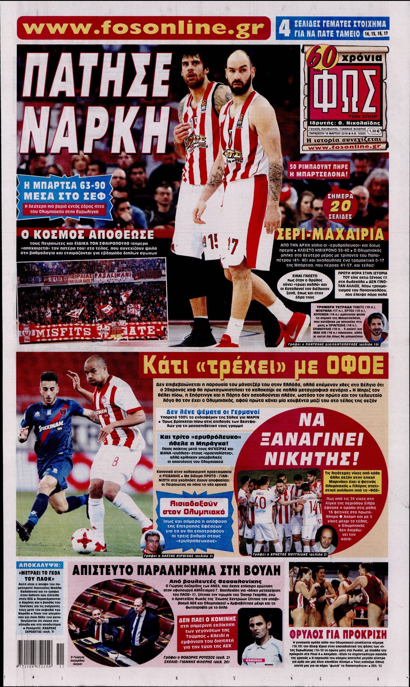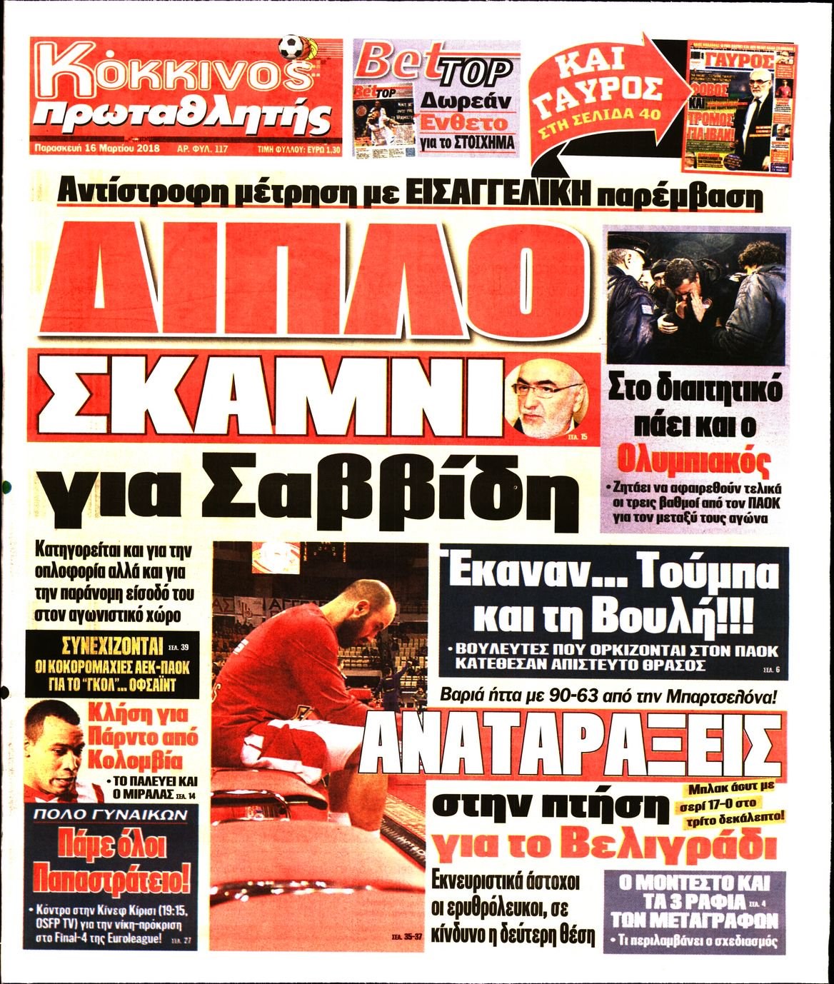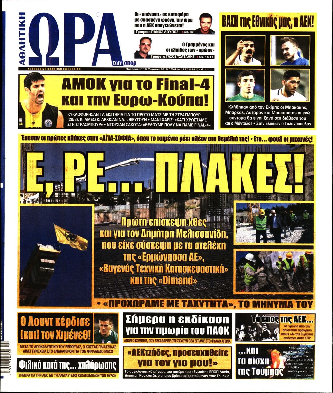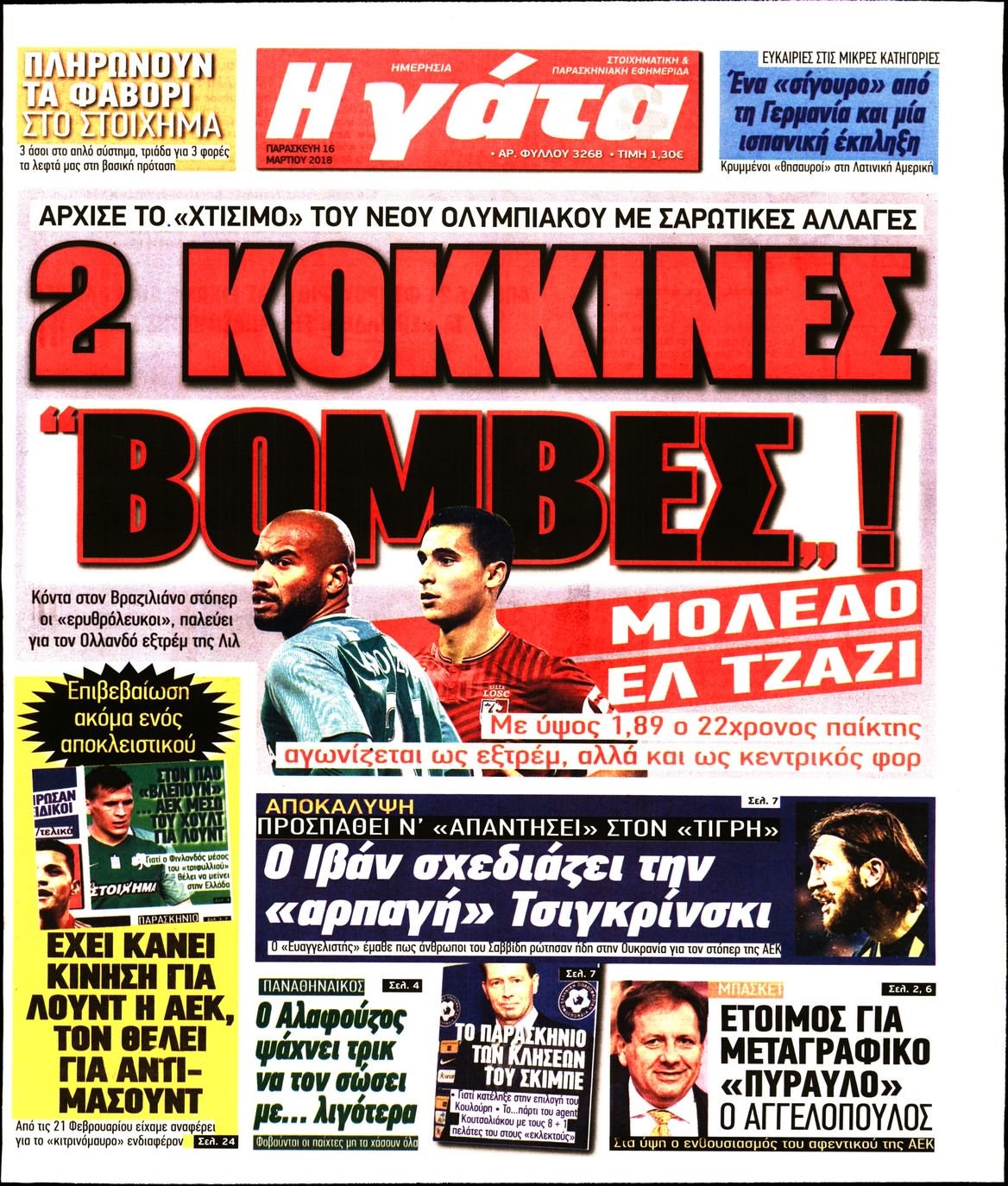 Οι αθλητικές εφημερίδες 16/3/2018 Enikos Newsroom 07:29, Παρασκευή 16 Μαρτίου 2018 Media Διαβάστε τα σημερινά πρωτοσέλιδα των αθλητικών εφημερίδων: ΑΘΛΗΤΙΚΕΣ ΕΦΗΜΕΡΙΔΕΣ ΠΡΩΤΟΣΕΛΙΔΑ Μοιράσου το: σχολίασε κι εσύ (0 σχόλια) Ακολουθήστε το enikos.gr στο Google News και μάθετε πρώτοι όλες τις ειδήσεις Δείτε όλες τις τελευταίες ειδήσεις από την Ελλάδα και τον Κόσμο στο enikos.gr Ειδήσεις Ροή Ειδήσεων 4 ώρες πριν Από το Ορμένιο ως τα Μάλγαρα κι από τη Σιάτιστα μέχρι τη Νίκαια: Μπλόκα σε όλη την Ελλάδα – Το Σάββατο ανοίγουν τα διόδια οι αγρότες 1 ώρα πριν Εμπλοκή και αερομαχίες με οπλισμένα τουρκικά F-16 στο Αιγαίο 3 ώρες πριν Αττική: Θρίλερ με νεκρό βρέφος 5 μηνών – Κοιμόταν στο ίδιο κρεβάτι με τους γονείς του 58 λεπτά πριν Πούτιν: «Ναι, είμαι ερωτευμένος» – Βίντεο από τη σπάνια προσωπική παραδοχή του 3 ώρες πριν Μεσόγειος: Η διαδρομή του ρωσικού τάνκερ «Qendil» και η στοχευμένη επίθεση της Ουκρανίας με drone – Ο Πούτιν προειδοποίησε για αντίποινα 5 ώρες πριν Τα 5 ζώδια που ευνοούνται στην ερωτική ζωή τους την επόμενη εβδομάδα – «Η ενέργεια του Αιγόκερου φέρνει αγάπη και σταθερότητα» 6 ώρες πριν Αυτό το έξυπνο μαθηματικό κόλπο θα μπορούσε να αλλάξει τον τρόπο με τον οποίο οι επιστήμονες μελετούν τους σεισμούς 2 ώρες πριν Μήπως έχετε χάσει τον εαυτό σας στη σχέση σας; 7 «αθόρυβες» υποχωρήσεις που μάλλον κάνατε, χωρίς να το συνειδητοποιήσετε 4 ώρες πριν Κουίζ για την παλιά Αθήνα: Αναγνωρίζετε την περιοχή; Έχετε περάσει 100% από εκεί 5 λεπτά πριν Μπαράκ Ομπάμα: Τα βιβλία, οι ταινίες και τα τραγούδια που ξεχώρισε το 2025 – Πλήρης λίστα 10 λεπτά πριν Don’t Forget The Lyrics: Η Έλλη Κοκκίνου υποδέχεται 4 παίκτες που θα κάνουν τα πάντα για να μη χάσουν ούτε… μισή λέξη από τους στίχους 16 λεπτά πριν Πλεύρης στον ΑΝΤ1: Η βασική πολιτική που ψηφίστηκε από τους υπουργούς Μετανάστευσης είναι η δημιουργία κέντρων κράτησης μεταναστών στην Αφρική – ΒΙΝΤΕΟ 20 λεπτά πριν Η εξομολόγηση της Νίκης Σερέτη: «Δεν κρύβω ότι ήταν πάρα πολύ δύσκολο όλο αυτό που βίωσα» 26 λεπτά πριν Αγρότες: Κλειστό ξανά το ρεύμα εισόδου στα Μάλγαρα – Άνοιξαν τον κόμβο της Χαλκηδόνας ENIKOS NETWORK Έχετε πραγματικά μεγάλη καρδιά; 10 χαρακτηριστικά όσων έχουν καλοσύνη «Η σούπερ» γρίπη εξαπλώνεται στην Ευρώπη-Στοιχεία από το ECDC για την αποτελεσματικότητα του εμβολίου Επίδομα παιδιού: Πότε ανοίγει ξανά η πλατφόρμα για τις αιτήσεις Προκήρυξη ΑΣΕΠ για 397 μόνιμες προσλήψεις στο Δημόσιο: Βγήκαν τα προσωρινά αποτελέσματα – Πότε αρχίζει η υποβολή ενστάσεων Χαρτογραφώντας το «σημείο χωρίς επιστροφή»: Για πρώτη φορά αποκαλύπτεται με λεπτομέρεια το ακανθώδες όριο της ατμόσφαιρας τ... Η Google καταργεί τη λειτουργία «dark web report» – Πώς θα μπορούν οι χρήστες να διαγράφουν τα δεδομένα τους περισσότερα 20:37 , Παρασκευή 19 Δεκεμβρίου 2025 Don’t Forget The Lyrics: Η Έλλη Κοκκίνου υποδέχεται 4 παίκτες που θα κάνουν τα πάντα για να μη χάσουν ούτε… μισή λέξη από τους στίχους Το «Don’t Forget The Lyrics» επιστρέφει απόψε, Παρασκευή 19 Δεκεμβρίου, στις 21:00 με νέο επει... 19:31 , Παρασκευή 19 Δεκεμβρίου 2025 GNTM: Απόψε ο μεγάλος τελικός για τους 4 φιναλίστ Έπειτα από μήνες γεμάτους μόδα, δημιουργία και έντονες αναμετρήσεις, το GNTM 2025 κορυφώνεται,... 18:11 , Παρασκευή 19 Δεκεμβρίου 2025 Το σόι σου: Ο Άρης έρχεται στην Ελλάδα για τις γιορτές των Χριστουγέννων – Τι θα δούμε στο αποψινό εορταστικό επεισόδιο Ένα απολαυστικό, εορταστικό επεισόδιο της σειράς “Το σόι σου”, γεμάτο ευτράπελα αλ... 15:15 , Παρασκευή 19 Δεκεμβρίου 2025 Την Κυρ