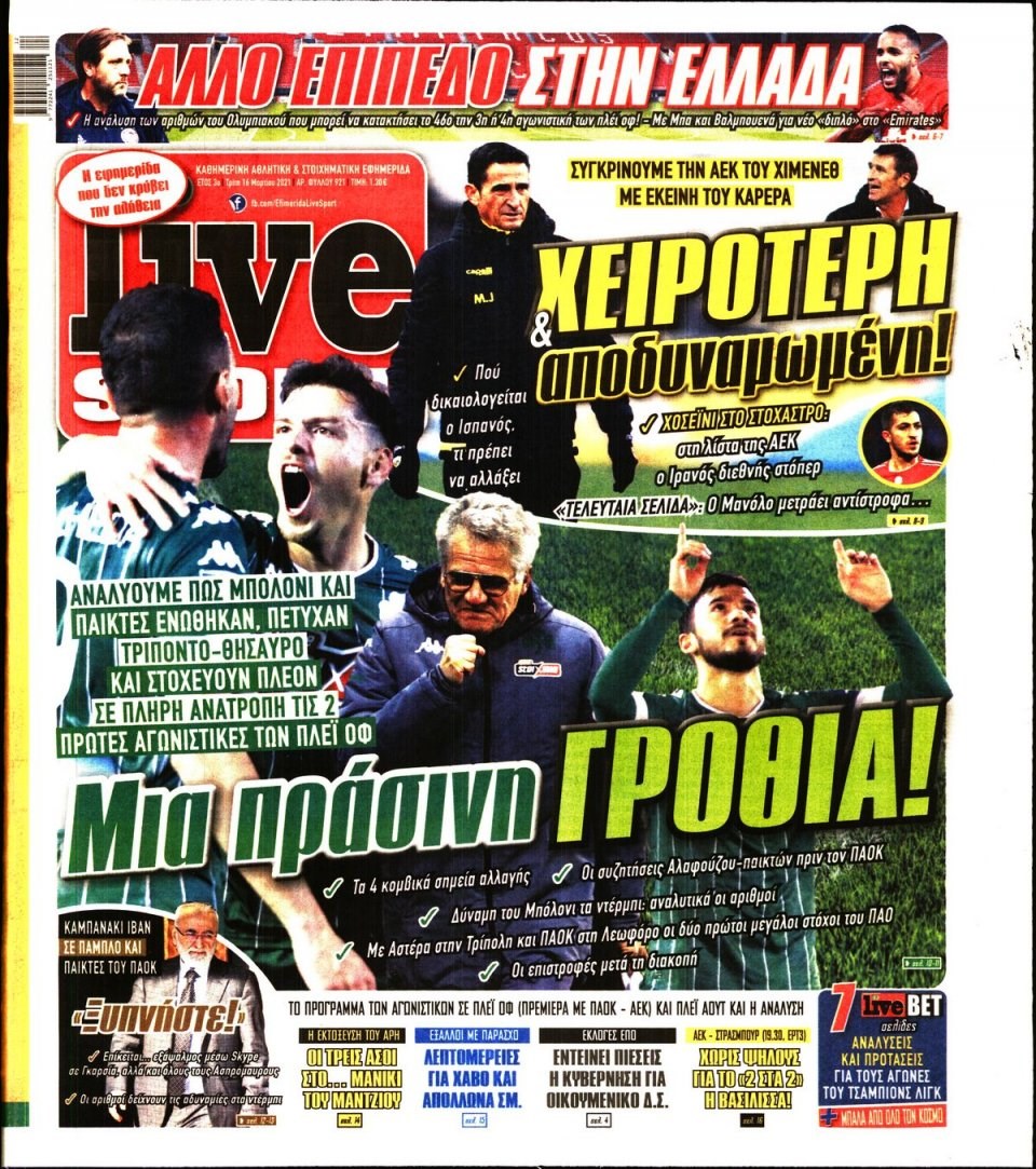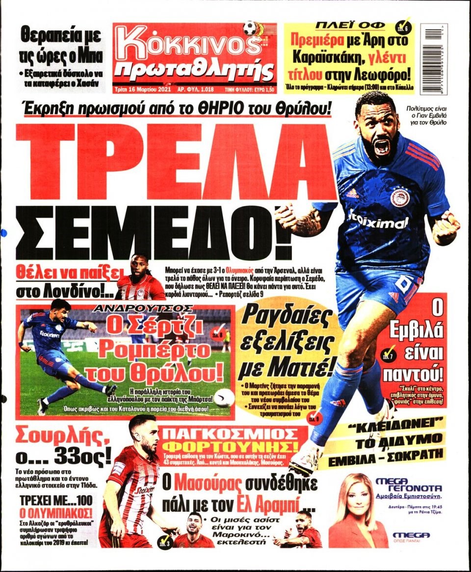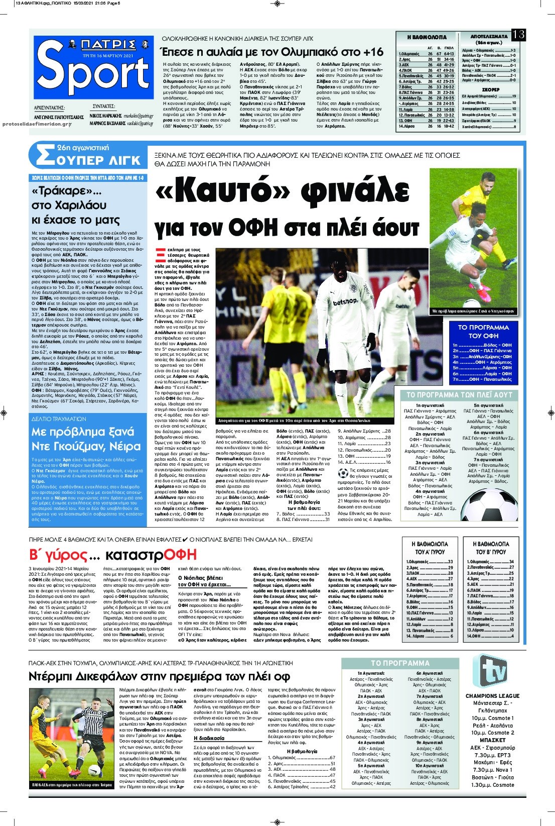 Οι αθλητικές εφημερίδες 16/3/2021 Σήφης Γαρυφαλάκης 06:22, Τρίτη 16 Μαρτίου 2021 Media Διαβάστε τα πρωτοσέλιδα των αθλητικών εφημερίδων… ΑΘΛΗΤΙΚΕΣ ΕΦΗΜΕΡΙΔΕΣ ΕΦΗΜΕΡΙΔΕΣ ΠΡΩΤΟΣΕΛΙΔΑ ΠΡΩΤΟΣΕΛΙΔΑ ΕΦΗΜΕΡΙΔΩΝ Μοιράσου το: σχολίασε κι εσύ (0 σχόλια) Ακολουθήστε το enikos.gr στο Google News και μάθετε πρώτοι όλες τις ειδήσεις Δείτε όλες τις τελευταίες ειδήσεις από την Ελλάδα και τον Κόσμο στο enikos.gr Ειδήσεις Ροή Ειδήσεων 13 λεπτά πριν ΣΥΡΙΖΑ: Διέγραψε τον ευρωβουλευτή Νίκο Παππά μετά την μήνυση δημοσιογράφου για ξυλοδαρμό 1 ώρα πριν Πώς στήθηκε η επιχείρηση «Ίπαλλος» που οδήγησε στη σύλληψη του «Έλληνα Εσκομπάρ» – «Ο πόλεμος ενάντια στους εμπόρους ναρκωτικών θα συνεχιστεί» 57 λεπτά πριν Δίκη Χρυσής Αυγής: Την ενοχή και των 42 κατηγορουμένων ζητά η εισαγγελέας 1 ώρα πριν Κυψέλη: Στη φυλακή η 16χρονη που μαχαίρωσε συμμαθήτριά της 4 ώρες πριν Αμοργός: «Θα προσπαθήσω να το κάνω κάθε μέρα» – Ποιος είναι ο αγρότης που έστησε μόνος του το πρώτο μπλόκο στο νησί 1 ώρα πριν Τα 3 ζώδια που θα δουν τη ζωή τους να αλλάζει ριζικά το 2026 – «Όλα γίνονται καλύτερα σταδιακά» 6 ώρες πριν «Δεν είχα κλάψει από τότε που διαγνώστηκα με καρκίνο, ώσπου ένα τηλεφώνημα με έκανε να λυγίσω» – Η συγκλονιστική εξομολόγηση ενός άνδρα 2 ώρες πριν Ο σπάνιος σεισμός που έλυσε τα χέρια των επιστημόνων – Αποκάλυψε ακριβώς όσα αναζητούσαν 8 ώρες πριν 20 χρόνια τα Χριστούγεννα ξεκινούν στα Public με μεγάλη ποικιλία σε δώρα! 2 λεπτά πριν Ρόδος: Ανήλικος που βρισκόταν σε σχολική εκδρομή μεταφέρθηκε μεθυσμένος στο νοσοκομείο – 2 συλλήψεις 8 λεπτά πριν Γέννησε η Ευάννα Ζουμπούρογλου: «Είμαστε και οι δύο πολύ καλά – Είναι η πιο όμορφη όλου του κόσμου» 13 λεπτά πριν ΣΥΡΙΖΑ: Διέγραψε τον ευρωβουλευτή Νίκο Παππά μετά την μήνυση δημοσιογράφου για ξυλοδαρμό 15 λεπτά πριν Απολαυστικό «Ρουκ…Σουτ» με παίκτες του Παναθηναϊκού AKTOR – ΒΙΝΤΕΟ 19 λεπτά πριν Κουίζ για την παλιά Αθήνα: Αναγνωρίζετε την οδό; Είναι από τις πιο γνωστές ENIKOS NETWORK Γιατί αναζητούμε τα Χριστούγεννα όλο και νωρίτερα; Ποιοι οι ψυχολογικοί και οι συναισθηματικοί λόγοι Σοβαροί κίνδυνοι από τη λάθος χορήγηση φαρμάκου για τις αιμορραγίες-Συστάσεις προς τους γιατρούς Δάνεια σε ελβετικό φράγκο: Αύριο η κατάθεση της τροπολογίας στη Βουλή – Όλες οι λεπτομέρειες Επίδομα παιδιού: Πότε θα δοθεί η τελευταία δόση για το 2025 από τον ΟΠΕΚΑ και τι πρέπει να γνωρίζετε Χαρτογραφώντας το «σημείο χωρίς επιστροφή»: Για πρώτη φορά αποκαλύπτεται με λεπτομέρεια το ακανθώδες όριο της ατμόσφαιρας τ... Η Google καταργεί τη λειτουργία «dark web report» – Πώς θα μπορούν οι χρήστες να διαγράφουν τα δεδομένα τους περισσότερα 12:35 , Τετάρτη 17 Δεκεμβρίου 2025 Μίρκα Παπακωνσταντίνου: «Δεν ήμουν αισιόδοξη για τα νούμερα – Είμαι ρεαλίστρια» Στα γυρίσματα του εορταστικού επεισοδίου της αγαπημένης σειράς “Το Σόι Σου”, βρέθηκε η κάμερα ... 12:12 , Τετάρτη 17 Δεκεμβρίου 2025 Ακούστε την εκπομπή του Νίκου Χατζηνικολάου 17/12/2025 Ακούστε την εκπομπή του Νίκου Χατζηνικολάου στον ραδιοφωνικό σταθμό RealFm 97,8, την Τετάρτη 1... 11:35 , Τετάρτη 17 Δεκεμβρίου 2025 Home Alone: Το σπίτι της ταινίας θα ανακαινιστεί – Επιστροφή στην αισθητική της δεκαετίας του ’90 Οι νέοι ιδιοκτήτες του πραγματικού σπιτιού που παρουσιάζεται στην κλασική ταινία του 1990 «Hom... 11:25 , Τετάρτη 17 Δεκεμβρίου 2025 Grand Hotel: Απόψε το τελευταίο επεισόδιο της χρονιάς – Όλα τα μυστικά μένουν εδώ Το τελευταίο επεισόδιο της χρονιάς της σειράς «Grand Hotel» θα προβληθεί απόψε στις 21:00. 