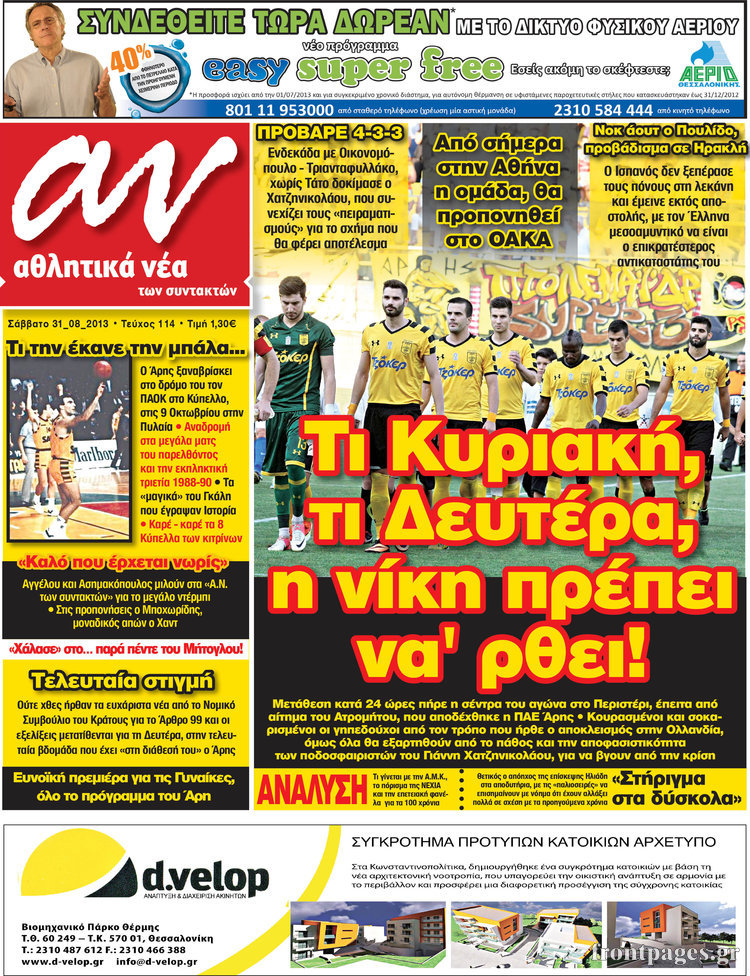 Οι αθλητικές εφημερίδες Enikos Newsroom 08:49, Σάββατο 31 Αυγούστου 2013 Media Οι αθλητικές εφημερίδες Διαβάστε τα πρωτοσέλιδα των αθλητικών εφημερίδων: ΑΘΛΗΤΙΚΕΣ ΕΦΗΜΕΡΙΔΕΣ ΕΦΗΜΕΡΙΔΕΣ ΠΡΩΤΟΣΕΛΙΔΑ Μοιράσου το: σχολίασε κι εσύ (0 σχόλια) Ακολουθήστε το enikos.gr στο Google News και μάθετε πρώτοι όλες τις ειδήσεις Δείτε όλες τις τελευταίες ειδήσεις από την Ελλάδα και τον Κόσμο στο enikos.gr Ειδήσεις Ροή Ειδήσεων 1 ώρα πριν Δημοσκόπηση Alco: Στο 23,6% η ΝΔ, στο 11,6% το ΠΑΣΟΚ – Η άποψη των πολιτών για αγρότες, εκλογές και Τσίπρα 5 ώρες πριν Κυψέλη: Για πρώτη ημέρα βρισκόταν στο σχολείο η 16χρονη που επιτέθηκε με μαχαίρι στην 14χρονη – Τι αναφέρουν μαρτυρίες μαθητών για το επεισόδιο 2 ώρες πριν Φοινικούντα: Αρνούνται τις κατηγορίες οι 2 συλληφθέντες – «Θέλω να συμβάλλω στην αποκάλυψη της αλήθειας» λέει ο ανιψιός του θύματος 3 ώρες πριν Κρήτη: Εντοπίστηκε στίγμα του 33χρονου γιατρού που έχει εξαφανιστεί μέσω νέας τεχνολογίας που εφαρμόζεται για πρώτη φορά στην Ελλάδα 4 ώρες πριν Ρομπ και Μισέλ Ράινερ: Συνελήφθη ο γιος τους ως ύποπτος για την δολοφονία τους 6 ώρες πριν Τα 3 ζώδια που θα έχουν τύχη «βουνό» έως τις 21 Δεκεμβρίου – «Η ανατροπή που περιμένετε πλησιάζει» 3 ώρες πριν Γάμος: Αν ένας άνδρας νιώθει βαθιά μοναξιά, θα αρχίσει να κάνει αυτά τα 11 πράγματα μέσα στο σπίτι 2 ώρες πριν Πώς να μην μαραίνονται γρήγορα τα κομμένα λουλούδια: Το λάθος στην τοποθέτηση του βάζου που πρέπει να αποφεύγετε 7 ώρες πριν Επιστήμονες του CERN έλυσαν ένα μυστήριο δεκαετιών της σωματιδιακής φυσικής – Τι ανακάλυψαν 6 λεπτά πριν Βάσω Λασκαράκη: «Χρόνια πολλά, αγάπη μου σε ευχαριστώ που κάνεις την ζωή μου πιο ωραία» – Οι ευχές στον Λευτέρη Σουλτάτο για την γιορτή του 12 λεπτά πριν Μερτς: Οι συνομιλίες για την Ουκρανία είναι «ίσως η μεγαλύτερη διπλωματική δυναμική» – Ζελένσκι: «Επώδυνο το εδαφικό» 16 λεπτά πριν Κόντρα Θεοδωρικάκου – Φάμελλου στη Βουλή – Τα «πυρά» της Κωνσταντοπούλου 21 λεπτά πριν Πιερρακάκης: Σύντομα η Ελλάδα θα έχει περάσει στην πρώτη πεντάδα της Ευρώπης στην ψηφιακή πολιτική – Έχουμε πετύχει έναν άθλο 26 λεπτά πριν Νέα σύλληψη στο «Ελ. Βενιζέλος» για ναρκωτικά – Χειροπέδες σε 23χρονο που είχε 18,5 κιλά κάνναβης στη βαλίτσα του ENIKOS NETWORK Πότε το χρόνιο ροχαλητό να αποτελέσει ένδειξη κινδύνου για την καρδιά; Τι λένε οι ειδικοί Μάριος Θεμιστοκλέους: Το ΕΣΥ ενισχύεται, εκσυγχρονίζεται, αλλάζει ΟΠΕΚΑ: Ποιο επίδομα αυξάνεται από τον επόμενο μήνα και γιατί Ευλογιά αιγοπροβάτων: Έως το τέλος του έτους η οικονομική στήριξη 187 εκατ. ευρώ σε κτηνοτρόφους – Όλα όσα είπε ο Πρωτοψάλτ... Σύγχρονος Νοστράδαμος: Προειδοποιεί για «μεγάλο γεγονός» τους επόμενους μήνες που θα συγκλονίσει τη Βρετανία και τον κόσμο Τεστ παρατηρητικότητας: Μπορείτε να βρείτε τις 3 διαφορές στις εικόνες με έναν πιγκουίνο σε 14 δευτερόλεπτα περισσότερα 19:46 , Δευτέρα 15 Δεκεμβρίου 2025 Άγιος έρωτας: Η Χριστίνα λέει την αλήθεια στον Αντρέα Ο Βασίλης δέχεται επίθεση από τους συμμαθητές του, η Αναστασία είναι συντετριμμένη με την απώλ... 18:45 , Δευτέρα 15 Δεκεμβρίου 2025 Συνέδριο «Ελληνικός Τουρισμός 2025, Μια εθνική υπόθεση!» – «Ο Θαλάσσιος Πυλώνας ως Ενιαία Στρατηγική: Συνέργειες σε Λιμάνια, Μαρίνες, Ακτοπλοΐα, Κρουαζιέρα και Yachting» Στο πλαίσιο της τέταρτης και τελευταίας ενότητας του 7ου συνεδρίου «Ελληνικός Τουρισμός 2025, ... 18:13 , Δευτέρα 15 Δεκεμβρίου 2025 Συνέδριο «Ελληνικός Τουρισμός 2025, Μια εθνική υπόθεση!» – Κικίλιας: «Μεγάλα asset της Ελλάδας η ν