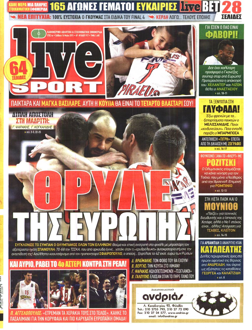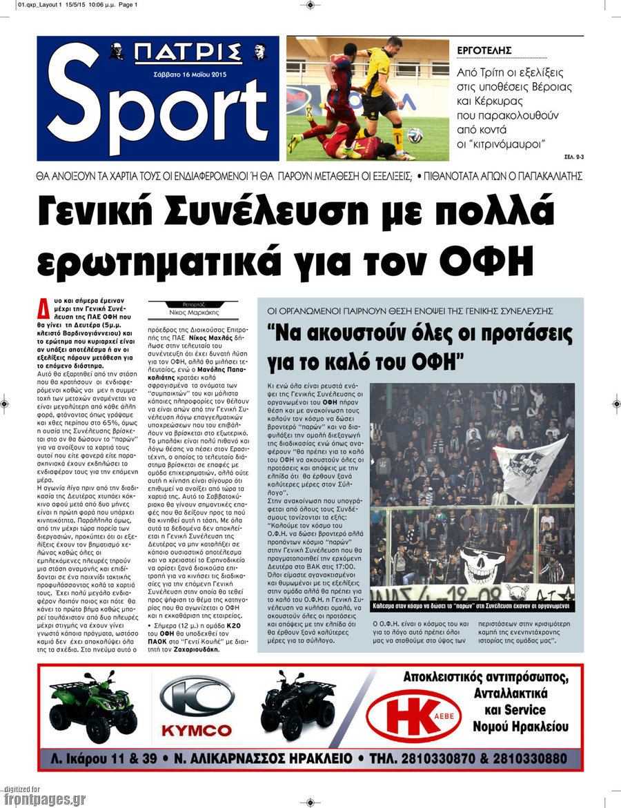 Οι αθλητικές εφημερίδες 16/5/2015 Enikos Newsroom 07:30, Σάββατο 16 Μαΐου 2015 Media Διαβάστε τα σημερινά πρωτοσέλιδα των αθλητικών εφημερίδων: ΑΘΛΗΤΙΚΕΣ ΕΦΗΜΕΡΙΔΕΣ ΠΡΩΤΟΣΕΛΙΔΑ Μοιράσου το: σχολίασε κι εσύ (0 σχόλια) Ακολουθήστε το enikos.gr στο Google News και μάθετε πρώτοι όλες τις ειδήσεις Δείτε όλες τις τελευταίες ειδήσεις από την Ελλάδα και τον Κόσμο στο enikos.gr Ειδήσεις Ροή Ειδήσεων 2 ώρες πριν Με εκτροπές η έξοδος των εκδρομέων για τις γιορτές – Τι ισχύει με τα μπλόκα των αγροτών, άνοιξαν 2 λωρίδες προς Αθήνα στα Μάλγαρα 4 ώρες πριν Μητσοτάκης στο Υπουργικό Συμβούλιο για αγροτικές κινητοποιήσεις: Η κυβέρνηση δεν πρόκειται να υποκύψει σε εκβιασμούς 1 ώρα πριν Μπλόκα της Τροχαίας: «Λερναία Ύδρα» τα γκρουπ στο Viber που προειδοποιούν για ελέγχους – Το «γκρίζο» νομικό τοπίο και οι νόμιμες εφαρμογές 2 ώρες πριν ΗΠΑ: Δημοσιεύθηκαν επιπλέον 8.000 έγγραφα του φακέλου Έπσταϊν – Ορισμένοι σύνδεσμοι δεν οδηγούν πουθενά 2 ώρες πριν Ιλίσια: Έπεσε ασανσέρ σε σούπερ μάρκετ – Σοβαρά τραυματισμένος ο συντηρητής 6 ώρες πριν Αυτά τα 4 ζώδια έχουν πολλά να περιμένουν μετά τη σημερινή ημέρα – «Έρχονται υπέροχα νέα» 5 ώρες πριν Αν πίνετε τον καφέ σας σκέτο, πιθανότατα διαθέτετε αυτά τα 7 ισχυρά χαρακτηριστικά 4 ώρες πριν Απώλεια βάρους: Γυναίκα που έχασε 10 κιλά λίπους μοιράζεται 4 «ρεαλιστικές» συμβουλές – «Δώστε προτεραιότητα στον ύπνο» 6 ώρες πριν Η Coca-Cola και ο Ελληνικός Ερυθρός Σταυρός μαζί αυτά τα Χριστούγεννα: Μια μεγάλη αγκαλιά για τους συνανθρώπους μας που έχουν ανάγκη 4 λεπτά πριν Χριστουγεννιάτικα κάλαντα στο Μέγαρο Μαξίμου – Ποιοι θα τα πουν αύριο στον Κυριάκο Μητσοτάκη 10 λεπτά πριν Γερμανία: Λιγότεροι οι επισκέπτες των χριστουγεννιάτικων αγορών – Φόβος για θέματα ασφαλείας και ακρίβεια οι αιτίες 16 λεπτά πριν Πιερία: Άρση προσωρινών κυκλοφοριακών ρυθμίσεων στην εθνική οδό Αθηνών – Θεσσαλονίκης 21 λεπτά πριν Έπσταϊν: Οι νέες αποκαλύψεις που «καίνε» τον πρώην πρίγκιπα Άντριου – Το email από το Μπαλμόραλ στη Μάξγουελ για να βρει «ακατάλληλους φίλους» 27 λεπτά πριν Χανιά: «Εσύ τουλάχιστον γύρνα» – Το συγκλονιστικό μήνυμα μητέρας που έχασε το παιδί της σε τροχαίο ENIKOS NETWORK Μπορεί η σοκολάτα να επιβραδύνει τη γήρανση; Τι ρόλο παίζει η θεοβρωμίνη Θεμιστοκλέους: Δεν υφίσταται λόγος ανησυχίας για την εποχική γρίπη Διεθνής Αερολιμένα Αθηνών: Νέο ρεκόρ στην επιβατική κίνηση το 2025 – Δείτε αναλυτικά τα στοιχεία Mega χριστουγεννιάτικη φορολοταρία: Μπείτε εδώ να δείτε εάν κερδίσατε 100.000 ευρώ Ο Google Assistant θα παραμείνει λίγο περισσότερο για ορισμένους χρήστες Android Τεστ προσωπικότητας: Το βάζο που θα επιλέξετε αποκαλύπτει πώς λύνετε προβλήματα στη ζωή σας περισσότερα 14:03 , Τρίτη 23 Δεκεμβρίου 2025 Έξοδος εκδρομέων για τα Χριστούγεννα: Στείλε βίντεο ή φωτογραφίες στο enikos.gr – Αποθήκευσε τον αριθμό 6944 05 05 05 Πολλοί έχουν επιλέξει να περάσουν τις γιορτές εκτός πόλης, ωστόσο και φέτος η μαζική έξοδος απ... 10:34 , Τρίτη 23 Δεκεμβρίου 2025 Την Κυριακή με τη Realnews: Ό,τι και αν αγοράσεις, σκανάρεις και κερδίζεις! Την Κυριακή με τη Realnews: Ό,τι και αν αγοράσεις, σκανάρεις και κερδίζεις! Με το PADU app, το... 07:01 , Τρίτη 23 Δεκεμβρίου 2025 Την Κυριακή με τη Realnews: Δωροεπιταγή 10€ Την Κυριακή με τη Realnews: Δωροεπιταγή 10€ Δωροεπιταγή αξίας 10€ για αγορές άνω των 60€ από τ... 20:16 , Δευτέρα 22 Δεκεμβρίου 2025 «Το παιδί από την αρχή»: Special edition επεισόδια της επιτυχημένης σειράς αρχίζουν από σήμερα στην ΕΡΤ1 «Το παιδί», η ξεχωριστή σειρά της ΕΡΤ1 με στ