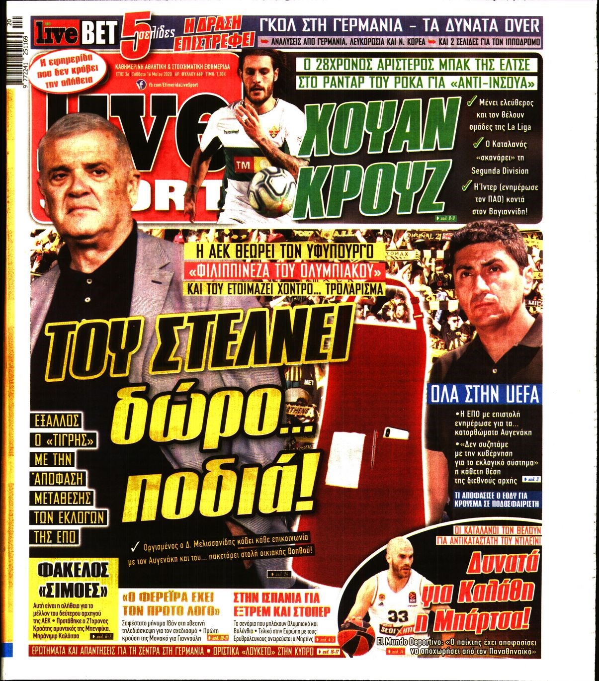 Οι αθλητικές εφημερίδες 16/5/2020 Διονύσης Νίκκας 08:23, Σάββατο 16 Μαΐου 2020 Media Διαβάστε τα πρωτοσέλιδα των αθλητικών εφημερίδων… ΑΘΛΗΤΙΚΕΣ ΕΦΗΜΕΡΙΔΕΣ ΠΡΩΤΟΣΕΛΙΔΑ Μοιράσου το: σχολίασε κι εσύ (0 σχόλια) Ακολουθήστε το enikos.gr στο Google News και μάθετε πρώτοι όλες τις ειδήσεις Δείτε όλες τις τελευταίες ειδήσεις από την Ελλάδα και τον Κόσμο στο enikos.gr Ειδήσεις Ροή Ειδήσεων 2 ώρες πριν Χριστούγεννα στα μπλόκα: Επιμένουν στις κινητοποιήσεις τους οι αγρότες – Ανοίγουν τα διόδια το Σαββατοκύριακο 3 ώρες πριν Ουκρανία: Η άνευ προηγουμένου επίθεση σε ρωσικό τάνκερ στη Μεσόγειο και το μήνυμα προς στον Πούτιν – Το «μακρύ χέρι» του Κιέβου 2 ώρες πριν Πούτιν: Τα μηνύματα σε Ευρώπη και ΝΑΤΟ από το μαραθώνιο «σόου» του – Η απαίτηση για «σεβασμό» και η ειρήνη «με τους όρους» της Μόσχας 3 ώρες πριν Τραμπ: Δεν αποκλείει την πιθανότητα ενός πολέμου στη Βενεζουέλα – «Ο Μαδούρο ξέρει καλύτερα από τον καθένα τι ακριβώς θέλω» 3 ώρες πριν Συνεχίζει να προκαλεί ο Μίτσκοσκι: «Για μένα το όνομα Μακεδονία είναι ιερό» 2 ώρες πριν Ανακαλύφθηκαν αρχαία χρυσά νομίσματα 2.200 ετών που απεικονίζουν τον θεό Απόλλωνα – Η άγνωστη σύνδεση με τον Φίλιππο Β΄ της Μακεδονίας 3 ώρες πριν Ύπνος: Μια κρυφή κατάσταση του εγκεφάλου πριν από τον ύπνο μπορεί να είναι το “κλειδί” για υψηλή ευφυΐα και δημιουργικότητα 4 ώρες πριν Αριθμολογία: Οι άνθρωποι που έχουν γεννηθεί αυτές τις 4 ημερομηνίες, συχνά παρεξηγούνται – «Η καλοσύνη τους κρύβει τεράστια δύναμη» 5 ώρες πριν Ξεχάστε το καθάρισμα το Σαββατοκύριακο: Ο «κανόνας των 20 λεπτών» που θα σας λύσει τα χέρια 36 δευτερόλεπτα πριν Ουκρανία: Ολοκληρώθηκαν οι συνομιλίες με τους Αμερικανούς κι Ευρωπαίους διαπραγματευτές 16 λεπτά πριν Μπαρτσελόνα – Μπασκόνια 134-124: Οι «μπλαουγκράνα» πήραν το ματς της χρονιάς ύστερα από τρεις παρατάσεις 31 λεπτά πριν Φαίη Σκορδά: «Παλιότερα τα κομπλιμέντα τα προσπερνούσα, τώρα τα έχω ανάγκη» 46 λεπτά πριν Βασίλης Σπανούλης: Δεν εμφανίστηκε ούτε ένας δημοσιογράφος στην συνέντευξη Τύπου – «Καλησπέρα στον… κανέναν», δείτε βίντεο 58 λεπτά πριν Πόλεμος στην Ουκρανία: Εφτά νεκροί από ρωσική πυραυλική επίθεση στο λιμάνι της Οδησσού ENIKOS NETWORK Το ΕΚΑΒ τιμήθηκε από την Ακαδημία Αθηνών για τα 40 χρόνια προσφοράς του Έχετε πραγματικά μεγάλη καρδιά; 10 χαρακτηριστικά όσων έχουν καλοσύνη Αναστολή μέτρων αναγκαστικής εκτέλεσης για κτηνοτρόφους που πλήττονται από την ευλογιά των αιγοπροβάτων Πλήρης επάρκεια προϊόντων στις λαϊκές της Αττικής, παρά τις αγροτικές κινητοποιήσεις – Τι απαντούν οι πωλητές Χαρτογραφώντας το «σημείο χωρίς επιστροφή»: Για πρώτη φορά αποκαλύπτεται με λεπτομέρεια το ακανθώδες όριο της ατμόσφαιρας τ... Η Google καταργεί τη λειτουργία «dark web report» – Πώς θα μπορούν οι χρήστες να διαγράφουν τα δεδομένα τους περισσότερα 22:42 , Παρασκευή 19 Δεκεμβρίου 2025 Γιώργος Γιαννόπουλος για “Το σόι σου”: “Είναι ευτυχία και ευλογία αυτή η σειρά” «Είναι ευτυχία και ευλογία η συγκυρία αυτής της σειράς», θα πει ο Γιώργος Γιαννόπουλος -ο αγαπ... 20:37 , Παρασκευή 19 Δεκεμβρίου 2025 Don’t Forget The Lyrics: Η Έλλη Κοκκίνου υποδέχεται 4 παίκτες που θα κάνουν τα πάντα για να μη χάσουν ούτε… μισή λέξη από τους στίχους Το «Don’t Forget The Lyrics» επιστρέφει απόψε, Παρασκευή 19 Δεκεμβρίου, στις 21:00 με νέο επει... 19:31 , Παρασκευή 19 Δεκεμβρίου 2025 GNTM: Απόψε ο μεγάλος τελικός για τους 4 φιναλίστ Έπειτα από μήνες γεμάτους μόδα, δημιουργία και έντονες αναμετρήσεις, το GNTM 2025 κορυφώνε