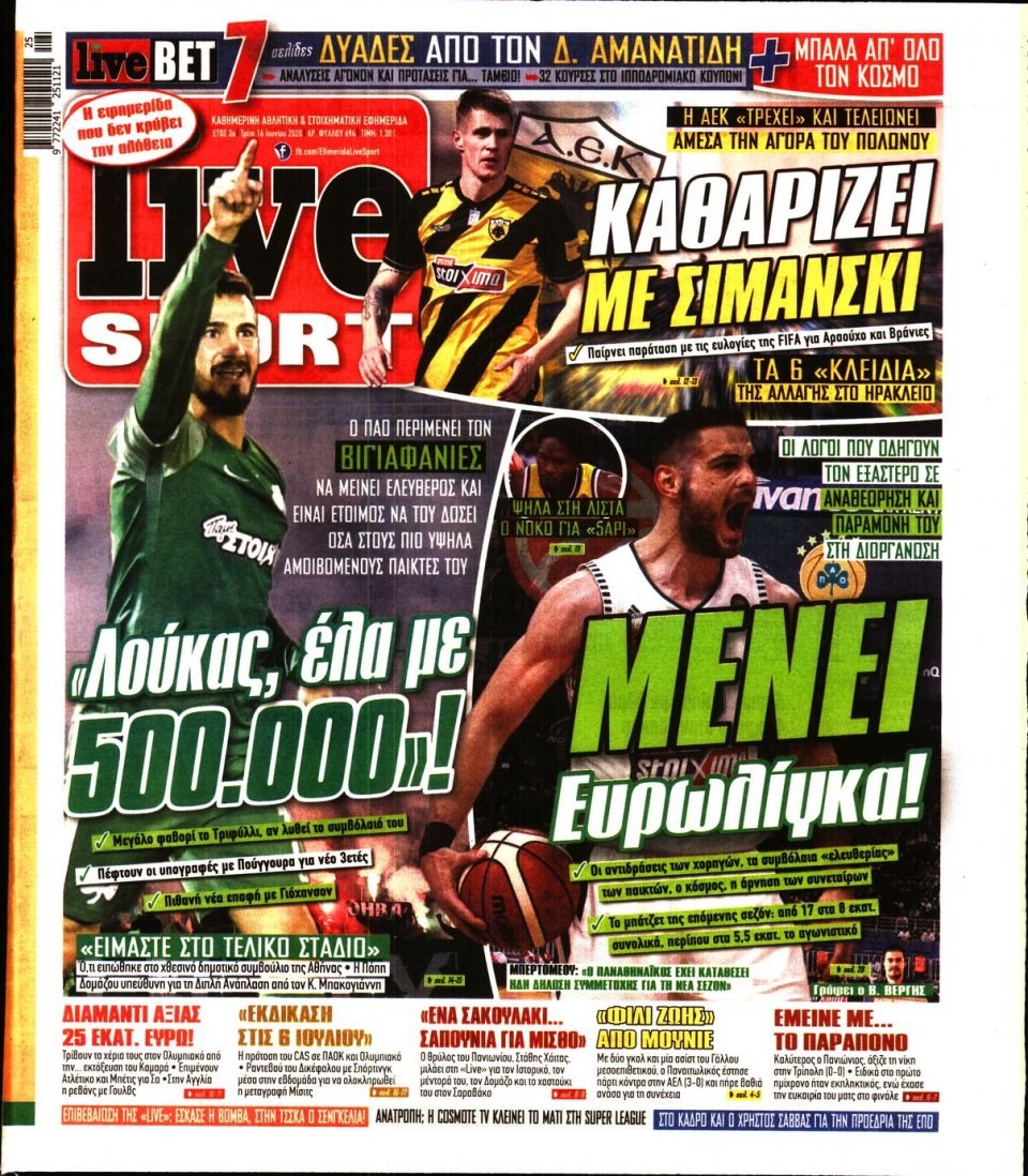 Οι αθλητικές εφημερίδες 16/6/2020 Σήφης Γαρυφαλάκης 06:15, Τρίτη 16 Ιουνίου 2020 Media Διαβάστε τα πρωτοσέλιδα των αθλητικών εφημερίδων… ΑΘΛΗΤΙΚΕΣ ΕΦΗΜΕΡΙΔΕΣ ΕΦΗΜΕΡΙΔΕΣ ΠΡΩΤΟΣΕΛΙΔΑ ΠΡΩΤΟΣΕΛΙΔΑ ΕΦΗΜΕΡΙΔΩΝ Μοιράσου το: σχολίασε κι εσύ (0 σχόλια) Ακολουθήστε το enikos.gr στο Google News και μάθετε πρώτοι όλες τις ειδήσεις Δείτε όλες τις τελευταίες ειδήσεις από την Ελλάδα και τον Κόσμο στο enikos.gr Ειδήσεις Ροή Ειδήσεων 18 λεπτά πριν LIVE από Λοριάν: Η ύψωση της ελληνικής σημαίας στην πρώτη φρεγάτα FDI Belharra ΚΙΜΩΝ 30 λεπτά πριν Στην Ευελπίδων ο 22χρονος που καταγγέλλει τον Γιώργο Μαζωνάκη για ασελγείς πράξεις – «Έχουμε εμπιστοσύνη στη Δικαιοσύνη, καμία εκβίαση» λέει ο δικηγόρος του 3 ώρες πριν Νίκος Παππάς: Άφαντος παραμένει ο ευρωβουλευτής μετά την επίθεση στον Νίκο Γιαννόπουλο 1 ώρα πριν Βρυξέλλες: Ένταση με τους αγρότες – Πέταξαν πατάτες και κροτίδες 3 ώρες πριν Συναγερμός και στην Ελλάδα για τη «σούπερ γρίπη»: Πόσο σοβαρή είναι και ποιοι θεωρούνται πιο ευάλωτοι – 3 ειδικοί μιλούν στο enikos.gr 3 ώρες πριν Τα 4 ζώδια που λαμβάνουν ένα ισχυρό σημάδι από το σύμπαν – «Αποκαλύπτεται κάτι που μπορεί να αλλάξει τη ζωή μας» 4 ώρες πριν Η σύζυγός του παραπονιέται για τα χρήματα που της δίνει για ψώνια κάθε μήνα – «Λέει ότι νιώθει φτωχή και της είπα να βρει δουλειά» 2 ώρες πριν Αν κάνετε συνεχώς αυτά τα 8 πράγματα με τα κατοικίδιά σας, σας λείπει η ανθρώπινη επαφή 1 ημέρα πριν 20 χρόνια τα Χριστούγεννα ξεκινούν στα Public με μεγάλη ποικιλία σε δώρα! 4 λεπτά πριν Χαρίτσης: «Ο κ. Μητσοτάκης έδωσε το πράσινο φως για το λουκέτο στα ΕΛΤΑ» 8 λεπτά πριν Κατερίνα Καινούργιου για Γιώργο Μαζωνάκη: «Θεωρώ φρικτό αυτό το τσίρκο που έχει συμβεί τις τελευταίες μέρες στα Μέσα» 14 λεπτά πριν Μαρινάκης για Νίκο Παππά: Να δώσει απαντήσεις ο άνθρωπος που τον έβαλε στην πολιτική – Ήταν προσωπική επιλογή Τσίπρα 18 λεπτά πριν LIVE από Λοριάν: Η ύψωση της ελληνικής σημαίας στην πρώτη φρεγάτα FDI Belharra ΚΙΜΩΝ 20 λεπτά πριν Θεσσαλονίκη: Υπό κράτηση ο 48χρονος που κατηγορείται για φοροδιαφυγή ύψους 29,6 εκατ. ευρώ στη Γερμανία ENIKOS NETWORK Όμιλος ΙΑΤΡΟΠΟΛΙΣ: Πρωτοπόροι στη μοριακή απεικόνιση και στην πυρηνική ιατρική Τι περιλαμβάνει το σχέδιο της ΕΕ για την καρδιαγγειακή υγεία-Οι προτάσεις της Ελληνικής Καρδιολογικής Εταιρείας Ενοίκια: Τι αλλάζει με τη νέα τροπολογία στην πληρωμή Ειδικό επιδοτούμενο πρόγραμμα κατάρτισης από ΔΥΠΑ και ΕΛΓΟ – ΔΗΜΗΤΡΑ: Έως αύριο οι ενστάσεις – Όσα πρέπει να γνωρίζετε Χαρτογραφώντας το «σημείο χωρίς επιστροφή»: Για πρώτη φορά αποκαλύπτεται με λεπτομέρεια το ακανθώδες όριο της ατμόσφαιρας τ... Η Google καταργεί τη λειτουργία «dark web report» – Πώς θα μπορούν οι χρήστες να διαγράφουν τα δεδομένα τους περισσότερα 08:00 , Πέμπτη 18 Δεκεμβρίου 2025 Την Κυριακή με τη Realnews: Δωροεπιταγή 10€ Δωροεπιταγή αξίας 10€ για αγορές άνω των 60€ από τα πολυκαταστήματα FactoryOutlet H προσφορά ι... 07:50 , Πέμπτη 18 Δεκεμβρίου 2025 «Το σόι σου»: Backstage στα γυρίσματα για το εορταστικό επεισόδιο «Το σόι σου» φορά τα γιορτινά του για τα Χριστούγεννα και η Όλγα Λαφαζάνη, με την κάμερα του «... 07:36 , Πέμπτη 18 Δεκεμβρίου 2025 Οι αθλητικές μεταδόσεις 18/12/2025 – Πού θα δείτε τον αγώνα της ΑΕΚ με την Κραϊόβα για το Conference League Τα ματς ΑΕΚ – Ουνιβερσιτάτεα Κραϊόβα για το Conference League και Παναθηναϊκός – Χάποελ Τελ Αβ... 05:48 , Πέμπτη 18 Δεκεμβρίου 2025 Οι οικονομικές εφημερίδες 18/12/2025 Διαβάστε τα πρωτοσέλιδα από τις οικονομικές εφημερίδες, σήμερα 18/12/2025. ΤΕΛΕΥΤΑΙΕΣ ΕΙΔΗΣΕΙΣ 4 λε