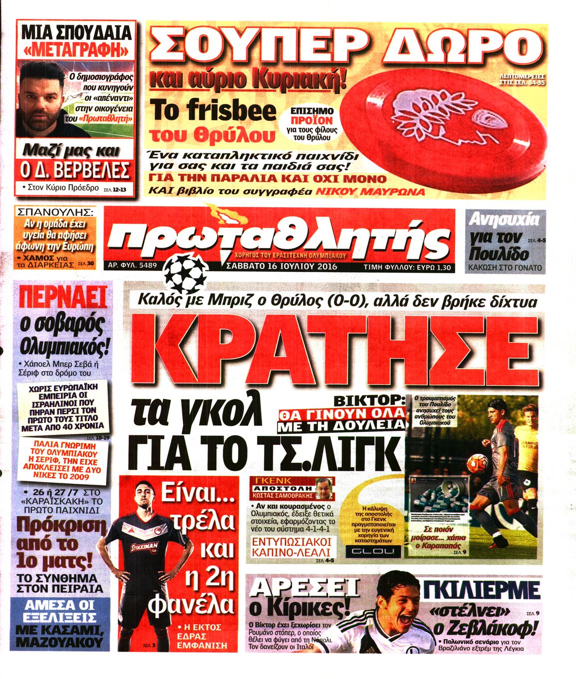Οι αθλητικές εφημερίδες 16/7/2016 Enikos Newsroom 08:23, Σάββατο 16 Ιουλίου 2016 Media Διαβάστε τα σημερινά πρωτοσέλιδα των αθλητικών εφημερίδων. ΑΘΛΗΤΙΚΕΣ ΕΦΗΜΕΡΙΔΕΣ ΠΡΩΤΟΣΕΛΙΔΑ Μοιράσου το: σχολίασε κι εσύ (0 σχόλια) Ακολουθήστε το enikos.gr στο Google News και μάθετε πρώτοι όλες τις ειδήσεις Δείτε όλες τις τελευταίες ειδήσεις από την Ελλάδα και τον Κόσμο στο enikos.gr Ειδήσεις Ροή Ειδήσεων 2 ώρες πριν Αγρότες: «Όχι στον διάλογο, μας εμπαίζει η κυβέρνηση» – Αποφάσισαν κλιμάκωση των κινητοποιήσεων, τι θα γίνει τα Χριστούγεννα 3 ώρες πριν Την πρώτη Belharra παρέλαβε η χώρα μας, υψώθηκε η ελληνική σημαία στη φρεγάτα «Κίμων» – Δένδιας: «Το ισχυρότερο Πολεμικό Ναυτικό που είχε ποτέ ο ελληνισμός» 30 λεπτά πριν Γιώργος Μαζωνάκης: «Έχει υποστεί ένα σωρό εκβιαστικές πρακτικές – Του είπαν ότι θα του βάλουν τον συγκεκριμένο άνθρωπο να τον καταγγείλει» 2 ώρες πριν Μιχάλης Χουρδάκης: «Είμαι διαθέσιμος να συμβάλω στην προσωρινή κάλυψη του ιατρείου της Ψερίμου» – Η επιστολή στον Άδωνι Γεωργιάδη 2 ώρες πριν Εξώδικο Γεωργιάδη στην Κωνσταντοπούλου – «Με κατηγόρησε ότι έχω καταδικαστεί για παιδεραστία» 3 ώρες πριν Τα 5 ζώδια που θα ευνοηθούν στα οικονομικά τους το 2026 – «Τραβούν το χρήμα σαν μαγνήτες» 8 ώρες πριν Αν κάνετε συνεχώς αυτά τα 8 πράγματα με τα κατοικίδιά σας, σας λείπει η ανθρώπινη επαφή 4 ώρες πριν Αυτό που κρύβεται κάτω από τη Γροιλανδία θα μπορούσε να ανατρέψει όσα γνωρίζουμε για την άνοδο της στάθμης των θαλασσών 1 ημέρα πριν 20 χρόνια τα Χριστούγεννα ξεκινούν στα Public με μεγάλη ποικιλία σε δώρα! 8 λεπτά πριν Σωκράτης Φάμελλος: Τα γλυκά στους δημοσιογράφους, το «πάμε όλοι μαζί να ρίξουμε τον Μητσοτάκη» και η ατάκα για τον Τσίπρα 13 λεπτά πριν Εξαφάνιση 14χρονης από χώρο φιλοξενίας στην Αθήνα – ΦΩΤΟ 18 λεπτά πριν Η πρώτη αντίδραση της κυβέρνησης μετά την απόφαση των αγροτών – «Όχι στην κλιμάκωση και ταλαιπωρία της κοινωνίας» 25 λεπτά πριν Ευγενία Σαμαρά, Λάμπρος Φισφής και Βασίλης Μαυρογεωργίου γίνονται μέρος της πιο φωτεινής χριστουγεννιάτικης πρωτοβουλίας – Mε τα Ευχοστολίδια του ΟΠΑΠ κάνουμε πραγματικότητα τις ευχές παιδιών που έχουν ανάγκη 30 λεπτά πριν Γιώργος Μαζωνάκης: «Έχει υποστεί ένα σωρό εκβιαστικές πρακτικές – Του είπαν ότι θα του βάλουν τον συγκεκριμένο άνθρωπο να τον καταγγείλει» ENIKOS NETWORK Ξεκίνησε η «επέλαση» της γρίπης στην Ελλάδα-Ποιοι κινδυνεύουν ΕΟΔΥ: Δωρεάν τεστ για HIV, Ηπατίτιδες, Σύφιλη, Χλαμύδια, Γονόρροια Προσλήψεις σε Δήμο: Ποιοι μπορούν να κάνουν αίτηση έως αύριο – Οι ειδικότητες Αμετάβλητα για τέταρτη συνεχόμενη φορά τα επιτόκια της ΕΚΤ – Ποιες είναι οι προβλέψεις για τον πληθωρισμό και την οικονομία... Χαρτογραφώντας το «σημείο χωρίς επιστροφή»: Για πρώτη φορά αποκαλύπτεται με λεπτομέρεια το ακανθώδες όριο της ατμόσφαιρας τ... Η Google καταργεί τη λειτουργία «dark web report» – Πώς θα μπορούν οι χρήστες να διαγράφουν τα δεδομένα τους περισσότερα 17:45 , Πέμπτη 18 Δεκεμβρίου 2025 ROUK ZOUK: Εορταστικό επεισόδιο με καλεσμένους τους πρωταγωνιστές του «Γιατί ρε πατέρα» Το Σάββατο 20 Δεκεμβρίου στις 21:00, η Ζέτα Μακρυπούλια υποδέχεται εκλεκτούς ηθοποιούς που όλο... 17:20 , Πέμπτη 18 Δεκεμβρίου 2025 Άγιος έρωτας: Η Χριστίνα εξομολογείται στον πατέρα Νικόλαο, απόψε στις 21:00 στον Alpha Η Νότα αποφασίζει να εκδικηθεί τον Πέτρο και τον Στέφανο, για χάρη του Λούη, όμως τα πράγματα ... 16:50 , Πέμπτη 18 Δεκεμβρίου 2025 Να μ’ αγαπάς: Ζωή και Φωτεινή συμφιλιώνονται ως μάνα με κόρη, απόψε στις 20:00 Η ταυ
