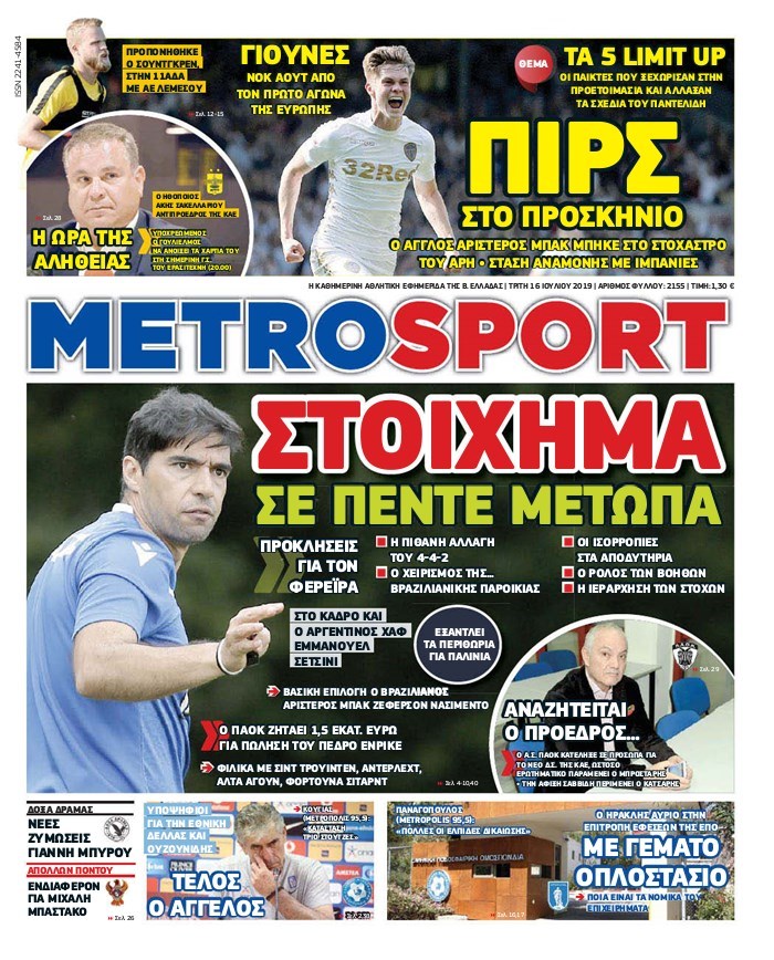Οι αθλητικές εφημερίδες 16/7/2019 Κώστας Τεό 07:07, Τρίτη 16 Ιουλίου 2019 Media Διαβάστε τα πρωτοσέλιδα των αθλητικών εφημερίδων: ΑΘΛΗΤΙΚΕΣ ΕΦΗΜΕΡΙΔΕΣ ΠΡΩΤΟΣΕΛΙΔΑ Μοιράσου το: σχολίασε κι εσύ (0 σχόλια) Ακολουθήστε το enikos.gr στο Google News και μάθετε πρώτοι όλες τις ειδήσεις Δείτε όλες τις τελευταίες ειδήσεις από την Ελλάδα και τον Κόσμο στο enikos.gr Ειδήσεις Ροή Ειδήσεων 3 ώρες πριν Χριστούγεννα στα μπλόκα: Επιμένουν στις κινητοποιήσεις τους οι αγρότες – Ανοίγουν τα διόδια το Σαββατοκύριακο 3 ώρες πριν Ουκρανία: Η άνευ προηγουμένου επίθεση σε ρωσικό τάνκερ στη Μεσόγειο και το μήνυμα προς στον Πούτιν – Το «μακρύ χέρι» του Κιέβου 3 ώρες πριν Πούτιν: Τα μηνύματα σε Ευρώπη και ΝΑΤΟ από το μαραθώνιο «σόου» του – Η απαίτηση για «σεβασμό» και η ειρήνη «με τους όρους» της Μόσχας 3 ώρες πριν Τραμπ: Δεν αποκλείει την πιθανότητα ενός πολέμου στη Βενεζουέλα – «Ο Μαδούρο ξέρει καλύτερα από τον καθένα τι ακριβώς θέλω» 4 ώρες πριν Συνεχίζει να προκαλεί ο Μίτσκοσκι: «Για μένα το όνομα Μακεδονία είναι ιερό» 3 ώρες πριν Ανακαλύφθηκαν αρχαία χρυσά νομίσματα 2.200 ετών που απεικονίζουν τον θεό Απόλλωνα – Η άγνωστη σύνδεση με τον Φίλιππο Β΄ της Μακεδονίας 4 ώρες πριν Ύπνος: Μια κρυφή κατάσταση του εγκεφάλου πριν από τον ύπνο μπορεί να είναι το “κλειδί” για υψηλή ευφυΐα και δημιουργικότητα 5 ώρες πριν Αριθμολογία: Οι άνθρωποι που έχουν γεννηθεί αυτές τις 4 ημερομηνίες, συχνά παρεξηγούνται – «Η καλοσύνη τους κρύβει τεράστια δύναμη» 6 ώρες πριν Ξεχάστε το καθάρισμα το Σαββατοκύριακο: Ο «κανόνας των 20 λεπτών» που θα σας λύσει τα χέρια 12 λεπτά πριν Euroleague: Επέστρεψε στις νίκες ο Ολυμπιακός, πήρε την ματσάρα της χρονιάς η Μπάρτσα – Τα αποτελέσματα και η βαθμολογία 27 λεπτά πριν Συρία: Μαζικά πλήγματα των ΗΠΑ σε θέσεις του Ισλαμικού Κράτους – Χέγκσεθ: «Δεν είναι αρχή πολέμου, είναι μια δήλωση εκδίκησης» για το θάνατο των στρατιωτών μας 40 λεπτά πριν Ουκρανία: Ολοκληρώθηκαν οι συνομιλίες με τους Αμερικανούς κι Ευρωπαίους διαπραγματευτές 55 λεπτά πριν Μπαρτσελόνα – Μπασκόνια 134-124: Οι «μπλαουγκράνα» πήραν το ματς της χρονιάς ύστερα από τρεις παρατάσεις 1 ώρα πριν Φαίη Σκορδά: «Παλιότερα τα κομπλιμέντα τα προσπερνούσα, τώρα τα έχω ανάγκη» ENIKOS NETWORK Το ΕΚΑΒ τιμήθηκε από την Ακαδημία Αθηνών για τα 40 χρόνια προσφοράς του Έχετε πραγματικά μεγάλη καρδιά; 10 χαρακτηριστικά όσων έχουν καλοσύνη Αναστολή μέτρων αναγκαστικής εκτέλεσης για κτηνοτρόφους που πλήττονται από την ευλογιά των αιγοπροβάτων Πλήρης επάρκεια προϊόντων στις λαϊκές της Αττικής, παρά τις αγροτικές κινητοποιήσεις – Τι απαντούν οι πωλητές Χαρτογραφώντας το «σημείο χωρίς επιστροφή»: Για πρώτη φορά αποκαλύπτεται με λεπτομέρεια το ακανθώδες όριο της ατμόσφαιρας τ... Η Google καταργεί τη λειτουργία «dark web report» – Πώς θα μπορούν οι χρήστες να διαγράφουν τα δεδομένα τους περισσότερα 22:42 , Παρασκευή 19 Δεκεμβρίου 2025 Γιώργος Γιαννόπουλος για “Το σόι σου”: “Είναι ευτυχία και ευλογία αυτή η σειρά” «Είναι ευτυχία και ευλογία η συγκυρία αυτής της σειράς», θα πει ο Γιώργος Γιαννόπουλος -ο αγαπ... 20:37 , Παρασκευή 19 Δεκεμβρίου 2025 Don’t Forget The Lyrics: Η Έλλη Κοκκίνου υποδέχεται 4 παίκτες που θα κάνουν τα πάντα για να μη χάσουν ούτε… μισή λέξη από τους στίχους Το «Don’t Forget The Lyrics» επιστρέφει απόψε, Παρασκευή 19 Δεκεμβρίου, στις 21:00 με νέο επει... 19:31 , Παρασκευή 19 Δεκεμβρίου 2025 GNTM: Απόψε ο μεγάλος τελικός για τους 4 φιναλίστ Έπειτα από μήνες γεμάτους μόδα, δημιουργ