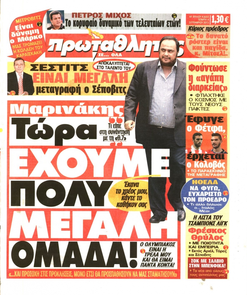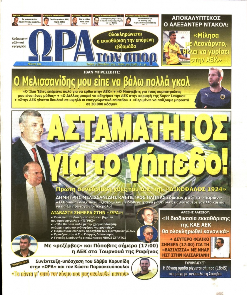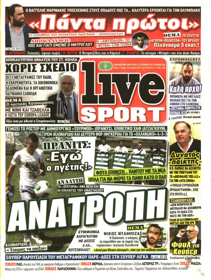 Οι αθλητικές εφημερίδες Enikos Newsroom 08:52, Τετάρτη 04 Σεπτεμβρίου 2013 Media Οι αθλητικές εφημερίδες Διαβάστε τα πρωτοσέλιδα των αθλητικών εφημερίδων: ΑΘΛΗΤΙΚΕΣ ΕΦΗΜΕΡΙΔΕΣ ΕΦΗΜΕΡΙΔΕΣ ΠΡΩΤΟΣΕΛΙΔΑ Μοιράσου το: σχολίασε κι εσύ (0 σχόλια) Ακολουθήστε το enikos.gr στο Google News και μάθετε πρώτοι όλες τις ειδήσεις Δείτε όλες τις τελευταίες ειδήσεις από την Ελλάδα και τον Κόσμο στο enikos.gr Ειδήσεις Ροή Ειδήσεων 3 ώρες πριν Ακίλα Σάλεχ: «Άκυρο» το τουρκολιβυκό μνημόνιο λέει ο πρόεδρος της λιβυκής Βουλής – Ανοίγει ο διάλογος με Ελλάδα, Αίγυπτο και Τουρκία 7 ώρες πριν Αγρότες: Την Τρίτη η απόφαση για διάλογο ή κλιμάκωση των κινητοποιήσεών τους – Πώς χαρακτηρίζουν τις ανακοινώσεις Τσιάρα και οι επόμενες κινήσεις 7 ώρες πριν Τραμπ για Ουκρανία: «Είμαστε πιο κοντά σε συμφωνία από ποτέ» – «Πολυεθνική δύναμη» προτείνουν οι Ευρωπαίοι 7 ώρες πριν Κυψέλη: Η 16χρονη που μαχαίρωσε την 14χρονη είχε συλληφθεί 3 φορές στο παρελθόν – Έβριζε καθηγητές, έβαζε φωτιές σε κάδους και εκβίαζε συμμαθητές της 6 ώρες πριν Τρομοκρατική επίθεση στο Σίδνεϊ: Θλίψη για τα 15 θύματα – Οργή στην εβραϊκή κοινότητα που προειδοποιούσε επί δύο χρόνια 7 ώρες πριν Επιστήμονες ίσως έλυσαν το μυστήριο γύρω από τα Χόμπιτ – Νέα έρευνα αποκαλύπτει πώς εξαφανίστηκαν 8 ώρες πριν Ύπνος: Η αρχαία μορφή άσκησης που αποδεικνύεται αποτελεσματική στην αντιμετώπιση της αϋπνίας, σύμφωνα με μελέτη 9 ώρες πριν Αριθμολογία: Ο τυχερός σας αριθμός, ανάλογα με τον μήνα γέννησής σας 10 ώρες πριν Πώς να μην μαραίνονται γρήγορα τα κομμένα λουλούδια: Το λάθος στην τοποθέτηση του βάζου που πρέπει να αποφεύγετε 4 λεπτά πριν Οι αθλητικές εφημερίδες 16/12/2025 9 λεπτά πριν Οι πολιτικές εφημερίδες 16/12/2025 17 λεπτά πριν Τα ζώδια σήμερα, Τρίτη 16 Δεκεμβρίου: Ιχθύες, δεν χρειάζεται να έχετε όλες τις απαντήσεις 25 λεπτά πριν Εφημερεύοντα φαρμακεία σε Αθήνα και Θεσσαλονίκη (16/12) 32 λεπτά πριν Οκτώ νεκροί σε πλήγματα των ΗΠΑ κατά τριών σκαφών που φέρεται να μετέφεραν ναρκωτικά στον Ανατολικό Ειρηνικό ENIKOS NETWORK Πότε το χρόνιο ροχαλητό να αποτελέσει ένδειξη κινδύνου για την καρδιά; Τι λένε οι ειδικοί Μάριος Θεμιστοκλέους: Το ΕΣΥ ενισχύεται, εκσυγχρονίζεται, αλλάζει ΕΒΕΠ για αγροτικές κινητοποιήσεις: Κάθε επιπλέον εβδομάδα προσθέτει περίπου 200 εκατ. ευρώ ζημιά Τι προβλέπει το νομοσχέδιο του υπουργείου Εθνικής Άμυνας – Oι αλλαγές στους μισθούς Σύγχρονος Νοστράδαμος: Προειδοποιεί για «μεγάλο γεγονός» τους επόμενους μήνες που θα συγκλονίσει τη Βρετανία και τον κόσμο Τεστ παρατηρητικότητας: Μπορείτε να βρείτε τις 3 διαφορές στις εικόνες με έναν πιγκουίνο σε 14 δευτερόλεπτα περισσότερα 05:43 , Τρίτη 16 Δεκεμβρίου 2025 Οι αθλητικές εφημερίδες 16/12/2025 Διαβάστε τα πρωτοσέλιδα από τις αθλητικές εφημερίδες, σήμερα 16/12/2025. 05:38 , Τρίτη 16 Δεκεμβρίου 2025 Οι πολιτικές εφημερίδες 16/12/2025 Διαβάστε τα πρωτοσέλιδα από τις πολιτικές εφημερίδες, σήμερα 16/12/2025. 21:35 , Δευτέρα 15 Δεκεμβρίου 2025 Το Σπίτι Δίπλα Στο Ποτάμι: Η Ιουλία και ο Φωκάς μετακομίζουν στη Ρόδο – Δύο νέοι χαρακτήρες μπαίνουν στη σειρά Δύο νέοι, κομβικοί χαρακτήρες κάνουν την εμφάνισή τους αυτή την εβδομάδα στην αγαπημένη σειρά ... 19:46 , Δευτέρα 15 Δεκεμβρίου 2025 Άγιος έρωτας: Η Χριστίνα λέει την αλήθεια στον Αντρέα Ο Βασίλης δέχεται επίθεση από τους συμμαθητές του, η Αναστασία είναι συντετριμμένη με την απώλ... ΤΕΛΕΥΤΑΙΕΣ ΕΙΔΗΣΕΙΣ 4 λεπτά πριν Οι αθλητικές εφημερίδες 16/12/2025 9 λεπτά πριν Οι πολιτικές εφημερίδες 16/12/2025 17 λεπτά 
