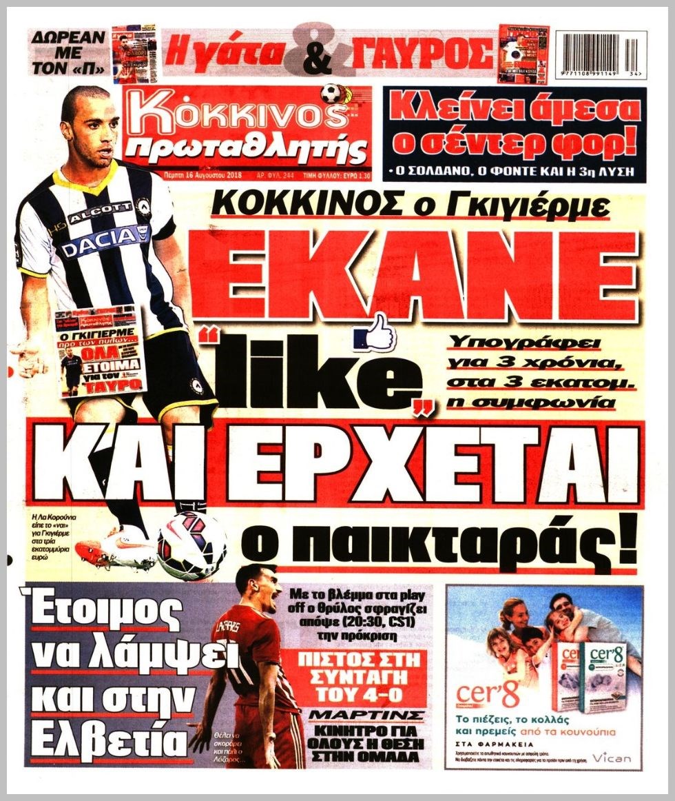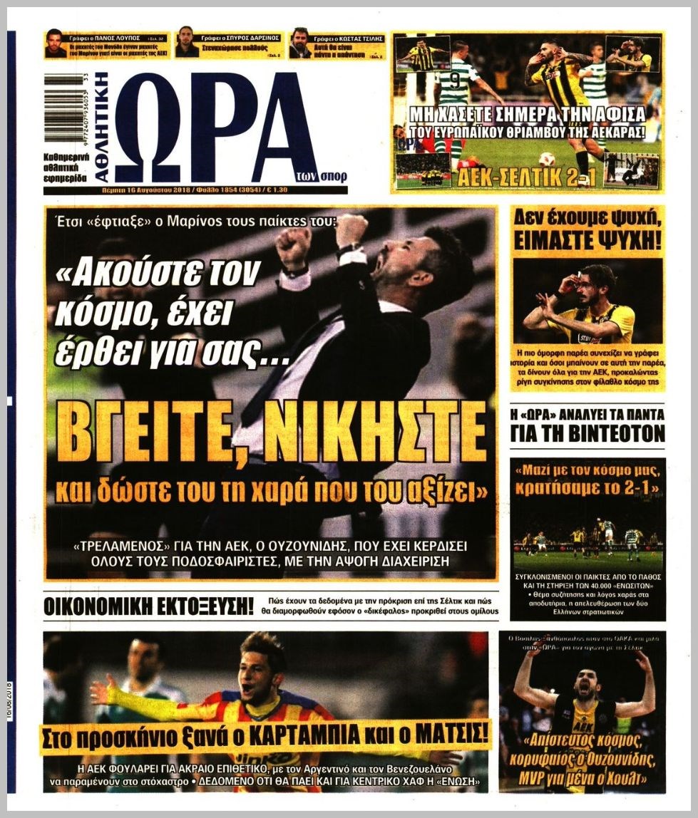 Οι αθλητικές εφημερίδες 16/8/2018 Enikos Newsroom 06:50, Πέμπτη 16 Αυγούστου 2018 Media Διαβάστε τα πρωτοσέλιδα… ΑΘΛΗΤΙΚΕΣ ΕΦΗΜΕΡΙΔΕΣ Μοιράσου το: σχολίασε κι εσύ (0 σχόλια) Ακολουθήστε το enikos.gr στο Google News και μάθετε πρώτοι όλες τις ειδήσεις Δείτε όλες τις τελευταίες ειδήσεις από την Ελλάδα και τον Κόσμο στο enikos.gr Ειδήσεις Ροή Ειδήσεων 13 λεπτά πριν Χριστούγεννα στα μπλόκα: Επιμένουν στις κινητοποιήσεις τους οι αγρότες – Ανοίγουν τα διόδια το Σαββατοκύριακο 41 λεπτά πριν Τραμπ: Δεν αποκλείει την πιθανότητα ενός πολέμου στη Βενεζουέλα – «Ο Μαδούρο ξέρει καλύτερα από τον καθένα τι ακριβώς θέλω» 36 λεπτά πριν Ουκρανία: Η άνευ προηγουμένου επίθεση σε ρωσικό τάνκερ στη Μεσόγειο και το μήνυμα προς στον Πούτιν – Το «μακρύ χέρι» του Κιέβου 3 ώρες πριν Πούτιν: «Ναι, είμαι ερωτευμένος» – Βίντεο από τη σπάνια προσωπική παραδοχή του 1 ώρα πριν Συνεχίζει να προκαλεί ο Μίτσκοσκι: «Για μένα το όνομα Μακεδονία είναι ιερό» 2 ώρες πριν Αριθμολογία: Οι άνθρωποι που έχουν γεννηθεί αυτές τις 4 ημερομηνίες, συχνά παρεξηγούνται – «Η καλοσύνη τους κρύβει τεράστια δύναμη» 4 ώρες πριν Μήπως έχετε χάσει τον εαυτό σας στη σχέση σας; 7 «αθόρυβες» υποχωρήσεις που μάλλον κάνατε, χωρίς να το συνειδητοποιήσετε 3 ώρες πριν Ξεχάστε το καθάρισμα το Σαββατοκύριακο: Ο «κανόνας των 20 λεπτών» που θα σας λύσει τα χέρια 51 λεπτά πριν Ύπνος: Μια κρυφή κατάσταση του εγκεφάλου πριν από τον ύπνο μπορεί να είναι το “κλειδί” για υψηλή ευφυΐα και δημιουργικότητα 3 λεπτά πριν Παναθηναϊκός: «Μέσα» οι Σφιντέρσκι και Τουμπά για το ματς με τον ΠΑΟΚ – Τι έδειξε η μαγνητική του Πάντοβιτς 8 λεπτά πριν Γιώργος Γιαννόπουλος για “Το σόι σου”: “Είναι ευτυχία και ευλογία αυτή η σειρά” 13 λεπτά πριν Χριστούγεννα στα μπλόκα: Επιμένουν στις κινητοποιήσεις τους οι αγρότες – Ανοίγουν τα διόδια το Σαββατοκύριακο 24 λεπτά πριν Χάρι και Μέγκαν: Η σπάνια οικογενειακή φωτογραφία με τον Άρτσι και τη Λίλιμπετ – Τι σχεδιάζουν για τα Χριστούγεννα 31 λεπτά πριν Βασίλης Καρράς: «Είναι πάντα δίπλα μου, δεν έφυγε…», λέει ο αδελφός του ENIKOS NETWORK Το ΕΚΑΒ τιμήθηκε από την Ακαδημία Αθηνών για τα 40 χρόνια προσφοράς του Έχετε πραγματικά μεγάλη καρδιά; 10 χαρακτηριστικά όσων έχουν καλοσύνη Πλήρης επάρκεια προϊόντων στις λαϊκές της Αττικής, παρά τις αγροτικές κινητοποιήσεις – Τι απαντούν οι πωλητές ΑΑΔΕ: Νέες αναβαθμίσεις στο Ψηφιακό Πελατολόγιο και την εφαρμογή myDATAapp – Τι πρέπει να γνωρίζετε Χαρτογραφώντας το «σημείο χωρίς επιστροφή»: Για πρώτη φορά αποκαλύπτεται με λεπτομέρεια το ακανθώδες όριο της ατμόσφαιρας τ... Η Google καταργεί τη λειτουργία «dark web report» – Πώς θα μπορούν οι χρήστες να διαγράφουν τα δεδομένα τους περισσότερα 22:42 , Παρασκευή 19 Δεκεμβρίου 2025 Γιώργος Γιαννόπουλος για “Το σόι σου”: “Είναι ευτυχία και ευλογία αυτή η σειρά” «Είναι ευτυχία και ευλογία η συγκυρία αυτής της σειράς», θα πει ο Γιώργος Γιαννόπουλος -ο αγαπ... 20:37 , Παρασκευή 19 Δεκεμβρίου 2025 Don’t Forget The Lyrics: Η Έλλη Κοκκίνου υποδέχεται 4 παίκτες που θα κάνουν τα πάντα για να μη χάσουν ούτε… μισή λέξη από τους στίχους Το «Don’t Forget The Lyrics» επιστρέφει απόψε, Παρασκευή 19 Δεκεμβρίου, στις 21:00 με νέο επει... 19:31 , Παρασκευή 19 Δεκεμβρίου 2025 GNTM: Απόψε ο μεγάλος τελικός για τους 4 φιναλίστ Έπειτα από μήνες γεμάτους μόδα, δημιουργία και έντονες αναμετρήσεις, το GNTM 2025 κορυφώνεται,... 18:11 , Παρασκευή 19 Δεκεμβρίου 2025 Το σόι σου: Ο Άρης έρχεται στην Ελλάδα για τις γιορτές των Χριστουγέννων – Τι θα δ
