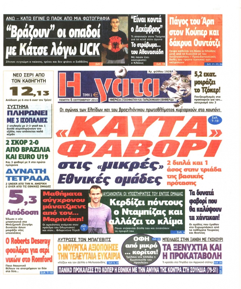 Οι αθλητικές εφημερίδες Enikos Newsroom 08:59, Πέμπτη 05 Σεπτεμβρίου 2013 Media Οι αθλητικές εφημερίδες Διαβάστε τα πρωτοσέλιδα των αθλητικών εφημερίδων: ΑΘΛΗΤΙΚΕΣ ΕΦΗΜΕΡΙΔΕΣ ΕΦΗΜΕΡΙΔΕΣ ΠΡΩΤΟΣΕΛΙΔΑ Μοιράσου το: σχολίασε κι εσύ (0 σχόλια) Ακολουθήστε το enikos.gr στο Google News και μάθετε πρώτοι όλες τις ειδήσεις Δείτε όλες τις τελευταίες ειδήσεις από την Ελλάδα και τον Κόσμο στο enikos.gr Ειδήσεις Ροή Ειδήσεων 3 ώρες πριν Ακίλα Σάλεχ: «Άκυρο» το τουρκολιβυκό μνημόνιο λέει ο πρόεδρος της λιβυκής Βουλής – Ανοίγει ο διάλογος με Ελλάδα, Αίγυπτο και Τουρκία 8 ώρες πριν Αγρότες: Την Τρίτη η απόφαση για διάλογο ή κλιμάκωση των κινητοποιήσεών τους – Πώς χαρακτηρίζουν τις ανακοινώσεις Τσιάρα και οι επόμενες κινήσεις 7 ώρες πριν Τραμπ για Ουκρανία: «Είμαστε πιο κοντά σε συμφωνία από ποτέ» – «Πολυεθνική δύναμη» προτείνουν οι Ευρωπαίοι 7 ώρες πριν Κυψέλη: Η 16χρονη που μαχαίρωσε την 14χρονη είχε συλληφθεί 3 φορές στο παρελθόν – Έβριζε καθηγητές, έβαζε φωτιές σε κάδους και εκβίαζε συμμαθητές της 7 ώρες πριν Τρομοκρατική επίθεση στο Σίδνεϊ: Θλίψη για τα 15 θύματα – Οργή στην εβραϊκή κοινότητα που προειδοποιούσε επί δύο χρόνια 7 ώρες πριν Επιστήμονες ίσως έλυσαν το μυστήριο γύρω από τα Χόμπιτ – Νέα έρευνα αποκαλύπτει πώς εξαφανίστηκαν 8 ώρες πριν Ύπνος: Η αρχαία μορφή άσκησης που αποδεικνύεται αποτελεσματική στην αντιμετώπιση της αϋπνίας, σύμφωνα με μελέτη 9 ώρες πριν Αριθμολογία: Ο τυχερός σας αριθμός, ανάλογα με τον μήνα γέννησής σας 10 ώρες πριν Πώς να μην μαραίνονται γρήγορα τα κομμένα λουλούδια: Το λάθος στην τοποθέτηση του βάζου που πρέπει να αποφεύγετε 1 λεπτό πριν Δώρο Χριστουγέννων 2025: Ποιοι εργαζόμενοι το δικαιούνται – Η online εφαρμογή της ΓΣΕΕ για να το υπολογίσετε 9 λεπτά πριν Υψηλή χοληστερίνη: Γιατρός αποκαλύπτει δύο τρόπους για να την μειώσετε χωρίς φαρμακευτική αγωγή 17 λεπτά πριν Σαν σήμερα 16 Δεκεμβρίου: Τα σημαντικότερα γεγονότα της ημέρας 22 λεπτά πριν Οι οικονομικές εφημερίδες 16/12/2025 27 λεπτά πριν Οι αθλητικές εφημερίδες 16/12/2025 ENIKOS NETWORK Πότε το χρόνιο ροχαλητό να αποτελέσει ένδειξη κινδύνου για την καρδιά; Τι λένε οι ειδικοί Μάριος Θεμιστοκλέους: Το ΕΣΥ ενισχύεται, εκσυγχρονίζεται, αλλάζει ΕΒΕΠ για αγροτικές κινητοποιήσεις: Κάθε επιπλέον εβδομάδα προσθέτει περίπου 200 εκατ. ευρώ ζημιά Τι προβλέπει το νομοσχέδιο του υπουργείου Εθνικής Άμυνας – Oι αλλαγές στους μισθούς Σύγχρονος Νοστράδαμος: Προειδοποιεί για «μεγάλο γεγονός» τους επόμενους μήνες που θα συγκλονίσει τη Βρετανία και τον κόσμο Τεστ παρατηρητικότητας: Μπορείτε να βρείτε τις 3 διαφορές στις εικόνες με έναν πιγκουίνο σε 14 δευτερόλεπτα περισσότερα 05:48 , Τρίτη 16 Δεκεμβρίου 2025 Οι οικονομικές εφημερίδες 16/12/2025 Διαβάστε τα πρωτοσέλιδα από τις οικονομικές εφημερίδες, σήμερα 16/12/2025. 05:43 , Τρίτη 16 Δεκεμβρίου 2025 Οι αθλητικές εφημερίδες 16/12/2025 Διαβάστε τα πρωτοσέλιδα από τις αθλητικές εφημερίδες, σήμερα 16/12/2025. 05:38 , Τρίτη 16 Δεκεμβρίου 2025 Οι πολιτικές εφημερίδες 16/12/2025 Διαβάστε τα πρωτοσέλιδα από τις πολιτικές εφημερίδες, σήμερα 16/12/2025. 21:35 , Δευτέρα 15 Δεκεμβρίου 2025 Το Σπίτι Δίπλα Στο Ποτάμι: Η Ιουλία και ο Φωκάς μετακομίζουν στη Ρόδο – Δύο νέοι χαρακτήρες μπαίνουν στη σειρά Δύο νέοι, κομβικοί χαρακτήρες κάνουν την εμφάνισή τους αυτή την εβδομάδα στην αγαπημένη σειρά ... ΤΕΛΕΥΤΑΙΕΣ ΕΙΔΗΣΕΙΣ 9 λεπτά πριν Υψηλή χοληστερίνη: Γιατρός αποκαλύπτει δύο τρόπους... 17 λεπτά πριν Σαν σήμερα 16 Δεκεμβρίου: Τα σημαντικότερα γεγονότ
