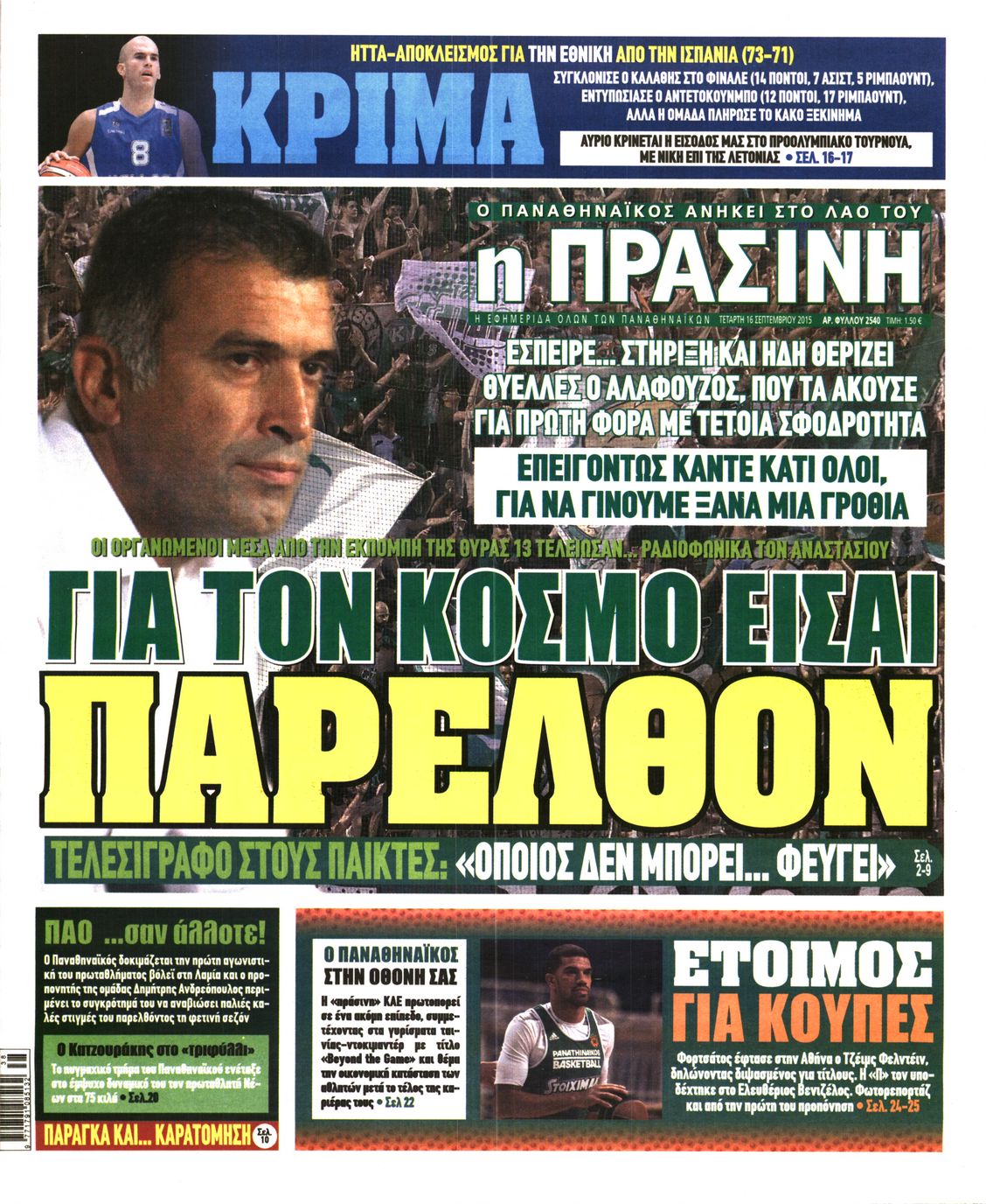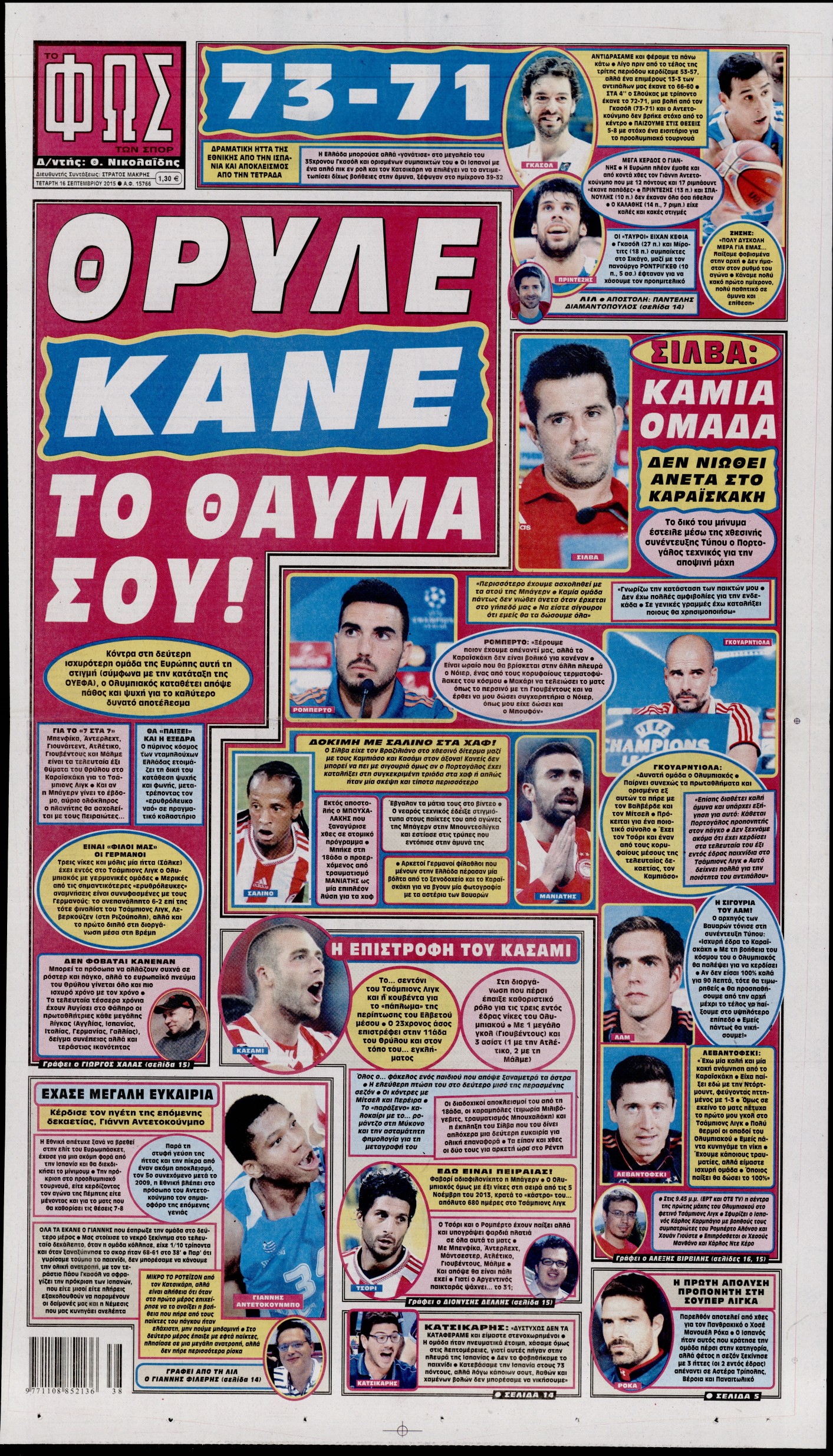 Οι αθλητικές εφημερίδες 16/9/2015 Enikos Newsroom 07:34, Τετάρτη 16 Σεπτεμβρίου 2015 Media Διαβάστε τα σημερινά πρωτοσέλιδα των αθλητικών εφημερίδων: ΑΘΛΗΤΙΚΕΣ ΕΦΗΜΕΡΙΔΕΣ ΠΡΩΤΟΣΕΛΙΔΑ Μοιράσου το: σχολίασε κι εσύ (0 σχόλια) Ακολουθήστε το enikos.gr στο Google News και μάθετε πρώτοι όλες τις ειδήσεις Δείτε όλες τις τελευταίες ειδήσεις από την Ελλάδα και τον Κόσμο στο enikos.gr Ειδήσεις Ροή Ειδήσεων 4 ώρες πριν Χριστούγεννα στα μπλόκα: Επιμένουν στις κινητοποιήσεις τους οι αγρότες – Ανοίγουν τα διόδια το Σαββατοκύριακο 4 ώρες πριν Ουκρανία: Η άνευ προηγουμένου επίθεση σε ρωσικό τάνκερ στη Μεσόγειο και το μήνυμα προς στον Πούτιν – Το «μακρύ χέρι» του Κιέβου 3 ώρες πριν Πούτιν: Τα μηνύματα σε Ευρώπη και ΝΑΤΟ από το μαραθώνιο «σόου» του – Η απαίτηση για «σεβασμό» και η ειρήνη «με τους όρους» της Μόσχας 4 ώρες πριν Τραμπ: Δεν αποκλείει την πιθανότητα ενός πολέμου στη Βενεζουέλα – «Ο Μαδούρο ξέρει καλύτερα από τον καθένα τι ακριβώς θέλω» 5 ώρες πριν Συνεχίζει να προκαλεί ο Μίτσκοσκι: «Για μένα το όνομα Μακεδονία είναι ιερό» 3 ώρες πριν Ανακαλύφθηκαν αρχαία χρυσά νομίσματα 2.200 ετών που απεικονίζουν τον θεό Απόλλωνα – Η άγνωστη σύνδεση με τον Φίλιππο Β΄ της Μακεδονίας 4 ώρες πριν Ύπνος: Μια κρυφή κατάσταση του εγκεφάλου πριν από τον ύπνο μπορεί να είναι το “κλειδί” για υψηλή ευφυΐα και δημιουργικότητα 5 ώρες πριν Αριθμολογία: Οι άνθρωποι που έχουν γεννηθεί αυτές τις 4 ημερομηνίες, συχνά παρεξηγούνται – «Η καλοσύνη τους κρύβει τεράστια δύναμη» 6 ώρες πριν Ξεχάστε το καθάρισμα το Σαββατοκύριακο: Ο «κανόνας των 20 λεπτών» που θα σας λύσει τα χέρια 8 λεπτά πριν Εξάρχεια: Ένταση με μολότοφ, χημικά και κρότου λάμψης 23 λεπτά πριν ΗΠΑ: Τραγωδία στην Αλαμπάμα – Σκότωσε την δημοσιογράφο σύζυγό του και αυτοκτόνησε μπροστά στον 3χρονο γιο τους 38 λεπτά πριν Πρόταση γάμου στο ΣΕΦ κατά την διάρκεια του αγώνα Ολυμπιακός-Βιλερμπάν – Δείτε βίντεο 53 λεπτά πριν Euroleague: Επέστρεψε στις νίκες ο Ολυμπιακός, πήρε την ματσάρα της χρονιάς η Μπάρτσα – Τα αποτελέσματα και η βαθμολογία 1 ώρα πριν Συρία: Μαζικά πλήγματα των ΗΠΑ σε θέσεις του Ισλαμικού Κράτους – Χέγκσεθ: «Δεν είναι αρχή πολέμου, είναι μια δήλωση εκδίκησης» για το θάνατο των στρατιωτών μας ENIKOS NETWORK Το ΕΚΑΒ τιμήθηκε από την Ακαδημία Αθηνών για τα 40 χρόνια προσφοράς του Έχετε πραγματικά μεγάλη καρδιά; 10 χαρακτηριστικά όσων έχουν καλοσύνη Αναστολή μέτρων αναγκαστικής εκτέλεσης για κτηνοτρόφους που πλήττονται από την ευλογιά των αιγοπροβάτων Πλήρης επάρκεια προϊόντων στις λαϊκές της Αττικής, παρά τις αγροτικές κινητοποιήσεις – Τι απαντούν οι πωλητές Χαρτογραφώντας το «σημείο χωρίς επιστροφή»: Για πρώτη φορά αποκαλύπτεται με λεπτομέρεια το ακανθώδες όριο της ατμόσφαιρας τ... Η Google καταργεί τη λειτουργία «dark web report» – Πώς θα μπορούν οι χρήστες να διαγράφουν τα δεδομένα τους περισσότερα 22:42 , Παρασκευή 19 Δεκεμβρίου 2025 Γιώργος Γιαννόπουλος για “Το σόι σου”: “Είναι ευτυχία και ευλογία αυτή η σειρά” «Είναι ευτυχία και ευλογία η συγκυρία αυτής της σειράς», θα πει ο Γιώργος Γιαννόπουλος -ο αγαπ... 20:37 , Παρασκευή 19 Δεκεμβρίου 2025 Don’t Forget The Lyrics: Η Έλλη Κοκκίνου υποδέχεται 4 παίκτες που θα κάνουν τα πάντα για να μη χάσουν ούτε… μισή λέξη από τους στίχους Το «Don’t Forget The Lyrics» επιστρέφει απόψε, Παρασκευή 19 Δεκεμβρίου, στις 21:00 με νέο επει... 19:31 , Παρασκευή 19 Δεκεμβρίου 2025 GNTM: Απόψε ο μεγάλος τελικός για τους 4 φιναλίστ Έπειτα από μήνες γεμάτους μόδα, δημιουργία κ