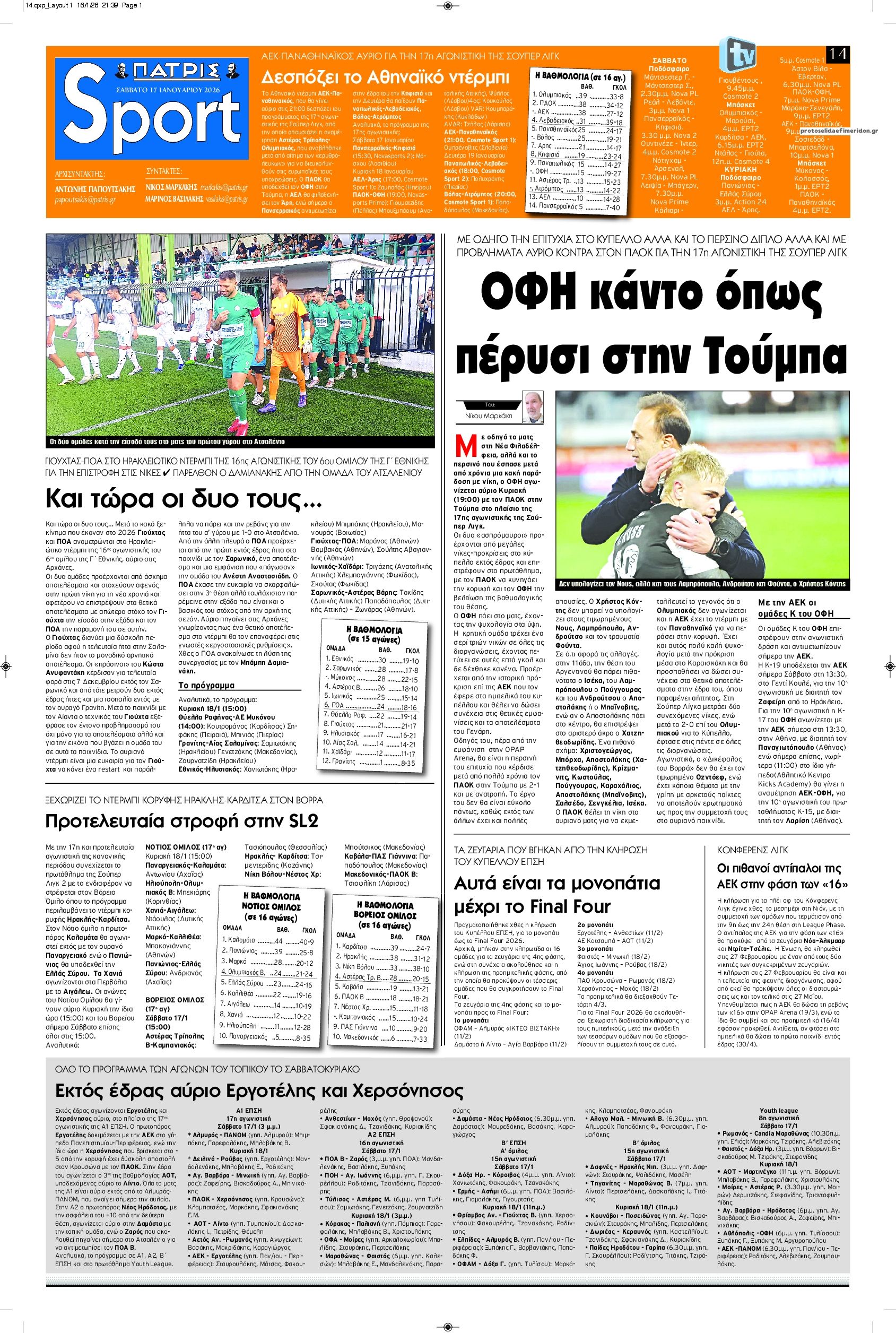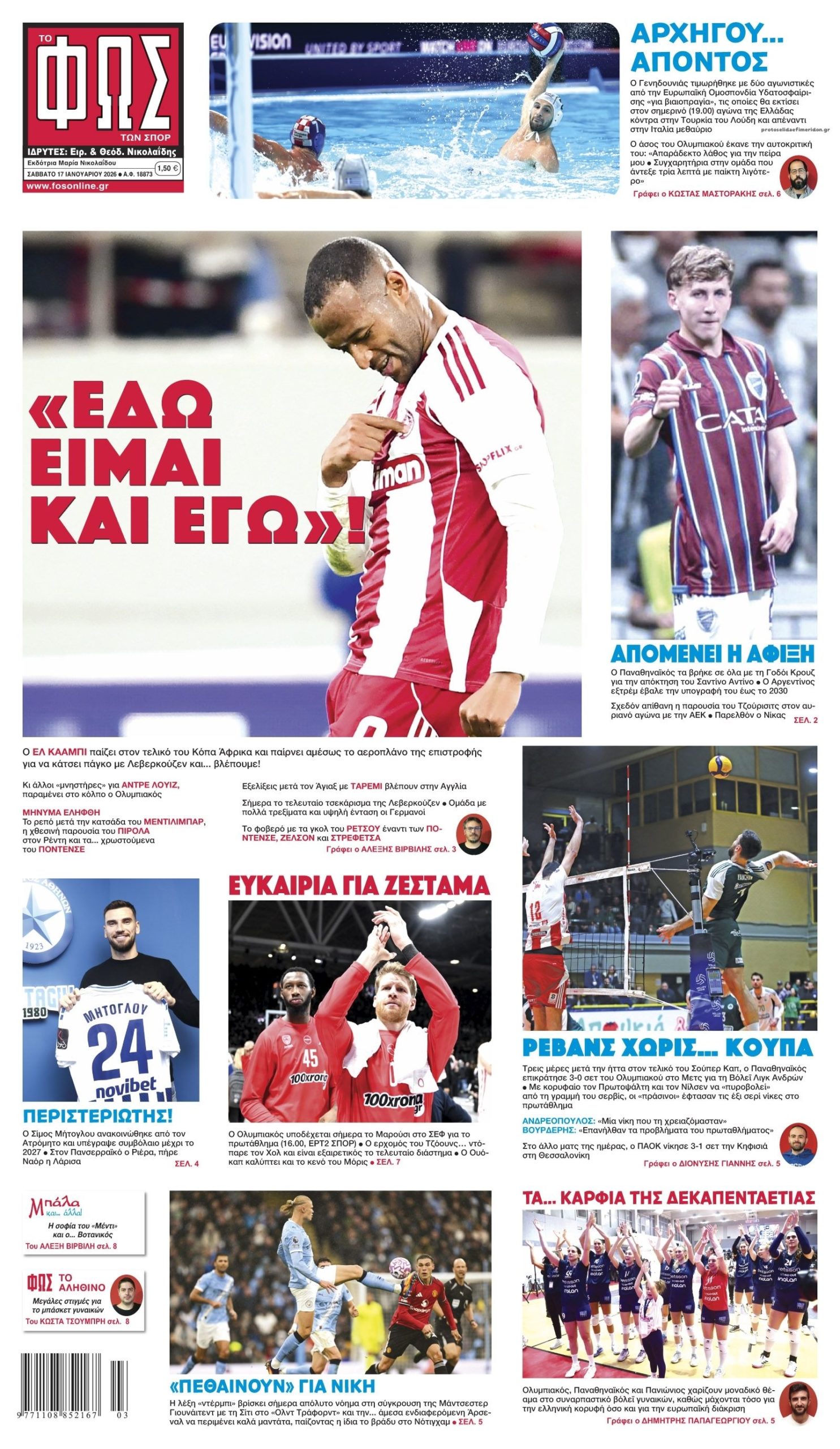 Οι αθλητικές εφημερίδες 17/1/2026 Enikos Newsroom 05:43, Σάββατο 17 Ιανουαρίου 2026 Media Διαβάστε τα πρωτοσέλιδα από τις αθλητικές εφημερίδες, σήμερα 17/1/2026. ΑΘΛΗΤΙΚΕΣ ΕΦΗΜΕΡΙΔΕΣ ΕΦΗΜΕΡΙΔΕΣ ΠΡΩΤΟΣΕΛΙΔΑ Μοιράσου το: Euroleague: Θρίαμβος της Ρεάλ στο clasico, δεν αφήνει την κορυφή η Χαποέλ – Τα αποτελέσματα και η βαθμολογία Ολυμπιακός: Προτάθηκε στους «ερυθρόλευκους» ο Σενεγαλέζος, Κρεπίν Ντιατά Ισπανία: 162 συλλήψεις οργανωμένων οπαδών προχώρησε η αστυνομία – Απέτρεψε δεκάδες οπαδικά ραντεβού σχολίασε κι εσύ (0 σχόλια) Ακολουθήστε το enikos.gr στο Google News και μάθετε πρώτοι όλες τις ειδήσεις Δείτε όλες τις τελευταίες ειδήσεις από την Ελλάδα και τον Κόσμο στο enikos.gr Ειδήσεις Ροή Ειδήσεων 10 ώρες πριν Αγρότες: Αυτοί είναι οι 31 εκπρόσωποί τους που θα συναντήσουν τον Πρωθυπουργό στο Μαξίμου 8 ώρες πριν Ιράν: Πώς το καθεστώς ανέκτησε τον έλεγχο – Οι λεπτομέρειες της άνευ προηγουμένου καταστολής και τα ερωτήματα για το μέλλον του κινήματος διαμαρτυρίας 8 ώρες πριν Εξαφάνιση 16χρονης: Άκαρπες οι έρευνες για τον εντοπισμό της Λόρας – Οι νέες μαρτυρίες, η στάση του πατέρα της και όσα εξετάζουν οι αρχές 8 ώρες πριν Ανάλυση: Γιατί ο πανικός για τη Γροιλανδία είναι προς όφελος του Τραμπ 9 ώρες πριν Καιρός – Καλλιάνος: «Έρχονται κρύο και επιλεκτικές χιονοπτώσεις» – Τι θα συμβεί στην Αττική 39 λεπτά πριν Οπτική ψευδαίσθηση: Μόνο το 1% των ανθρώπων θα βρει το κρυμμένο πτηνό σε 13 δευτερόλεπτα 55 λεπτά πριν Πρόωρη γήρανση: Γιατρός προειδοποιεί για μία καθημερινή συνήθεια το χειμώνα που καταστρέφει το δέρμα του προσώπου σας 4 ώρες πριν Τα ζώδια σήμερα, Σάββατο 17 Ιανουαρίου 2026: Ιχθύες, επιστρέφουν άνθρωποι και συζητήσεις από το παρελθόν 8 ώρες πριν Ανακαλύφθηκε οίκος ευγηρίας 1.600 ετών σε αρχαία ελληνική πόλη – Το εντυπωσιακό ψηφιδωτό που ενθουσίασε τους αρχαιολόγους 10 λεπτά πριν Ισημερινός: Αναπτύσσει 10.000 στρατιωτικούς για την αντιμετώπιση των διακινητών ναρκωτικών 25 λεπτά πριν ΔΕΔΔΗΕ: Διακοπές ρεύματος σήμερα (17/1) στην Αθήνα και σε άλλες 7 περιοχές της Αττικής 32 λεπτά πριν Σοβαρό τροχαίο στην Μασσαλία: Φορτηγάκι παρέσυρε μαθητές, που επέστρεφαν από σχολική εκδρομή – Τουλάχιστον 11 τραυματίες 39 λεπτά πριν Οπτική ψευδαίσθηση: Μόνο το 1% των ανθρώπων θα βρει το κρυμμένο πτηνό σε 13 δευτερόλεπτα 47 λεπτά πριν Ιράν: «Πολύ ελαφριά» αποκατάσταση της συνδεσιμότητας στο διαδίκτυο αναφέρει οργανισμός παρακολούθησης κυβερνοασφάλειας ENIKOS NETWORK Μην ανεβάζετε τον θερμοστάτη – Ο «κανόνας των τεσσάρων λεπτών» για να ζεσταθείτε με λιγότερα χρήματα Το εσπεριδοειδές της Κέρκυρας που μπορεί να ενισχύσει το ανοσοποιητικό και να αντιμετωπίσει την παχυσαρκία Προγράμματα της ΔΥΠΑ: Ποια προβλήματα προκύπτουν σύμφωνα με τους φοροτεχνικούς και τι ζητούν Τα 5 επιδόματα που επιστρέφουν μαζί με τις συλλογικές συμβάσεις – Πώς αναπροσαρμόζονται οι μισθοί Ο Google Assistant θα παραμείνει λίγο περισσότερο για ορισμένους χρήστες Android Τεστ προσωπικότητας: Το βάζο που θα επιλέξετε αποκαλύπτει πώς λύνετε προβλήματα στη ζωή σας περισσότερα 05:48 , Σάββατο 17 Ιανουαρίου 2026 Οι οικονομικές εφημερίδες 17/1/2026 Διαβάστε τα πρωτοσέλιδα από τις οικονομικές εφημερίδες, σήμερα 17/1/2026. 05:38 , Σάββατο 17 Ιανουαρίου 2026 Οι πολιτικές εφημερίδες 17/1/2026 Διαβάστε τα πρωτοσέλιδα από τις πολιτικές εφημερίδες, σήμερα 17/1/2026. 20:05 , Παρασκευή 16 Ιανουαρίου 2026 ΠΟΕΣΥ: Καταδικαστέα η μετάδοση σχολίων εκτός «αέρα» «Το Διοικητικό Συμβούλιο της Πανελλήνιας Ομοσπονδία