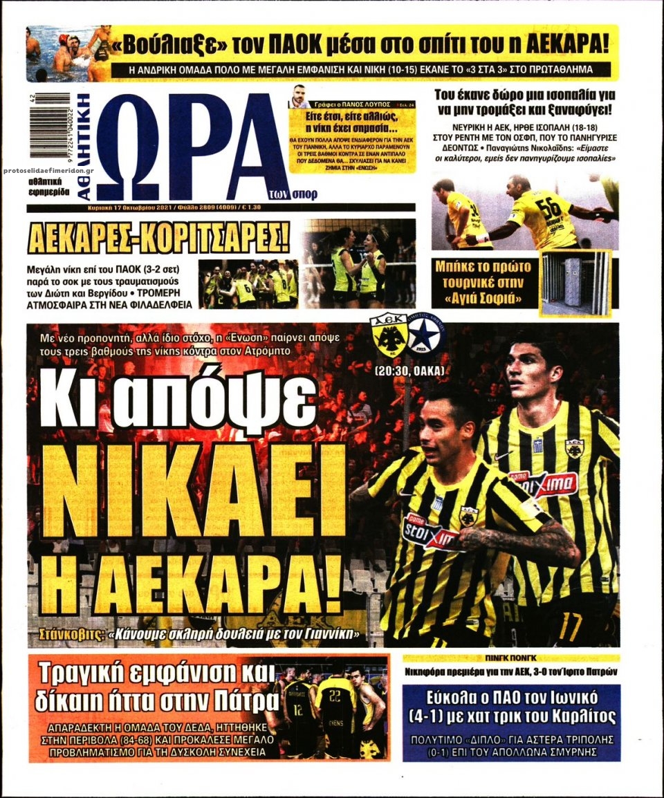 Οι αθλητικές εφημερίδες 17/10/2021 Σήφης Γαρυφαλάκης 07:34, Κυριακή 17 Οκτωβρίου 2021 Media Διαβάστε τα πρωτοσέλιδα των αθλητικών εφημερίδων. ΑΘΛΗΤΙΚΕΣ ΕΦΗΜΕΡΙΔΕΣ ΕΦΗΜΕΡΙΔΕΣ ΠΡΩΤΟΣΕΛΙΔΑ Μοιράσου το: σχολίασε κι εσύ (0 σχόλια) Ακολουθήστε το enikos.gr στο Google News και μάθετε πρώτοι όλες τις ειδήσεις Δείτε όλες τις τελευταίες ειδήσεις από την Ελλάδα και τον Κόσμο στο enikos.gr Ειδήσεις Ροή Ειδήσεων 1 ώρα πριν Τουρκία: Αναγκαστική προσγείωση είχε ζητήσει ο πιλότος του τζετ που μετέφερε τον αρχηγό του Γενικού Επιτελείου της Λιβύης – Βίντεο από την έκρηξη και τη συντριβή 7 ώρες πριν Μετ’ εμποδίων η έξοδος για τα Χριστούγεννα: Πού ανοίγουν επιπλέον λωρίδες κυκλοφορίας στην Αθηνών-Λαμίας – Ουρές χιλιομέτρων σχηματίζουν τα αυτοκίνητα 34 λεπτά πριν Σύλληψη 35χρονου στα Καλύβια: Πιθανή σχέση του με τον σεσημασμένο 37χρονο Κρητικό αναζητούν οι Αρχές – Τα συμβόλαια θανάτου και το σενάριο για νέο χτύπημα 3 ώρες πριν Έπσταϊν: Η αναφορά στον Τραμπ σε κάρτα προς τον καταδικασμένο παιδεραστή Λάρι Νάσαρ 3 ώρες πριν Ιλίσια: Διασωληνωμένος και σε σοβαρή κατάσταση ο συντηρητής του ασανσέρ – Πώς έγινε το ατύχημα στο σούπερ μάρκετ 1 ώρα πριν Ύπνος: Ειδικός μοιράζεται 6 απλές συνήθειες που θα σας βοηθήσουν να κοιμάστε πιο γρήγορα κάθε βράδυ 2 ώρες πριν Αριθμολογία: Οι άνθρωποι με αυτές τις 4 ημερομηνίες γέννησης, διαθέτουν ένα σπάνιο χάρισμα -«Διαβάζουν τις ψυχές των άλλων» 3 ώρες πριν Κολλημένο φερμουάρ στο μπουφάν: Το απλό και οικονομικό κόλπο για να διορθώσετε το πρόβλημα 14 ώρες πριν Η Coca-Cola και ο Ελληνικός Ερυθρός Σταυρός μαζί αυτά τα Χριστούγεννα: Μια μεγάλη αγκαλιά για τους συνανθρώπους μας που έχουν ανάγκη 4 λεπτά πριν Ανακαλύφθηκε τεράστιος κυκλικός λαβύρινθος που «οδηγεί» στην… Αρχαία Ρώμη – Τα ευρήματα με «άρωμα« Κρήτης 9 λεπτά πριν Θάνατος 3χρονου Αλεξανδρούπολη: «Το παιδί είχε φάει το προηγούμενο βράδυ» υποστηρίζει η μητέρα του – Στο νοσοκομείο τα αδελφάκια του 20 λεπτά πριν ΗΠΑ: Συναγερμός στο Ντέλαγουερ για πυροβολισμούς σε δημόσια υπηρεσία 25 λεπτά πριν Διαμαρτυρία αγροτοκτηνοτρόφων στο Ηράκλειο: Πέταξαν φύλλα από ελιές έξω από την Περιφέρεια Κρήτης – Δείτε βίντεο 34 λεπτά πριν Σύλληψη 35χρονου στα Καλύβια: Πιθανή σχέση του με τον σεσημασμένο 37χρονο Κρητικό αναζητούν οι Αρχές – Τα συμβόλαια θανάτου και το σενάριο για νέο χτύπημα ENIKOS NETWORK Πώς μας επηρεάζει η Χριστουγεννιάτικη μουσική; Τι μπορεί να σημαίνει αν δεν σας αρέσει Συμβουλές για να αποφευχθούν παιδικά ατυχήματα τα Χριστούγεννα Εορταστικό ωράριο: Ανοιχτά τα καταστήματα την τελευταία Κυριακή του χρόνου Αυξήσεις στις συντάξεις: Πόσα θα κερδίσετε από τον Ιανουάριο Ο Google Assistant θα παραμείνει λίγο περισσότερο για ορισμένους χρήστες Android Τεστ προσωπικότητας: Το βάζο που θα επιλέξετε αποκαλύπτει πώς λύνετε προβλήματα στη ζωή σας περισσότερα 22:25 , Τρίτη 23 Δεκεμβρίου 2025 Παρά Πέντε – Σμαράγδα Καρύδη: «Αυτή η σειρά έμεινε αγέραστη – Παιδιά που είναι 10 ετών, νομίζουν ότι το κάναμε τώρα» Τον Ιούνιο του 2007, έπειτα από δύο κύκλους, υψηλά νούμερα τηλεθέασης και 49 απολαυστικά επεισ... 21:38 , Τρίτη 23 Δεκεμβρίου 2025 ALPHA: Δείτε το ξεχωριστό trailer αφιερωμένο στις αγαπημένες σειρές μυθοπλασίας O Alpha αποχαιρετά μία χρονιά γεμάτη επιτυχίες στη μυθοπλασία με το πιο ερωτικό τραγούδι, το «... 20:55 , Τρίτη 23 Δεκεμβρίου 2025 Porto Leone: Ο Γρηγόρης φεύγει από το σπίτι Aπόψε το καθηλωτικό τελευταίο επεισόδιο του 2025 της σειράς “Porto Leone: Στη γειτονιά μ... 19:45