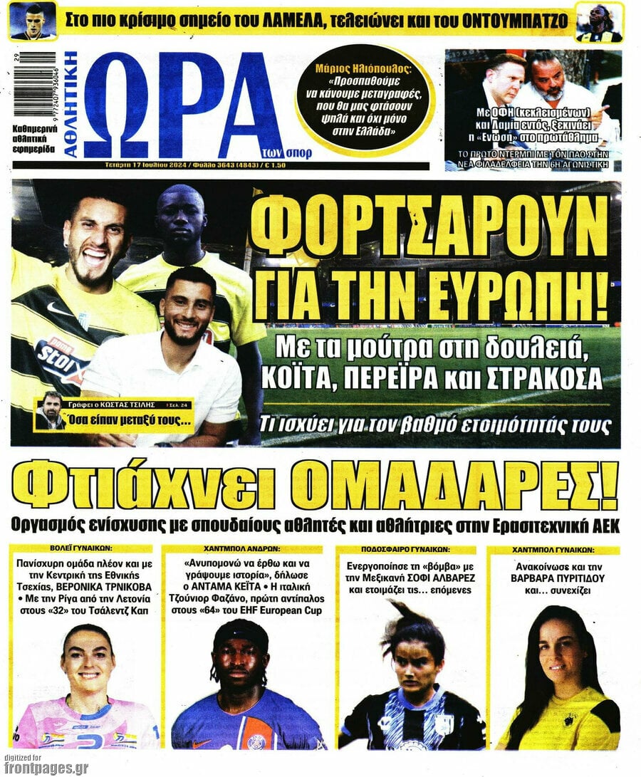 Οι αθλητικές εφημερίδες 17/7/2024 Σταύρος Ιωακείμ 06:46, Τετάρτη 17 Ιουλίου 2024 Media Διαβάστε τα πρωτοσέλιδα από τις αθλητικές εφημερίδες, σήμερα 17/7/2024. ΑΘΛΗΤΙΚΕΣ ΕΦΗΜΕΡΙΔΕΣ ΕΦΗΜΕΡΙΔΕΣ ΠΡΩΤΟΣΕΛΙΔΑ Μοιράσου το: Εφημερεύοντα φαρμακεία σε Αθήνα και Θεσσαλονίκη (17/7) Τα ζώδια σήμερα, Τετάρτη 17 Ιουλίου: Ταύροι, ήρθε η ώρα να γιατρέψετε παλιές πληγές Κορυδαλλός: Φωτιά σε υπόγειο αποθηκευτικό χώρο πολυκατοικίας – Συναγερμός στην Πυροσβεστική σχολίασε κι εσύ (0 σχόλια) Ακολουθήστε το enikos.gr στο Google News και μάθετε πρώτοι όλες τις ειδήσεις Δείτε όλες τις τελευταίες ειδήσεις από την Ελλάδα και τον Κόσμο στο enikos.gr Ειδήσεις Ροή Ειδήσεων 3 ώρες πριν ΣΥΡΙΖΑ: Διαγράφεται ο ευρωβουλευτής Νίκος Παππάς μετά την μήνυση δημοσιογράφου για ξυλοδαρμό 1 ώρα πριν Τουρκία: Επιδιώκει την επιστροφή των S-400 στη Ρωσία – Οι αμερικανικές πιέσεις 2 ώρες πριν ΟΠΕΚΕΠΕ: Ελεύθερες με όρους η σύζυγος και η αδελφή του φερόμενου αρχηγού – Τι υποστήριξαν 4 ώρες πριν Πώς στήθηκε η επιχείρηση «Ίπαλλος» που οδήγησε στη σύλληψη του «Έλληνα Εσκομπάρ» – «Ο πόλεμος ενάντια στους εμπόρους ναρκωτικών θα συνεχιστεί» 4 ώρες πριν Κυψέλη: Στη φυλακή η 16χρονη που μαχαίρωσε συμμαθήτριά της 4 ώρες πριν Τα 3 ζώδια που θα δουν τη ζωή τους να αλλάζει ριζικά το 2026 – «Όλα γίνονται καλύτερα σταδιακά» 9 ώρες πριν «Δεν είχα κλάψει από τότε που διαγνώστηκα με καρκίνο, ώσπου ένα τηλεφώνημα με έκανε να λυγίσω» – Η συγκλονιστική εξομολόγηση ενός άνδρα 5 ώρες πριν Ο σπάνιος σεισμός που έλυσε τα χέρια των επιστημόνων – Αποκάλυψε ακριβώς όσα αναζητούσαν 10 ώρες πριν 20 χρόνια τα Χριστούγεννα ξεκινούν στα Public με μεγάλη ποικιλία σε δώρα! 4 λεπτά πριν Εξεταστική για ΟΠΕΚΕΠΕ – Σκέρτσος: Διαχρονικά τα θέματα του οργανισμού – Δεν έγινε καμία αναφορά μου σε ποινικές διαδικασίες 9 λεπτά πριν Συγκλονιστικό βίντεο: Τρόμος για τουρίστες που σώθηκαν την τελευταία στιγμή από λεωφορείο που κατρακυλούσε σε φαράγγι 14 λεπτά πριν Χριστίνα Μπόμπα: Η αποκάλυψη για το περιστατικό με την κόρη της – «Σκαρφάλωνε και μίλαγε μόνη της…» 19 λεπτά πριν Εξεταστική για ΟΠΕΚΕΠΕ: Μεγάλη ένταση μεταξύ Κωνσταντοπούλου και Λαζαρίδη – ΒΙΝΤΕΟ 24 λεπτά πριν Νίκος Γιαννόπουλος: «Τα γεγονότα μιλούν από μόνα τους» – Η ανάρτηση του δημοσιογράφου που μήνυσε τον Νίκο Παππά για ξυλοδαρμό ENIKOS NETWORK 2,6 εκατομμύρια πολίτες έχουν ήδη εμβολιαστεί κατά της γρίπης Σοβαροί κίνδυνοι από τη λάθος χορήγηση φαρμάκου για τις αιμορραγίες-Συστάσεις προς τους γιατρούς Προκήρυξη ΑΣΕΠ για 4.276 μόνιμες προσλήψεις στο Δημόσιο: Βγήκαν τα προσωρινά αποτελέσματα – Ποιοι μπορούν να υποβάλουν ένσ... Υπουργείο Εργασίας: Ο οδικός χάρτης για την ενίσχυση του πλαισίου των Συλλογικών Διαπραγματεύσεων – Οι 5 άξονες του σχεδίου... Χαρτογραφώντας το «σημείο χωρίς επιστροφή»: Για πρώτη φορά αποκαλύπτεται με λεπτομέρεια το ακανθώδες όριο της ατμόσφαιρας τ... Η Google καταργεί τη λειτουργία «dark web report» – Πώς θα μπορούν οι χρήστες να διαγράφουν τα δεδομένα τους περισσότερα 12:35 , Τετάρτη 17 Δεκεμβρίου 2025 Μίρκα Παπακωνσταντίνου: «Δεν ήμουν αισιόδοξη για τα νούμερα – Είμαι ρεαλίστρια» Στα γυρίσματα του εορταστικού επεισοδίου της αγαπημένης σειράς “Το Σόι Σου”, βρέθηκε η κάμερα ... 12:12 , Τετάρτη 17 Δεκεμβρίου 2025 Ακούστε την εκπομπή του Νίκου Χατζηνικολάου 17/12/2025 Ακούστε την εκπομπή του Νίκου Χατζηνικολάου στον ραδιοφωνικό σταθμό RealFm 97,8, την Τετάρτη 1... 11:35 , Τετάρτη 17 Δεκεμβρίου 2025 Home Alone: Το σπίτι της ταινίας