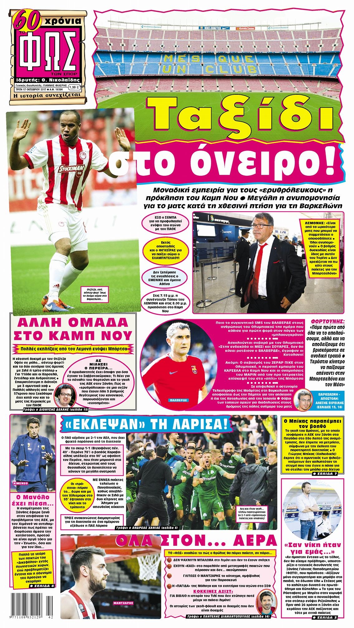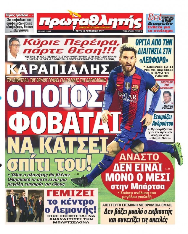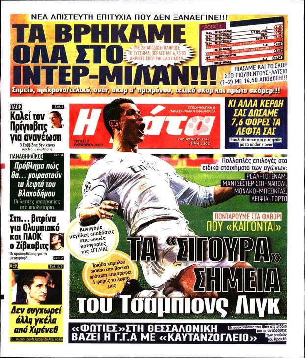 Οι αθλητικές εφημερίδες 17/10/2017 Κώστας Τεό 06:40, Τρίτη 17 Οκτωβρίου 2017 Media Διαβάστε τα σημερινά πρωτοσέλιδα των αθλητικών εφημερίδων: ΑΘΛΗΤΙΚΕΣ ΕΦΗΜΕΡΙΔΕΣ ΠΡΩΤΟΣΕΛΙΔΑ Μοιράσου το: σχολίασε κι εσύ (0 σχόλια) Ακολουθήστε το enikos.gr στο Google News και μάθετε πρώτοι όλες τις ειδήσεις Δείτε όλες τις τελευταίες ειδήσεις από την Ελλάδα και τον Κόσμο στο enikos.gr Ειδήσεις Ροή Ειδήσεων 11 λεπτά πριν Χριστούγεννα στα μπλόκα: Επιμένουν στις κινητοποιήσεις τους οι αγρότες – Ανοίγουν τα διόδια το Σαββατοκύριακο 40 λεπτά πριν Τραμπ: Δεν αποκλείει την πιθανότητα ενός πολέμου στη Βενεζουέλα – «Ο Μαδούρο ξέρει καλύτερα από τον καθένα τι ακριβώς θέλω» 34 λεπτά πριν Ουκρανία: Η άνευ προηγουμένου επίθεση σε ρωσικό τάνκερ στη Μεσόγειο και το μήνυμα προς στον Πούτιν – Το «μακρύ χέρι» του Κιέβου 3 ώρες πριν Πούτιν: «Ναι, είμαι ερωτευμένος» – Βίντεο από τη σπάνια προσωπική παραδοχή του 1 ώρα πριν Συνεχίζει να προκαλεί ο Μίτσκοσκι: «Για μένα το όνομα Μακεδονία είναι ιερό» 2 ώρες πριν Αριθμολογία: Οι άνθρωποι που έχουν γεννηθεί αυτές τις 4 ημερομηνίες, συχνά παρεξηγούνται – «Η καλοσύνη τους κρύβει τεράστια δύναμη» 4 ώρες πριν Μήπως έχετε χάσει τον εαυτό σας στη σχέση σας; 7 «αθόρυβες» υποχωρήσεις που μάλλον κάνατε, χωρίς να το συνειδητοποιήσετε 3 ώρες πριν Ξεχάστε το καθάρισμα το Σαββατοκύριακο: Ο «κανόνας των 20 λεπτών» που θα σας λύσει τα χέρια 49 λεπτά πριν Ύπνος: Μια κρυφή κατάσταση του εγκεφάλου πριν από τον ύπνο μπορεί να είναι το “κλειδί” για υψηλή ευφυΐα και δημιουργικότητα 7 λεπτά πριν Γιώργος Γιαννόπουλος για “Το σόι σου”: “Είναι ευτυχία και ευλογία αυτή η σειρά” 11 λεπτά πριν Χριστούγεννα στα μπλόκα: Επιμένουν στις κινητοποιήσεις τους οι αγρότες – Ανοίγουν τα διόδια το Σαββατοκύριακο 23 λεπτά πριν Χάρι και Μέγκαν: Η σπάνια οικογενειακή φωτογραφία με τον Άρτσι και τη Λίλιμπετ – Τι σχεδιάζουν για τα Χριστούγεννα 30 λεπτά πριν Βασίλης Καρράς: «Είναι πάντα δίπλα μου, δεν έφυγε…», λέει ο αδελφός του 34 λεπτά πριν Ουκρανία: Η άνευ προηγουμένου επίθεση σε ρωσικό τάνκερ στη Μεσόγειο και το μήνυμα προς στον Πούτιν – Το «μακρύ χέρι» του Κιέβου ENIKOS NETWORK Το ΕΚΑΒ τιμήθηκε από την Ακαδημία Αθηνών για τα 40 χρόνια προσφοράς του Έχετε πραγματικά μεγάλη καρδιά; 10 χαρακτηριστικά όσων έχουν καλοσύνη Πλήρης επάρκεια προϊόντων στις λαϊκές της Αττικής, παρά τις αγροτικές κινητοποιήσεις – Τι απαντούν οι πωλητές ΑΑΔΕ: Νέες αναβαθμίσεις στο Ψηφιακό Πελατολόγιο και την εφαρμογή myDATAapp – Τι πρέπει να γνωρίζετε Χαρτογραφώντας το «σημείο χωρίς επιστροφή»: Για πρώτη φορά αποκαλύπτεται με λεπτομέρεια το ακανθώδες όριο της ατμόσφαιρας τ... Η Google καταργεί τη λειτουργία «dark web report» – Πώς θα μπορούν οι χρήστες να διαγράφουν τα δεδομένα τους περισσότερα 22:42 , Παρασκευή 19 Δεκεμβρίου 2025 Γιώργος Γιαννόπουλος για “Το σόι σου”: “Είναι ευτυχία και ευλογία αυτή η σειρά” «Είναι ευτυχία και ευλογία η συγκυρία αυτής της σειράς», θα πει ο Γιώργος Γιαννόπουλος -ο αγαπ... 20:37 , Παρασκευή 19 Δεκεμβρίου 2025 Don’t Forget The Lyrics: Η Έλλη Κοκκίνου υποδέχεται 4 παίκτες που θα κάνουν τα πάντα για να μη χάσουν ούτε… μισή λέξη από τους στίχους Το «Don’t Forget The Lyrics» επιστρέφει απόψε, Παρασκευή 19 Δεκεμβρίου, στις 21:00 με νέο επει... 19:31 , Παρασκευή 19 Δεκεμβρίου 2025 GNTM: Απόψε ο μεγάλος τελικός για τους 4 φιναλίστ Έπειτα από μήνες γεμάτους μόδα, δημιουργία και έντονες αναμετρήσεις, το GNTM 2025 κορυφώνεται,... 18:11 , Παρασκευή 19 Δεκεμβρίου 2025 Το σόι σου: Ο