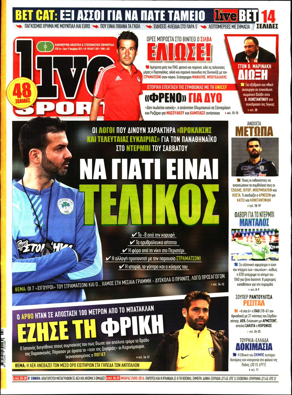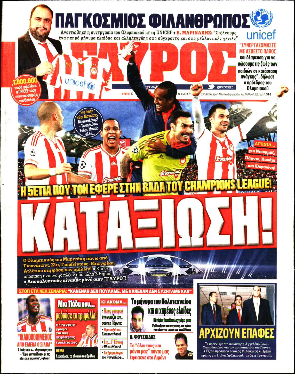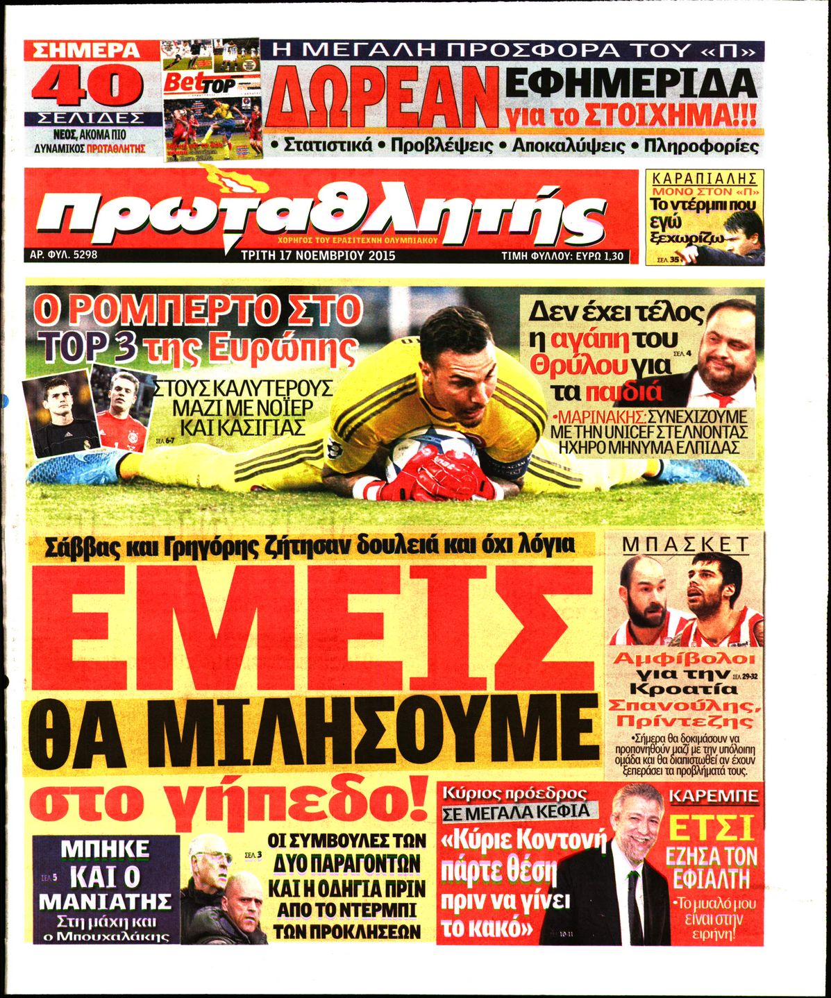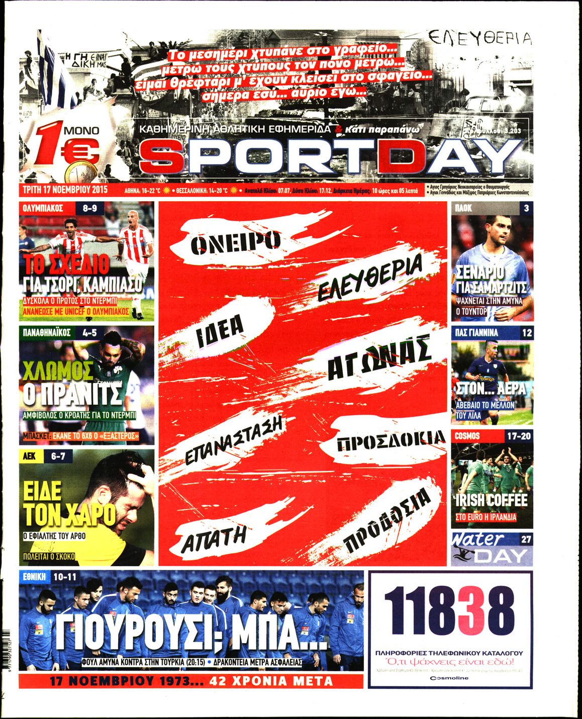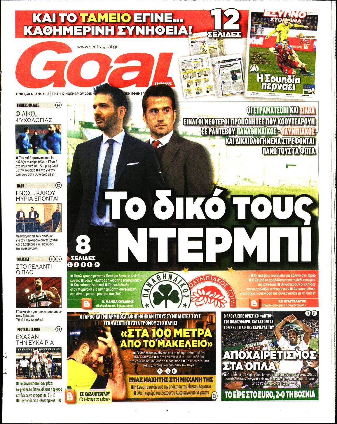 Οι αθλητικές εφημερίδες 17/11/2015 Enikos Newsroom 06:06, Τρίτη 17 Νοεμβρίου 2015 Media Διαβάστε τα σημερινά πρωτοσέλιδα των αθλητικών εφημερίδων: ΑΘΛΗΤΙΚΕΣ ΕΦΗΜΕΡΙΔΕΣ ΠΡΩΤΟΣΕΛΙΔΑ Μοιράσου το: σχολίασε κι εσύ (0 σχόλια) Ακολουθήστε το enikos.gr στο Google News και μάθετε πρώτοι όλες τις ειδήσεις Δείτε όλες τις τελευταίες ειδήσεις από την Ελλάδα και τον Κόσμο στο enikos.gr Ειδήσεις Ροή Ειδήσεων 54 λεπτά πριν Αυξάνουν την πίεση προς την κυβέρνηση οι αγρότες: Κλείνουν παρακαμπτήριους και ανοίγουν διόδια – Τι θα γίνει τις γιορτές 44 λεπτά πριν Φοινικούντα: Το Σάββατο απολογείται ο 30χρονος γιος γνωστού επιχειρηματία της Πλάκας που παραδόθηκε – Όσα είπε στους αστυνομικούς και ο ρόλος του στο έγκλημα 26 λεπτά πριν Μπορεί ο Μαδούρο να αντέξει τον αποκλεισμό του Τραμπ; Τι θα χρειαστεί η Ουάσινγκτον για να τον ανατρέψει 2 ώρες πριν Δημοσκόπηση Metron Analysis: Στις 10 μονάδες η διαφορά ΝΔ-ΠΑΣΟΚ, στην 3η θέση η Πλεύση Ελευθερίας – 8 στους 10 στηρίζουν τον αγώνα των αγροτών 2 ώρες πριν Πρίγκιπας Ουίλιαμ – Κέιτ: Η νέα οικογενειακή φωτογραφία για τις Χριστουγεννιάτικες κάρτες του 2025 2 ώρες πριν Ύπνος: Η απλή βραδινή ρουτίνα για να προστατεύσετε τα μαλλιά σας από το κρύο κατά τη διάρκεια του χειμώνα 3 ώρες πριν Manifesting: Πώς να συναντήσετε τον σύντροφο της ζωής σας, ανάλογα με τον μήνα γέννησής σας 2 ημέρες πριν 20 χρόνια τα Χριστούγεννα ξεκινούν στα Public με μεγάλη ποικιλία σε δώρα! 30 λεπτά πριν Αρχαιολόγοι ανακάλυψαν ρωμαϊκά τεχνουργήματα από μια πόλη που δεν υπήρξε ποτέ – Τα τρία εντυπωσιακά κτίρια και ο αμφορέας με τις… σαρδέλες 11 λεπτά πριν Παναθηναϊκός – Χάποελ Τελ Αβίβ 93-82: Με… φόρα από την Κωνσταντινούπολη 26 λεπτά πριν Μπορεί ο Μαδούρο να αντέξει τον αποκλεισμό του Τραμπ; Τι θα χρειαστεί η Ουάσινγκτον για να τον ανατρέψει 30 λεπτά πριν Αρχαιολόγοι ανακάλυψαν ρωμαϊκά τεχνουργήματα από μια πόλη που δεν υπήρξε ποτέ – Τα τρία εντυπωσιακά κτίρια και ο αμφορέας με τις… σαρδέλες 32 λεπτά πριν Στο ΟΑΚΑ για το «Παναθηναϊκός – Χάποελ» η Κίμπερλι Γκίλφοϊλ – ΦΩΤΟ 39 λεπτά πριν Ούρσουλα φον ντερ Λάιεν: Μετατίθεται για τον Ιανουάριο η υπογραφή της εμπορικής συμφωνίας «ΕΕ-MERCOSUR» ENIKOS NETWORK Σε περίοδο αυξημένης δραστηριότητας η γρίπη στην Ελλάδα-Μέτρα προστασίας από τον ΕΟΔΥ Σκέφτεστε συνέχεια συζητήσεις που έχετε κάνει; Τι σημαίνει αυτό, σύμφωνα με ειδικό Στεγαστικό: Τι λέει η ΠΟΜΙΔΑ για τα νέα μέτρα που ανακοίνωσε ο Κυριάκος Μητσοτάκης Λαγκάρντ: Αισιόδοξη για την ανάπτυξη της Ευρωζώνης, αβέβαιη για τον πληθωρισμό Χαρτογραφώντας το «σημείο χωρίς επιστροφή»: Για πρώτη φορά αποκαλύπτεται με λεπτομέρεια το ακανθώδες όριο της ατμόσφαιρας τ... Η Google καταργεί τη λειτουργία «dark web report» – Πώς θα μπορούν οι χρήστες να διαγράφουν τα δεδομένα τους περισσότερα 17:45 , Πέμπτη 18 Δεκεμβρίου 2025 ROUK ZOUK: Εορταστικό επεισόδιο με καλεσμένους τους πρωταγωνιστές του «Γιατί ρε πατέρα» Το Σάββατο 20 Δεκεμβρίου στις 21:00, η Ζέτα Μακρυπούλια υποδέχεται εκλεκτούς ηθοποιούς που όλο... 17:20 , Πέμπτη 18 Δεκεμβρίου 2025 Άγιος έρωτας: Η Χριστίνα εξομολογείται στον πατέρα Νικόλαο, απόψε στις 21:00 στον Alpha Η Νότα αποφασίζει να εκδικηθεί τον Πέτρο και τον Στέφανο, για χάρη του Λούη, όμως τα πράγματα ... 16:50 , Πέμπτη 18 Δεκεμβρίου 2025 Να μ’ αγαπάς: Ζωή και Φωτεινή συμφιλιώνονται ως μάνα με κόρη, απόψε στις 20:00 Η ταυτότητα του Άγγελου αποκαλύπτεται στο νέο επεισόδιο της σειράς “Να μ’ αγαπάς... 15:52 , Πέμπτη 18 Δεκεμβρίου 2025 Το Σπίτι Δίπλα Στο Ποτάμι: Το καθηλωτικό τελε