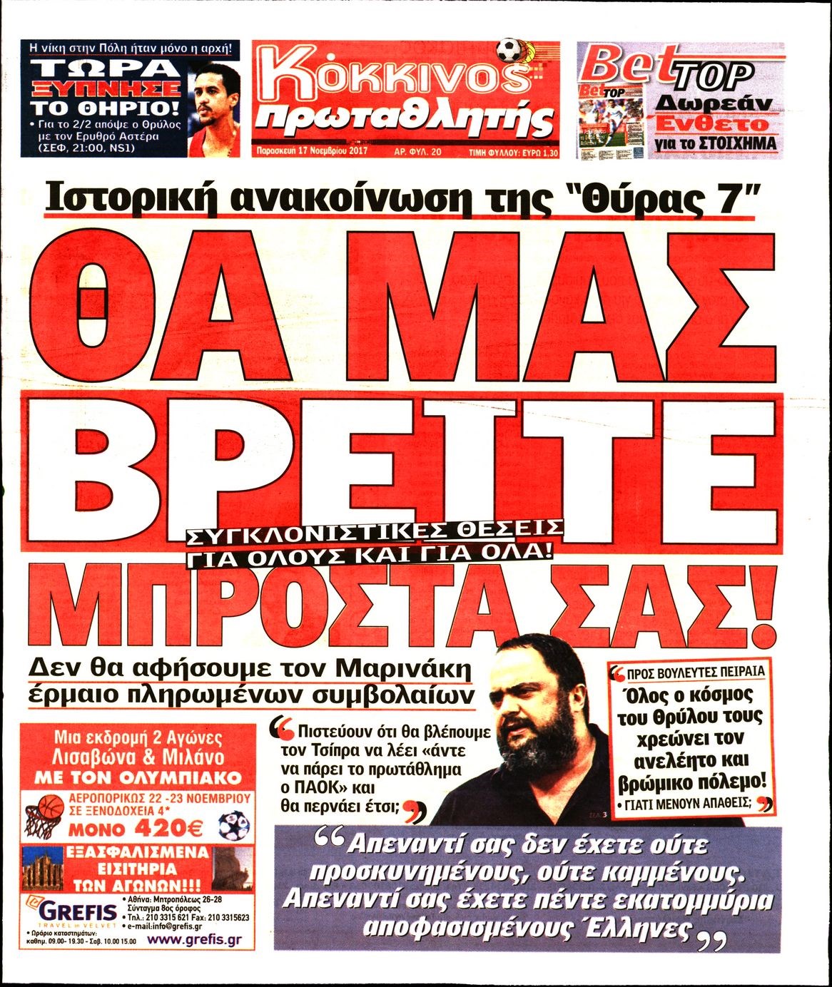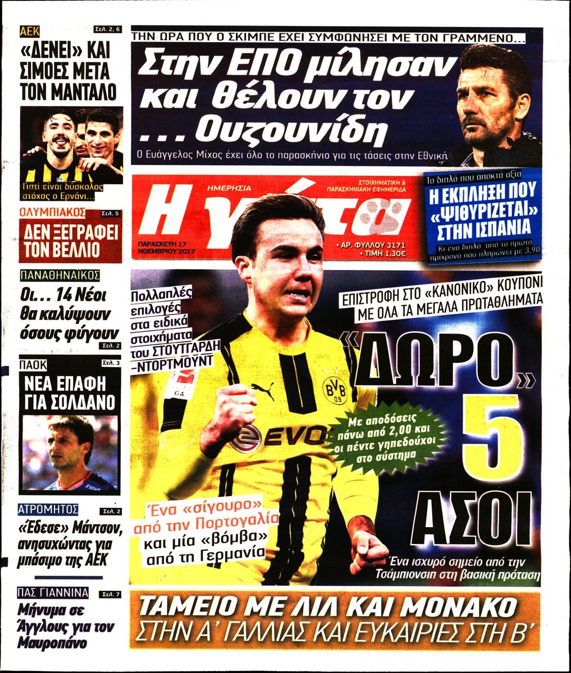 Οι αθλητικές εφημερίδες 17/11/2017 Enikos Newsroom 07:43, Παρασκευή 17 Νοεμβρίου 2017 Media Διαβάστε τα σημερινά πρωτοσέλιδα των αθλητικών εφημερίδων: ΑΘΛΗΤΙΚΕΣ ΕΦΗΜΕΡΙΔΕΣ ΠΡΩΤΟΣΕΛΙΔΑ Μοιράσου το: σχολίασε κι εσύ (0 σχόλια) Ακολουθήστε το enikos.gr στο Google News και μάθετε πρώτοι όλες τις ειδήσεις Δείτε όλες τις τελευταίες ειδήσεις από την Ελλάδα και τον Κόσμο στο enikos.gr Ειδήσεις Ροή Ειδήσεων 38 λεπτά πριν Μεσόγειος: Η διαδρομή του ρωσικού τάνκερ «Qendil» και η στοχευμένη επίθεση της Ουκρανίας με drone – Ο Πούτιν προειδοποίησε για αντίποινα 33 λεπτά πριν Αττική: Θρίλερ με νεκρό βρέφος 5 μηνών – Κοιμόταν στο ίδιο κρεβάτι με τους γονείς του 1 ώρα πριν Από το Ορμένιο ως τα Μάλγαρα κι από τη Σιάτιστα μέχρι τη Νίκαια: Μπλόκα σε όλη την Ελλάδα – Το Σάββατο ανοίγουν τα διόδια οι αγρότες 2 ώρες πριν «Έλληνας Εσκομπάρ»: Φωτογραφίες με τους 4 τόνους κοκαΐνης που κατασχέθηκαν από το σκάφος «Ουρανία» 3 ώρες πριν Πούτιν: Σαρκαστικά μηνύματα, παράπονα και απρόοπτα στη συνέντευξη Τύπου – Η πρόταση γάμου on air και οι ερωτήσεις για τα αγγούρια και τους… εξωγήινους 3 ώρες πριν Τα 5 ζώδια που ευνοούνται στην ερωτική ζωή τους την επόμενη εβδομάδα – «Η ενέργεια του Αιγόκερου φέρνει αγάπη και σταθερότητα» 7 ώρες πριν Ειδικός μοιράζεται 6 κόλπα για να διατηρείστε σε φόρμα με πάνω από 40 ώρες εργασίας την εβδομάδα: «Προπονηθείτε πριν από τη δουλειά, όχι μετά» 4 ώρες πριν Αυτό το έξυπνο μαθηματικό κόλπο θα μπορούσε να αλλάξει τον τρόπο με τον οποίο οι επιστήμονες μελετούν τους σεισμούς 2 ώρες πριν Κουίζ για την παλιά Αθήνα: Αναγνωρίζετε την περιοχή; Έχετε περάσει 100% από εκεί 7 λεπτά πριν Επίσημη η «βόμβα»: Ο ΠΑΟΚ ανακοίνωσε την απόκτηση του Πάτρικ Μπέβερλι 12 λεπτά πριν Θεσσαλονίκη: Πατέρας εγκαλεί τον Ιατρικό Σύλλογο για ποινές «χάδι» σε γιατρό που κατηγορείται για τον θάνατο του παιδιού του 18 λεπτά πριν Κερατσίνι: Αστυνομικός εκτός υπηρεσίας απέτρεψε κλοπή μηχανών – Συνελήφθησαν τρεις ανήλικοι 22 λεπτά πριν Το σόι σου: Ο Άρης έρχεται στην Ελλάδα για τις γιορτές των Χριστουγέννων – Τι θα δούμε στο αποψινό εορταστικό επεισόδιο 29 λεπτά πριν ΠΑΣΟΚ σε Μαρινάκη: Δεν νομιμοποιούμε πολιτικές επιλογές που μεταφέρουν το πρόβλημα από υπηρεσία σε υπηρεσία ENIKOS NETWORK «Η σούπερ» γρίπη εξαπλώνεται στην Ευρώπη-Στοιχεία για την αποτελεσματικότητα του εμβολίου από το ECDC ΕΛΣΤΑΤ: Αύξηση κατά 1,7% των επαγγελματιών υγείας το 2024 Η απάντηση της κυβέρνησης στα αιτήματα των αγροτών: 16 έχουν ικανοποιηθεί, 4 βρίσκονται υπό επεξεργασία και 7 δεν είναι εφι... Μισθολογική διαφάνεια: Το 68% των εργαζομένων αγνοεί τη νέα οδηγία – Αναλυτικά τα στοιχεία έρευνας Χαρτογραφώντας το «σημείο χωρίς επιστροφή»: Για πρώτη φορά αποκαλύπτεται με λεπτομέρεια το ακανθώδες όριο της ατμόσφαιρας τ... Η Google καταργεί τη λειτουργία «dark web report» – Πώς θα μπορούν οι χρήστες να διαγράφουν τα δεδομένα τους περισσότερα 18:11 , Παρασκευή 19 Δεκεμβρίου 2025 Το σόι σου: Ο Άρης έρχεται στην Ελλάδα για τις γιορτές των Χριστουγέννων – Τι θα δούμε στο αποψινό εορταστικό επεισόδιο Ένα απολαυστικό, εορταστικό επεισόδιο της σειράς “Το σόι σου”, γεμάτο ευτράπελα αλ... 15:15 , Παρασκευή 19 Δεκεμβρίου 2025 Την Κυριακή με τη Realnews: Ό,τι και αν αγοράσεις, σκανάρεις και κερδίζεις! Την Κυριακή με τη Realnews: Ό,τι και αν αγοράσεις, σκανάρεις και κερδίζεις! Με το PADU app, το... 08:00 , Παρασκευή 19 Δεκεμβρίου 2025 Την Κυριακή με τη Realnews: Δωροεπιταγή 10€ Δωροεπιταγή αξίας 10€ για αγορές άνω των 60€ από τα πολυκα