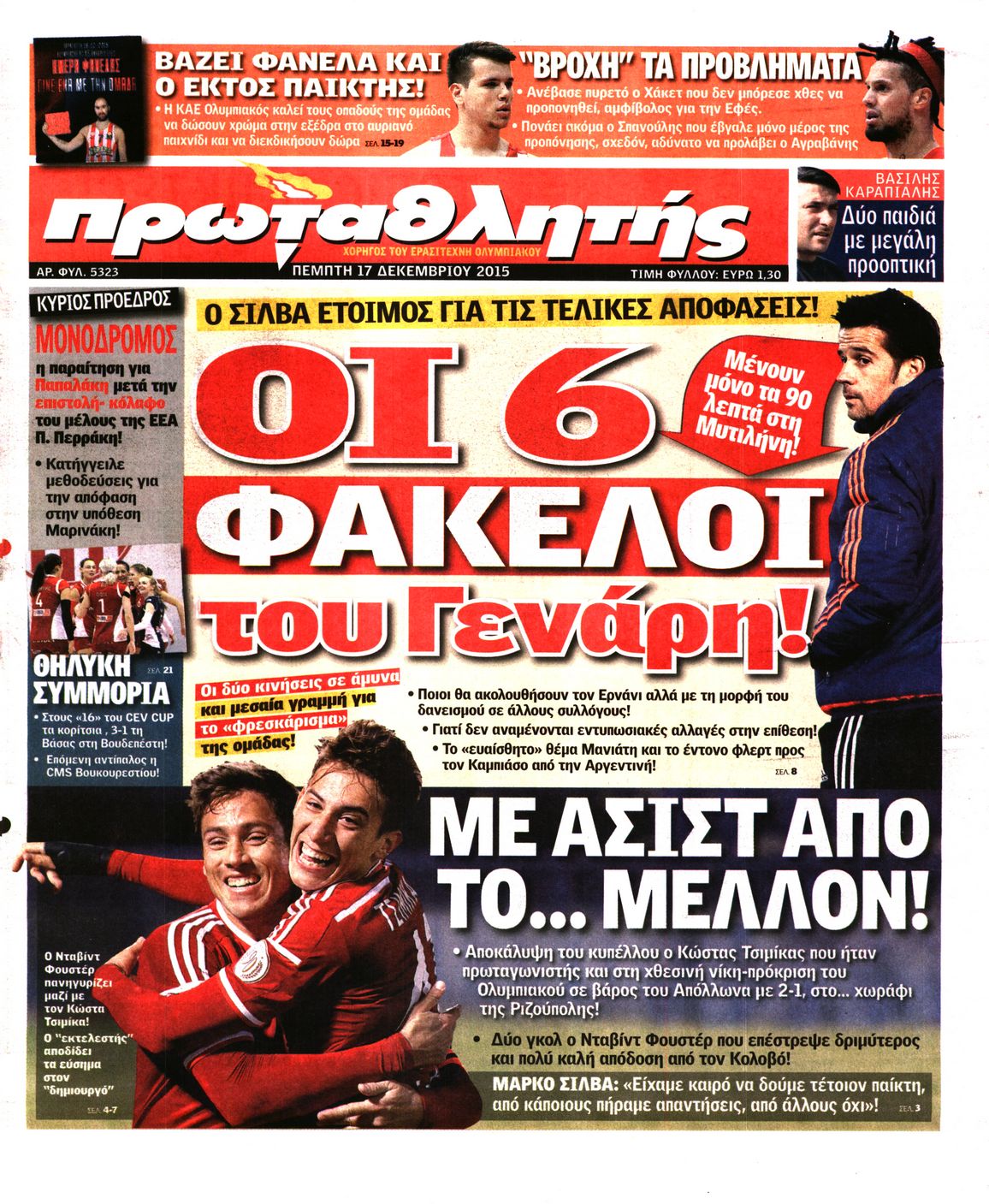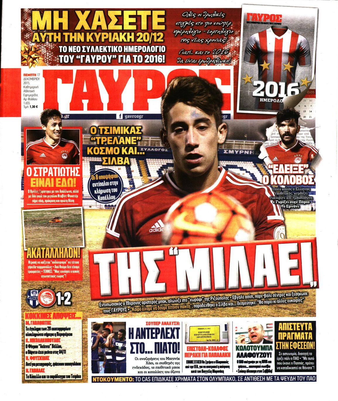 Οι αθλητικές εφημερίδες 17/12/2015 Enikos Newsroom 06:45, Πέμπτη 17 Δεκεμβρίου 2015 Media Διαβάστε τα σημερινά πρωτοσέλιδα των αθλητικών εφημερίδων: ΑΘΛΗΤΙΚΕΣ ΕΦΗΜΕΡΙΔΕΣ ΠΡΩΤΟΣΕΛΙΔΑ Μοιράσου το: σχολίασε κι εσύ (0 σχόλια) Ακολουθήστε το enikos.gr στο Google News και μάθετε πρώτοι όλες τις ειδήσεις Δείτε όλες τις τελευταίες ειδήσεις από την Ελλάδα και τον Κόσμο στο enikos.gr Ειδήσεις Ροή Ειδήσεων 4 ώρες πριν Αγρότες: «Όχι στον διάλογο, μας εμπαίζει η κυβέρνηση» – Αποφάσισαν κλιμάκωση των κινητοποιήσεων, τι θα γίνει τα Χριστούγεννα 47 λεπτά πριν Αθήνα: Εξαρθρώθηκε εγκληματική οργάνωση που διακινούσε ναρκωτικά σε μορφή σοκολάτας – Δύο τράπερ ανάμεσα στους 4 συλληφθέντες – ΒΙΝΤΕΟ 56 λεπτά πριν Στη φυλακή ο «Έλληνας Εσκομπάρ» και τρεις συνεργοί του για το φορτίο με την κοκαΐνη – Τι υποστήριξε στην απολογία του 2 ώρες πριν Γιώργος Μαζωνάκης: «Έχει υποστεί ένα σωρό εκβιαστικές πρακτικές – Του είπαν ότι θα του βάλουν τον συγκεκριμένο άνθρωπο να τον καταγγείλει» 33 λεπτά πριν Γεωργιάδης για Κωνσταντοπούλου: «Έχει καταφέρει να ξεπεράσει ακόμη και τον εαυτό της – Το ερώτημα είναι “γιατί τώρα;”» 5 ώρες πριν Τα 5 ζώδια που θα ευνοηθούν στα οικονομικά τους το 2026 – «Τραβούν το χρήμα σαν μαγνήτες» 2 ώρες πριν Γάμος: 11 ψυχρές αλλά ευγενικές φράσεις, που λέει ένας άνδρας όταν σκέφτεται τον χωρισμό 42 λεπτά πριν Σφουγγάρισμα: Η συνήθεια που θα σας βοηθήσει να διατηρήσετε το σπίτι σας καθαρό και τακτοποιημένο 1 ημέρα πριν 20 χρόνια τα Χριστούγεννα ξεκινούν στα Public με μεγάλη ποικιλία σε δώρα! 3 λεπτά πριν ΗΠΑ: Νέες φωτογραφίες από τον φάκελο Επστάιν έδωσαν στην δημοσιότητα οι Δημοκρατικοί 9 λεπτά πριν ΕΦΕΤ: Συμβουλές για ασφαλή κατανάλωση τροφίμων κατά την εορταστική περίοδο των Χριστουγέννων 17 λεπτά πριν Φάμελλος: Η κινητοποίηση των αγροτών είναι για το συμφέρον όλων των κοινωνικών ομάδων – Πρέπει να φύγετε το συντομότερο 21 λεπτά πριν Primeira Liga: 8ος πιο ακριβός παίκτης στην Πορτογαλία ο Παυλίδης με αξία 35 εκατ. ευρώ – 27ος ο Ιωαννίδης, 45ος ο Βαγιαννίδης 26 λεπτά πριν Λένα Μαντά: «Με τον πατέρα μου δεν έχω ούτε μία καλή ανάμνηση» ENIKOS NETWORK Σκέφτεστε συνέχεια συζητήσεις που έχετε κάνει; Τι σημαίνει αυτό, σύμφωνα με ειδικό Ξεκίνησε η «επέλαση» της γρίπης στην Ελλάδα-Ποιοι κινδυνεύουν Servicers: Μικρή μείωση στα κόκκινα δάνεια που διαχειρίζονται – Αναλυτικά τα στοιχεία ΑΑΔΕ: “Αλλάζει πρόσωπο” το Φορολογικό Μητρώο για πολίτες και επιχειρήσεις – Όλες οι λεπτομέρειες Χαρτογραφώντας το «σημείο χωρίς επιστροφή»: Για πρώτη φορά αποκαλύπτεται με λεπτομέρεια το ακανθώδες όριο της ατμόσφαιρας τ... Η Google καταργεί τη λειτουργία «dark web report» – Πώς θα μπορούν οι χρήστες να διαγράφουν τα δεδομένα τους περισσότερα 17:45 , Πέμπτη 18 Δεκεμβρίου 2025 ROUK ZOUK: Εορταστικό επεισόδιο με καλεσμένους τους πρωταγωνιστές του «Γιατί ρε πατέρα» Το Σάββατο 20 Δεκεμβρίου στις 21:00, η Ζέτα Μακρυπούλια υποδέχεται εκλεκτούς ηθοποιούς που όλο... 17:20 , Πέμπτη 18 Δεκεμβρίου 2025 Άγιος έρωτας: Η Χριστίνα εξομολογείται στον πατέρα Νικόλαο, απόψε στις 21:00 στον Alpha Η Νότα αποφασίζει να εκδικηθεί τον Πέτρο και τον Στέφανο, για χάρη του Λούη, όμως τα πράγματα ... 16:50 , Πέμπτη 18 Δεκεμβρίου 2025 Να μ’ αγαπάς: Ζωή και Φωτεινή συμφιλιώνονται ως μάνα με κόρη, απόψε στις 20:00 Η ταυτότητα του Άγγελου αποκαλύπτεται στο νέο επεισόδιο της σειράς “Να μ’ αγαπάς... 15:52 , Πέμπτη 18 Δεκεμβρίου 2025 Το Σπίτι Δίπλα Στο Ποτάμι: Το καθηλωτικό τελευταίο επεισόδιο για το 2025 απόψε στις 22:30 