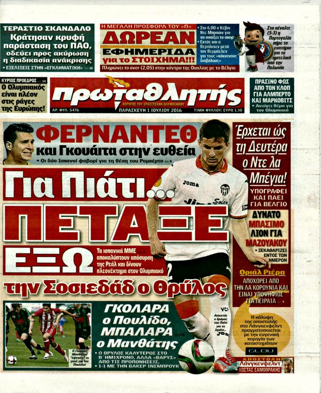 Οι αθλητικές εφημερίδες 1/7/2016 Enikos Newsroom 03:51, Παρασκευή 01 Ιουλίου 2016 Media Διαβάστε τα σημερινά πρωτοσέλιδα των αθλητικών εφημερίδων: ΑΘΛΗΤΙΚΕΣ ΕΦΗΜΕΡΙΔΕΣ ΠΡΩΤΟΣΕΛΙΔΑ Μοιράσου το: σχολίασε κι εσύ (0 σχόλια) Ακολουθήστε το enikos.gr στο Google News και μάθετε πρώτοι όλες τις ειδήσεις Δείτε όλες τις τελευταίες ειδήσεις από την Ελλάδα και τον Κόσμο στο enikos.gr Ειδήσεις Ροή Ειδήσεων 28 λεπτά πριν Αγρότες: Πολύωροι αποκλεισμοί στα τελωνεία Προμαχώνα, Εξοχής, Ευζώνων και Νίκης – Κλείνουν τον κόμβο Φιλώτα οι παραγωγοί στη Δυτική Μακεδονία 2 ώρες πριν Ευρωπαϊκό Συμβούλιο: Όλες οι λεπτομέρειες για το δάνειο των 90 δισ. ευρώ στην Ουκρανία – Τα συμπεράσματα της Συνόδου Κορυφής 1 ώρα πριν Αίγιο: 22χρονη κατήγγειλε ότι έπεσε θύμα βιασμού και ληστείας από συγγενικά της πρόσωπα 2 ώρες πριν Νίκος Παππάς: Δρομολογήθηκαν οι διαδικασίες για τη διαγραφή του από τον ΣΥΡΙΖΑ μέσα στις γιορτές 1 ώρα πριν Σφοδρές βροχές και καταιγίδες πλήττουν τα Ηνωμένα Αραβικά Εμιράτα: Ακυρώσεις πτήσεων, προβλήματα στην κυκλοφορία 46 λεπτά πριν Αλλαγή σελίδας για 3 ζώδια – «Μία δύσκολη περίοδος φτάνει στο τέλος της» 3 ώρες πριν Πώς το αρχαίο DNA του κυνηγού – συλλέκτη ξεκλείδωσε τα μυστικά της μακροζωίας 2 ημέρες πριν 20 χρόνια τα Χριστούγεννα ξεκινούν στα Public με μεγάλη ποικιλία σε δώρα! 2 ώρες πριν Ο σύζυγός της συμπεριφέρεται όπως το παιδί τους – «Χρησιμοποιεί αστείες δικαιολογίες για να μην κάνει δουλειές και να ξοδεύει λεφτά» 6 λεπτά πριν Τρομακτικό βίντεο: Η στιγμή της έκρηξης στο τζετ που μετέφερε τον οδηγό του NASCAR, Γκρεγκ Μπιφλ και την οικογένειά του 16 λεπτά πριν Έρχονται νέες κακοκαιρίες από αύριο – «Παρέλαση» βαρομετρικών χαμηλών φέρνει βροχές τα Χριστούγεννα και χιόνια την Πρωτοχρονιά 21 λεπτά πριν Εργατικό δυστύχημα στην Ελασσόνα – Νεκρός 59χρονος που έπεσε από ύψος 20 μέτρων 25 λεπτά πριν Ed Sheeran: Η εντυπωσιακή αλλαγή στο σώμα του – «Κάτω από όλα αυτά είμαι ένας καπνιστής που τρώει πίτσα και πίνει μπύρα» 28 λεπτά πριν Αγρότες: Πολύωροι αποκλεισμοί στα τελωνεία Προμαχώνα, Εξοχής, Ευζώνων και Νίκης – Κλείνουν τον κόμβο Φιλώτα οι παραγωγοί στη Δυτική Μακεδονία ENIKOS NETWORK Πότε μπορεί το χλωμό δέρμα να σχετίζεται με σοβαρή νόσο Ενίσχυση του μεταβολισμού: Η Νο1 άσκηση που πρέπει να κάνουν οι γυναίκες μετά τα 35 Απειλή για τον Προϋπολογισμό τα ληξιπρόθεσμα χρέη των ιδιωτών προς την εφορία – Τι δείχνουν τα στοιχεία Συντάξεις: Οι κερδισμένοι και οι χαμένοι από τις αυξήσεις – Αναλυτικός οδηγός Χαρτογραφώντας το «σημείο χωρίς επιστροφή»: Για πρώτη φορά αποκαλύπτεται με λεπτομέρεια το ακανθώδες όριο της ατμόσφαιρας τ... Η Google καταργεί τη λειτουργία «dark web report» – Πώς θα μπορούν οι χρήστες να διαγράφουν τα δεδομένα τους περισσότερα 08:00 , Παρασκευή 19 Δεκεμβρίου 2025 Την Κυριακή με τη Realnews: Δωροεπιταγή 10€ Δωροεπιταγή αξίας 10€ για αγορές άνω των 60€ από τα πολυκαταστήματα FactoryOutlet H προσφορά ι... 05:48 , Παρασκευή 19 Δεκεμβρίου 2025 Οι οικονομικές εφημερίδες 19/12/2025 Διαβάστε τα πρωτοσέλιδα από τις οικονομικές εφημερίδες, σήμερα 19/12/2025. 05:43 , Παρασκευή 19 Δεκεμβρίου 2025 Οι αθλητικές εφημερίδες 19/12/2025 Διαβάστε τα πρωτοσέλιδα από τις αθλητικές εφημερίδες, σήμερα 19/12/2025. 05:38 , Παρασκευή 19 Δεκεμβρίου 2025 Οι πολιτικές εφημερίδες 19/12/2025 Διαβάστε τα πρωτοσέλιδα από τις πολιτικές εφημερίδες, σήμερα 19/12/2025. ΤΕΛΕΥΤΑΙΕΣ ΕΙΔΗΣΕΙΣ 6 λεπτά πριν Τρομακτικό βίντεο: Η στιγμή της έκρηξης στο τζετ που... 16 λεπτά πριν Έρχονται νέες κακοκαιρίες από