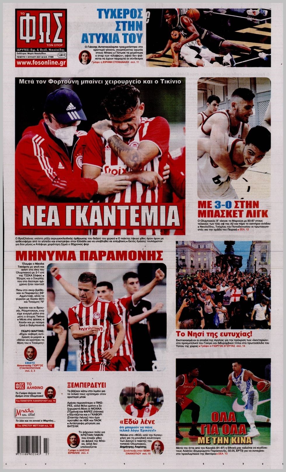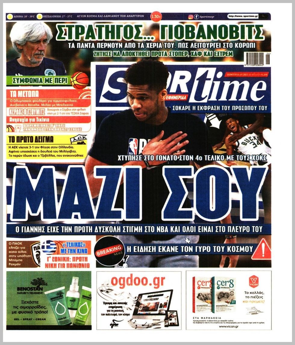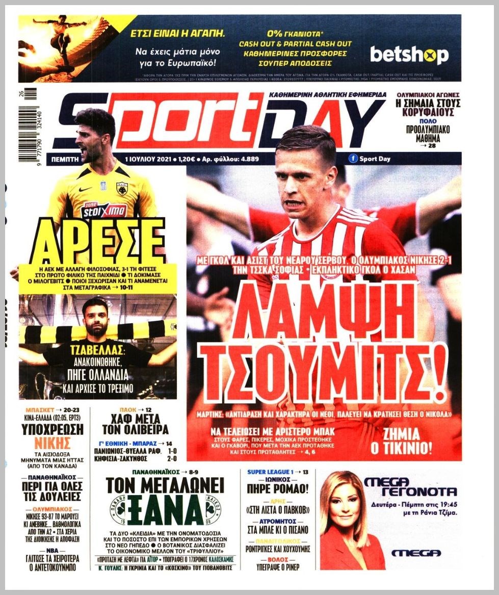 Οι αθλητικές εφημερίδες 1/7/2021 Διονύσης Νίκκας 06:51, Πέμπτη 01 Ιουλίου 2021 Media Διαβάστε τα πρωτοσέλιδα των αθλητικών εφημερίδων… ΑΘΛΗΤΙΚΕΣ ΕΦΗΜΕΡΙΔΕΣ Μοιράσου το: σχολίασε κι εσύ (0 σχόλια) Ακολουθήστε το enikos.gr στο Google News και μάθετε πρώτοι όλες τις ειδήσεις Δείτε όλες τις τελευταίες ειδήσεις από την Ελλάδα και τον Κόσμο στο enikos.gr Ειδήσεις Ροή Ειδήσεων 2 ώρες πριν Η κοινή διακήρυξη Ελλάδας – Κύπρου – Ισραήλ: Ενίσχυση αμυντικής συνεργασίας, δέσμευση για τον Great Sea Inteconnector – Τα μηνύματα της τριμερούς Συνόδου 2 ώρες πριν Αγρότες: Bάζουν στην άκρη τα τρακτέρ ενόψει Χριστουγέννων, θέμα ασφαλείας εγείρει η αστυνομία – Οι αναδιατάξεις που θα γίνουν από την Τρίτη 2 ώρες πριν Νεκρός ο άνδρας που έπεσε στις ράγες του Ηλεκτρικού στα Κάτω Πατήσια 4 ώρες πριν Αλεξανδρούπολη: Μήνυση υπέβαλε ο παππούς του 3χρονου που πέθανε από ασιτία – Αναζητούνται οι δράστες που τον ξυλοκόπησαν 6 ώρες πριν Προκλήσεις: Έστειλαν πάλι οπλισμένα F-16 στο Αιγαίο οι Τούρκοι – Παραβιάσεις και αερομαχίες 1 ώρα πριν Το «μαγικό» υλικό της Αρχαιότητας βρίσκεται ακόμα ανάμεσά μας – Η επιστήμη έλυσε το μυστήριο 3 ώρες πριν Αριθμολογία: Η λέξη που σας χαρακτηρίζει, με βάση την ημερομηνία γέννησής σας – «Είναι η αύρα που εκπέμπετε πριν καν μιλήσετε» 2 ώρες πριν Ύπνος: Γιατρός μοιράζεται τα σημάδια που δείχνουν ότι μπορεί να πάσχετε από «ορμονική αϋπνία» 3 ημέρες πριν Enerwave: Το νέο «ρεύμα» στη λιανική ενέργειας που αλλάζει την εμπειρία του καταναλωτή 13 λεπτά πριν Ανδρέας Μικρούτσικος για την υγεία του: «Κάνω τα σέρβις στο σπίτι με το οξυγόνο, αλλά έχω έναν διάολο μέσα μου» 24 λεπτά πριν Ολλανδία: Αυτοκίνητο έπεσε σε πλήθος στην πόλη Νούνσπετ – Τουλάχιστον εννέα τραυματίες – ΦΩΤΟ και ΒΙΝΤΕΟ 34 λεπτά πριν Μεγαλόπολη: Εξαρθρώθηκε συμμορία που είχε «ρημάξει» το Λιγνιτικό Κέντρο της ΔΕΗ – Έκλεβαν εξοπλισμό και καλώδια, πάνω από 400.000 ευρώ η ζημιά 44 λεπτά πριν Αλβανία: Επεισόδια σε αντικυβερνητική διαδήλωση στα Τίρανα – «Ανεχτήκαμε αρκετά» – ΒΙΝΤΕΟ 54 λεπτά πριν Ολυμπιακός: Έως και τρεις εβδομάδες εκτός ο Λορέντσο Πιρόλα ENIKOS NETWORK Στέλνετε ακόμα Χριστουγεννιάτικες κάρτες; Τι μπορεί να δείχνει για την προσωπικότητά σας Ενεργειακή αναβάθμιση του νοσοκομείου Πατρών «Ο Άγιος Ανδρέας» ΔΕΔΔΗΕ: Τάσεις αποκλιμάκωσης των ρευματοκλοπών αλλά παραμένουν σε υψηλά επίπεδα – Τι δείχνουν τα τελευταία στοιχεία ΥΠΑΑΤ – Ελληνική Αναπτυξιακή Τράπεζα: Συμφωνία για 3 νέα χρηματοδοτικά εργαλεία με μόχλευση πόρων 365 εκατ. ευρώ Ο Google Assistant θα παραμείνει λίγο περισσότερο για ορισμένους χρήστες Android Τεστ προσωπικότητας: Το βάζο που θα επιλέξετε αποκαλύπτει πώς λύνετε προβλήματα στη ζωή σας περισσότερα 20:16 , Δευτέρα 22 Δεκεμβρίου 2025 «Το παιδί από την αρχή»: Special edition επεισόδια της επιτυχημένης σειράς αρχίζουν από σήμερα στην ΕΡΤ1 «Το παιδί», η ξεχωριστή σειρά της ΕΡΤ1 με στοιχεία μαύρης κωμωδίας, που φέρει την υπογραφή του... 19:41 , Δευτέρα 22 Δεκεμβρίου 2025 Porto Leone: Στη γειτονιά με τα κόκκινα φανάρια – Η Αλεξάνδρα ανακαλύπτει το μυστικό της Γαλήνης και της στήνει παγίδα Απόψε στις 22:30 στον Alpha η συγκλονιστική συνέχεια της δραματικής σειράς του Apha «Porto Leo... 19:16 , Δευτέρα 22 Δεκεμβρίου 2025 Άγιος έρωτας: Η Πετρούλα αφήνει την τελευταία της πνοή Καθηλώνει το προτελευταίο επεισόδιο της χρονιάς της σειράς “Άγιος Έρωτας” απόψε στ... 18:39 , Δευτέρα 22 Δεκεμβρίου 2025 Να μ’αγαπάς: Ο Θεόφιλος απειλεί να καταστρέψει τη Ζωή Σοκαριστικές αποκαλύψεις 