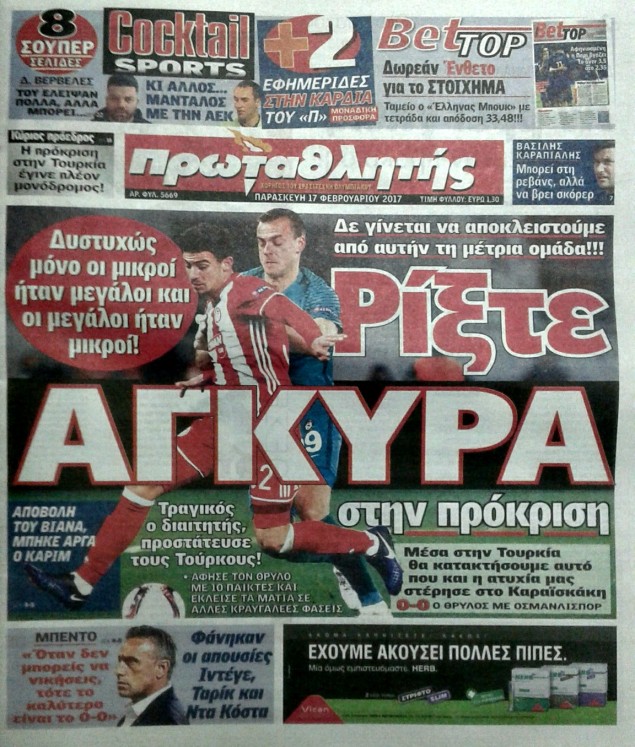 Οι αθλητικές εφημερίδες 17/2/2017 Κώστας Τεό 06:41, Παρασκευή 17 Φεβρουαρίου 2017 Media Διαβάστε τα σημερινά πρωτοσέλιδα των αθλητικών εφημερίδων: ΑΘΛΗΤΙΚΕΣ ΕΦΗΜΕΡΙΔΕΣ ΠΡΩΤΟΣΕΛΙΔΑ Μοιράσου το: σχολίασε κι εσύ (0 σχόλια) Ακολουθήστε το enikos.gr στο Google News και μάθετε πρώτοι όλες τις ειδήσεις Δείτε όλες τις τελευταίες ειδήσεις από την Ελλάδα και τον Κόσμο στο enikos.gr Ειδήσεις Ροή Ειδήσεων 42 λεπτά πριν Ευρωπαϊκή Ένωση: Συμφωνία για δάνειο 90 δισ. ευρώ στην Ουκρανία τη διετία 2026-2027 5 ώρες πριν ΟΠΕΚΕΠΕ: Προφυλακιστέος ο φερόμενος αρχηγός και ο λογιστής της εγκληματικής οργάνωσης 6 ώρες πριν Αυξάνουν την πίεση προς την κυβέρνηση οι αγρότες: Κλείνουν παρακαμπτήριους και ανοίγουν διόδια – Τι θα γίνει τις γιορτές 6 ώρες πριν Φοινικούντα: Το Σάββατο απολογείται ο 30χρονος γιος γνωστού επιχειρηματία της Πλάκας που παραδόθηκε – Όσα είπε στους αστυνομικούς και ο ρόλος του στο έγκλημα 5 ώρες πριν ΑΕΚ – Κραϊόβα 3-2: Επική ανατροπή και πρόκριση στους «16» του Conference League η Ένωση 6 ώρες πριν Αρχαιολόγοι ανακάλυψαν ρωμαϊκά τεχνουργήματα από μια πόλη που δεν υπήρξε ποτέ – Τα τρία εντυπωσιακά κτίρια και ο αμφορέας με τις… σαρδέλες 7 ώρες πριν Ύπνος: Η απλή βραδινή ρουτίνα για να προστατεύσετε τα μαλλιά σας από το κρύο κατά τη διάρκεια του χειμώνα 8 ώρες πριν Manifesting: Πώς να συναντήσετε τον σύντροφο της ζωής σας, ανάλογα με τον μήνα γέννησής σας 2 ημέρες πριν 20 χρόνια τα Χριστούγεννα ξεκινούν στα Public με μεγάλη ποικιλία σε δώρα! 5 λεπτά πριν Αυστραλία: Κήρυξε την Κυριακή (21/12) ημέρα εθνικού πένθους για τη φονική επίθεση στην παραλία Μπόνταϊ 15 λεπτά πριν Ρόδος: Δάσκαλος καράτε καταδικάστηκε για ασέλγεια σε ανήλικες αθλήτριες – Μαρτυρίες για αγγίγματα σε ευαίσθητα σημεία 30 λεπτά πριν Γουατεμάλα: Εξαρθρώθηκε κύκλωμα διακίνησης μεταναστών προς τις ΗΠΑ – Συνελήφθησαν 14 άτομα 34 λεπτά πριν Βουλγαρία: Χιλιάδες πολίτες στους δρόμους κατά της απερχόμενης κυβέρνησης και της διαφθοράς 42 λεπτά πριν Ευρωπαϊκή Ένωση: Συμφωνία για δάνειο 90 δισ. ευρώ στην Ουκρανία τη διετία 2026-2027 ENIKOS NETWORK Σε περίοδο αυξημένης δραστηριότητας η γρίπη στην Ελλάδα-Μέτρα προστασίας από τον ΕΟΔΥ Σκέφτεστε συνέχεια συζητήσεις που έχετε κάνει; Τι σημαίνει αυτό, σύμφωνα με ειδικό Στεγαστικό: Τι λέει η ΠΟΜΙΔΑ για τα νέα μέτρα που ανακοίνωσε ο Κυριάκος Μητσοτάκης Λαγκάρντ: Αισιόδοξη για την ανάπτυξη της Ευρωζώνης, αβέβαιη για τον πληθωρισμό Χαρτογραφώντας το «σημείο χωρίς επιστροφή»: Για πρώτη φορά αποκαλύπτεται με λεπτομέρεια το ακανθώδες όριο της ατμόσφαιρας τ... Η Google καταργεί τη λειτουργία «dark web report» – Πώς θα μπορούν οι χρήστες να διαγράφουν τα δεδομένα τους περισσότερα 02:50 , Παρασκευή 19 Δεκεμβρίου 2025 GNTM: «Κλείδωσαν» οι τέσσερις φιναλίστ – Μεγάλη ανατροπή στις τελευταίες αποχωρήσεις Για προτελευταία φορά εμφανίστηκαν στο πλατό του GNTM οι φιναλίστ του φετινού κύκλου, το βράδυ... 17:45 , Πέμπτη 18 Δεκεμβρίου 2025 ROUK ZOUK: Εορταστικό επεισόδιο με καλεσμένους τους πρωταγωνιστές του «Γιατί ρε πατέρα» Το Σάββατο 20 Δεκεμβρίου στις 21:00, η Ζέτα Μακρυπούλια υποδέχεται εκλεκτούς ηθοποιούς που όλο... 17:20 , Πέμπτη 18 Δεκεμβρίου 2025 Άγιος έρωτας: Η Χριστίνα εξομολογείται στον πατέρα Νικόλαο, απόψε στις 21:00 στον Alpha Η Νότα αποφασίζει να εκδικηθεί τον Πέτρο και τον Στέφανο, για χάρη του Λούη, όμως τα πράγματα ... 16:50 , Πέμπτη 18 Δεκεμβρίου 2025 Να μ’ αγαπάς: Ζωή και Φωτεινή συμφιλιώνονται ως μάνα με κόρη, απόψε στις 20:00 Η ταυτότητα του Άγγελου αποκαλύπτετα