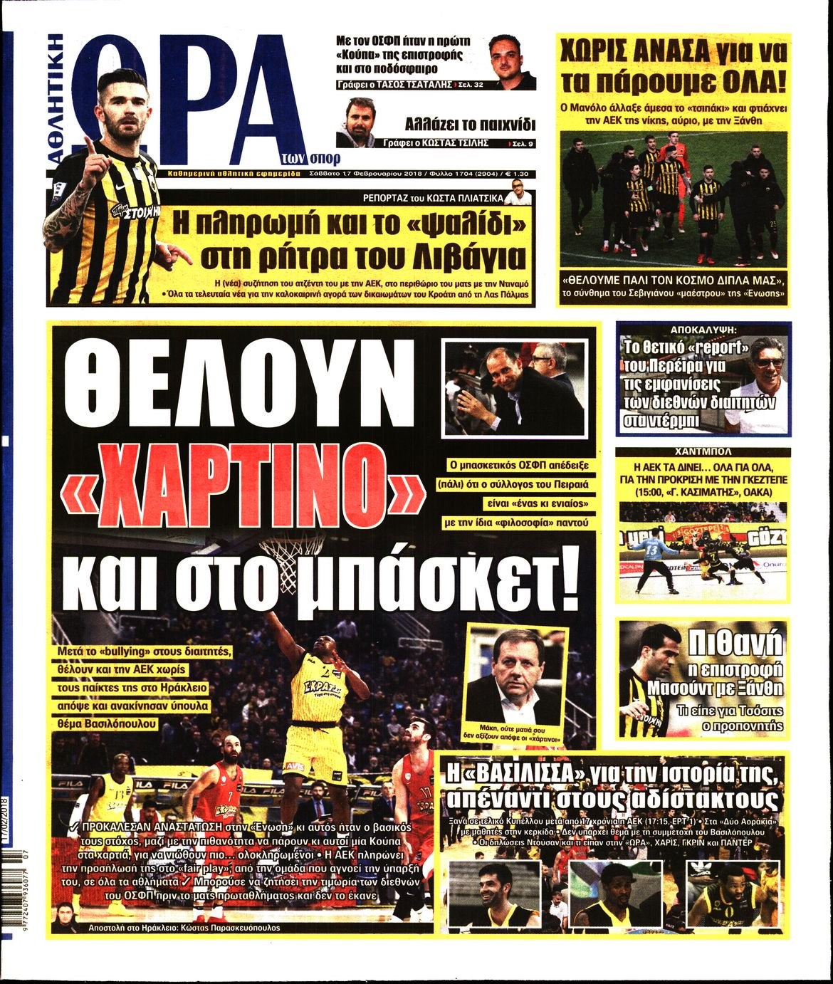 Οι αθλητικές εφημερίδες 17/2/2018 Enikos Newsroom 07:25, Σάββατο 17 Φεβρουαρίου 2018 Media Διαβάστε τα σημερινά πρωτοσέλιδα των αθλητικών εφημερίδων: ΑΘΛΗΤΙΚΕΣ ΕΦΗΜΕΡΙΔΕΣ ΠΡΩΤΟΣΕΛΙΔΑ Μοιράσου το: σχολίασε κι εσύ (0 σχόλια) Ακολουθήστε το enikos.gr στο Google News και μάθετε πρώτοι όλες τις ειδήσεις Δείτε όλες τις τελευταίες ειδήσεις από την Ελλάδα και τον Κόσμο στο enikos.gr Ειδήσεις Ροή Ειδήσεων 35 λεπτά πριν Χριστούγεννα στα μπλόκα: Επιμένουν στις κινητοποιήσεις τους οι αγρότες – Ανοίγουν τα διόδια το Σαββατοκύριακο 58 λεπτά πριν Ουκρανία: Η άνευ προηγουμένου επίθεση σε ρωσικό τάνκερ στη Μεσόγειο και το μήνυμα προς στον Πούτιν – Το «μακρύ χέρι» του Κιέβου 13 λεπτά πριν Πούτιν: Τα μηνύματα σε Ευρώπη και ΝΑΤΟ από το μαραθώνιο «σόου» του – Η απαίτηση για «σεβασμό» και η ειρήνη «με τους όρους» της Μόσχας 1 ώρα πριν Τραμπ: Δεν αποκλείει την πιθανότητα ενός πολέμου στη Βενεζουέλα – «Ο Μαδούρο ξέρει καλύτερα από τον καθένα τι ακριβώς θέλω» 2 ώρες πριν Συνεχίζει να προκαλεί ο Μίτσκοσκι: «Για μένα το όνομα Μακεδονία είναι ιερό» 3 ώρες πριν Πούτιν: «Ναι, είμαι ερωτευμένος» – Βίντεο από τη σπάνια προσωπική παραδοχή του 2 ώρες πριν Αριθμολογία: Οι άνθρωποι που έχουν γεννηθεί αυτές τις 4 ημερομηνίες, συχνά παρεξηγούνται – «Η καλοσύνη τους κρύβει τεράστια δύναμη» 1 ώρα πριν Ύπνος: Μια κρυφή κατάσταση του εγκεφάλου πριν από τον ύπνο μπορεί να είναι το “κλειδί” για υψηλή ευφυΐα και δημιουργικότητα 3 ώρες πριν Ξεχάστε το καθάρισμα το Σαββατοκύριακο: Ο «κανόνας των 20 λεπτών» που θα σας λύσει τα χέρια 14 λεπτά πριν Ανακαλύφθηκαν αρχαία χρυσά νομίσματα 2.200 ετών που απεικονίζουν τον θεό Απόλλωνα – Η άγνωστη σύνδεση με τον Φίλιππο Β΄ της Μακεδονίας 13 λεπτά πριν Πούτιν: Τα μηνύματα σε Ευρώπη και ΝΑΤΟ από το μαραθώνιο «σόου» του – Η απαίτηση για «σεβασμό» και η ειρήνη «με τους όρους» της Μόσχας 14 λεπτά πριν Ανακαλύφθηκαν αρχαία χρυσά νομίσματα 2.200 ετών που απεικονίζουν τον θεό Απόλλωνα – Η άγνωστη σύνδεση με τον Φίλιππο Β΄ της Μακεδονίας 19 λεπτά πριν Νίκος Ξυλούρης: Συγκινεί η χήρα του σπουδαίου καλλιτέχνη – «Ευχαριστώ όλο τον κόσμο που τον κρατάει ζωντανό 45 χρόνια» 26 λεπτά πριν Παναθηναϊκός: «Μέσα» οι Σφιντέρσκι και Τουμπά για το ματς με τον ΠΑΟΚ – Τι έδειξε η μαγνητική του Πάντοβιτς 31 λεπτά πριν Γιώργος Γιαννόπουλος για “Το σόι σου”: “Είναι ευτυχία και ευλογία αυτή η σειρά” ENIKOS NETWORK Το ΕΚΑΒ τιμήθηκε από την Ακαδημία Αθηνών για τα 40 χρόνια προσφοράς του Έχετε πραγματικά μεγάλη καρδιά; 10 χαρακτηριστικά όσων έχουν καλοσύνη Πλήρης επάρκεια προϊόντων στις λαϊκές της Αττικής, παρά τις αγροτικές κινητοποιήσεις – Τι απαντούν οι πωλητές ΑΑΔΕ: Νέες αναβαθμίσεις στο Ψηφιακό Πελατολόγιο και την εφαρμογή myDATAapp – Τι πρέπει να γνωρίζετε Χαρτογραφώντας το «σημείο χωρίς επιστροφή»: Για πρώτη φορά αποκαλύπτεται με λεπτομέρεια το ακανθώδες όριο της ατμόσφαιρας τ... Η Google καταργεί τη λειτουργία «dark web report» – Πώς θα μπορούν οι χρήστες να διαγράφουν τα δεδομένα τους περισσότερα 22:42 , Παρασκευή 19 Δεκεμβρίου 2025 Γιώργος Γιαννόπουλος για “Το σόι σου”: “Είναι ευτυχία και ευλογία αυτή η σειρά” «Είναι ευτυχία και ευλογία η συγκυρία αυτής της σειράς», θα πει ο Γιώργος Γιαννόπουλος -ο αγαπ... 20:37 , Παρασκευή 19 Δεκεμβρίου 2025 Don’t Forget The Lyrics: Η Έλλη Κοκκίνου υποδέχεται 4 παίκτες που θα κάνουν τα πάντα για να μη χάσουν ούτε… μισή λέξη από τους στίχους Το «Don’t Forget The Lyrics» επιστρέφει απόψε, Παρασκευή 19 Δεκεμβρίου, στις 21:00 