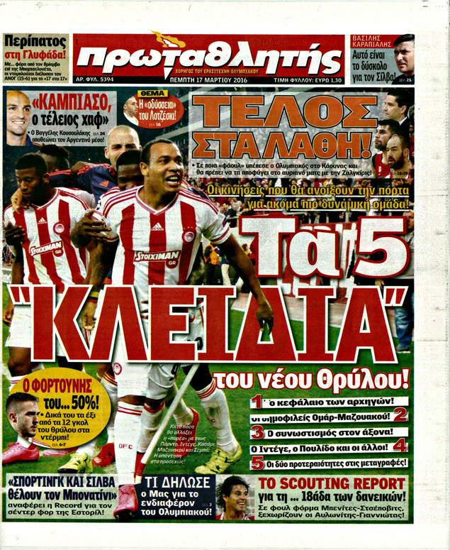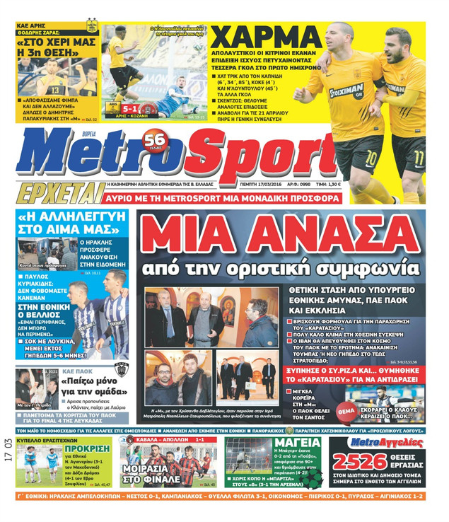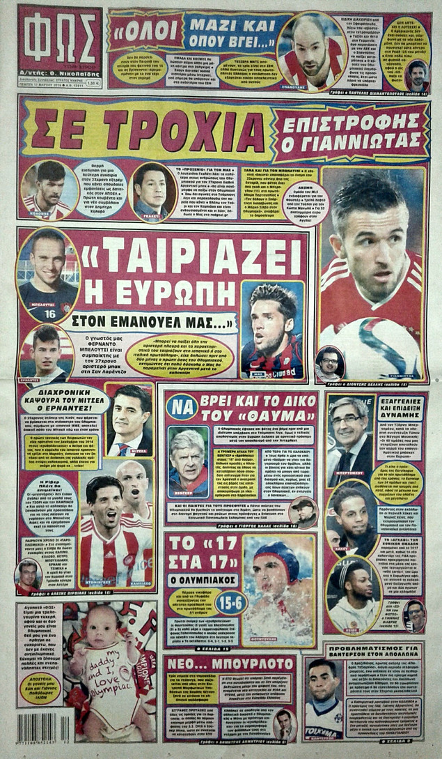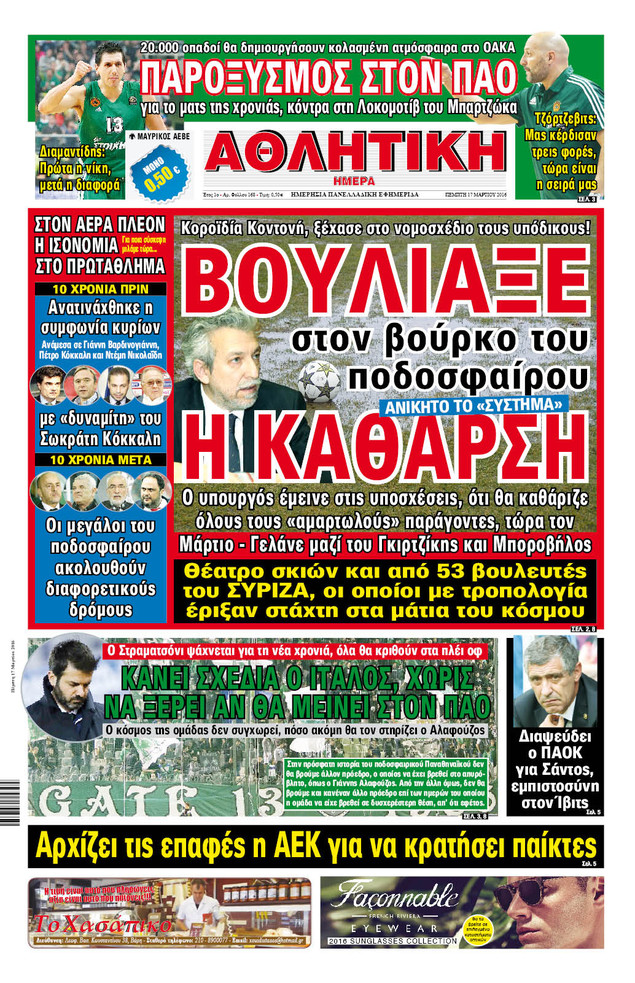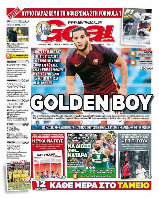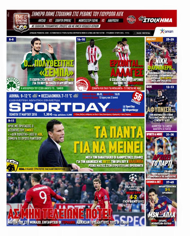 Oι αθλητικές εφημερίδες 17/3/2016 Enikos Newsroom 05:14, Πέμπτη 17 Μαρτίου 2016 Media Διαβάστε τα σημερινά πρωτοσέλιδα των αθλητικών εφημερίδων: ΑΘΛΗΤΙΚΕΣ ΕΦΗΜΕΡΙΔΕΣ ΠΡΩΤΟΣΕΛΙΔΑ Μοιράσου το: σχολίασε κι εσύ (0 σχόλια) Ακολουθήστε το enikos.gr στο Google News και μάθετε πρώτοι όλες τις ειδήσεις Δείτε όλες τις τελευταίες ειδήσεις από την Ελλάδα και τον Κόσμο στο enikos.gr Ειδήσεις Ροή Ειδήσεων 5 ώρες πριν Αυξάνουν την πίεση προς την κυβέρνηση οι αγρότες: Κλείνουν παρακαμπτήριους και ανοίγουν διόδια – Τι θα γίνει τις γιορτές 4 ώρες πριν ΟΠΕΚΕΠΕ: Προφυλακιστέος ο φερόμενος αρχηγός και ο λογιστής της εγκληματικής οργάνωσης 20 λεπτά πριν Ευρωπαϊκή Ένωση: Χωρίς συμφωνία, για την μακροπρόθεσμη χρηματοδότηση της Ουκρανίας, ολοκληρώθηκε η Σύνοδος Κορυφής στις Βρυξέλλες 3 ώρες πριν ΑΕΚ – Κραϊόβα 3-2: Επική ανατροπή και πρόκριση στους «16» του Conference League η Ένωση 5 ώρες πριν Φοινικούντα: Το Σάββατο απολογείται ο 30χρονος γιος γνωστού επιχειρηματία της Πλάκας που παραδόθηκε – Όσα είπε στους αστυνομικούς και ο ρόλος του στο έγκλημα 4 ώρες πριν Αρχαιολόγοι ανακάλυψαν ρωμαϊκά τεχνουργήματα από μια πόλη που δεν υπήρξε ποτέ – Τα τρία εντυπωσιακά κτίρια και ο αμφορέας με τις… σαρδέλες 5 ώρες πριν Ύπνος: Η απλή βραδινή ρουτίνα για να προστατεύσετε τα μαλλιά σας από το κρύο κατά τη διάρκεια του χειμώνα 6 ώρες πριν Manifesting: Πώς να συναντήσετε τον σύντροφο της ζωής σας, ανάλογα με τον μήνα γέννησής σας 2 ημέρες πριν 20 χρόνια τα Χριστούγεννα ξεκινούν στα Public με μεγάλη ποικιλία σε δώρα! 20 λεπτά πριν Ευρωπαϊκή Ένωση: Χωρίς συμφωνία, για την μακροπρόθεσμη χρηματοδότηση της Ουκρανίας, ολοκληρώθηκε η Σύνοδος Κορυφής στις Βρυξέλλες 35 λεπτά πριν GNTM: «Κλείδωσαν» οι τέσσερις φιναλίστ – Μεγάλη ανατροπή στις τελευταίες αποχωρήσεις 49 λεπτά πριν Γιώργος Μαζωνάκης: Αποθεώθηκε στην πρεμιέρα του στην «Ακτή Πειραιώς» λίγες ώρες μετά τις καταγγελίες – «Είμαι αληθινός», είπε με νόημα 1 ώρα πριν Πόλεμος στην Ουκρανία: Ρωσικά drones έπληξαν την Οδησσό – Μία νεκρή και ζημιές σε ενεργειακές υποδομές 1 ώρα πριν ΑΕΚ-Κραϊόβα: Τα highlights της μυθικής ανατροπής της «Ένωσης» ENIKOS NETWORK Σε περίοδο αυξημένης δραστηριότητας η γρίπη στην Ελλάδα-Μέτρα προστασίας από τον ΕΟΔΥ Σκέφτεστε συνέχεια συζητήσεις που έχετε κάνει; Τι σημαίνει αυτό, σύμφωνα με ειδικό Στεγαστικό: Τι λέει η ΠΟΜΙΔΑ για τα νέα μέτρα που ανακοίνωσε ο Κυριάκος Μητσοτάκης Λαγκάρντ: Αισιόδοξη για την ανάπτυξη της Ευρωζώνης, αβέβαιη για τον πληθωρισμό Χαρτογραφώντας το «σημείο χωρίς επιστροφή»: Για πρώτη φορά αποκαλύπτεται με λεπτομέρεια το ακανθώδες όριο της ατμόσφαιρας τ... Η Google καταργεί τη λειτουργία «dark web report» – Πώς θα μπορούν οι χρήστες να διαγράφουν τα δεδομένα τους περισσότερα 02:50 , Παρασκευή 19 Δεκεμβρίου 2025 GNTM: «Κλείδωσαν» οι τέσσερις φιναλίστ – Μεγάλη ανατροπή στις τελευταίες αποχωρήσεις Για προτελευταία φορά εμφανίστηκαν στο πλατό του GNTM οι φιναλίστ του φετινού κύκλου, το βράδυ... 17:45 , Πέμπτη 18 Δεκεμβρίου 2025 ROUK ZOUK: Εορταστικό επεισόδιο με καλεσμένους τους πρωταγωνιστές του «Γιατί ρε πατέρα» Το Σάββατο 20 Δεκεμβρίου στις 21:00, η Ζέτα Μακρυπούλια υποδέχεται εκλεκτούς ηθοποιούς που όλο... 17:20 , Πέμπτη 18 Δεκεμβρίου 2025 Άγιος έρωτας: Η Χριστίνα εξομολογείται στον πατέρα Νικόλαο, απόψε στις 21:00 στον Alpha Η Νότα αποφασίζει να εκδικηθεί τον Πέτρο και τον Στέφανο, για χάρη του Λούη, όμως τα πράγματα ... 16:50 , Πέμπτη 18 Δεκεμβρίου 2025 Να μ’ αγαπάς: Ζωή και Φωτεινή συμφιλιώνονται ω