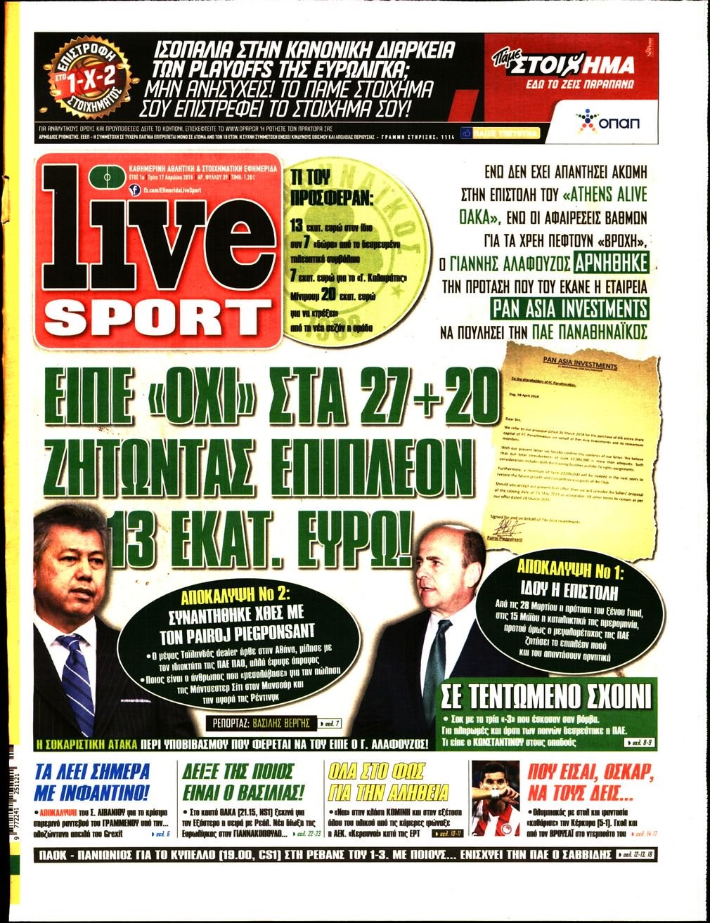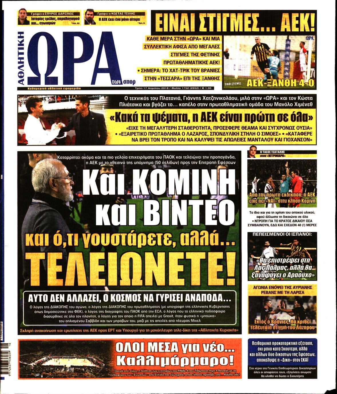 Οι αθλητικές εφημερίδες 17/4/2018 Enikos Newsroom 07:27, Τρίτη 17 Απριλίου 2018 Media Διαβάστε τα σημερινά πρωτοσέλιδα των αθλητικών εφημερίδων: ΑΘΛΗΤΙΚΕΣ ΕΦΗΜΕΡΙΔΕΣ ΠΡΩΤΟΣΕΛΙΔΑ Μοιράσου το: σχολίασε κι εσύ (0 σχόλια) Ακολουθήστε το enikos.gr στο Google News και μάθετε πρώτοι όλες τις ειδήσεις Δείτε όλες τις τελευταίες ειδήσεις από την Ελλάδα και τον Κόσμο στο enikos.gr Ειδήσεις Ροή Ειδήσεων 3 ώρες πριν Χριστούγεννα στα μπλόκα: Επιμένουν στις κινητοποιήσεις τους οι αγρότες – Ανοίγουν τα διόδια το Σαββατοκύριακο 3 ώρες πριν Ουκρανία: Η άνευ προηγουμένου επίθεση σε ρωσικό τάνκερ στη Μεσόγειο και το μήνυμα προς στον Πούτιν – Το «μακρύ χέρι» του Κιέβου 2 ώρες πριν Πούτιν: Τα μηνύματα σε Ευρώπη και ΝΑΤΟ από το μαραθώνιο «σόου» του – Η απαίτηση για «σεβασμό» και η ειρήνη «με τους όρους» της Μόσχας 3 ώρες πριν Τραμπ: Δεν αποκλείει την πιθανότητα ενός πολέμου στη Βενεζουέλα – «Ο Μαδούρο ξέρει καλύτερα από τον καθένα τι ακριβώς θέλω» 4 ώρες πριν Συνεχίζει να προκαλεί ο Μίτσκοσκι: «Για μένα το όνομα Μακεδονία είναι ιερό» 2 ώρες πριν Ανακαλύφθηκαν αρχαία χρυσά νομίσματα 2.200 ετών που απεικονίζουν τον θεό Απόλλωνα – Η άγνωστη σύνδεση με τον Φίλιππο Β΄ της Μακεδονίας 3 ώρες πριν Ύπνος: Μια κρυφή κατάσταση του εγκεφάλου πριν από τον ύπνο μπορεί να είναι το “κλειδί” για υψηλή ευφυΐα και δημιουργικότητα 4 ώρες πριν Αριθμολογία: Οι άνθρωποι που έχουν γεννηθεί αυτές τις 4 ημερομηνίες, συχνά παρεξηγούνται – «Η καλοσύνη τους κρύβει τεράστια δύναμη» 5 ώρες πριν Ξεχάστε το καθάρισμα το Σαββατοκύριακο: Ο «κανόνας των 20 λεπτών» που θα σας λύσει τα χέρια 4 λεπτά πριν Συρία: Μαζικά πλήγματα των ΗΠΑ σε θέσεις του Ισλαμικού Κράτους – Χέγκσεθ: «Δεν είναι αρχή πολέμου, είναι μια δήλωση εκδίκησης» για το θάνατο των στρατιωτών μας 16 λεπτά πριν Ουκρανία: Ολοκληρώθηκαν οι συνομιλίες με τους Αμερικανούς κι Ευρωπαίους διαπραγματευτές 31 λεπτά πριν Μπαρτσελόνα – Μπασκόνια 134-124: Οι «μπλαουγκράνα» πήραν το ματς της χρονιάς ύστερα από τρεις παρατάσεις 46 λεπτά πριν Φαίη Σκορδά: «Παλιότερα τα κομπλιμέντα τα προσπερνούσα, τώρα τα έχω ανάγκη» 1 ώρα πριν Βασίλης Σπανούλης: Δεν εμφανίστηκε ούτε ένας δημοσιογράφος στην συνέντευξη Τύπου – «Καλησπέρα στον… κανέναν», δείτε βίντεο ENIKOS NETWORK Το ΕΚΑΒ τιμήθηκε από την Ακαδημία Αθηνών για τα 40 χρόνια προσφοράς του Έχετε πραγματικά μεγάλη καρδιά; 10 χαρακτηριστικά όσων έχουν καλοσύνη Αναστολή μέτρων αναγκαστικής εκτέλεσης για κτηνοτρόφους που πλήττονται από την ευλογιά των αιγοπροβάτων Πλήρης επάρκεια προϊόντων στις λαϊκές της Αττικής, παρά τις αγροτικές κινητοποιήσεις – Τι απαντούν οι πωλητές Χαρτογραφώντας το «σημείο χωρίς επιστροφή»: Για πρώτη φορά αποκαλύπτεται με λεπτομέρεια το ακανθώδες όριο της ατμόσφαιρας τ... Η Google καταργεί τη λειτουργία «dark web report» – Πώς θα μπορούν οι χρήστες να διαγράφουν τα δεδομένα τους περισσότερα 22:42 , Παρασκευή 19 Δεκεμβρίου 2025 Γιώργος Γιαννόπουλος για “Το σόι σου”: “Είναι ευτυχία και ευλογία αυτή η σειρά” «Είναι ευτυχία και ευλογία η συγκυρία αυτής της σειράς», θα πει ο Γιώργος Γιαννόπουλος -ο αγαπ... 20:37 , Παρασκευή 19 Δεκεμβρίου 2025 Don’t Forget The Lyrics: Η Έλλη Κοκκίνου υποδέχεται 4 παίκτες που θα κάνουν τα πάντα για να μη χάσουν ούτε… μισή λέξη από τους στίχους Το «Don’t Forget The Lyrics» επιστρέφει απόψε, Παρασκευή 19 Δεκεμβρίου, στις 21:00 με νέο επει... 19:31 , Παρασκευή 19 Δεκεμβρίου 2025 GNTM: Απόψε ο μεγάλος τελικός για τους 4 φιναλίστ Έπειτα από μήνες γεμάτο