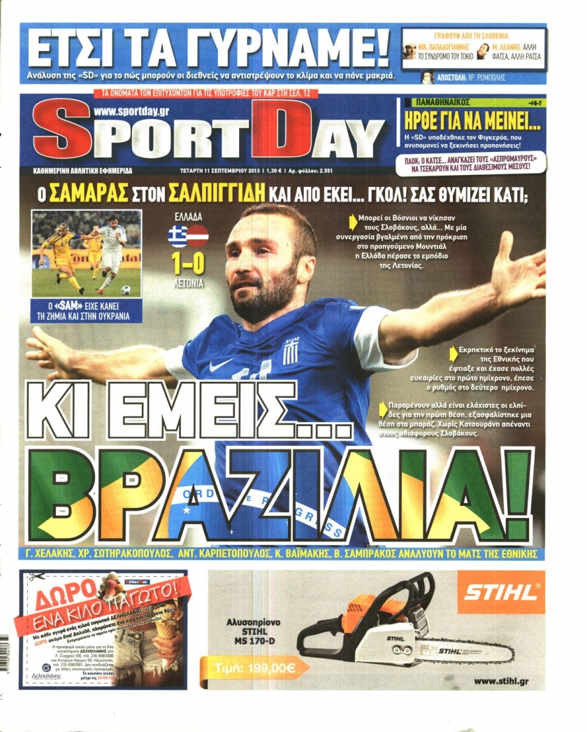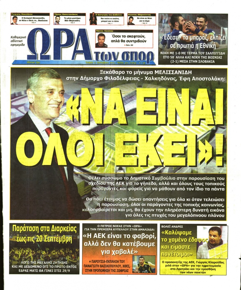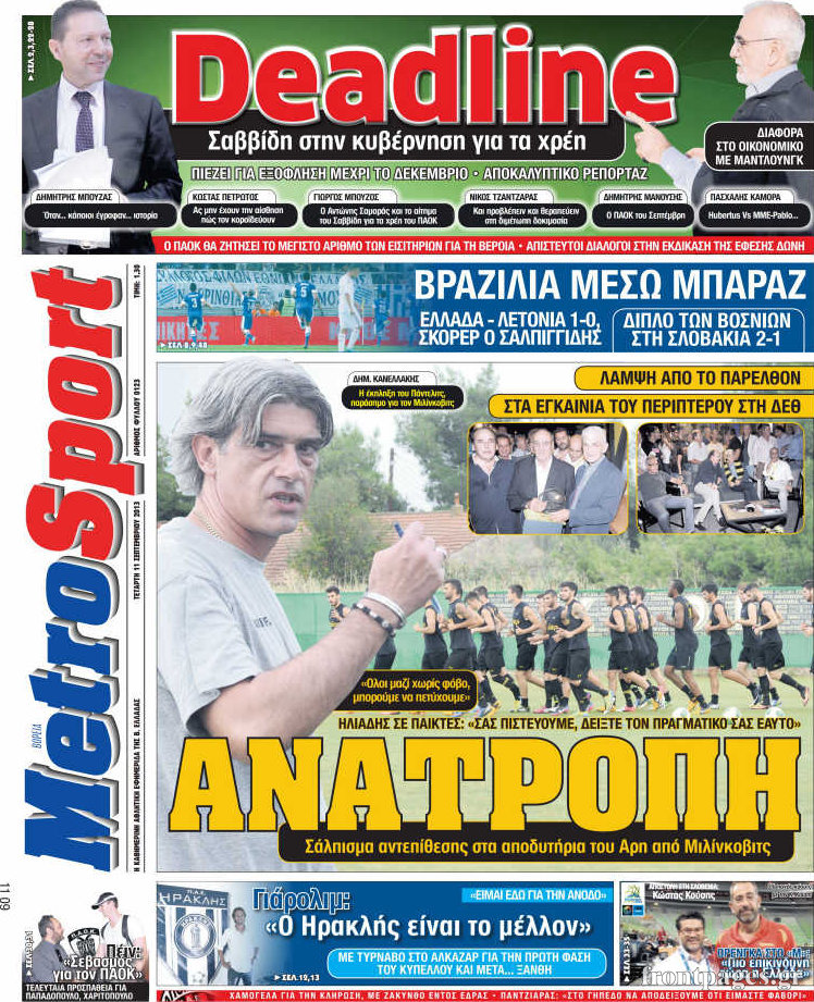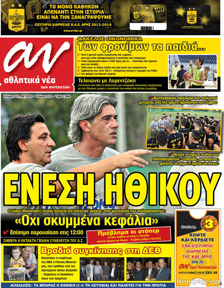Οι αθλητικές εφημερίδες Enikos Newsroom 08:44, Τετάρτη 11 Σεπτεμβρίου 2013 Media Οι αθλητικές εφημερίδες Διαβάστε τα πρωτοσέλιδα των αθλητικών εφημερίδων: ΑΘΛΗΤΙΚΕΣ ΕΦΗΜΕΡΙΔΕΣ ΕΦΗΜΕΡΙΔΕΣ ΠΡΩΤΟΣΕΛΙΔΑ Μοιράσου το: σχολίασε κι εσύ (0 σχόλια) Ακολουθήστε το enikos.gr στο Google News και μάθετε πρώτοι όλες τις ειδήσεις Δείτε όλες τις τελευταίες ειδήσεις από την Ελλάδα και τον Κόσμο στο enikos.gr Ειδήσεις Ροή Ειδήσεων 3 ώρες πριν Ακίλα Σάλεχ: «Άκυρο» το τουρκολιβυκό μνημόνιο λέει ο πρόεδρος της λιβυκής Βουλής – Ανοίγει ο διάλογος με Ελλάδα, Αίγυπτο και Τουρκία 7 ώρες πριν Αγρότες: Την Τρίτη η απόφαση για διάλογο ή κλιμάκωση των κινητοποιήσεών τους – Πώς χαρακτηρίζουν τις ανακοινώσεις Τσιάρα και οι επόμενες κινήσεις 7 ώρες πριν Τραμπ για Ουκρανία: «Είμαστε πιο κοντά σε συμφωνία από ποτέ» – «Πολυεθνική δύναμη» προτείνουν οι Ευρωπαίοι 7 ώρες πριν Κυψέλη: Η 16χρονη που μαχαίρωσε την 14χρονη είχε συλληφθεί 3 φορές στο παρελθόν – Έβριζε καθηγητές, έβαζε φωτιές σε κάδους και εκβίαζε συμμαθητές της 7 ώρες πριν Τρομοκρατική επίθεση στο Σίδνεϊ: Θλίψη για τα 15 θύματα – Οργή στην εβραϊκή κοινότητα που προειδοποιούσε επί δύο χρόνια 7 ώρες πριν Επιστήμονες ίσως έλυσαν το μυστήριο γύρω από τα Χόμπιτ – Νέα έρευνα αποκαλύπτει πώς εξαφανίστηκαν 8 ώρες πριν Ύπνος: Η αρχαία μορφή άσκησης που αποδεικνύεται αποτελεσματική στην αντιμετώπιση της αϋπνίας, σύμφωνα με μελέτη 9 ώρες πριν Αριθμολογία: Ο τυχερός σας αριθμός, ανάλογα με τον μήνα γέννησής σας 10 ώρες πριν Πώς να μην μαραίνονται γρήγορα τα κομμένα λουλούδια: Το λάθος στην τοποθέτηση του βάζου που πρέπει να αποφεύγετε 7 λεπτά πριν Υψηλή χοληστερίνη: Γιατρός αποκαλύπτει δύο τρόπους για να την μειώσετε χωρίς φαρμακευτική αγωγή 15 λεπτά πριν Σαν σήμερα 16 Δεκεμβρίου: Τα σημαντικότερα γεγονότα της ημέρας 19 λεπτά πριν Οι οικονομικές εφημερίδες 16/12/2025 24 λεπτά πριν Οι αθλητικές εφημερίδες 16/12/2025 29 λεπτά πριν Οι πολιτικές εφημερίδες 16/12/2025 ENIKOS NETWORK Πότε το χρόνιο ροχαλητό να αποτελέσει ένδειξη κινδύνου για την καρδιά; Τι λένε οι ειδικοί Μάριος Θεμιστοκλέους: Το ΕΣΥ ενισχύεται, εκσυγχρονίζεται, αλλάζει ΕΒΕΠ για αγροτικές κινητοποιήσεις: Κάθε επιπλέον εβδομάδα προσθέτει περίπου 200 εκατ. ευρώ ζημιά Τι προβλέπει το νομοσχέδιο του υπουργείου Εθνικής Άμυνας – Oι αλλαγές στους μισθούς Σύγχρονος Νοστράδαμος: Προειδοποιεί για «μεγάλο γεγονός» τους επόμενους μήνες που θα συγκλονίσει τη Βρετανία και τον κόσμο Τεστ παρατηρητικότητας: Μπορείτε να βρείτε τις 3 διαφορές στις εικόνες με έναν πιγκουίνο σε 14 δευτερόλεπτα περισσότερα 05:48 , Τρίτη 16 Δεκεμβρίου 2025 Οι οικονομικές εφημερίδες 16/12/2025 Διαβάστε τα πρωτοσέλιδα από τις οικονομικές εφημερίδες, σήμερα 16/12/2025. 05:43 , Τρίτη 16 Δεκεμβρίου 2025 Οι αθλητικές εφημερίδες 16/12/2025 Διαβάστε τα πρωτοσέλιδα από τις αθλητικές εφημερίδες, σήμερα 16/12/2025. 05:38 , Τρίτη 16 Δεκεμβρίου 2025 Οι πολιτικές εφημερίδες 16/12/2025 Διαβάστε τα πρωτοσέλιδα από τις πολιτικές εφημερίδες, σήμερα 16/12/2025. 21:35 , Δευτέρα 15 Δεκεμβρίου 2025 Το Σπίτι Δίπλα Στο Ποτάμι: Η Ιουλία και ο Φωκάς μετακομίζουν στη Ρόδο – Δύο νέοι χαρακτήρες μπαίνουν στη σειρά Δύο νέοι, κομβικοί χαρακτήρες κάνουν την εμφάνισή τους αυτή την εβδομάδα στην αγαπημένη σειρά ... ΤΕΛΕΥΤΑΙΕΣ ΕΙΔΗΣΕΙΣ 7 λεπτά πριν Υψηλή χοληστερίνη: Γιατρός αποκαλύπτει δύο τρόπους... 15 λεπτά πριν Σαν σήμερα 16 Δεκεμβρίου: Τα σημαντικότερα γεγονότα... 19 λεπτά πριν Οι οικονομικές εφημερίδες 16/12/2025 24 λεπτά πριν Οι αθλητικέ