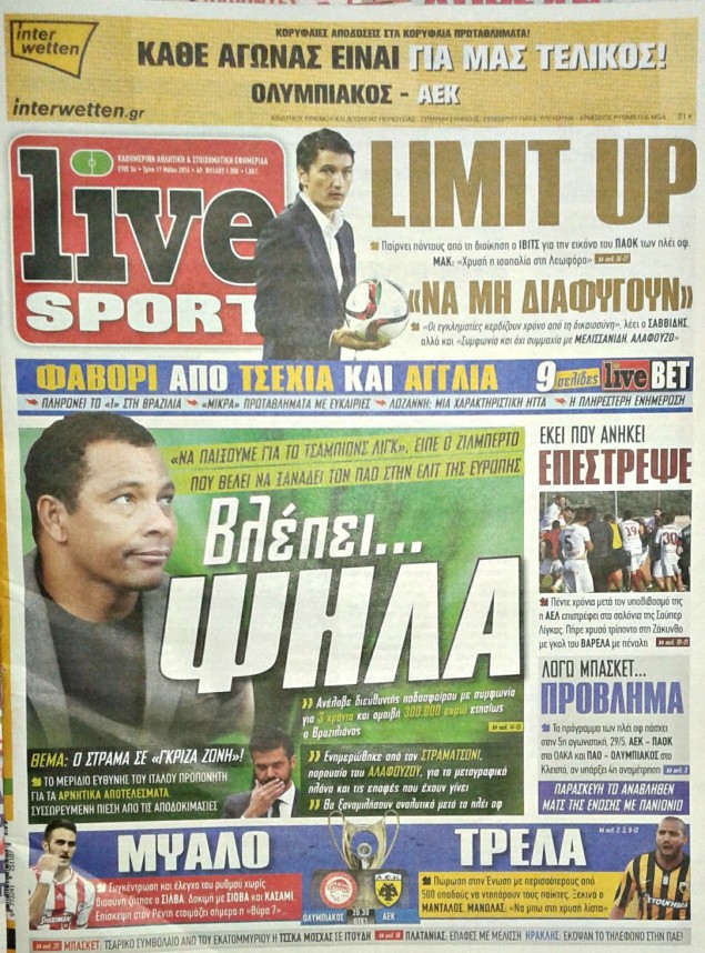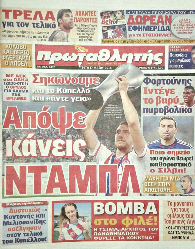 Οι αθλητικές εφημερίδες 17/5/2016 Enikos Newsroom 05:10, Τρίτη 17 Μαΐου 2016 Media Διαβάστε τα σημερινά πρωτοσέλιδα των αθλητικών εφημερίδων: ΑΘΛΗΤΙΚΕΣ ΕΦΗΜΕΡΙΔΕΣ ΠΡΩΤΟΣΕΛΙΔΑ Μοιράσου το: σχολίασε κι εσύ (0 σχόλια) Ακολουθήστε το enikos.gr στο Google News και μάθετε πρώτοι όλες τις ειδήσεις Δείτε όλες τις τελευταίες ειδήσεις από την Ελλάδα και τον Κόσμο στο enikos.gr Ειδήσεις Ροή Ειδήσεων 4 ώρες πριν Αγρότες: «Όχι στον διάλογο, μας εμπαίζει η κυβέρνηση» – Αποφάσισαν κλιμάκωση των κινητοποιήσεων, τι θα γίνει τα Χριστούγεννα 1 ώρα πριν Αθήνα: Εξαρθρώθηκε εγκληματική οργάνωση που διακινούσε ναρκωτικά σε μορφή σοκολάτας – Δύο τράπερ ανάμεσα στους 4 συλληφθέντες – ΒΙΝΤΕΟ 1 ώρα πριν Στη φυλακή ο «Έλληνας Εσκομπάρ» και τρεις συνεργοί του για το φορτίο με την κοκαΐνη – Τι υποστήριξε στην απολογία του 3 ώρες πριν Γιώργος Μαζωνάκης: «Έχει υποστεί ένα σωρό εκβιαστικές πρακτικές – Του είπαν ότι θα του βάλουν τον συγκεκριμένο άνθρωπο να τον καταγγείλει» 1 ώρα πριν Γεωργιάδης για Κωνσταντοπούλου: «Έχει καταφέρει να ξεπεράσει ακόμη και τον εαυτό της – Το ερώτημα είναι “γιατί τώρα;”» 5 ώρες πριν Τα 5 ζώδια που θα ευνοηθούν στα οικονομικά τους το 2026 – «Τραβούν το χρήμα σαν μαγνήτες» 2 ώρες πριν Γάμος: 11 ψυχρές αλλά ευγενικές φράσεις, που λέει ένας άνδρας όταν σκέφτεται τον χωρισμό 1 ώρα πριν Σφουγγάρισμα: Η συνήθεια που θα σας βοηθήσει να διατηρήσετε το σπίτι σας καθαρό και τακτοποιημένο 1 ημέρα πριν 20 χρόνια τα Χριστούγεννα ξεκινούν στα Public με μεγάλη ποικιλία σε δώρα! 4 λεπτά πριν Ολυμπιακός: Τι ζήτησε από τον Άγιο Βασίλη ο Χοσέ Λουίς Μεντιλίμπαρ 10 λεπτά πριν Manifesting: Πώς να συναντήσετε τον σύντροφο της ζωής σας, ανάλογα με τον μήνα γέννησής σας 19 λεπτά πριν Hellenic Train: Καθυστερήσεις στον Προαστιακό λόγω φωτιάς κοντά στη σιδηροδρομική γραμμή 31 λεπτά πριν ΗΠΑ: Νέες φωτογραφίες από τον φάκελο Επστάιν έδωσαν στην δημοσιότητα οι Δημοκρατικοί 37 λεπτά πριν ΕΦΕΤ: Συμβουλές για ασφαλή κατανάλωση τροφίμων κατά την εορταστική περίοδο των Χριστουγέννων ENIKOS NETWORK Σε περίοδο αυξημένης δραστηριότητας η γρίπη στην Ελλάδα-Μέτρα προστασίας από τον ΕΟΔΥ Σκέφτεστε συνέχεια συζητήσεις που έχετε κάνει; Τι σημαίνει αυτό, σύμφωνα με ειδικό Servicers: Μικρή μείωση στα κόκκινα δάνεια που διαχειρίζονται – Αναλυτικά τα στοιχεία ΑΑΔΕ: “Αλλάζει πρόσωπο” το Φορολογικό Μητρώο για πολίτες και επιχειρήσεις – Όλες οι λεπτομέρειες Χαρτογραφώντας το «σημείο χωρίς επιστροφή»: Για πρώτη φορά αποκαλύπτεται με λεπτομέρεια το ακανθώδες όριο της ατμόσφαιρας τ... Η Google καταργεί τη λειτουργία «dark web report» – Πώς θα μπορούν οι χρήστες να διαγράφουν τα δεδομένα τους περισσότερα 17:45 , Πέμπτη 18 Δεκεμβρίου 2025 ROUK ZOUK: Εορταστικό επεισόδιο με καλεσμένους τους πρωταγωνιστές του «Γιατί ρε πατέρα» Το Σάββατο 20 Δεκεμβρίου στις 21:00, η Ζέτα Μακρυπούλια υποδέχεται εκλεκτούς ηθοποιούς που όλο... 17:20 , Πέμπτη 18 Δεκεμβρίου 2025 Άγιος έρωτας: Η Χριστίνα εξομολογείται στον πατέρα Νικόλαο, απόψε στις 21:00 στον Alpha Η Νότα αποφασίζει να εκδικηθεί τον Πέτρο και τον Στέφανο, για χάρη του Λούη, όμως τα πράγματα ... 16:50 , Πέμπτη 18 Δεκεμβρίου 2025 Να μ’ αγαπάς: Ζωή και Φωτεινή συμφιλιώνονται ως μάνα με κόρη, απόψε στις 20:00 Η ταυτότητα του Άγγελου αποκαλύπτεται στο νέο επεισόδιο της σειράς “Να μ’ αγαπάς... 15:52 , Πέμπτη 18 Δεκεμβρίου 2025 Το Σπίτι Δίπλα Στο Ποτάμι: Το καθηλωτικό τελευταίο επεισόδιο για το 2025 απόψε στις 22:30 Καθηλώνει το σημερινό επεισόδιο της σειράς “Το Σπίτι Δί