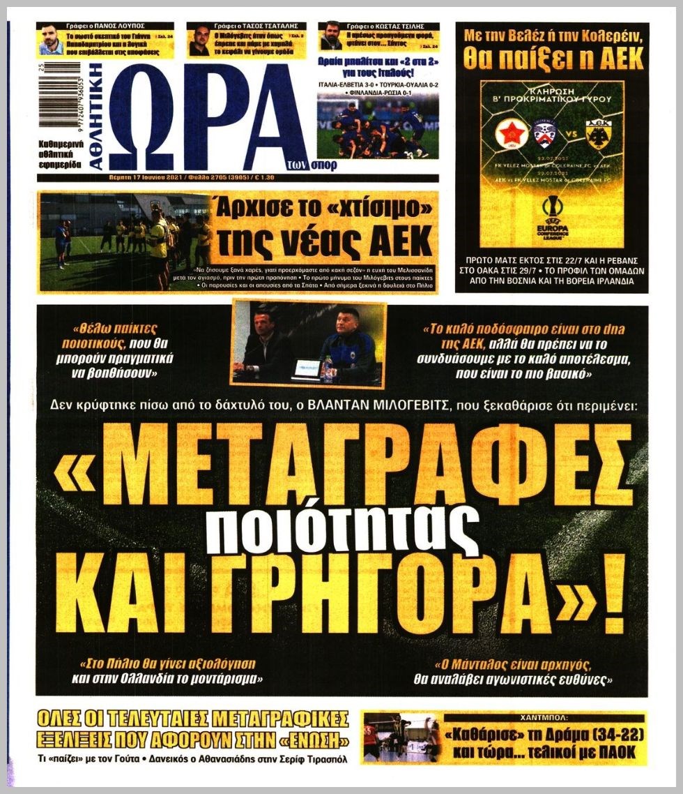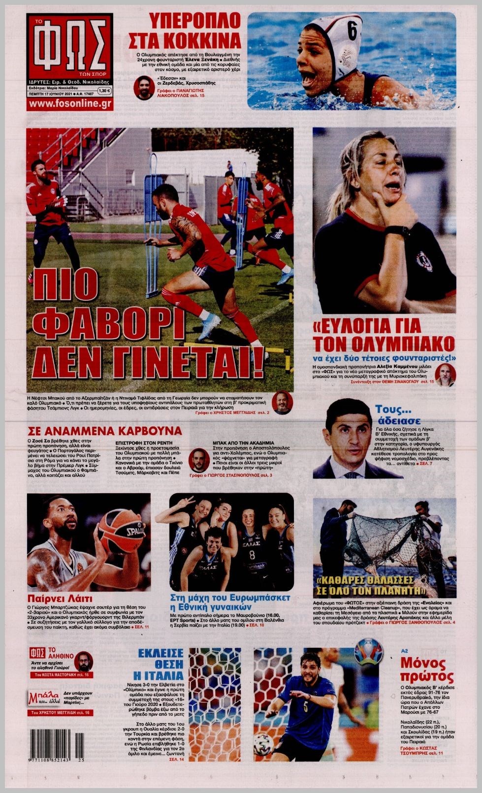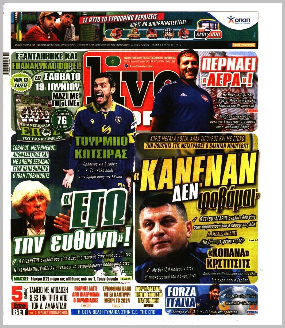 Οι αθλητικές εφημερίδες 17/6/2021 Διονύσης Νίκκας 06:49, Πέμπτη 17 Ιουνίου 2021 Media Διαβάστε τα πρωτοσέλιδα των αθλητικών εφημερίδων… ΑΘΛΗΤΙΚΕΣ ΕΦΗΜΕΡΙΔΕΣ Μοιράσου το: σχολίασε κι εσύ (0 σχόλια) Ακολουθήστε το enikos.gr στο Google News και μάθετε πρώτοι όλες τις ειδήσεις Δείτε όλες τις τελευταίες ειδήσεις από την Ελλάδα και τον Κόσμο στο enikos.gr Ειδήσεις Ροή Ειδήσεων 5 ώρες πριν Μητσοτάκης: Αναγκαία η μεταρρύθμιση του πρωτογενούς τομέα – Τα 6 νέα μέτρα για το στεγαστικό και οι αναφορές σε «Ιθάκη» και «πολιτικούς του καναπέ» 4 ώρες πριν Δάνεια σε ελβετικό φράγκο: Τα βασικά σημεία της ρύθμισης – ανάσας για 40.000 δανειολήπτες – Αναλυτικός οδηγός με ερωτήσεις και απαντήσεις 4 ώρες πριν Κυψέλη: Εξιτήριο πήρε η 14χρονη μαθήτρια που μαχαιρώθηκε από την 16χρονη σε σχολείο – «Θέλω να βοηθήσω το παιδί, έχει μπλέξει με κακές παρέες» 3 ώρες πριν Τραμπ: Γιατί κατέθεσε τώρα την αγωγή κατά του BBC – Πώς η κίνησή του εξυπηρετεί το νέο δόγμα του για «αντίσταση» στην Ευρώπη, υπέρ των συντηρητικών 4 ώρες πριν ΟΠΕΚΕΠΕ – Παράνομες επιδοτήσεις: Ελεύθεροι με περιοριστικούς όρους και οι 7 κατηγορούμενοι που απολογήθηκαν σήμερα 3 ώρες πριν Ανακαλύφθηκε βυθισμένη πέτρινη κατασκευή ανοιχτά της Κριμαίας – Αποτελεί μέρος αρχαίας ελληνικής αποικίας 4 ώρες πριν Ύπνος: Αυτό μπορεί να είναι το χειρότερο λάθος για το βιολογικό ρολόι σας, σύμφωνα με ειδικό 5 ώρες πριν Αριθμολογία: Οι άνθρωποι που έχουν γεννηθεί αυτές τις 3 ημερομηνίες, προσελκύουν μεγάλη τύχη πριν από το τέλος του 2025 7 ώρες πριν Οι 7 συμπεριφορές που μαρτυρούν ότι ένας άνδρας επενδύει μακροπρόθεσμα σε μια σχέση 8 λεπτά πριν ΗΠΑ: Στην αγορά δύο Boeing 747-8 προχωρά η Πολεμική Αεροπορία για την υποστήριξη του προεδρικού στόλου 22 λεπτά πριν Ιταλία: Λεωφορείο έπεσε πάνω σε βιτρίνα καταστήματος στο Τορίνο – Τρεις τραυματίες 38 λεπτά πριν Χαλάνδρι: Καθηγητής έπιασε με κόφτη τα δάχτυλα μαθητή σε κατάληψη – «Μου έχεις πιάσει το χέρι» 53 λεπτά πριν Ουκρανία: Εκρήξεις στο Κίεβο ύστερα από προειδοποίηση για επιδρομή drones 1 ώρα πριν Ορφέας Αυγουστίδης: Η επική ατάκα του γιου του για τα «Φαντάσματα» – «Του λέω “δεν ντρέπεσαι να το λες στον πατέρα σου αυτό;”» ENIKOS NETWORK Αίτημα ΙΣΑ για την εξαίρεση των προσωπικών γιατρών από τις κατ’ οίκον επισκέψεις Η σκανδιναβική μέθοδος στον ύπνο που μπορεί να σώσει έναν γάμο Πιερρακάκης: Ο προϋπολογισμός συμβάλλει ουσιαστικά στην ενίσχυση της αγοραστικής δύναμης της πλειονότητας των εργαζομένων e-ΕΦΚΑ: Παρατείνεται η προθεσμία για την υποβολή ΑΠΔ – Ποιους αφορά Σύγχρονος Νοστράδαμος: Προειδοποιεί για «μεγάλο γεγονός» τους επόμενους μήνες που θα συγκλονίσει τη Βρετανία και τον κόσμο Τεστ παρατηρητικότητας: Μπορείτε να βρείτε τις 3 διαφορές στις εικόνες με έναν πιγκουίνο σε 14 δευτερόλεπτα περισσότερα 20:06 , Τρίτη 16 Δεκεμβρίου 2025 Ο ΣΚΑΙ καταγγέλλει τον ΕΚΚΟΜΕΔ Επιστολή με την οποία καταγράφει την έντονη διαμαρτυρία του προς τον διευθύνοντα σύμβουλο του... 17:40 , Τρίτη 16 Δεκεμβρίου 2025 Eurovision: Στις 4 Ιανουαρίου αποκαλύπτονται τα 28 τραγούδια του ελληνικού τελικού Η αγωνία τελειώνει, η γιορτή της Eurovision αρχίζει στην ΕΡΤ από τις πρώτες ημέρες της νέας χρ... 17:09 , Τρίτη 16 Δεκεμβρίου 2025 Alter Ego Media: Βαθύτατη θλίψη και ειλικρινή συλλυπητήρια για την απώλεια της Ειρήνης Μαρινάκη Τη βαθύτατη θλίψη και τα ειλικρινή συλλυπητήριά της εκφράζει η Alter Ego Media για τον θάνατο ... 13:00 , Τρίτη 16 Δεκεμβρίου 2025 «Στο Παρά Πέντε – 20 Χρόνια Μετά»: Κυκλοφ